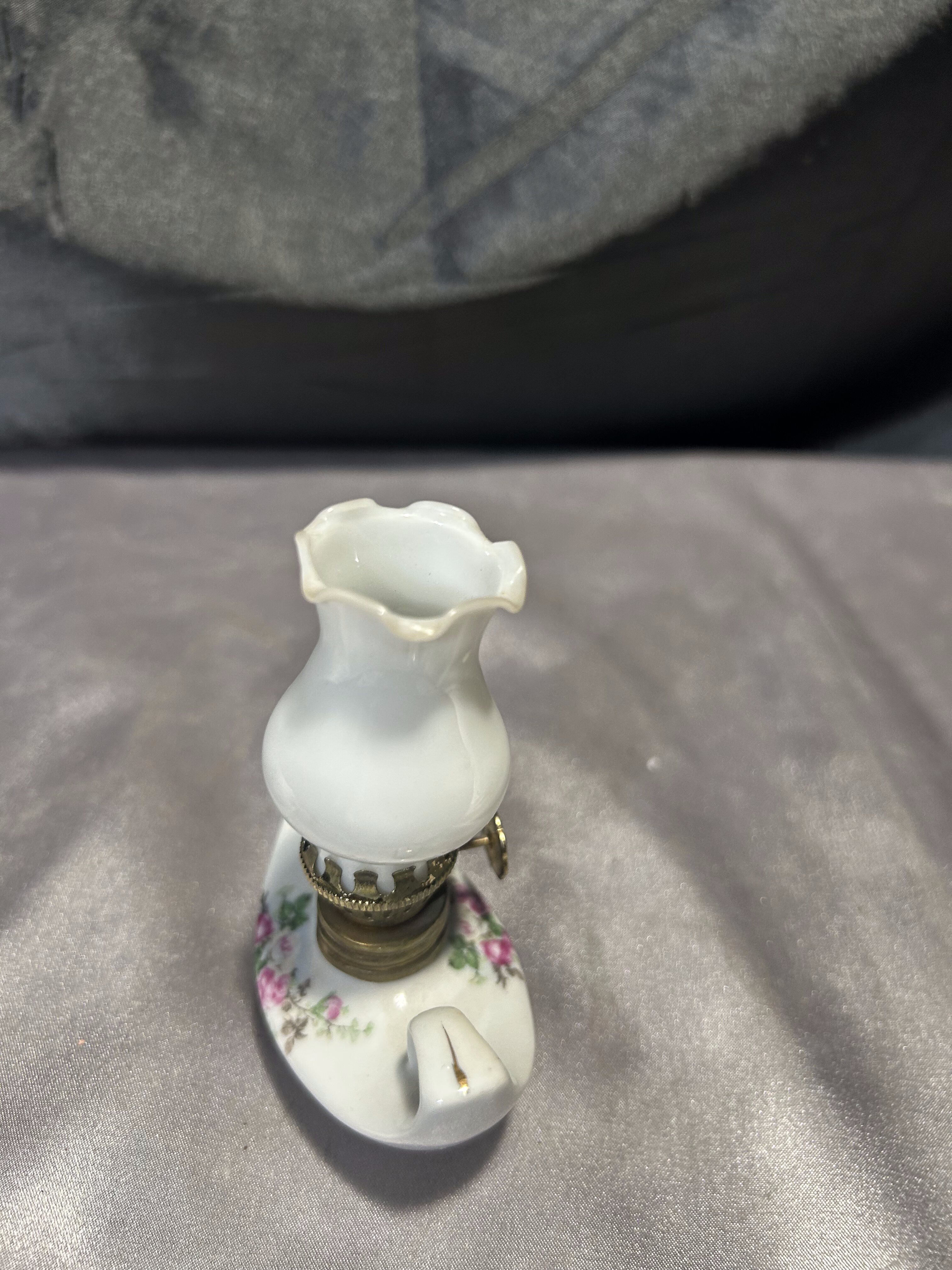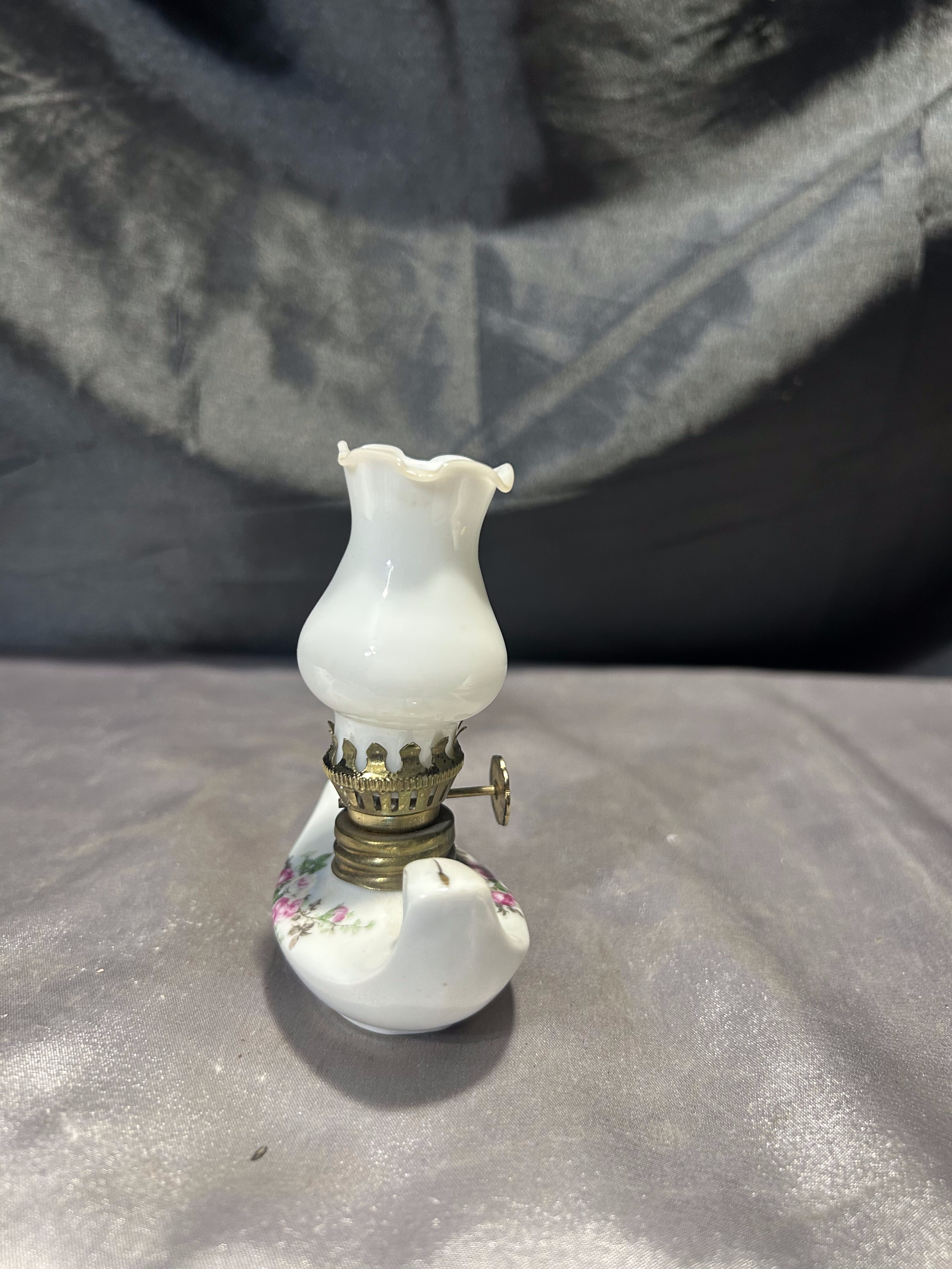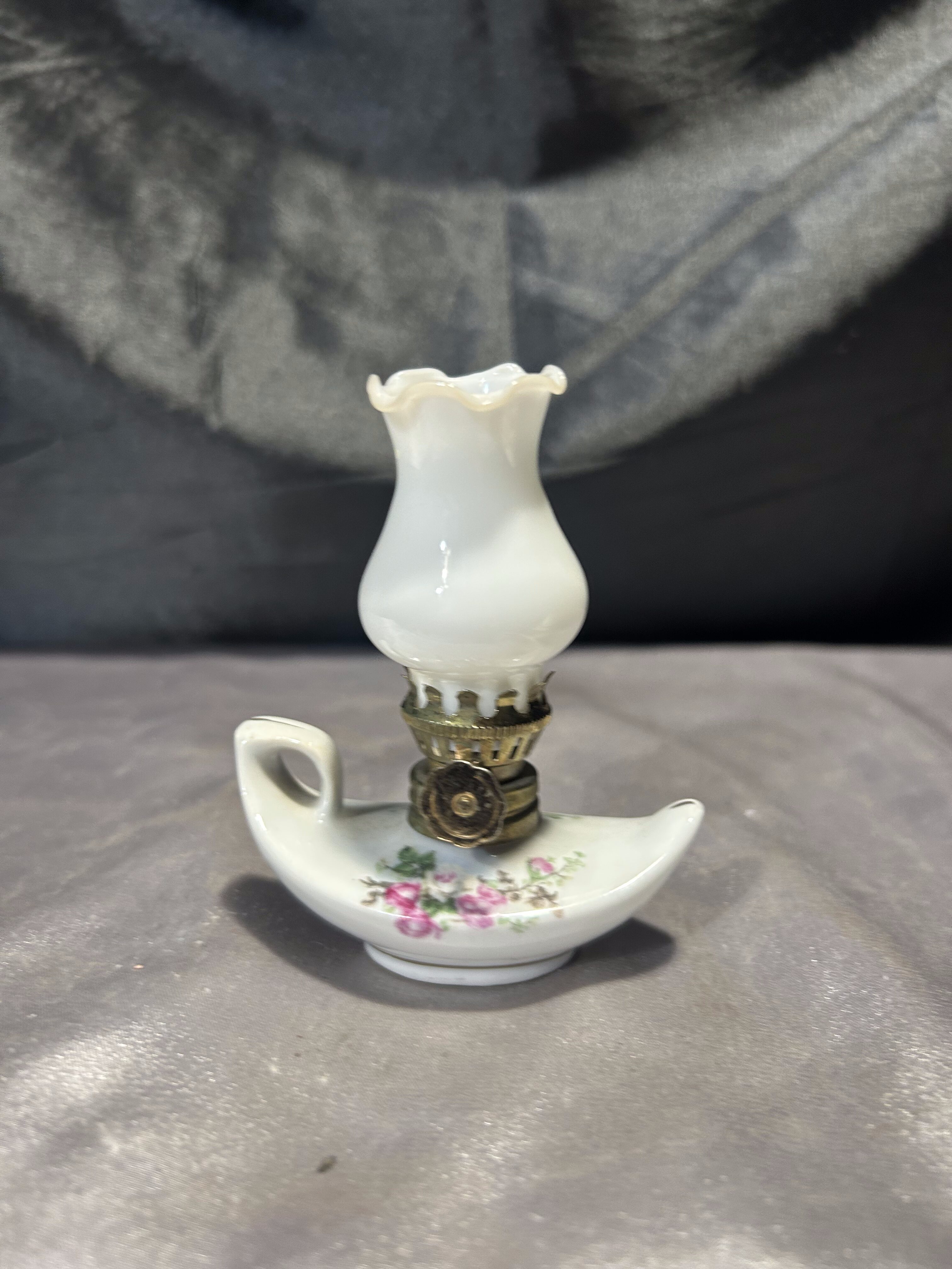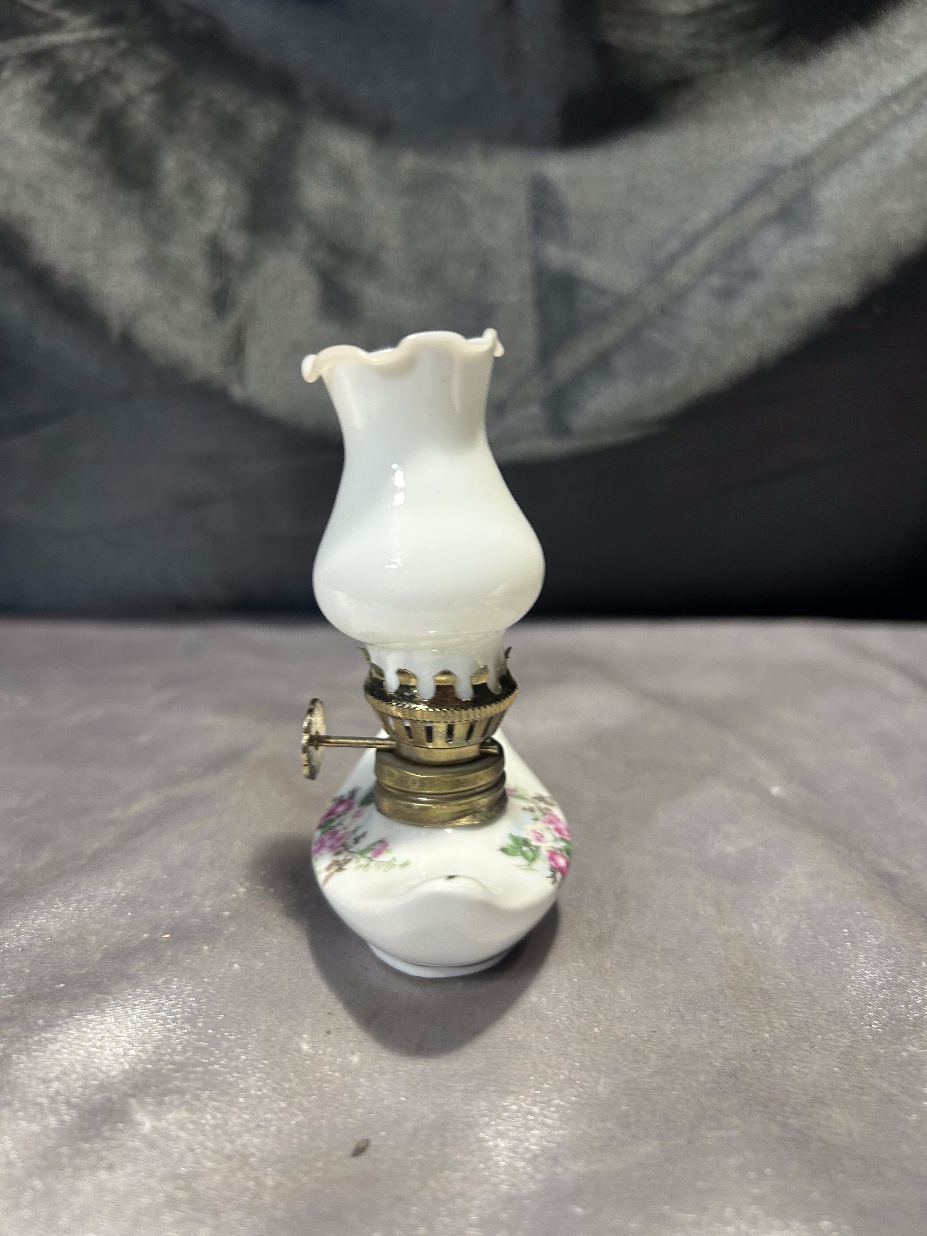 Ta niewielka lampa naftowa zachwyca subtelnym urokiem dawnych lat. Jej kwiatowy motyw i elegancki szklany klosz wprowadzają do wnętrza ciepło i nostalgiczną atmosferę. Doskonała jako element dekoracyjny lub nastrojowe źródło światła.