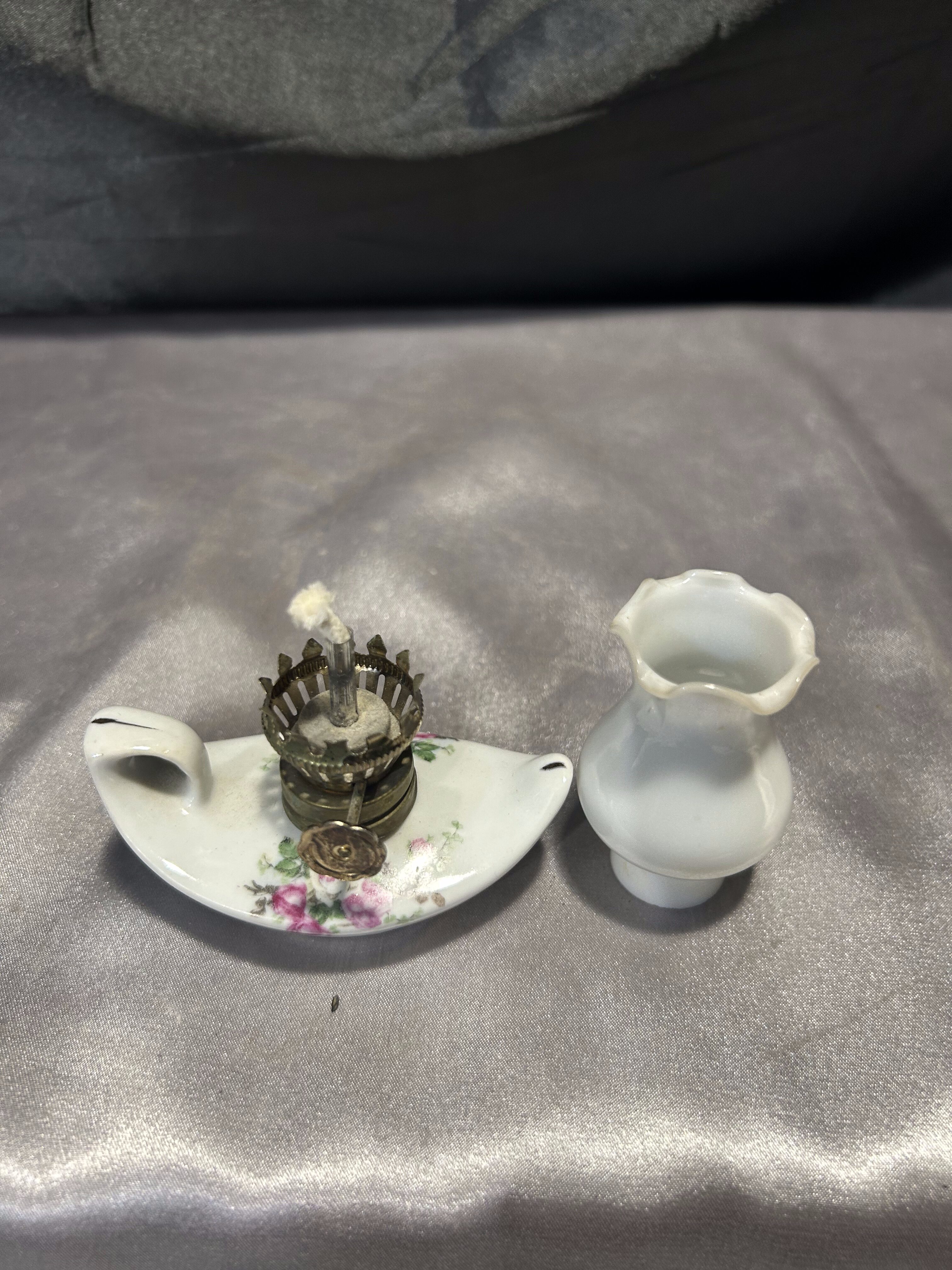 Lampa Naftowa – Biały Pojemnik, Zdobiona Noga, Sprawna