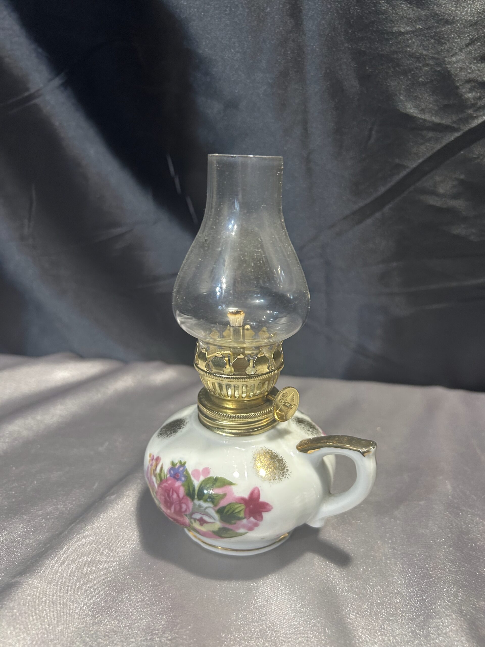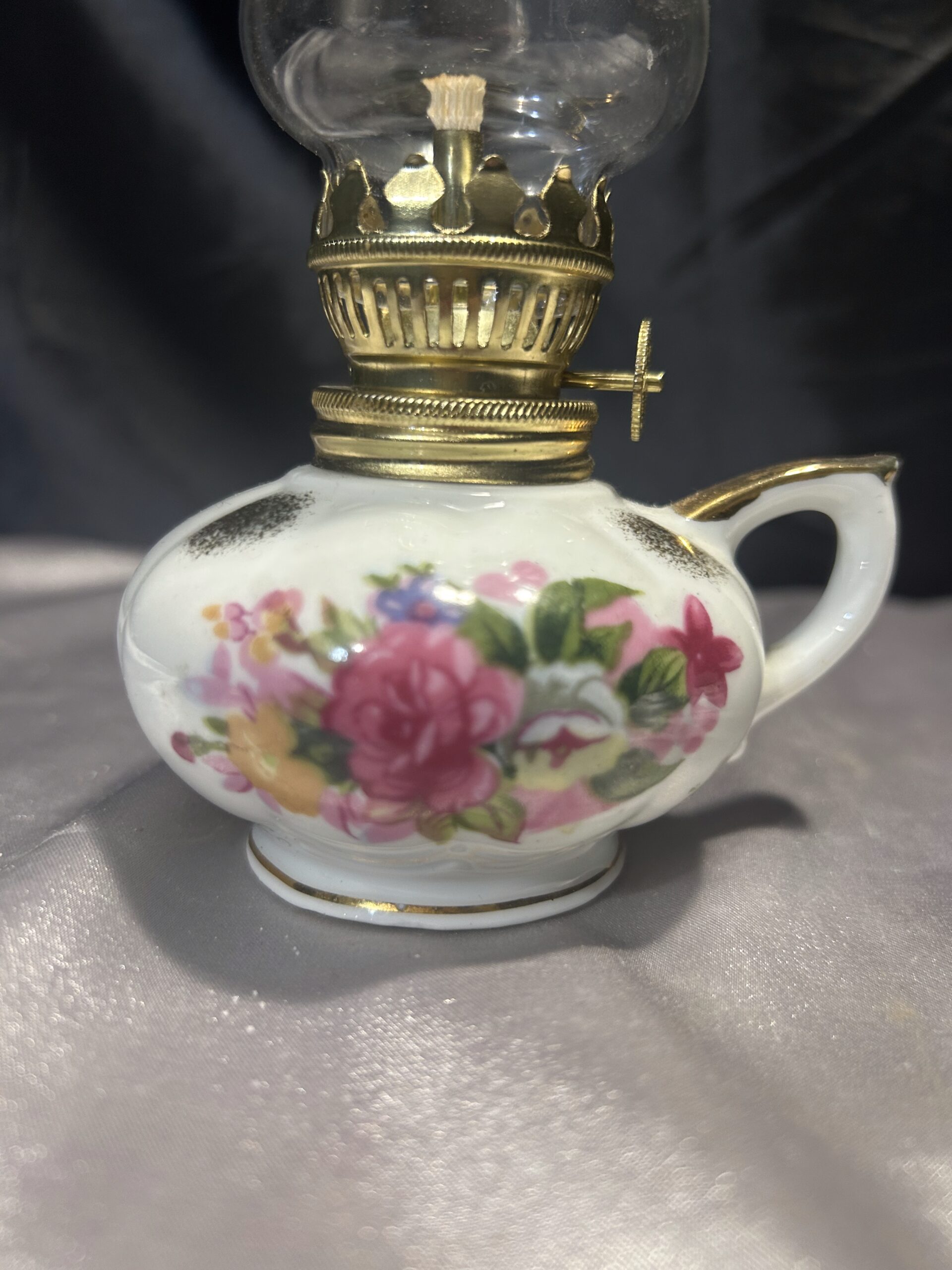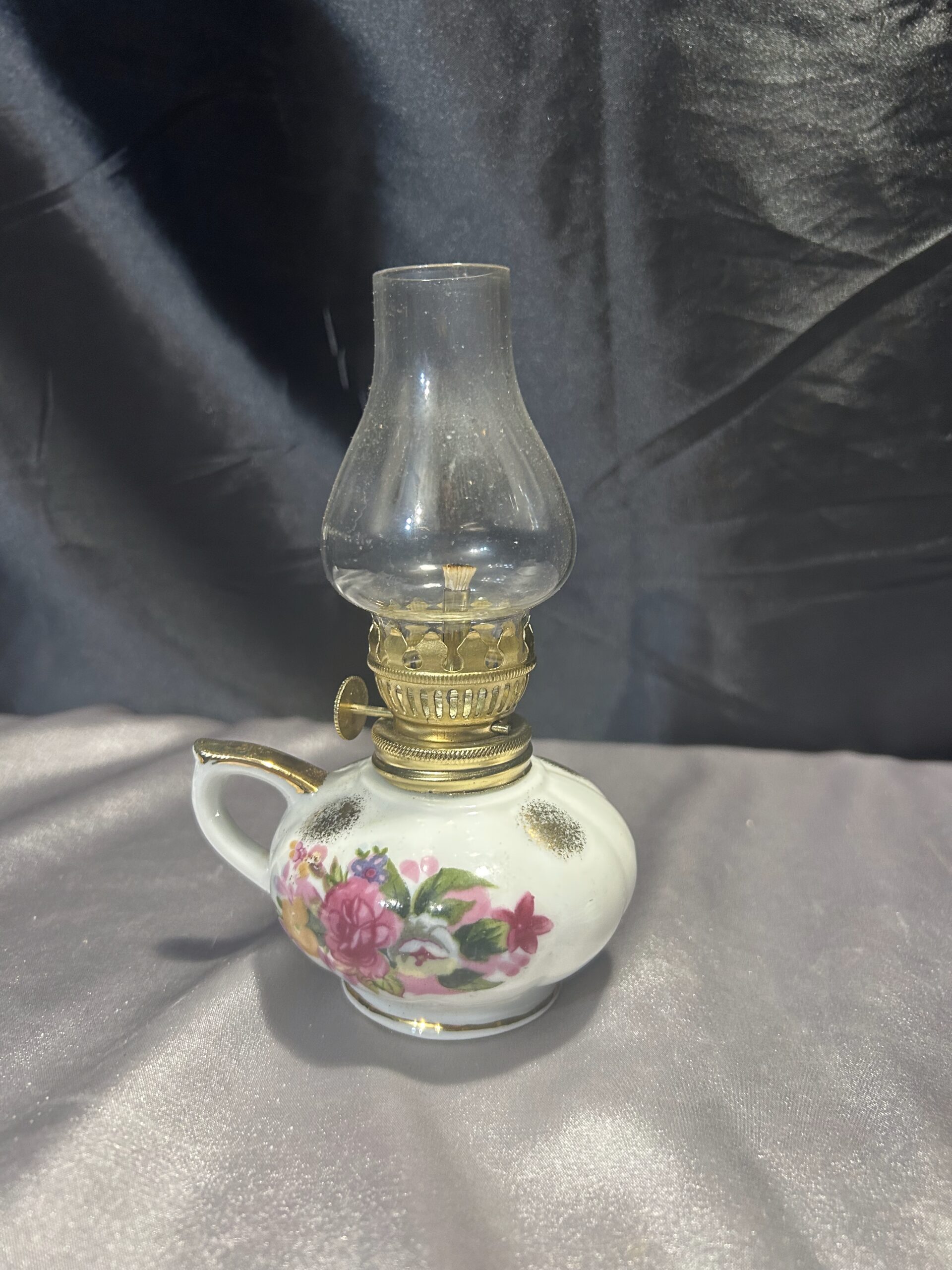 Lampa Naftowa z Uszkiem – Ceramiczna z Malowanymi Różami