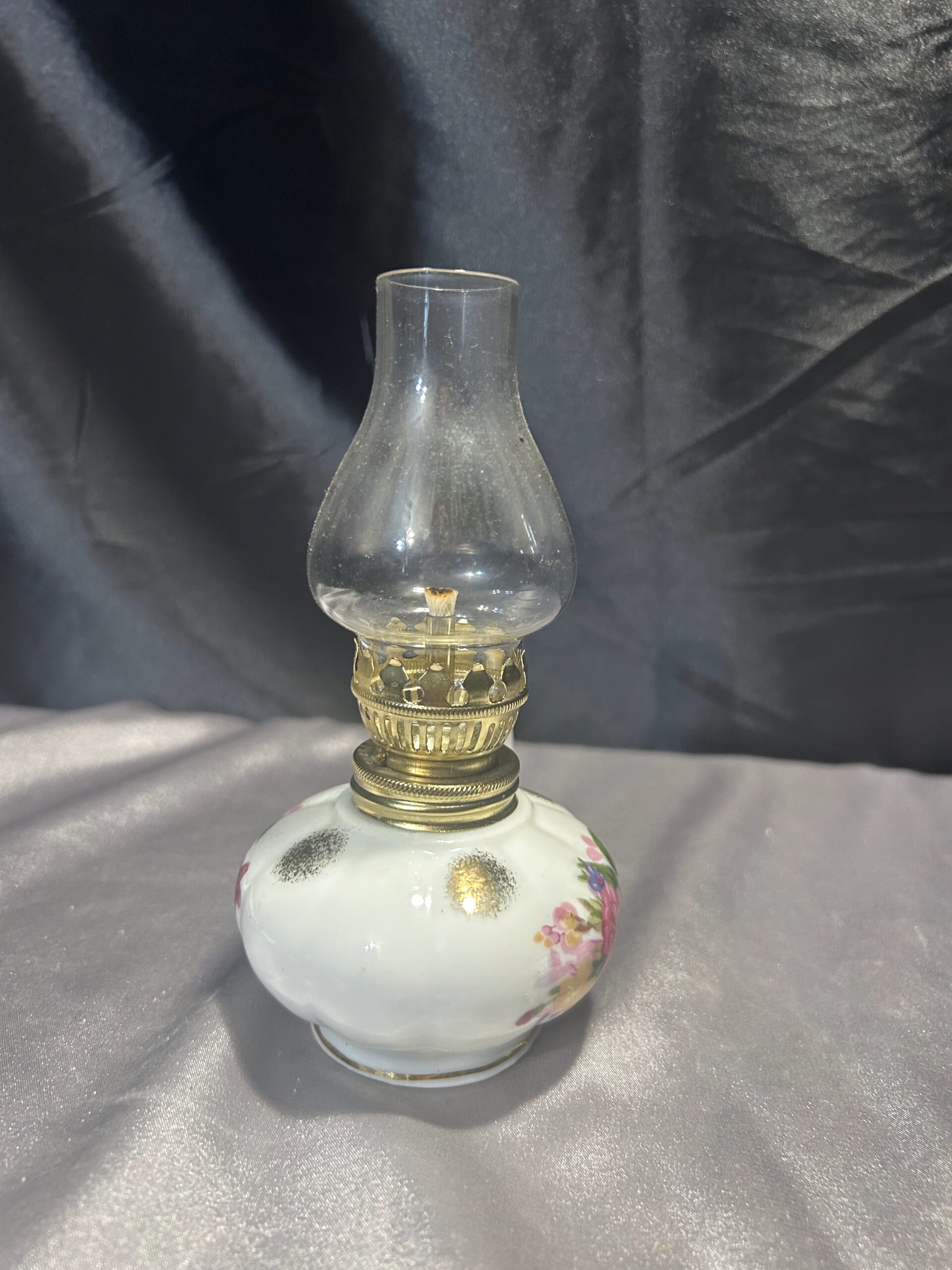 - Lampa Naftowa w Stylu Kaganka – Złote Akcenty i Malowany Bukiet Kwiatów