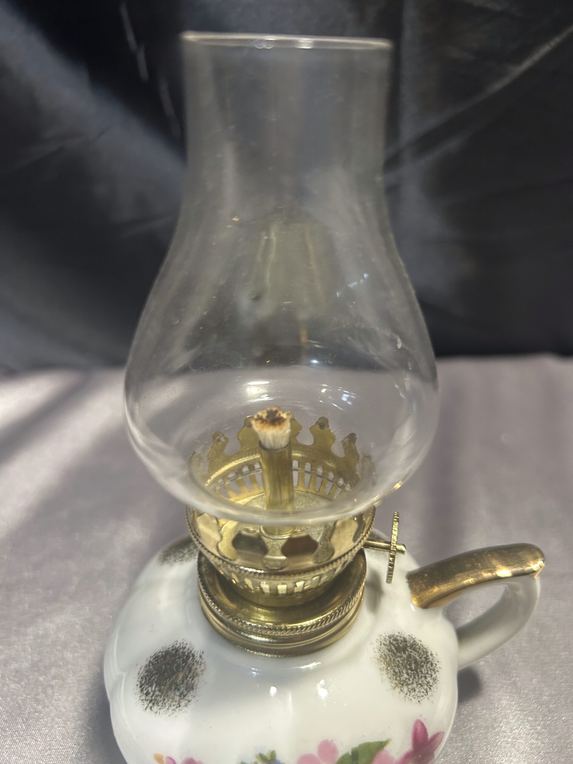 Prezentujemy uroczą lampę naftową, inspirowaną klasycznym kształtem kaganka. Jej wyjątkowy design podkreślają złote akcenty oraz ręcznie malowany, wielokolorowy bukiet kwiatów, który dodaje jej delikatności i romantycznego charakteru. Lampa posiada jedno ucho, co nawiązuje do tradycyjnych form oświetleniowych, a jednocześnie sprawia, że jest wygodna w użytkowaniu.
