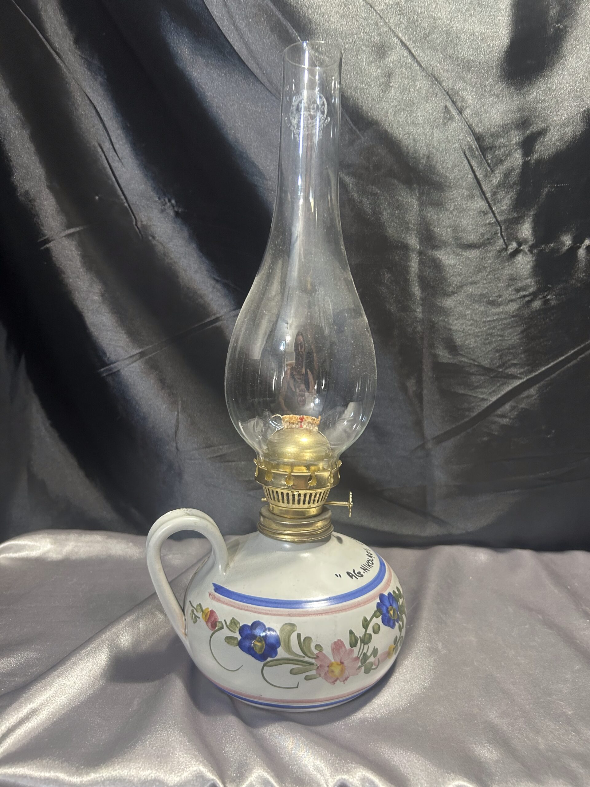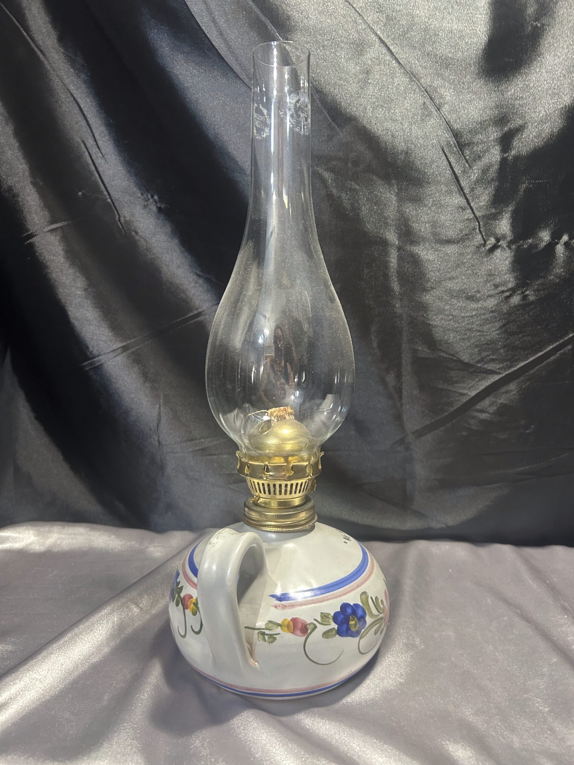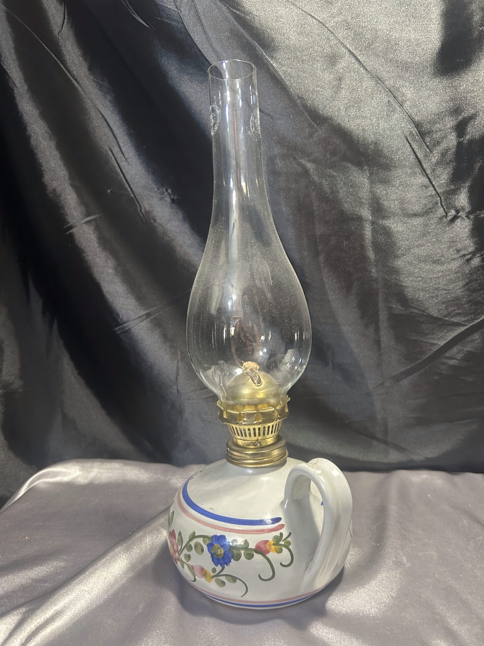 Lampa Naftowa z Ceramicznym Pojemnikiem – Ręcznie Malowana z Regionalnym Wzorem