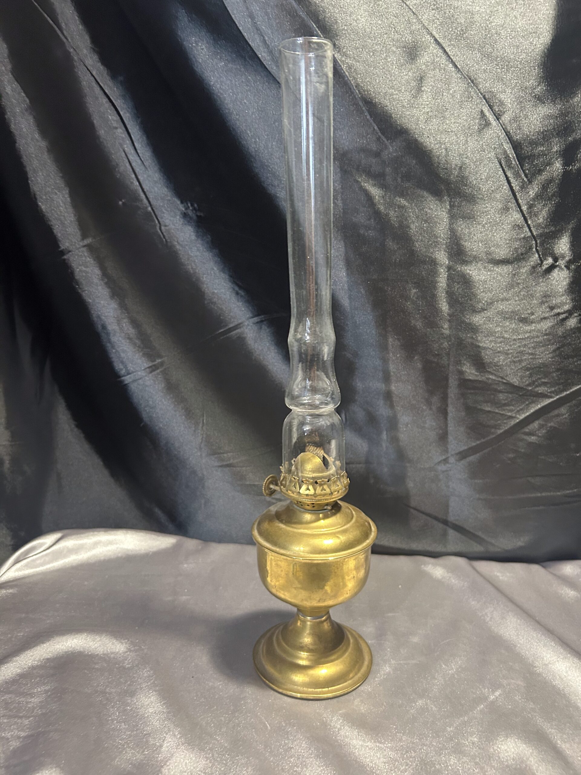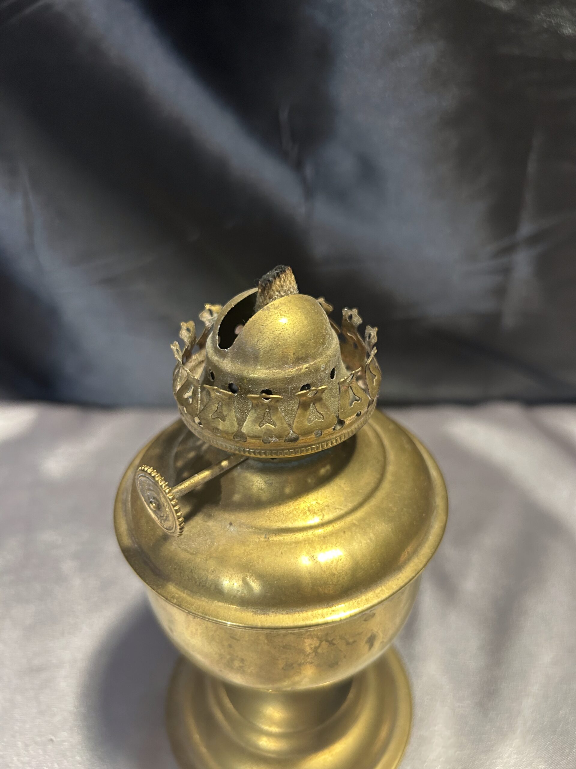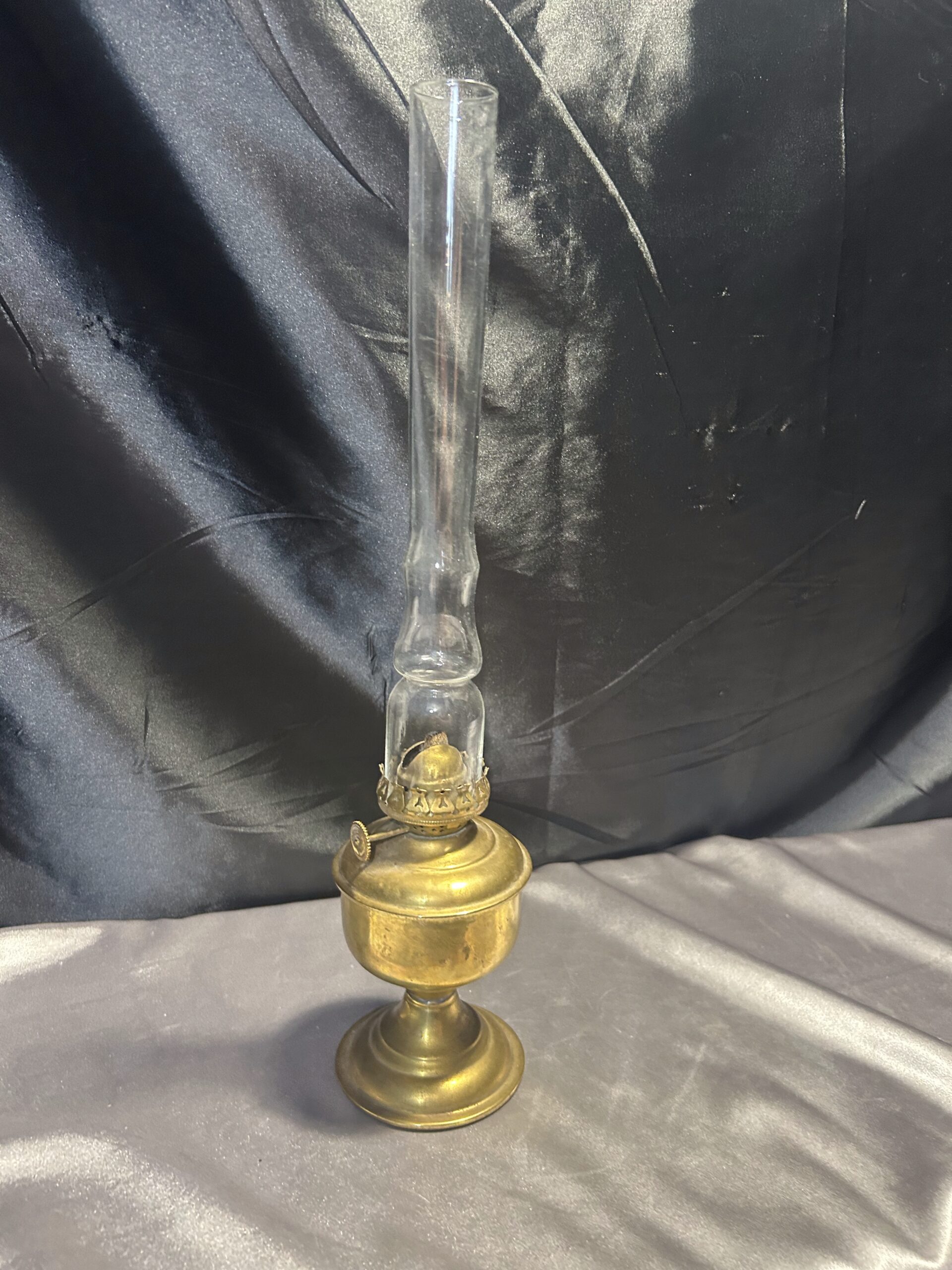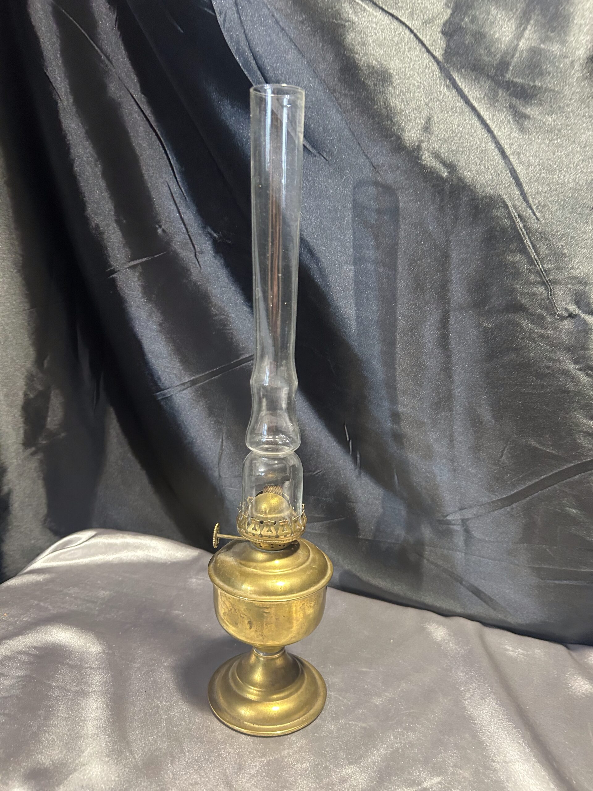 Lampa Naftowa z Mosiądzu na Zdobionej Nodze