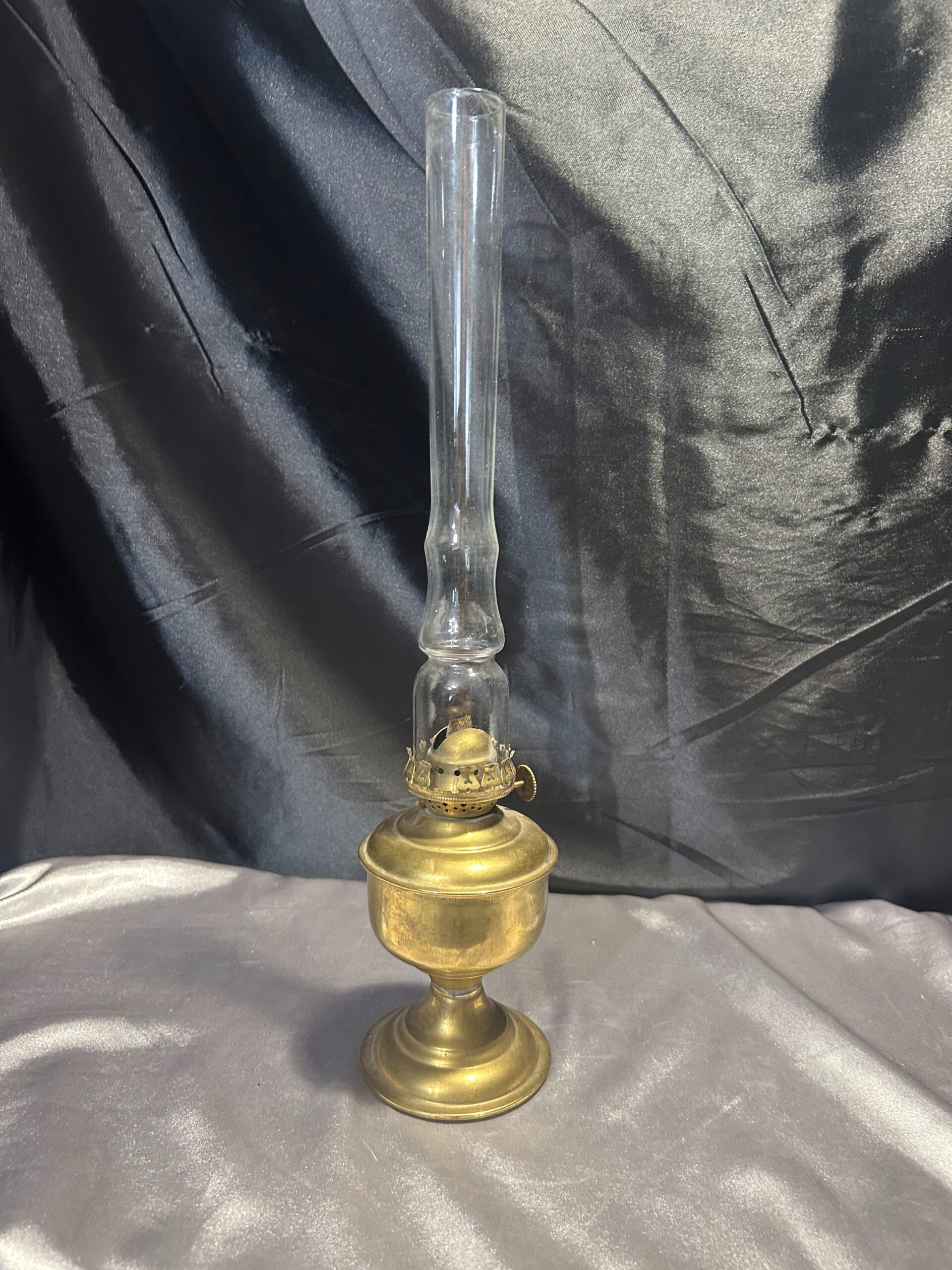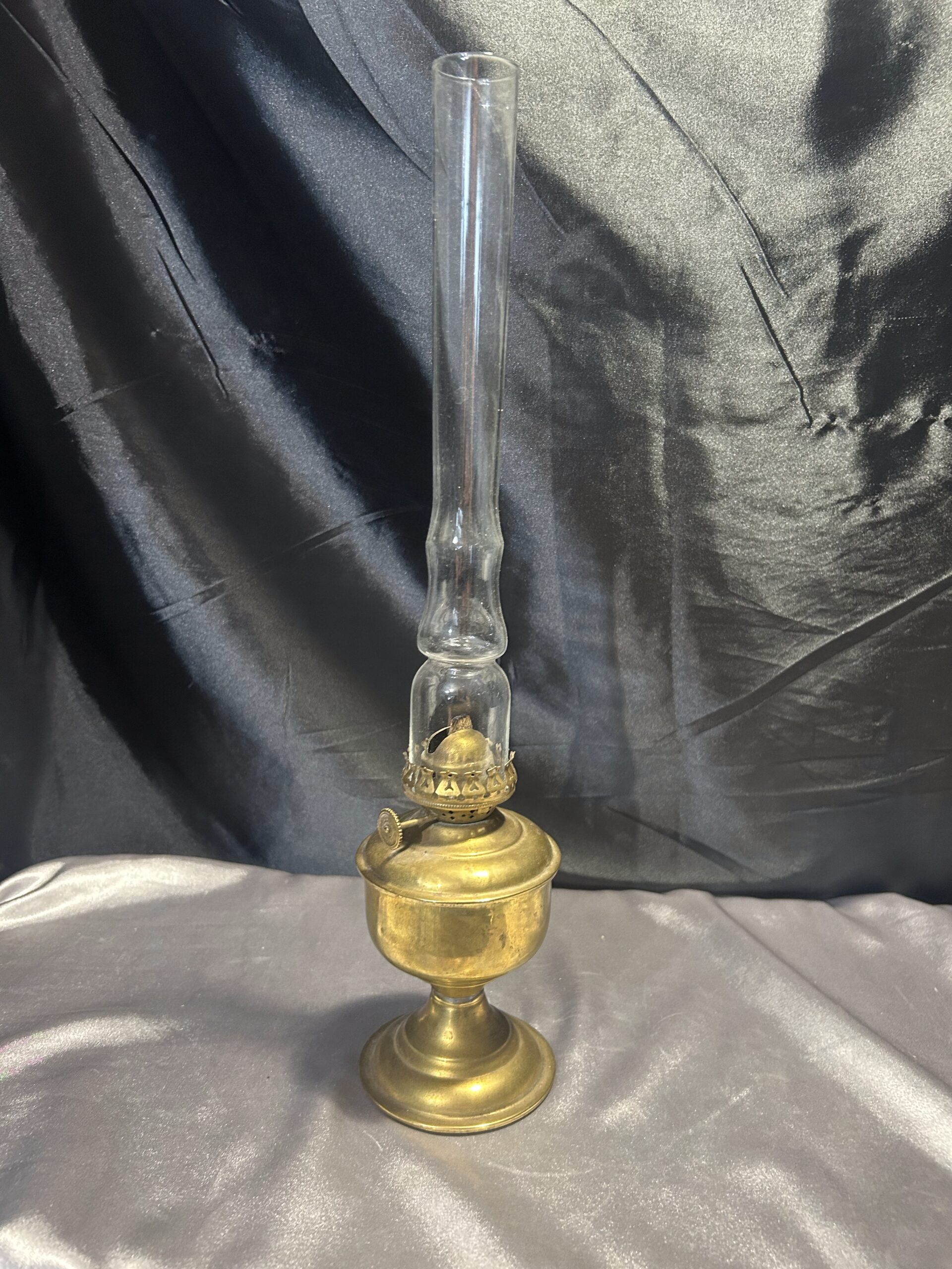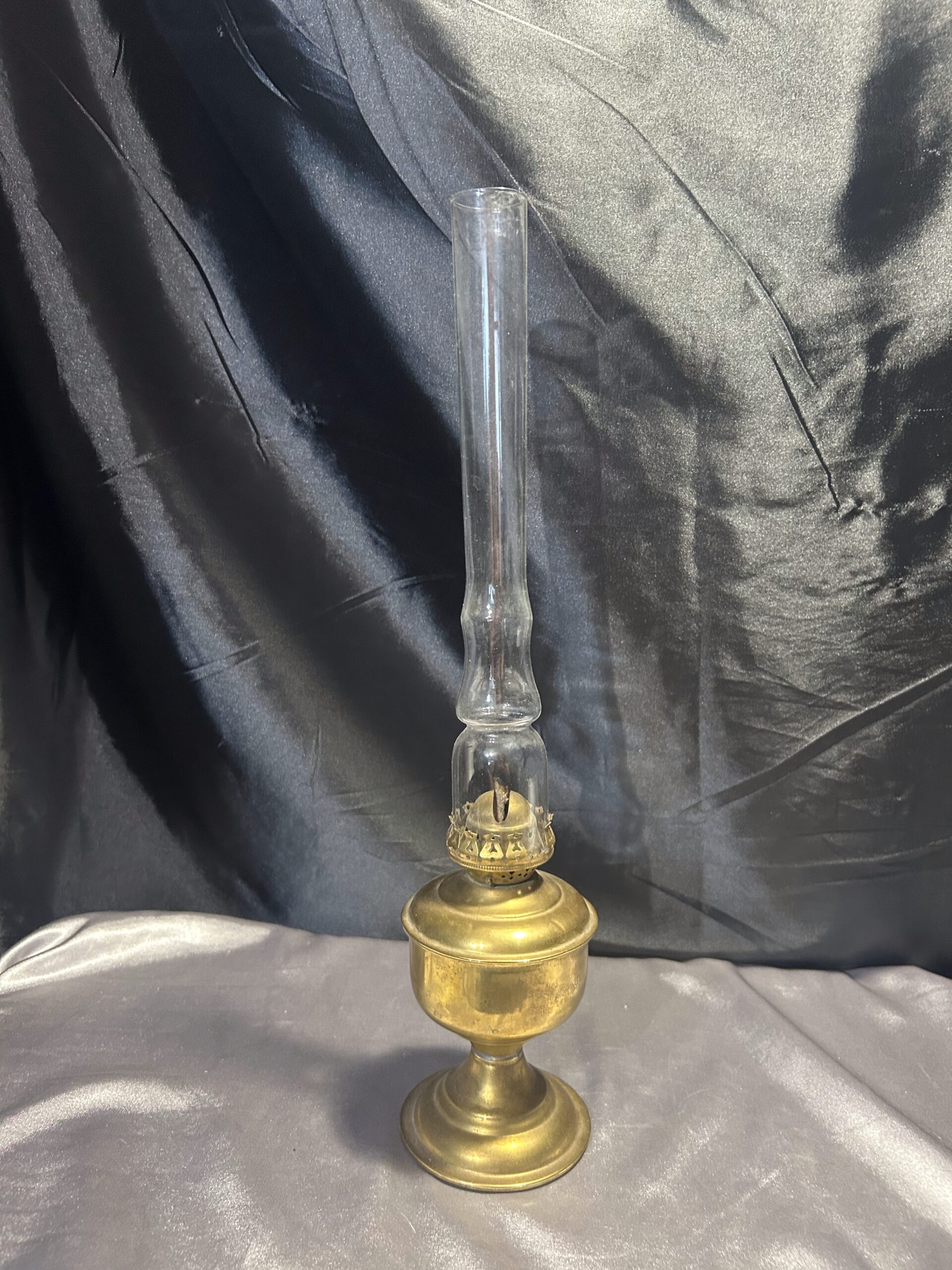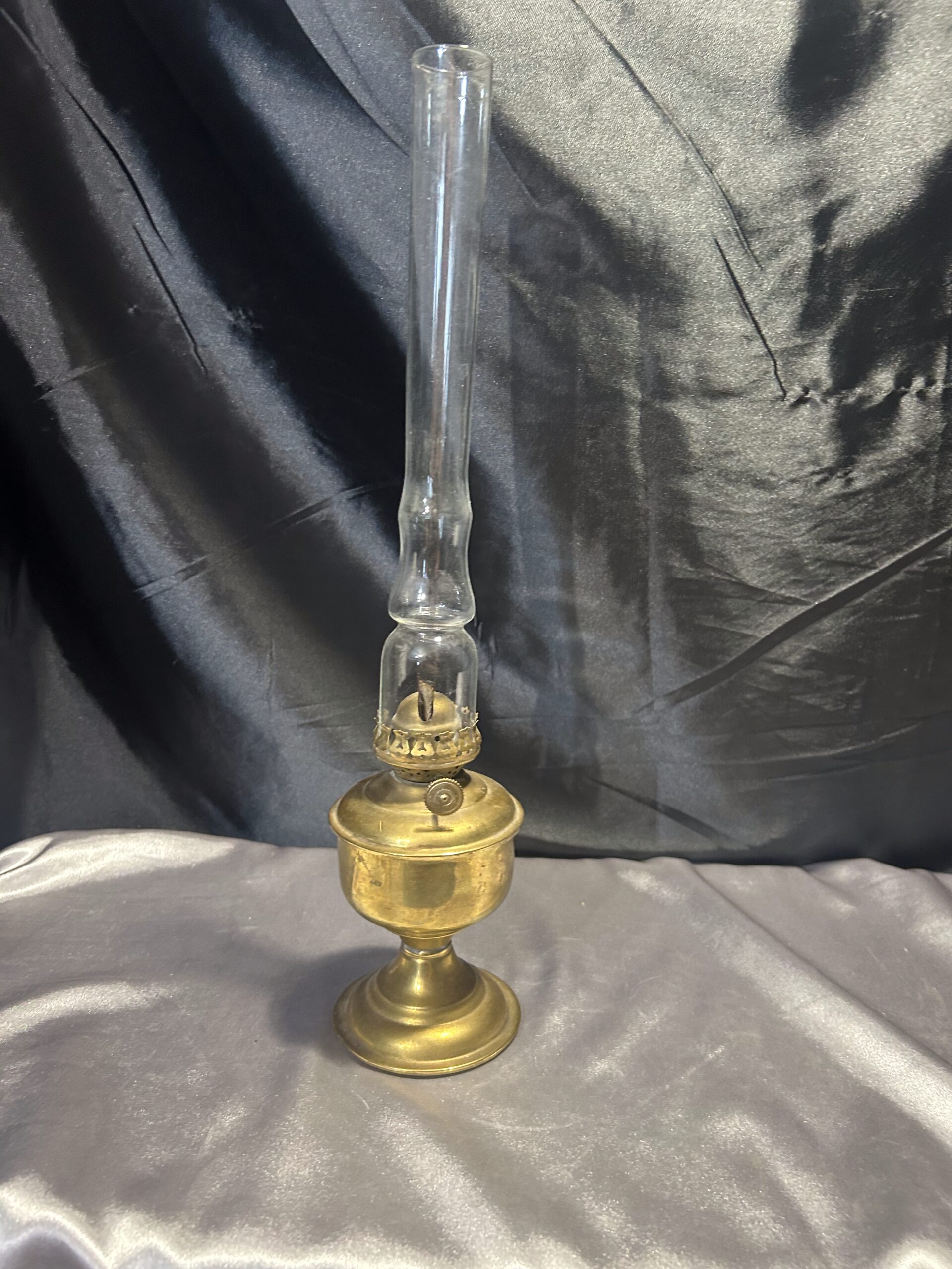Lampa Naftowa z Mosiądzu na Zdobionej Nodze