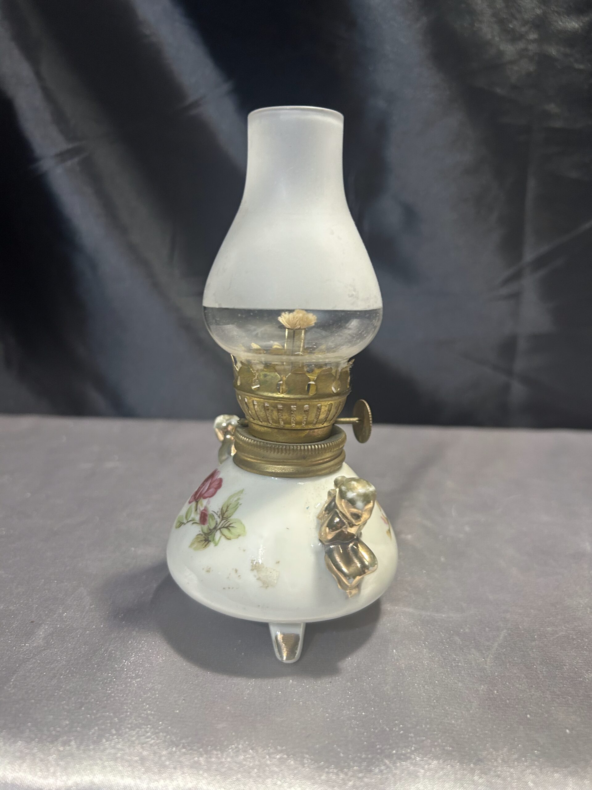 Lampa Naftowa – Ceramiczna z Malowanymi Kwiatami, Sygnowana