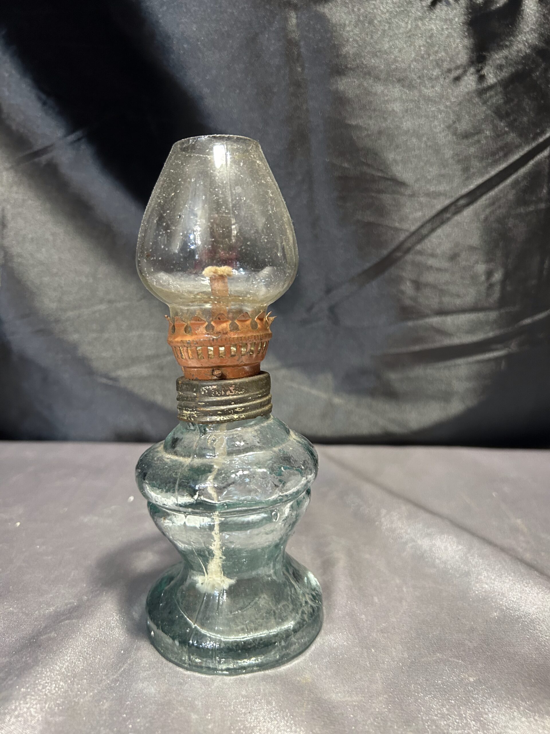 Lampa Naftowa Żółto-Zielonkawy Odcień Szkła Sprawna