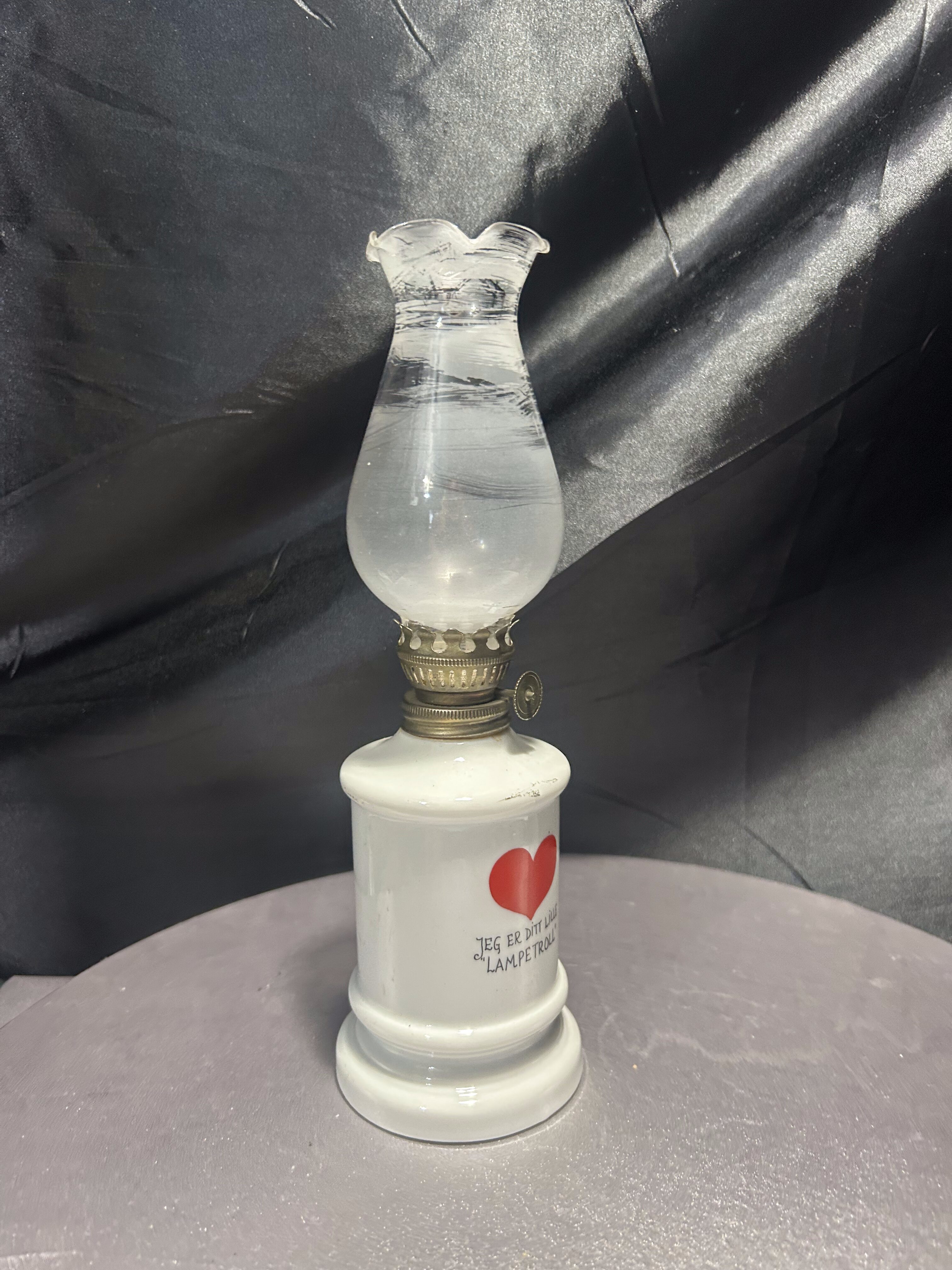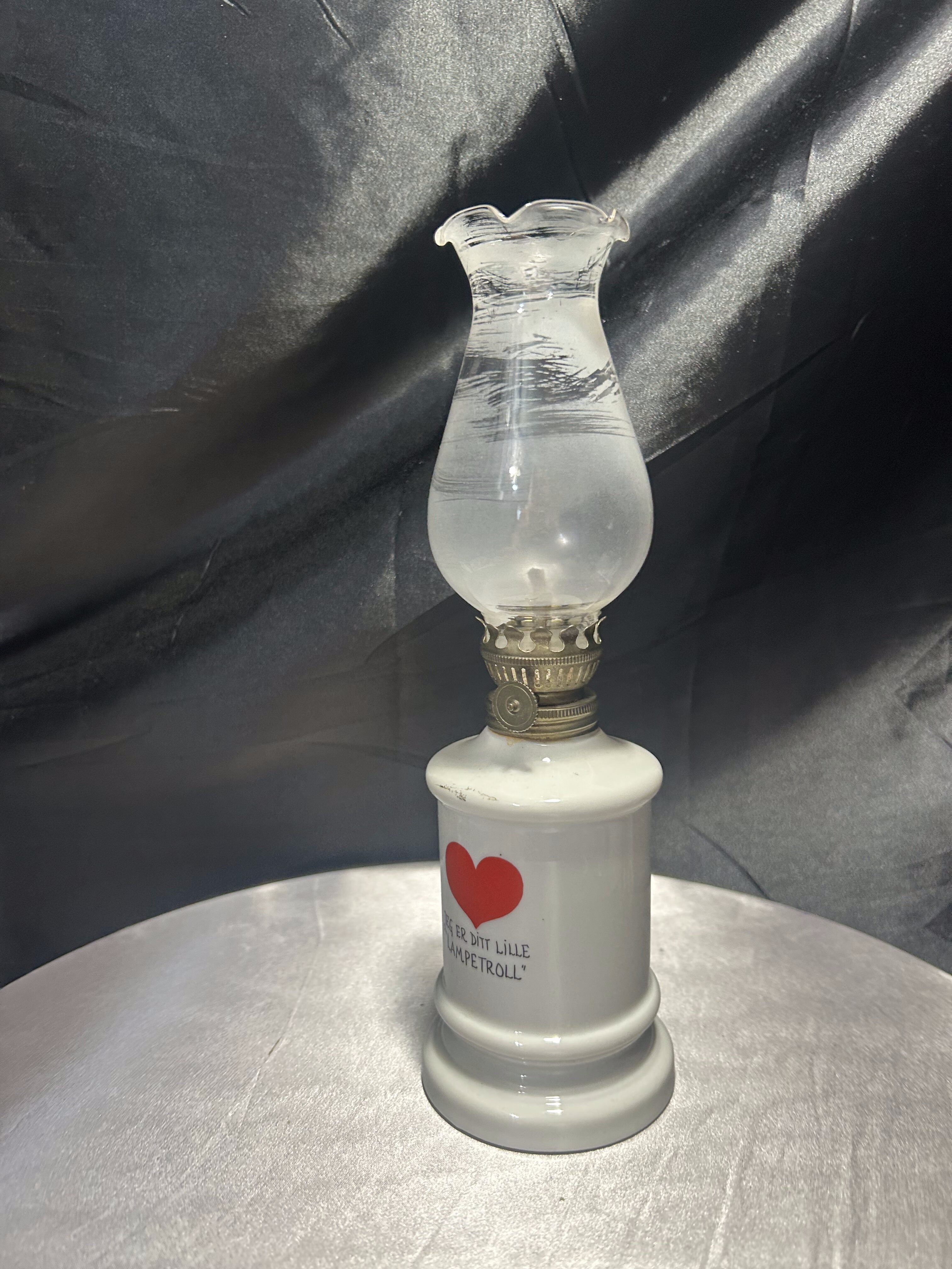 Niewielka, sprawna lampa naftowa z porcelanową podstawą ozdobioną po obu stronach: z jednej strony wizerunkiem uroczego trolla w czerwonym ubranku, a z drugiej strony napisem z czerwonym sercem: „Jeg er ditt lille lampetroll”, co w tłumaczeniu z norweskiego oznacza: „Jestem twoim małym lampowym trollem”. Całość wieńczy szklany klosz o delikatnie pofalowanym brzegu, nadający lampie miękkiego, przytulnego charakteru. To połączenie funkcjonalności z odrobiną skandynawskiego humoru i folkloru.