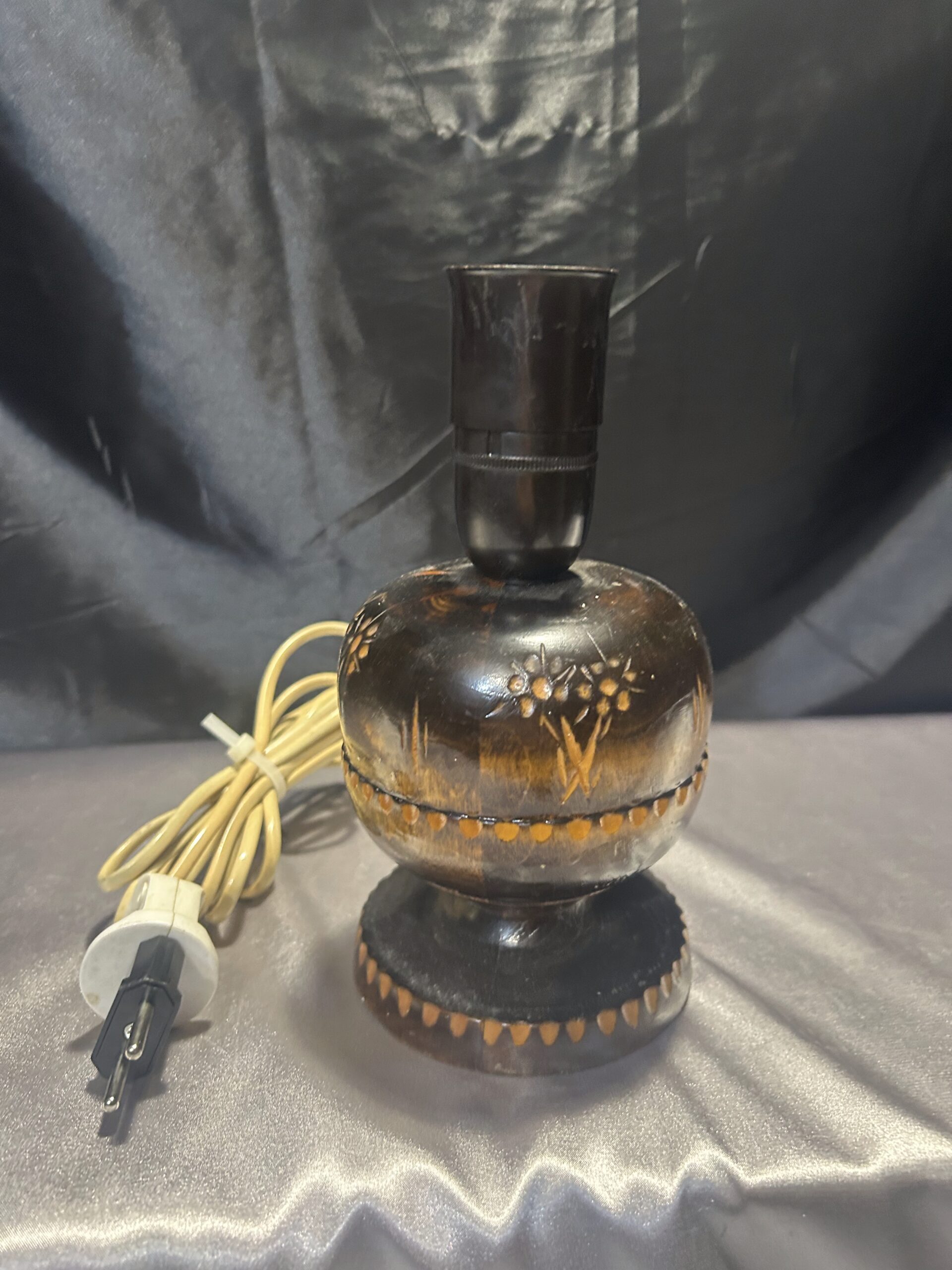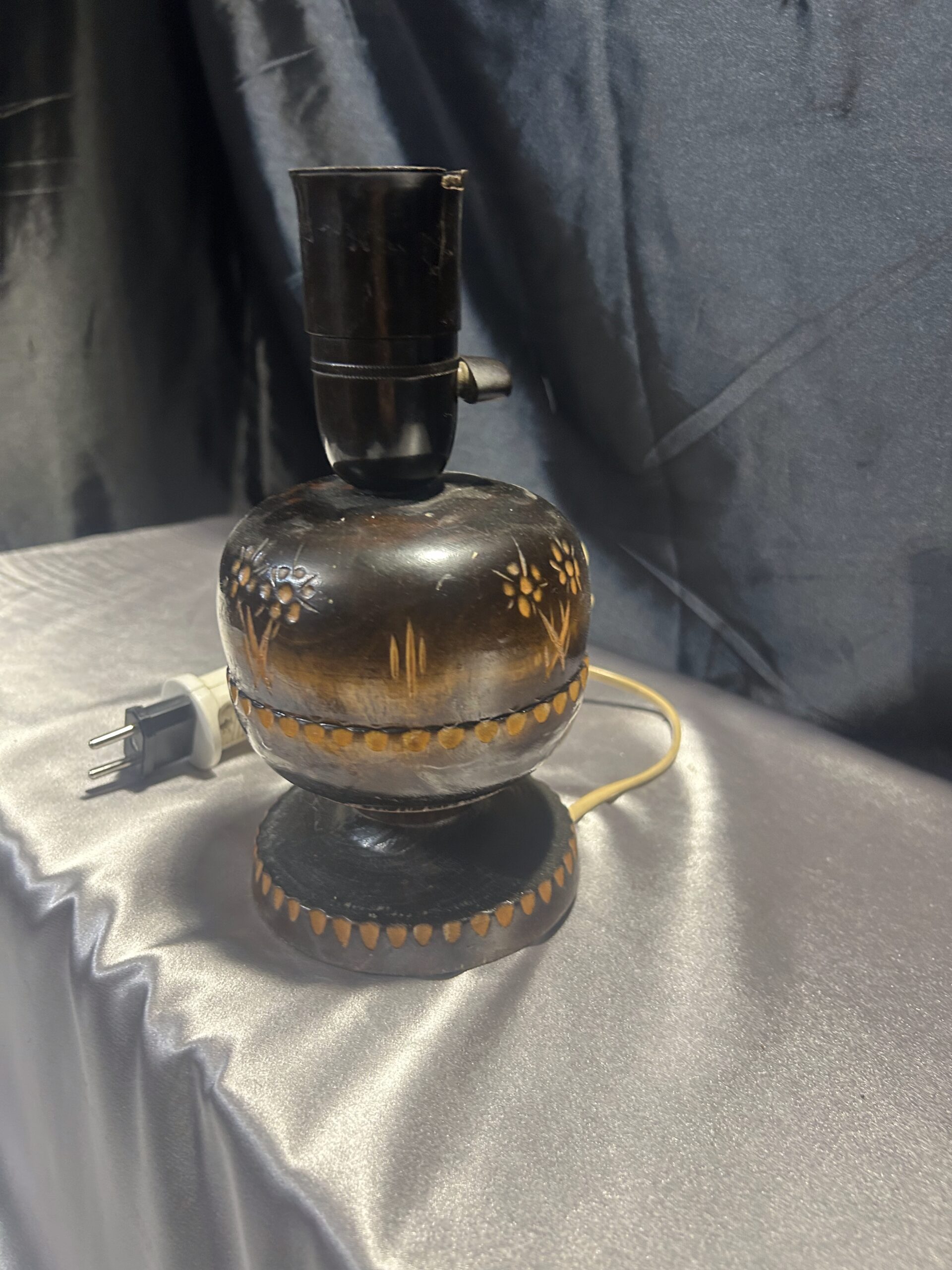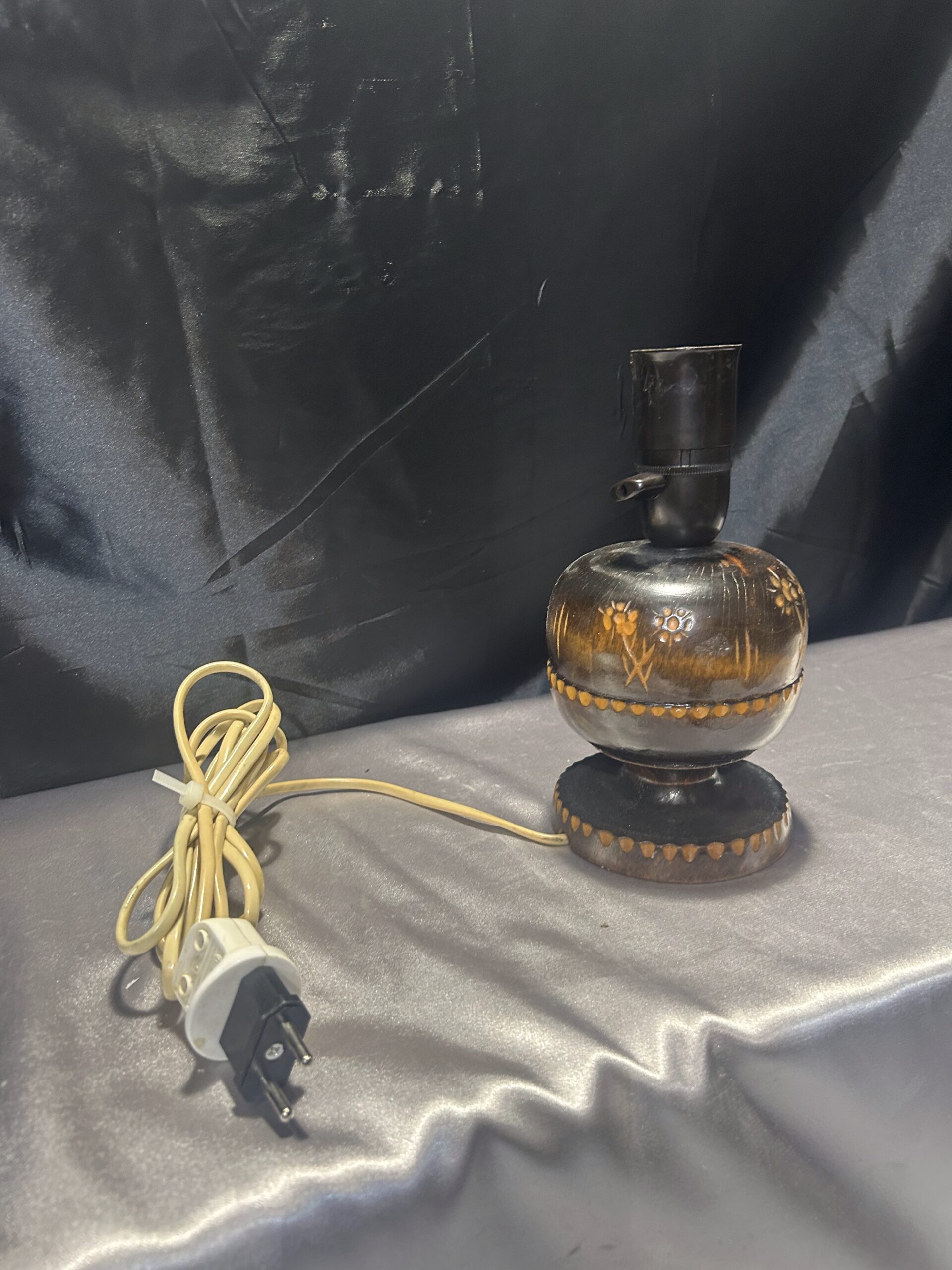 Unikalna lampa stojąca wykonana z drewna, ozdobiona delikatnymi rzeźbieniami i rycinami, które nadają jej wyjątkowego charakteru. Wyposażona w włącznik na lampie, łączy w sobie funkcjonalność i dekoracyjność. Idealna na szafkę, biurko lub komodę, wprowadzając do wnętrza ciepły, naturalny akcent.