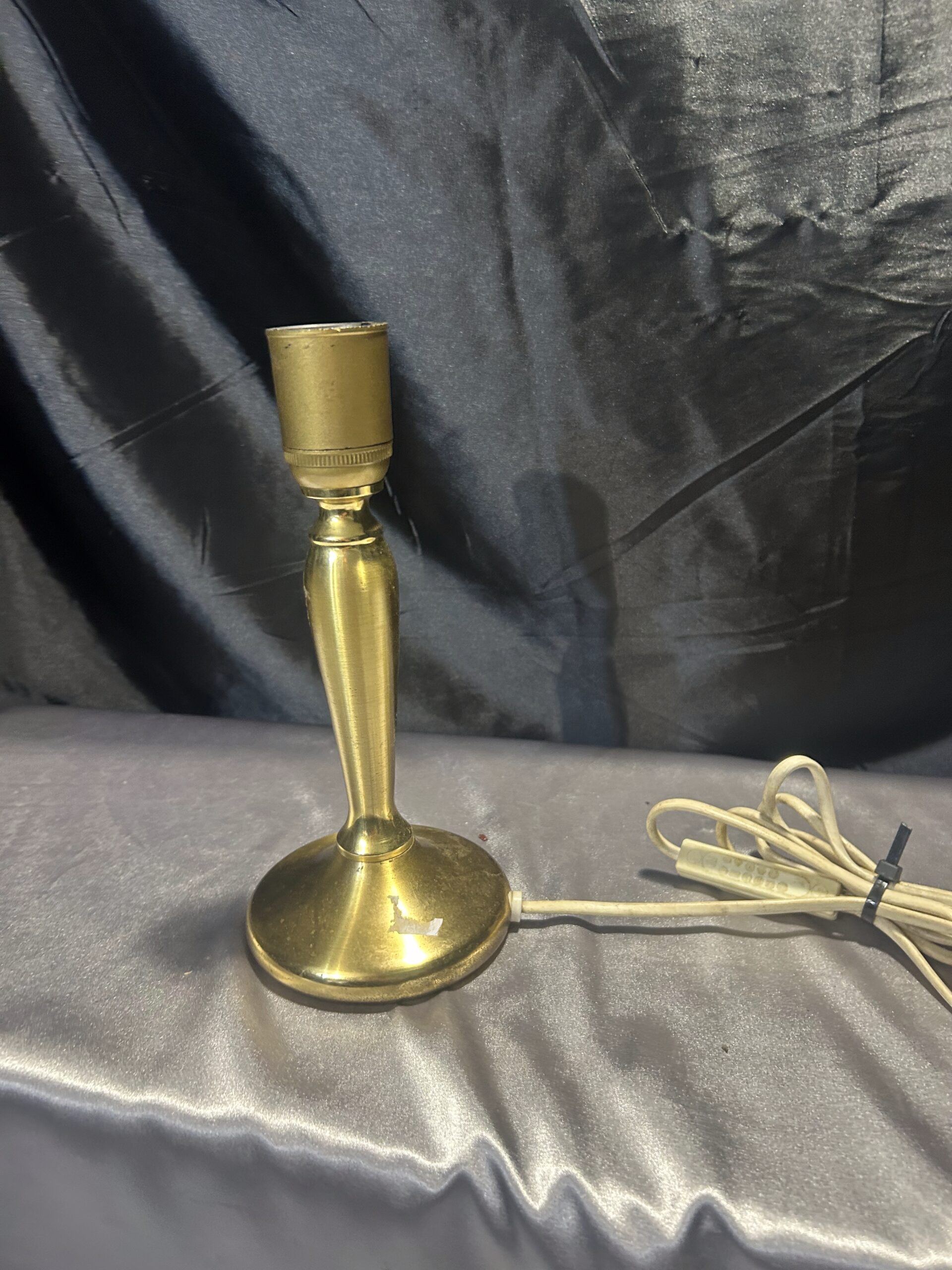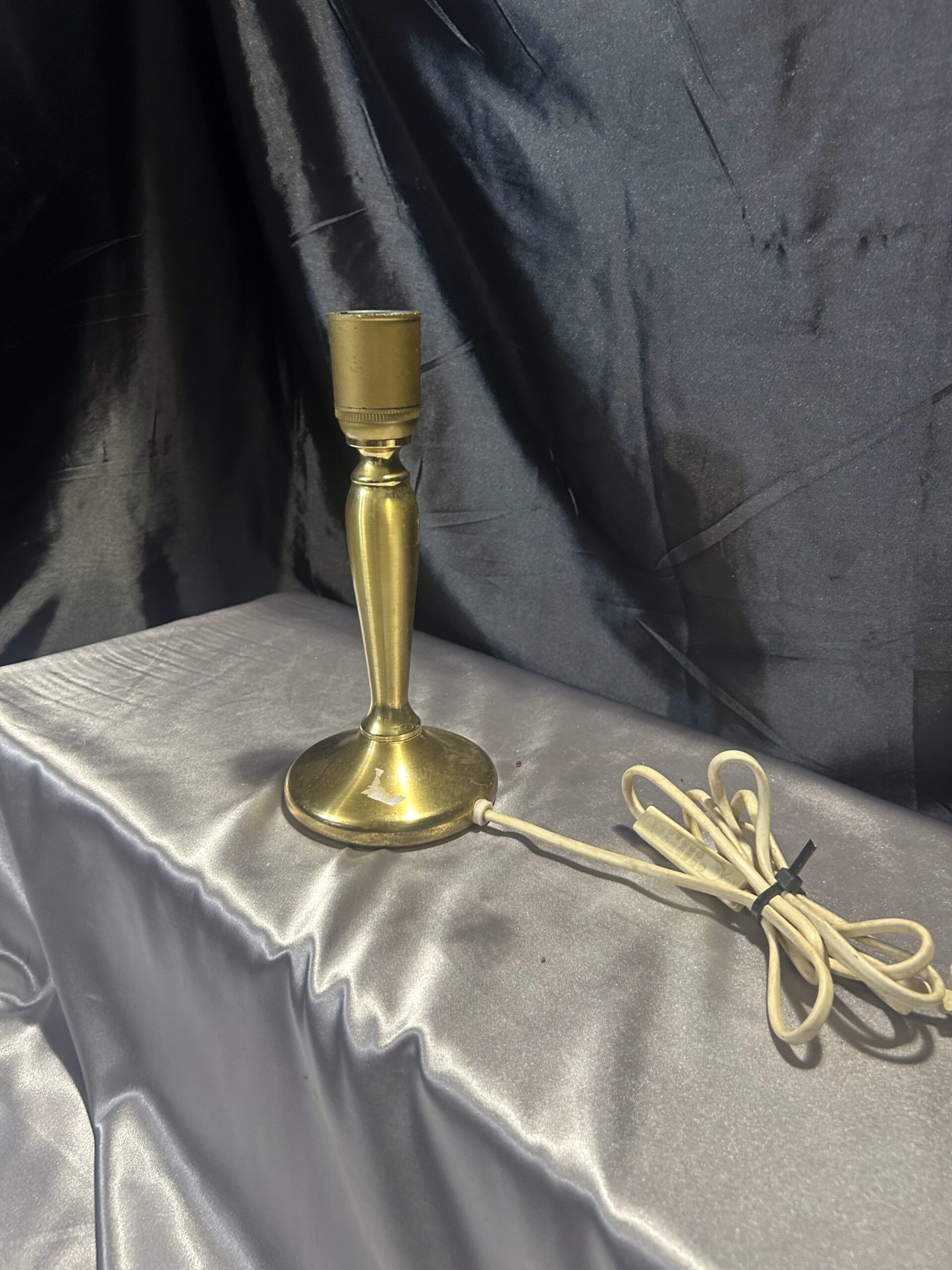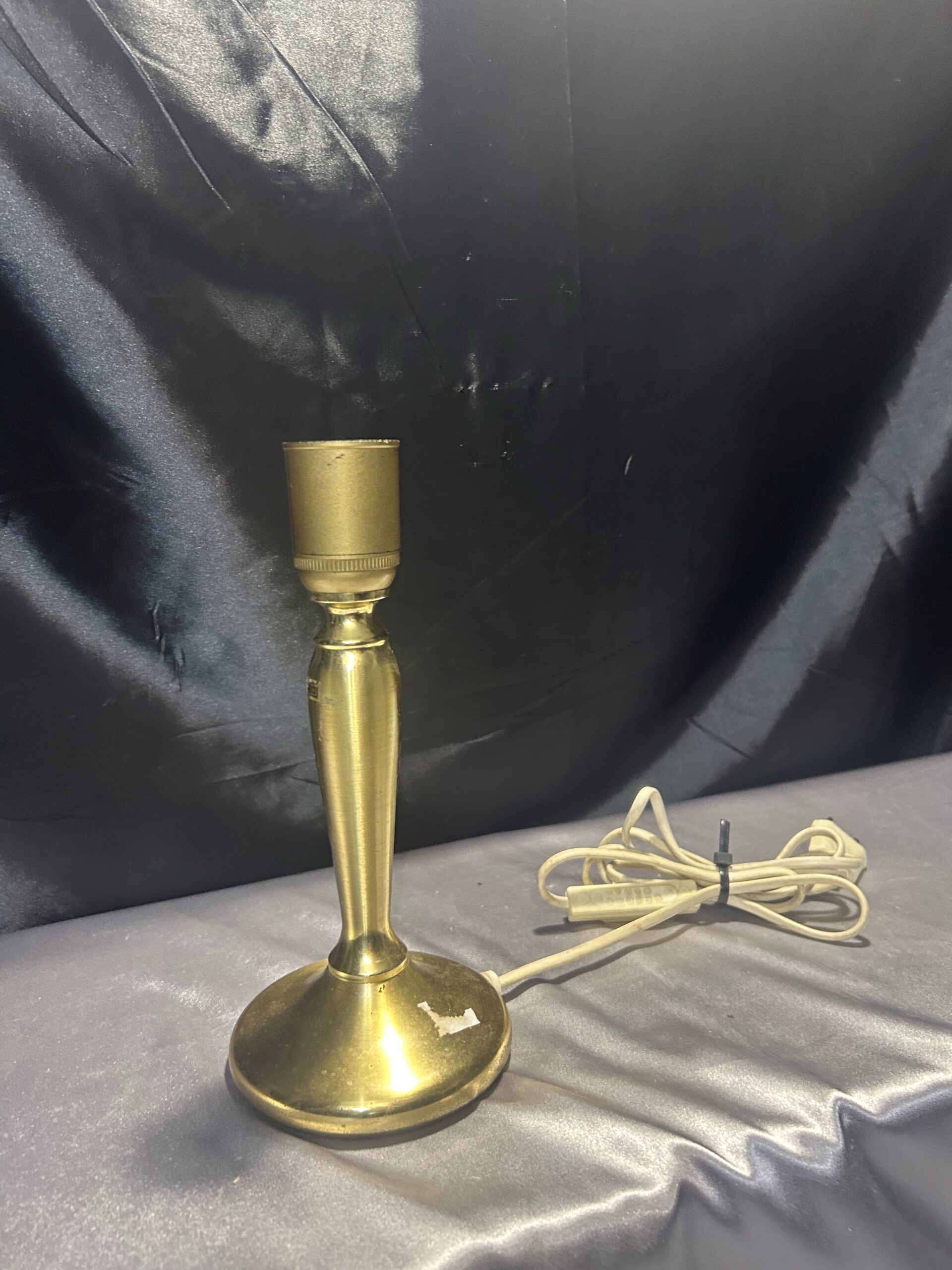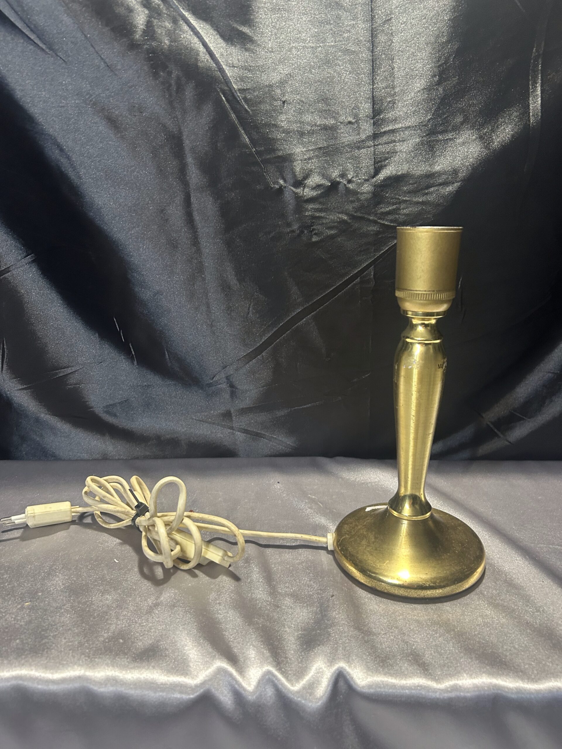Minimalistyczna lampa stojąca wykonana z mosiądzu, w eleganckim złotym kolorze. Jej prosta forma i praktyczny włącznik na kablu sprawiają, że jest idealnym dodatkiem na komodę, szafkę lub parapet. Połączenie funkcjonalności i uniwersalnego designu czyni ją odpowiednią do różnych wnętrz.