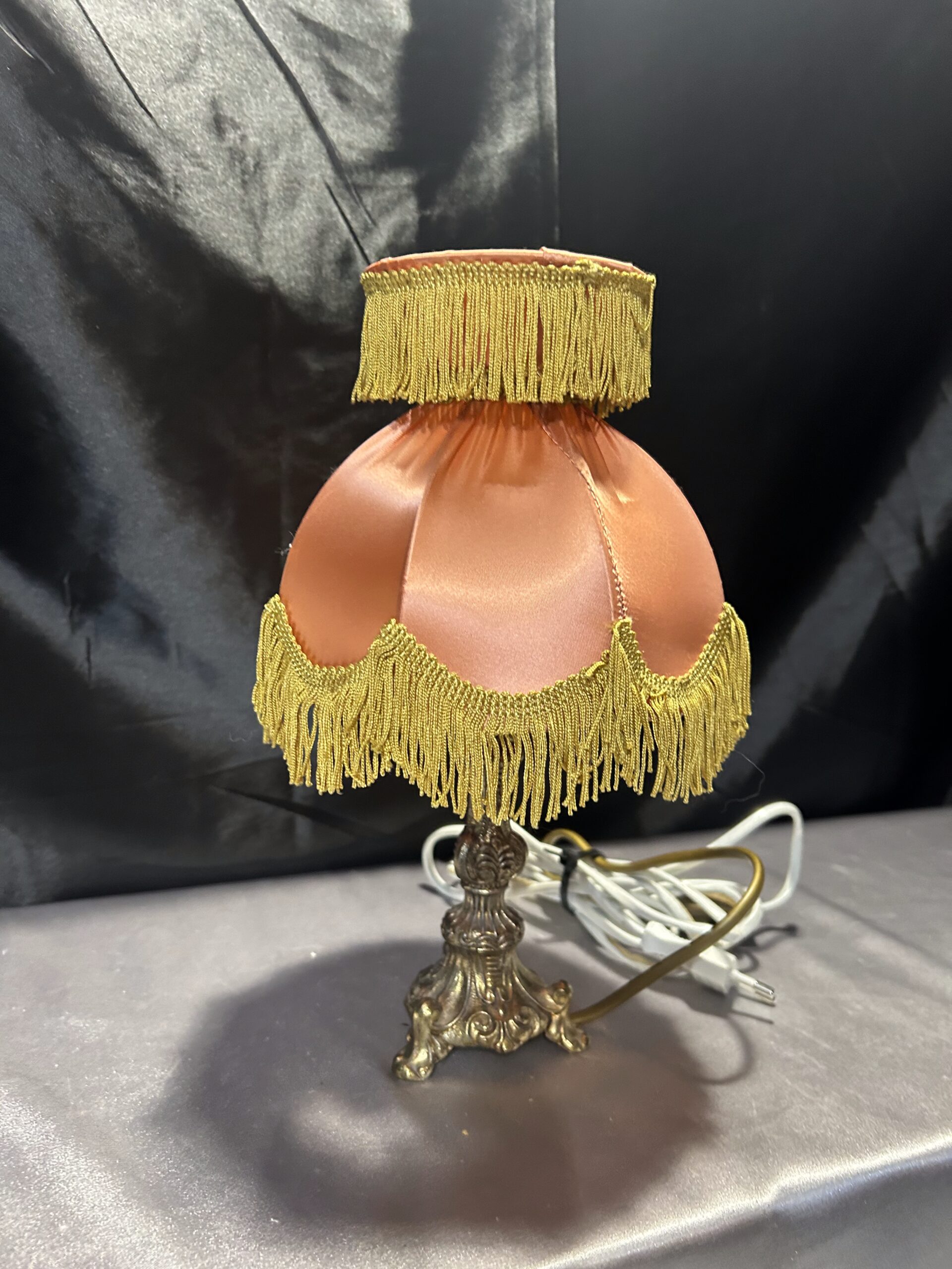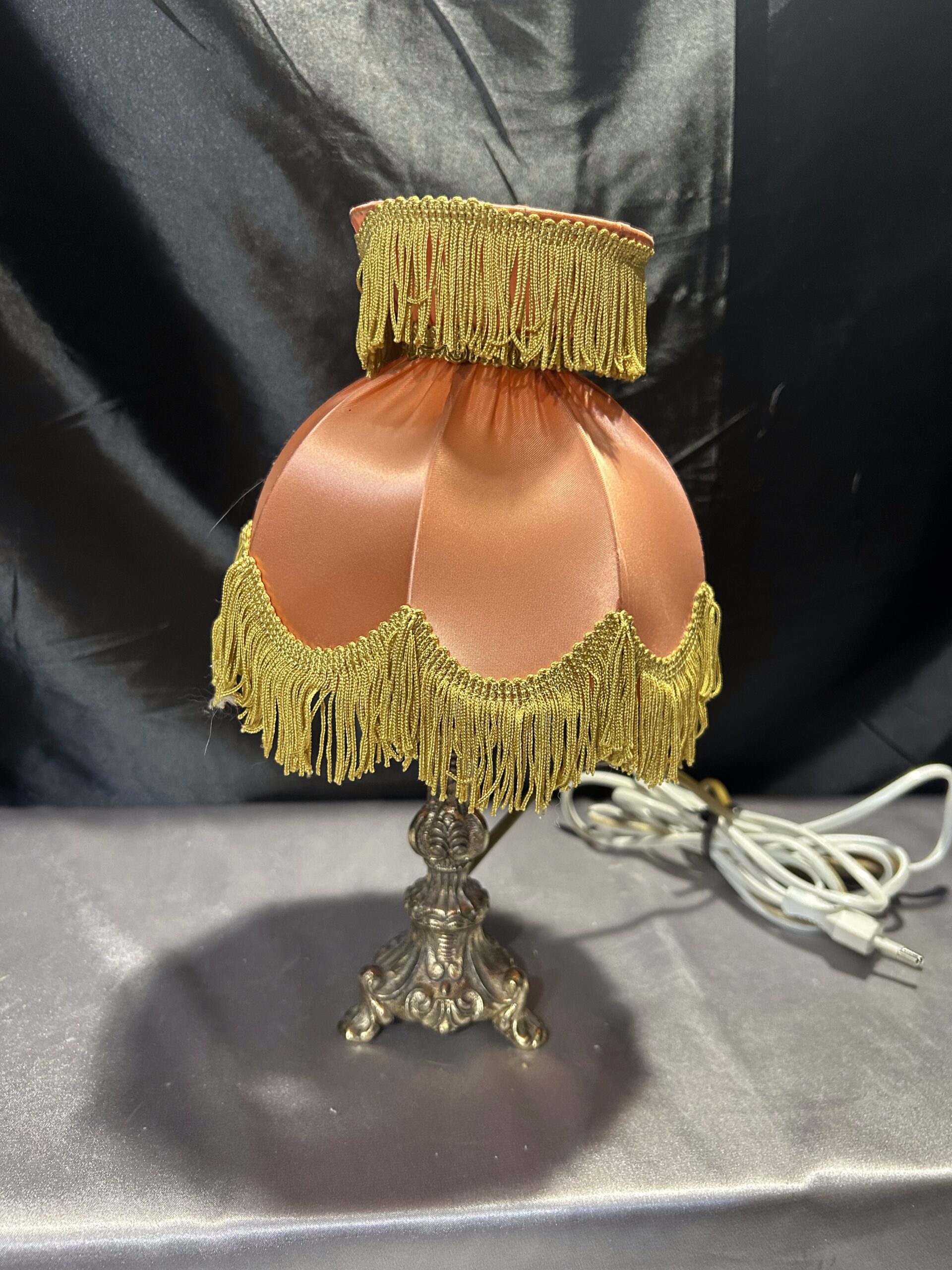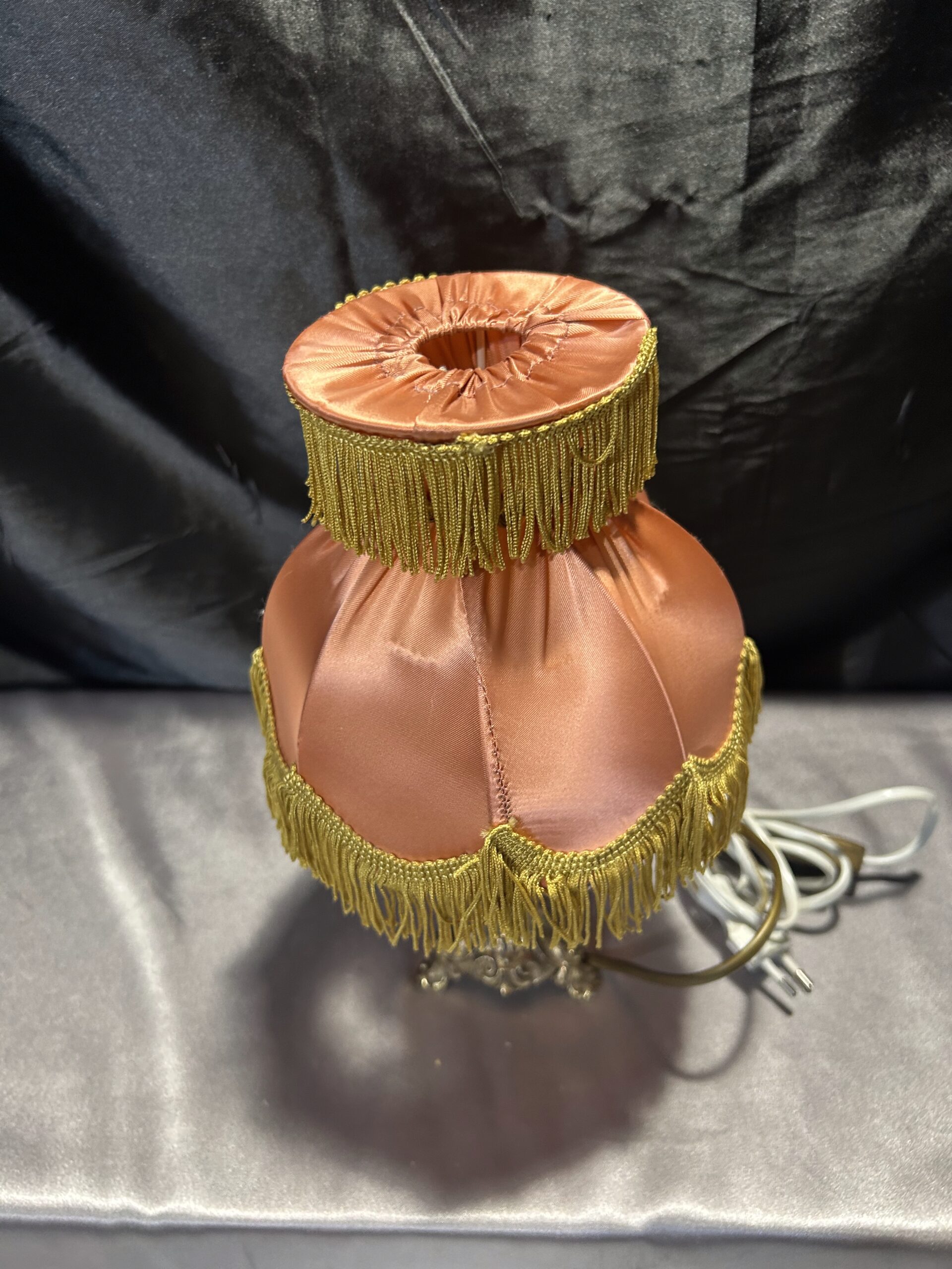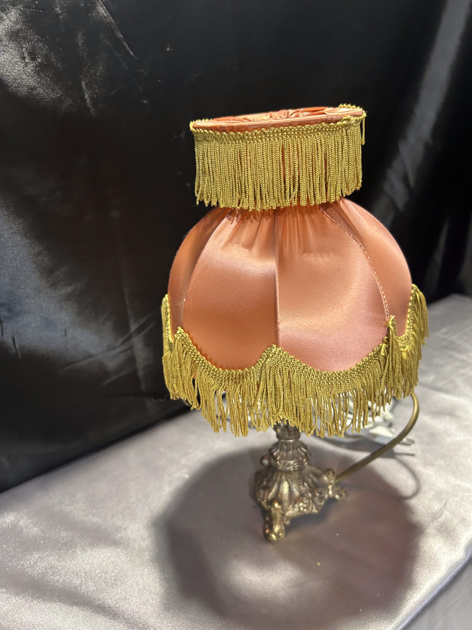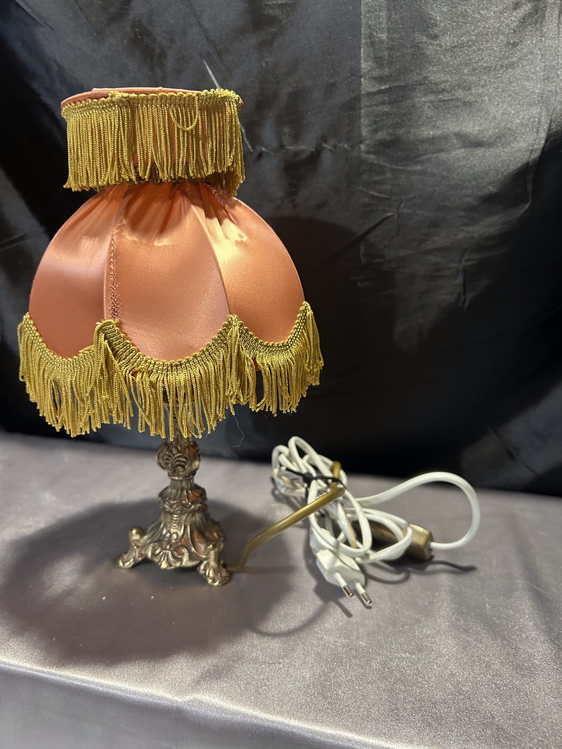 - Abażur: łososiowy kolor ze złotymi frędzlami