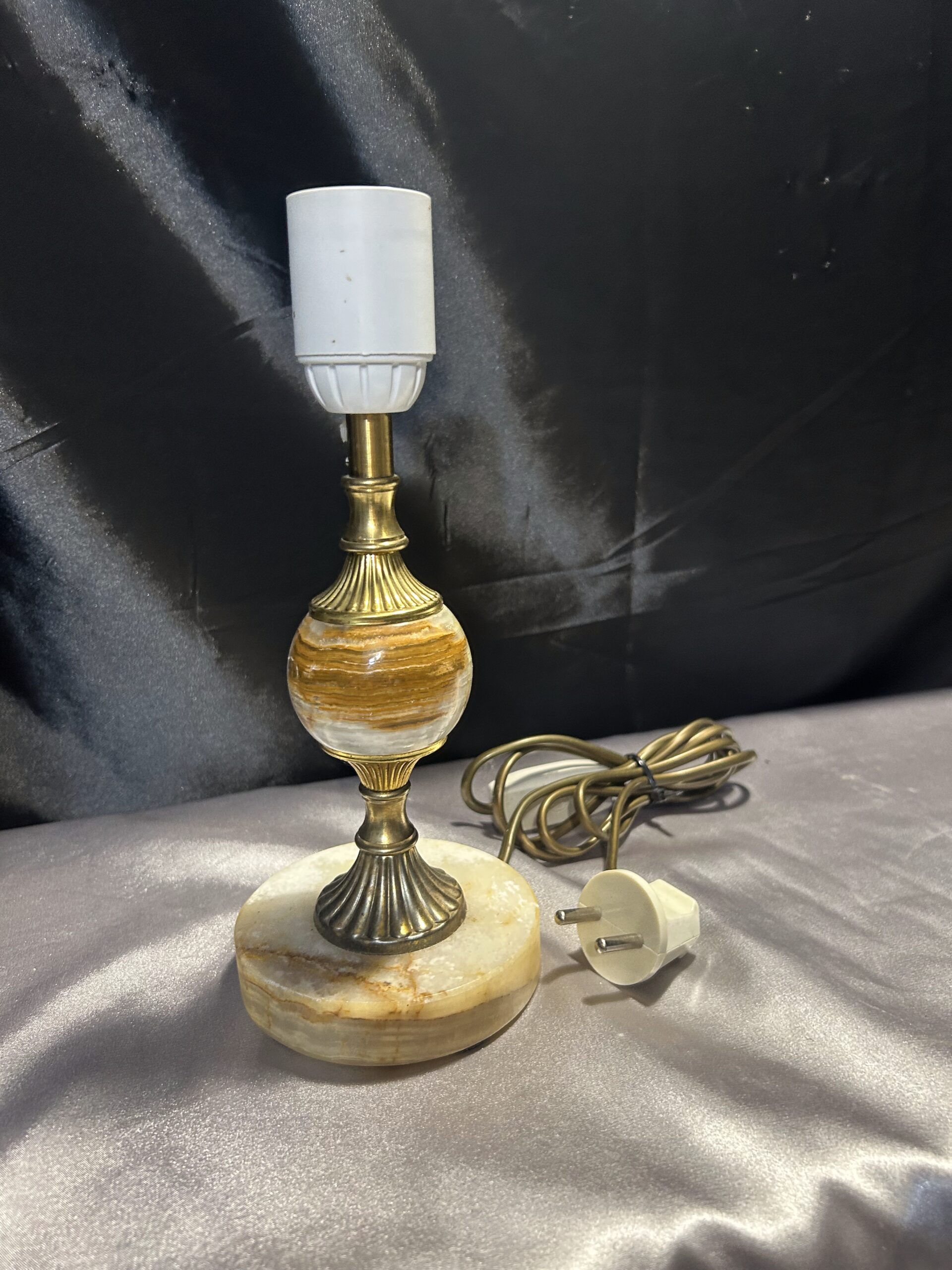 Lampa Stojąca z Onyksu i Mosiądzu – Elegancja w Kolorach Brązu i Beżu