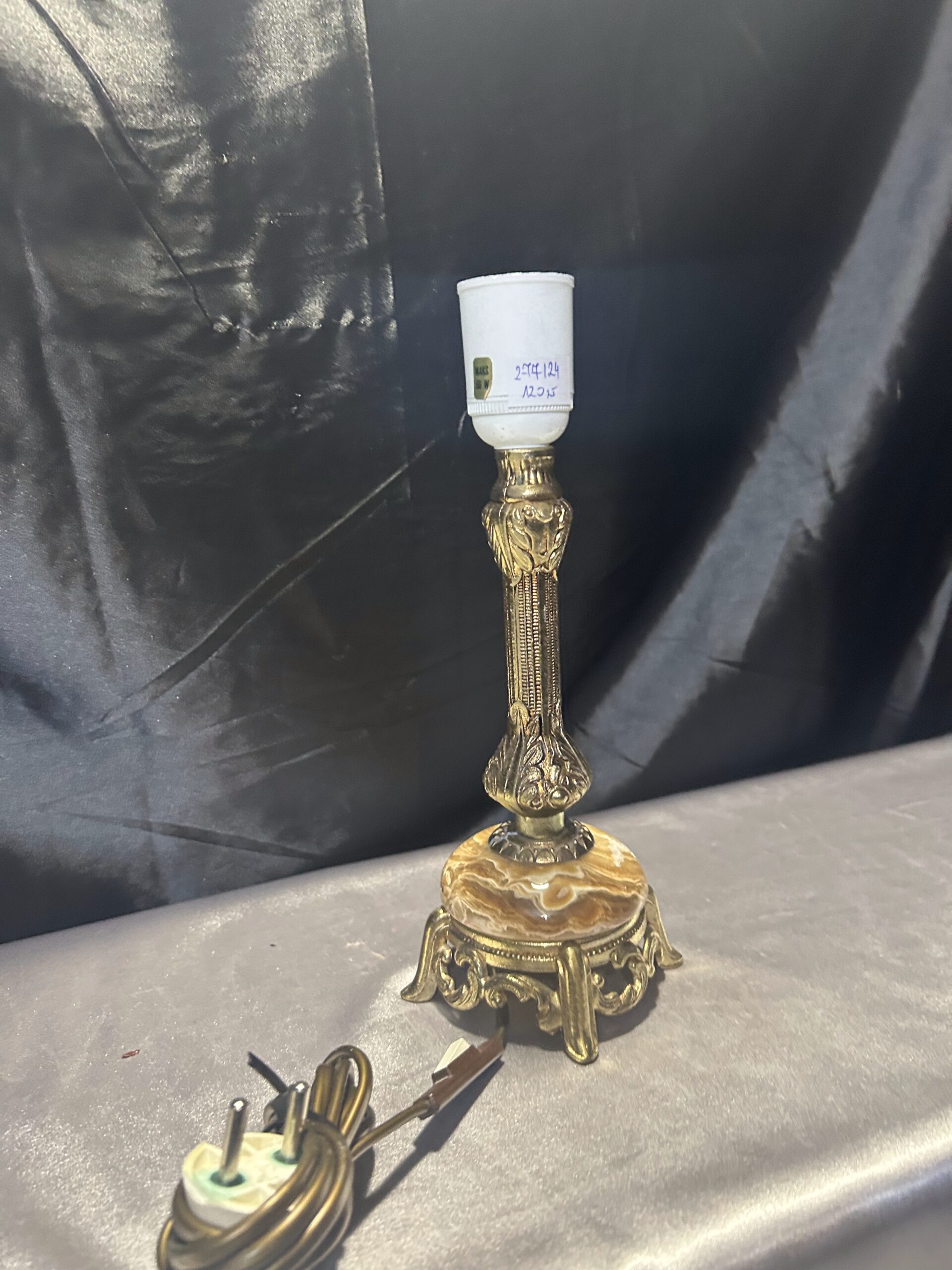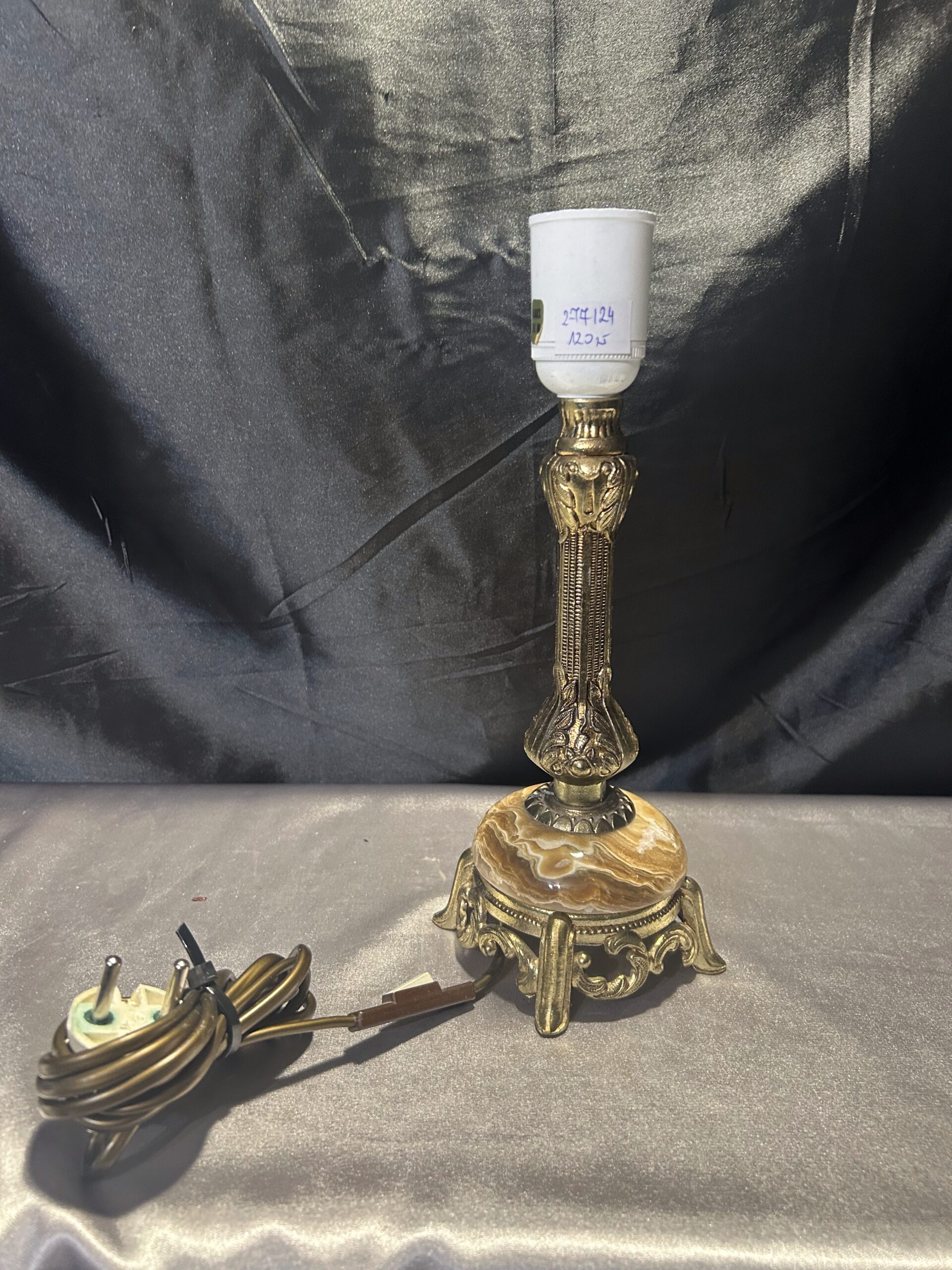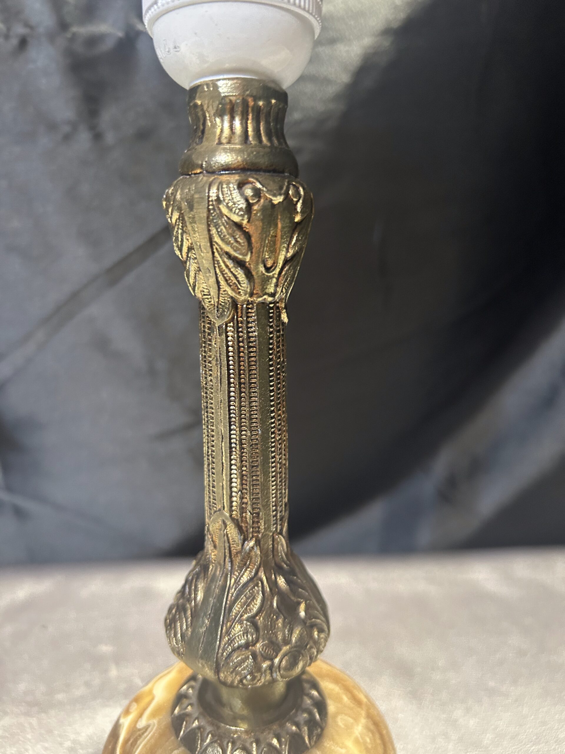 Lampa Stojąca z Onyksu i Mosiądzu – Rzeźbiony i Toczony Onyks