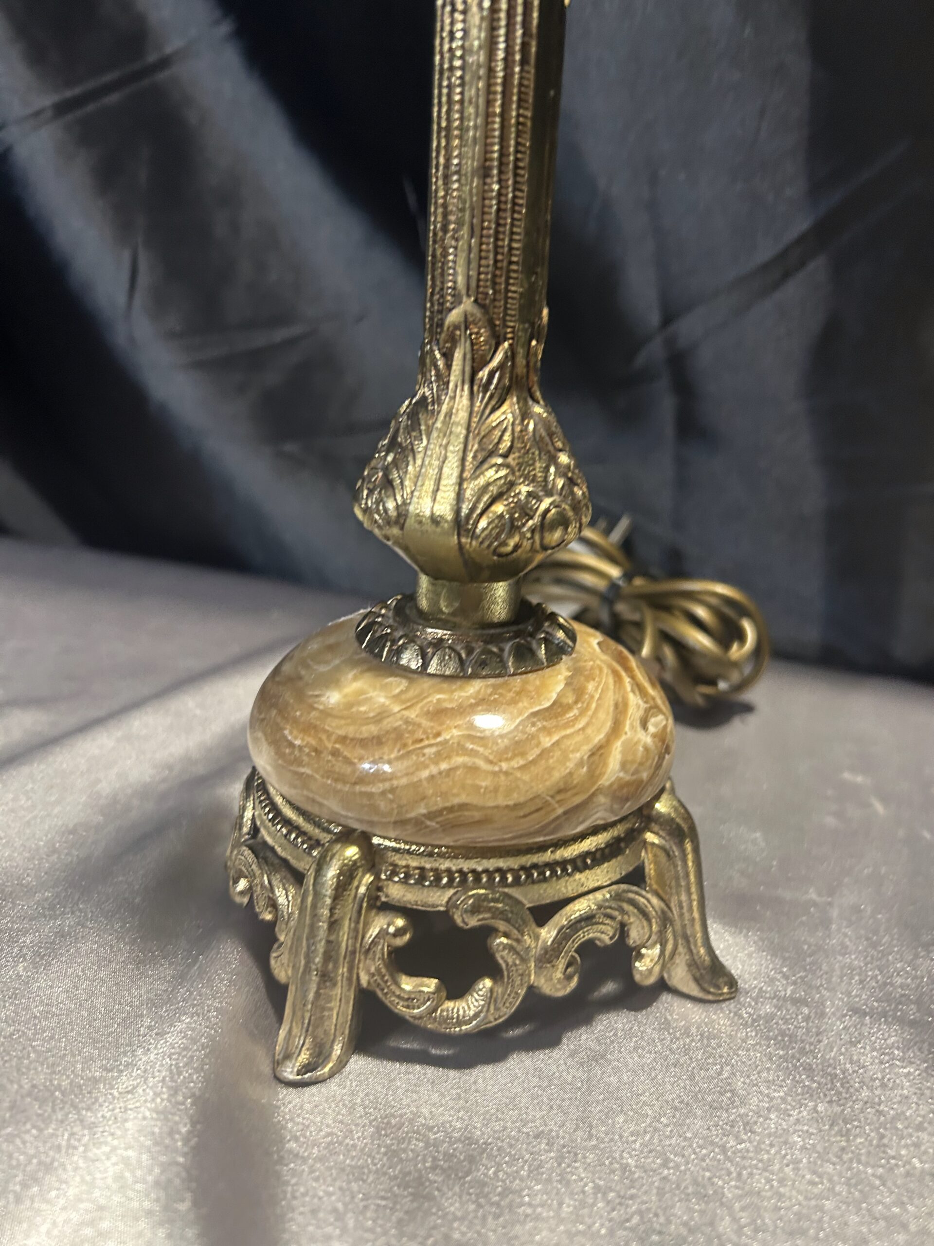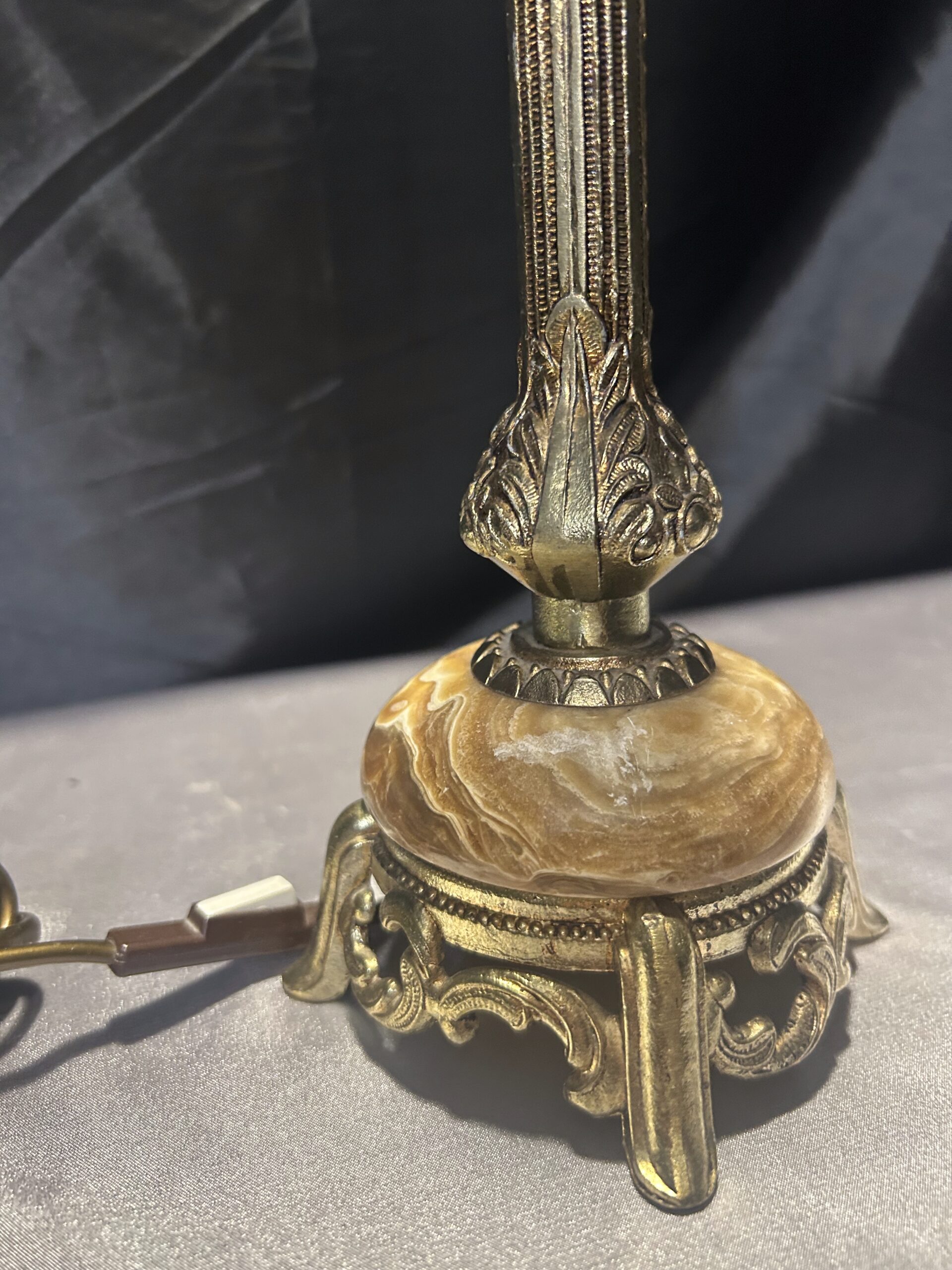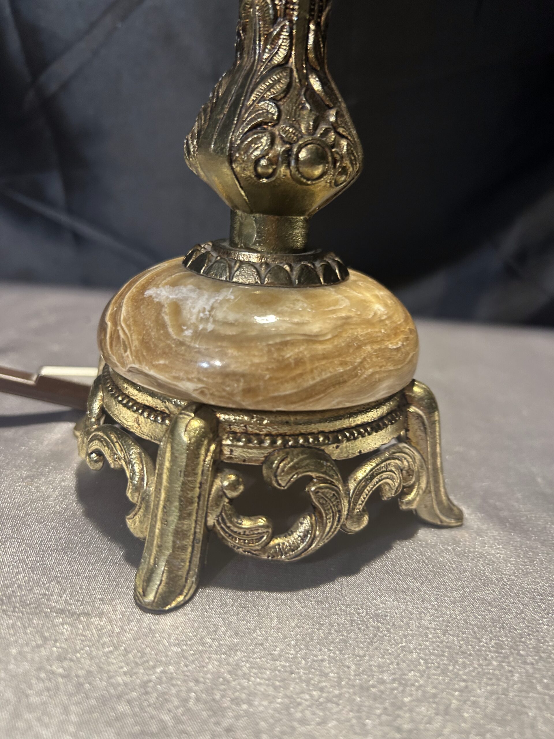 Zestaw 2 Lamp z Onyksu i Mosiądzu – Eleganckie i Zdobione