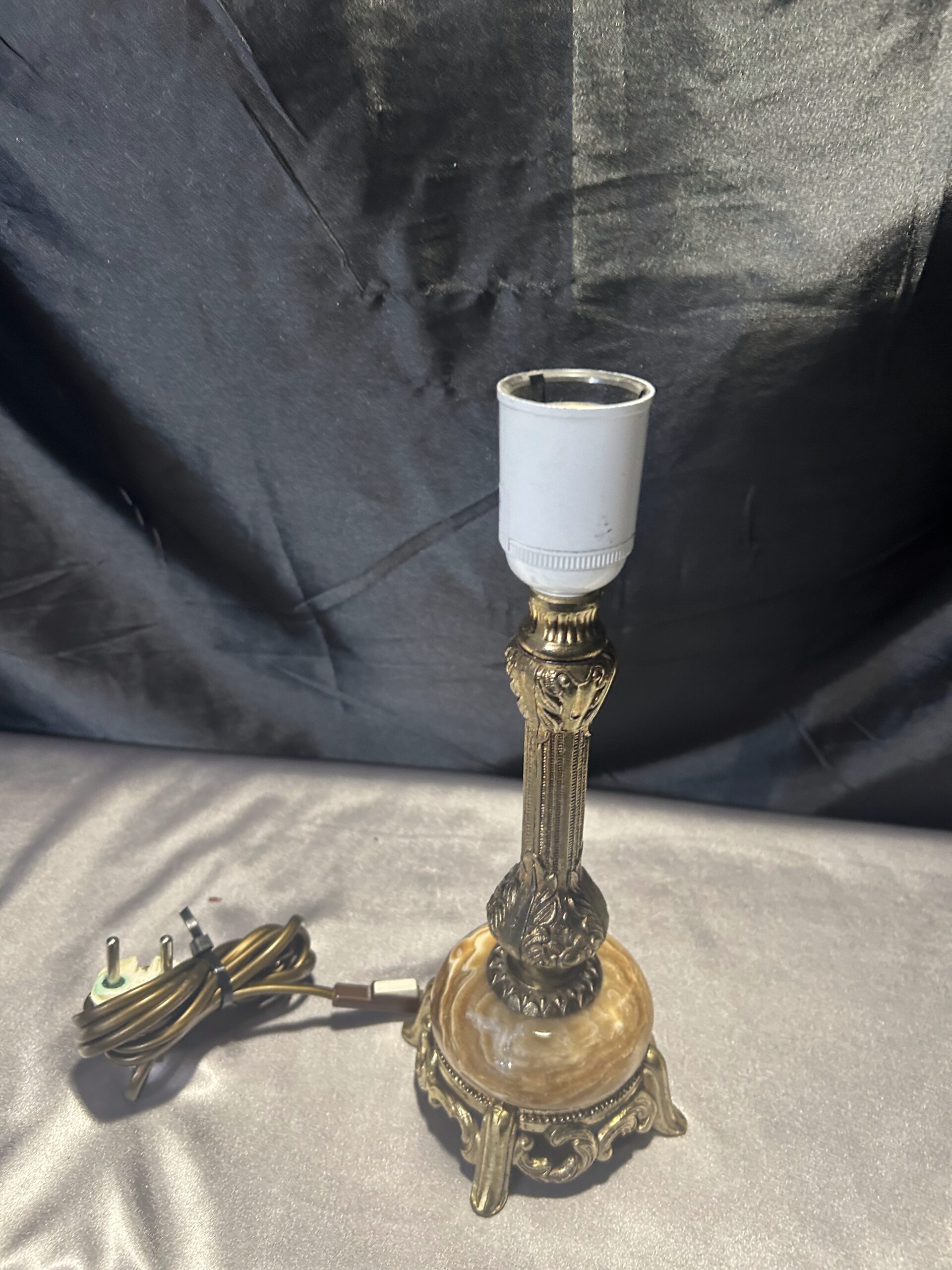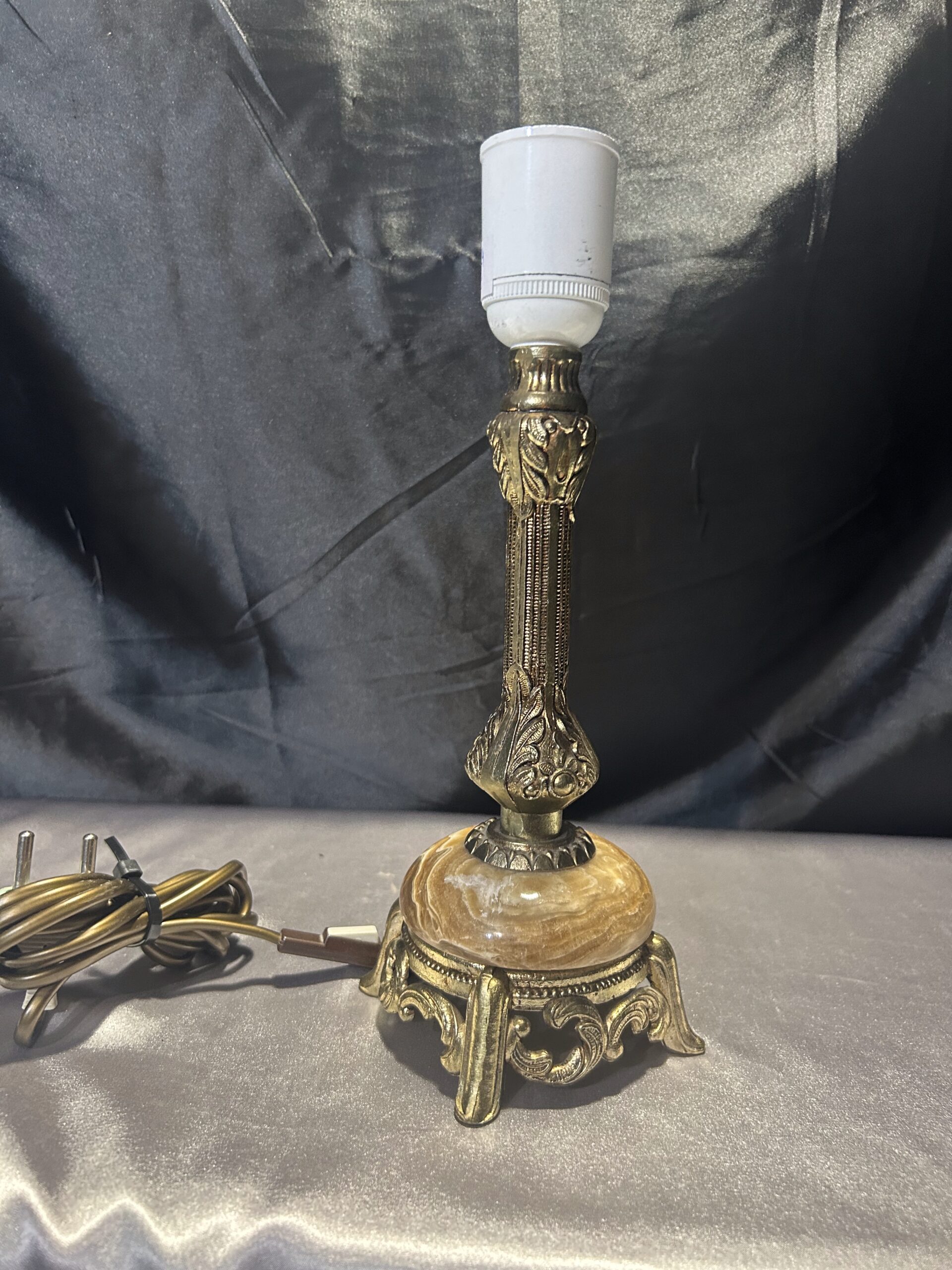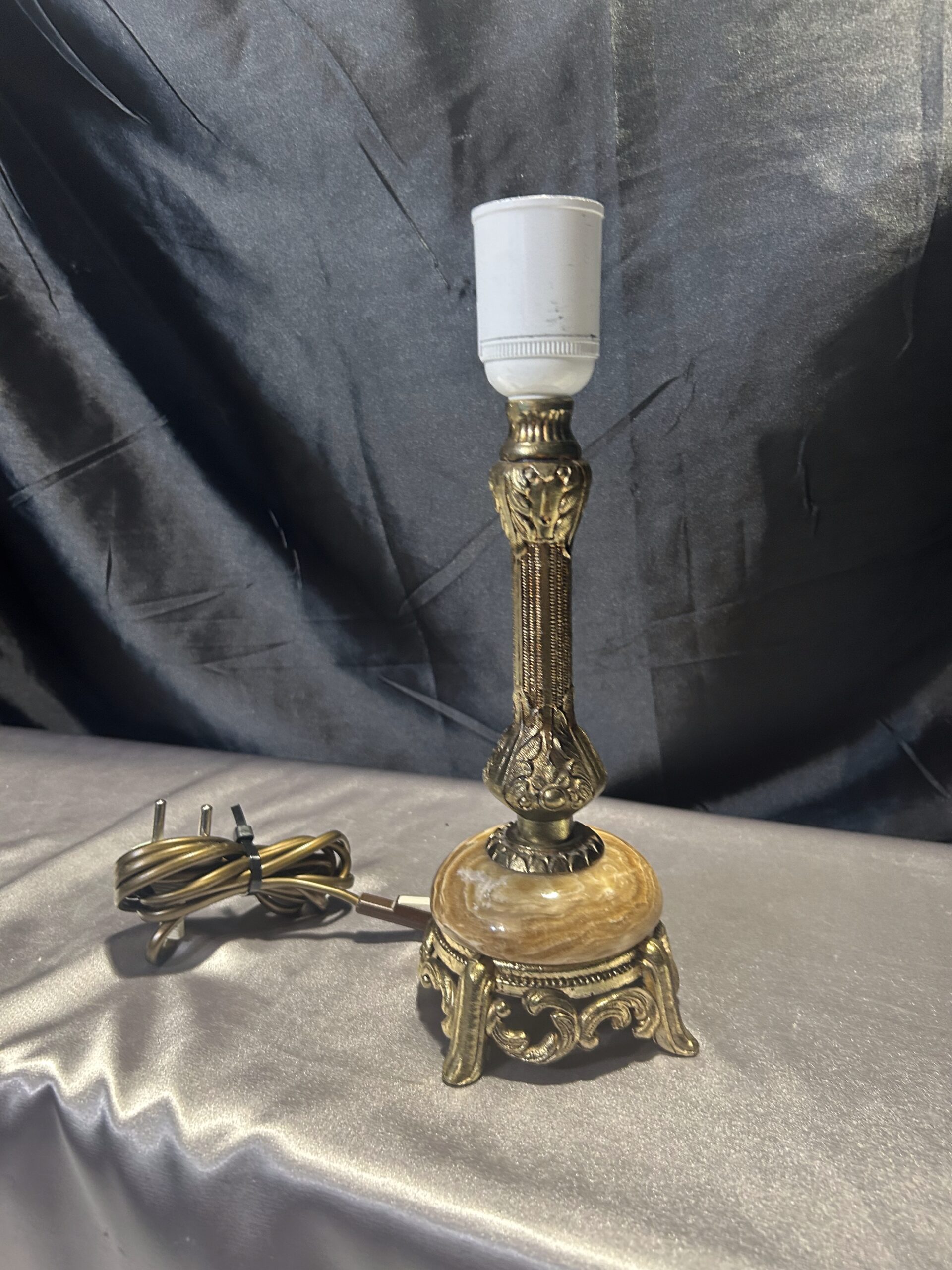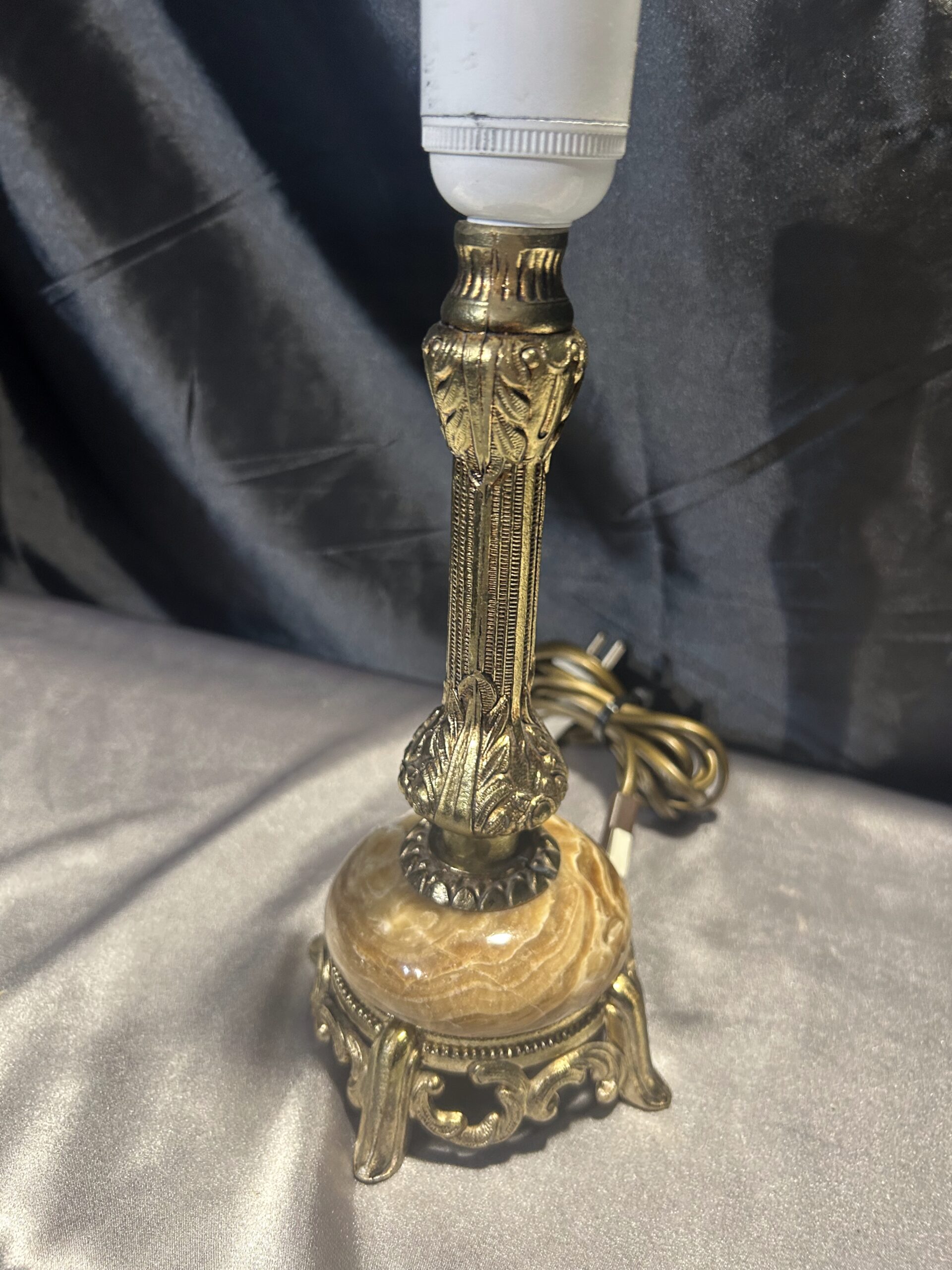Zestaw 2 Lamp z Onyksu i Mosiądzu – Eleganckie i Zdobione