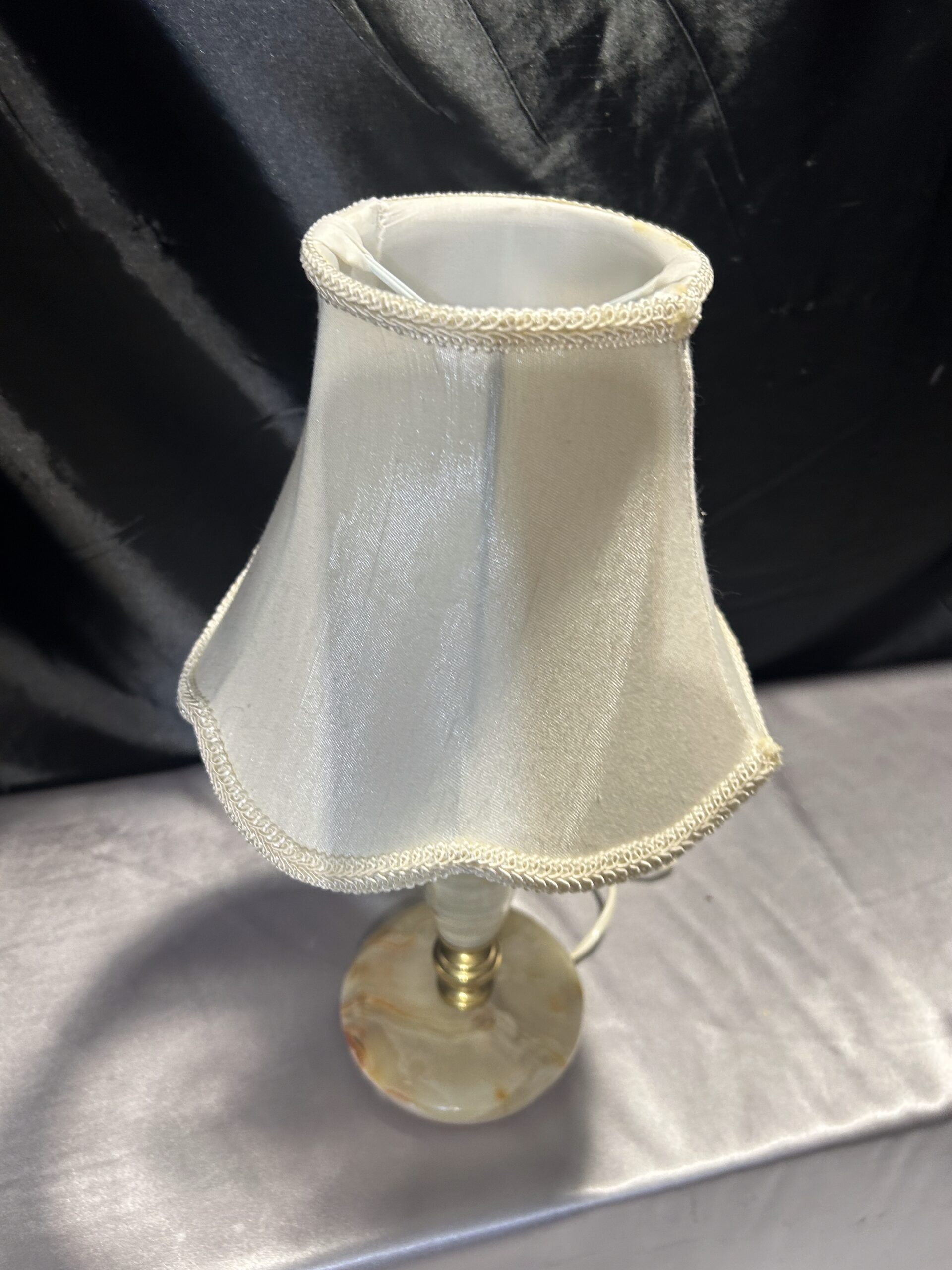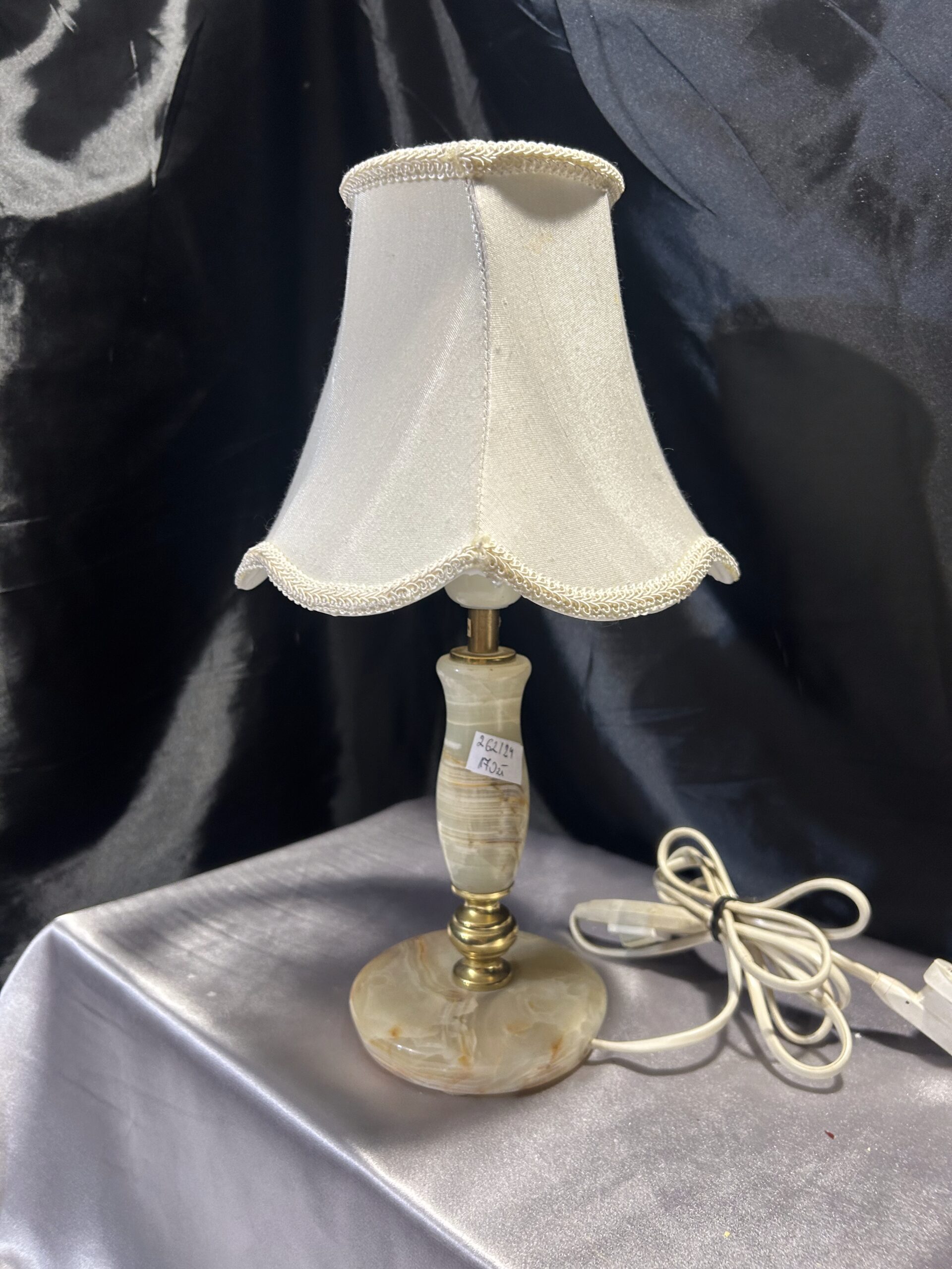 Lampa Stojąca z Onyksu i Mosiądzu z Abażurem – Elegancka i Klasyczna