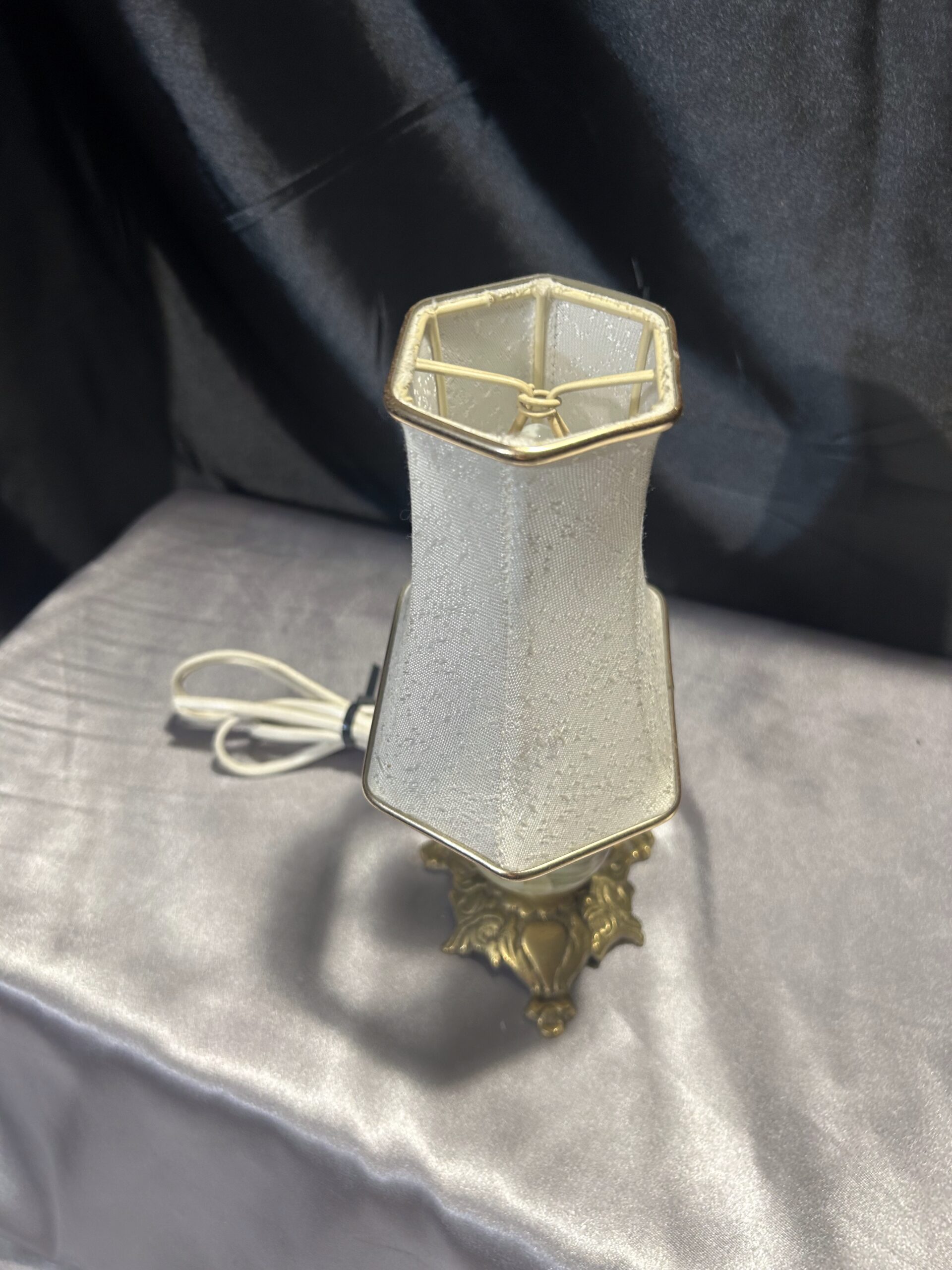 - Abażur: kremowy z delikatną złotą obramówką