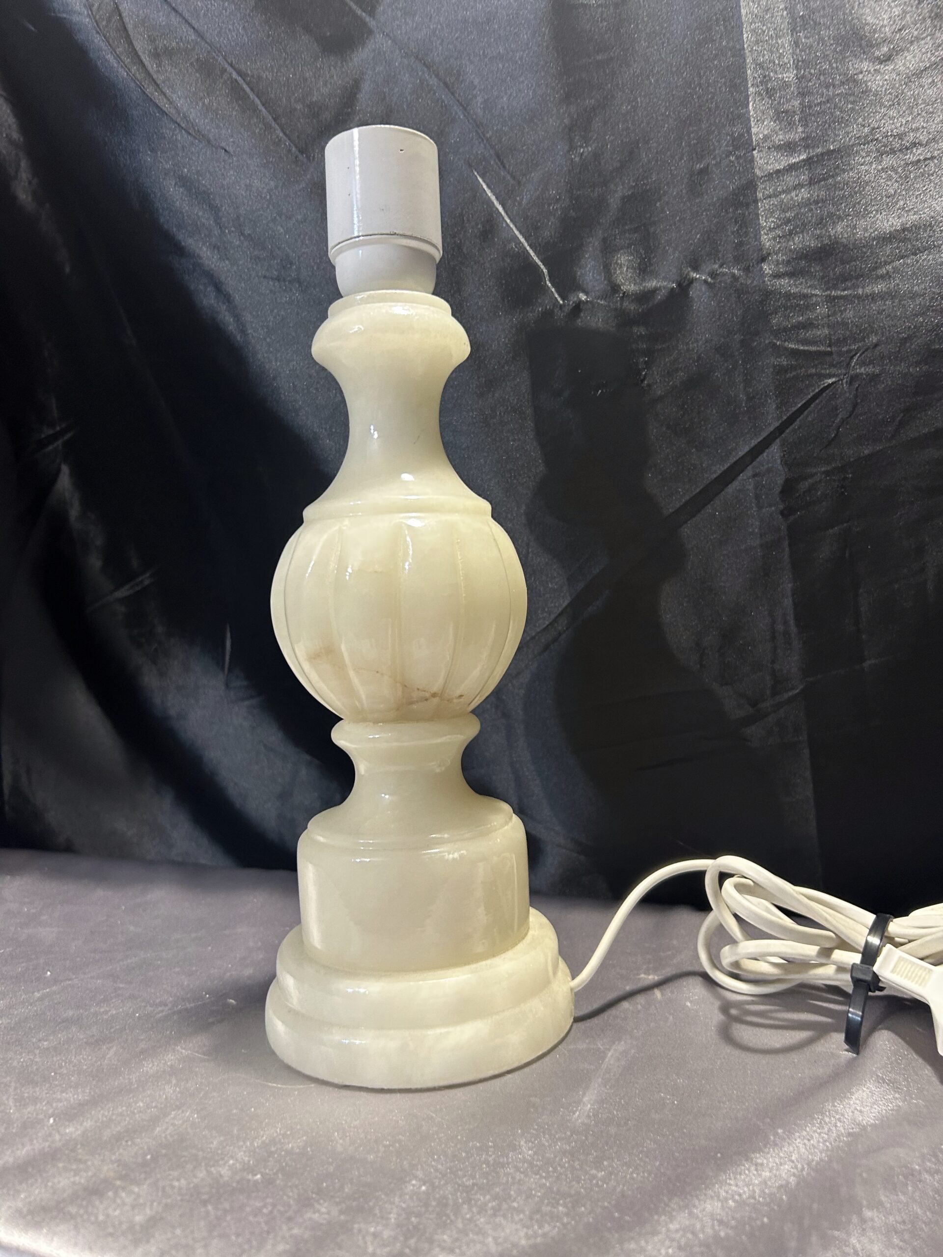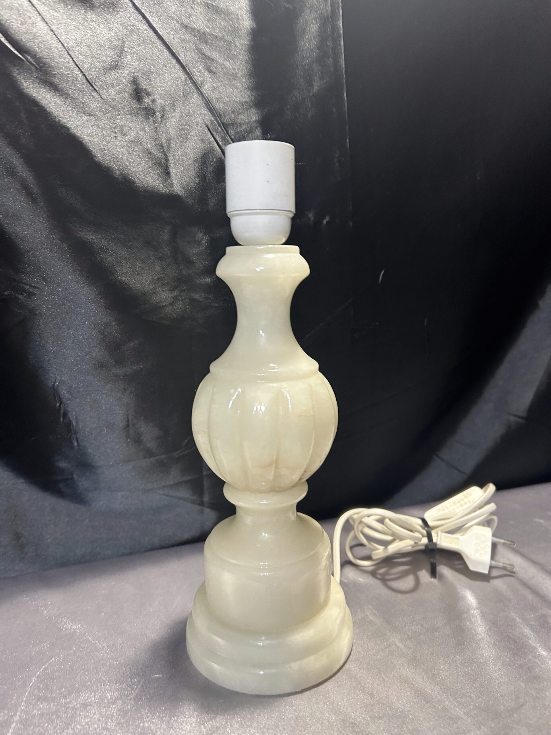 Wyjątkowa lampa wykonana w całości z onyksu, w delikatnym kremowo-beżowym odcieniu. Precyzyjnie toczone detale podkreślają jej elegancki charakter. Dzięki praktycznemu włącznikowi na kablu oraz stabilnej konstrukcji, jest idealnym dodatkiem na komodę, szafkę nocną czy parapet.