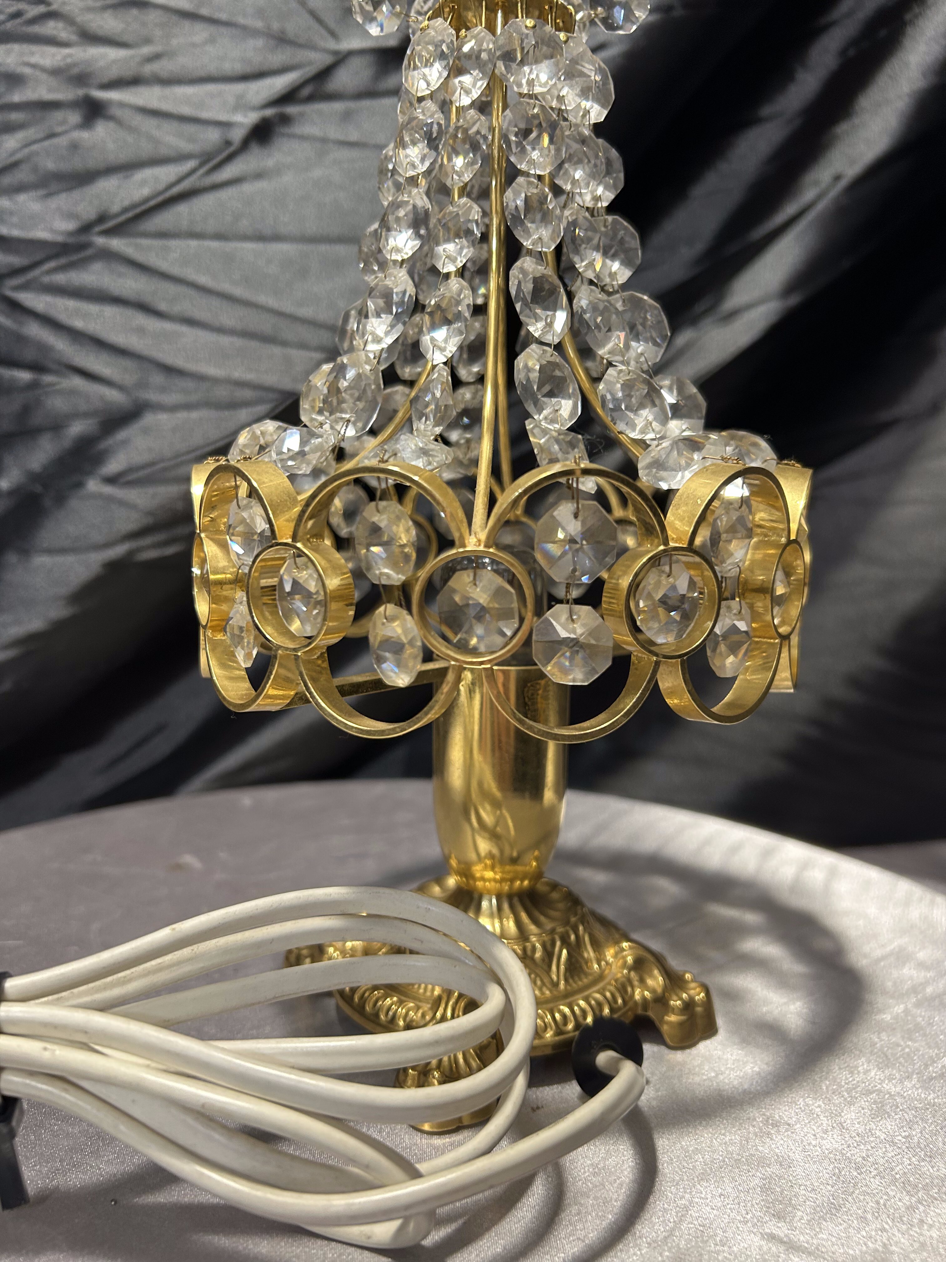 Lampa stołowa glamour – mosiądz i kryształki – elegancka dekoracja wnętrza