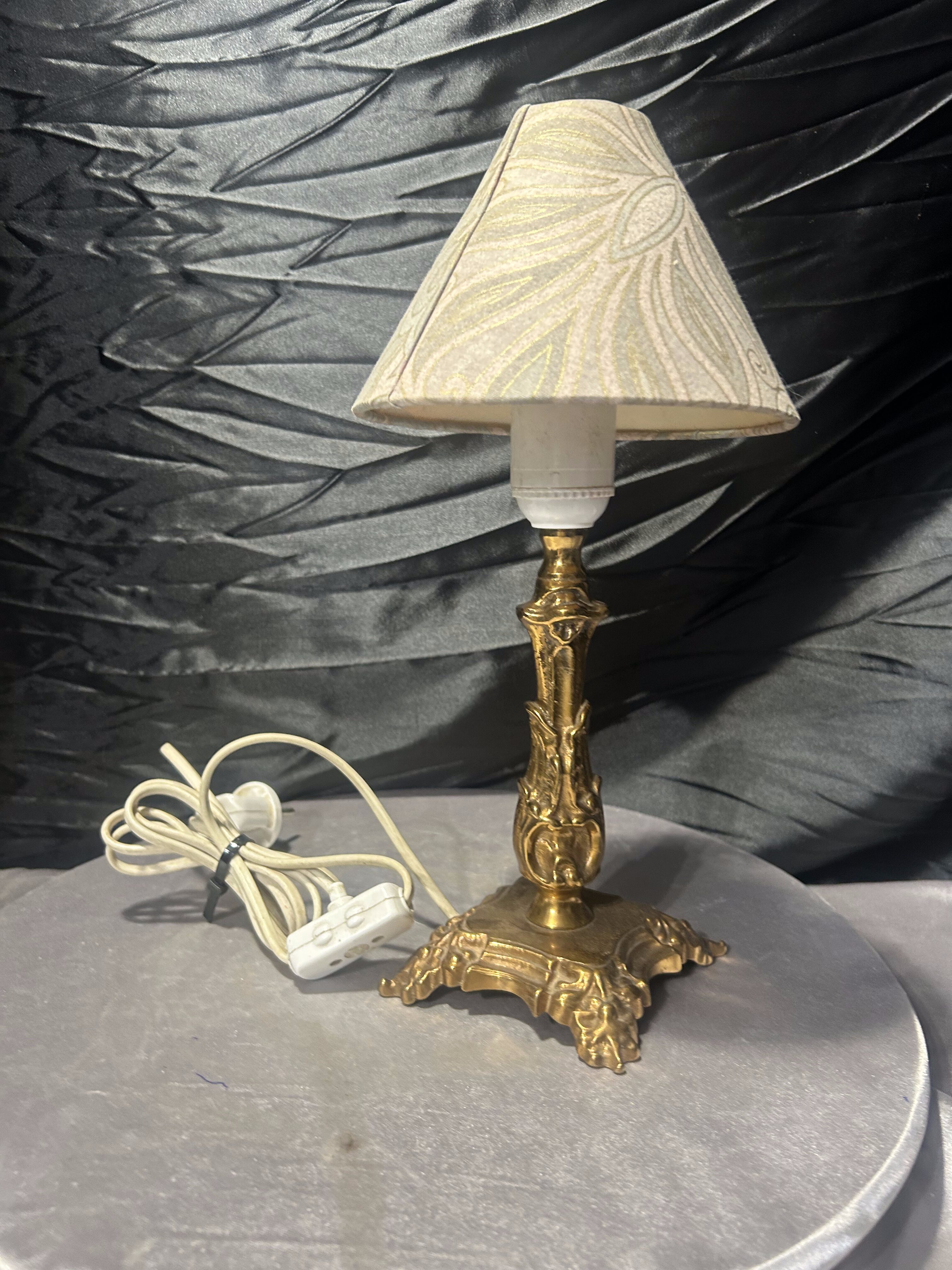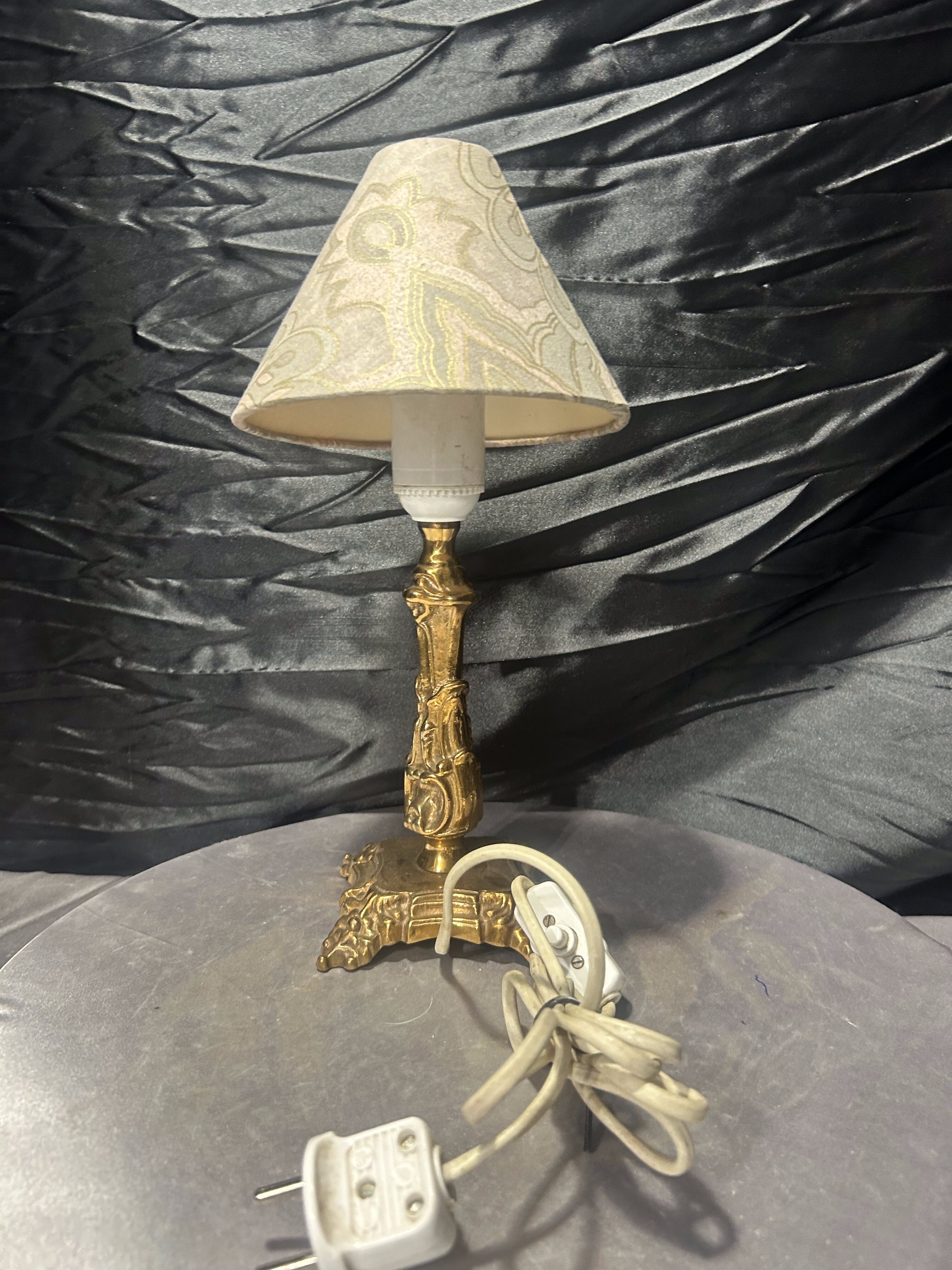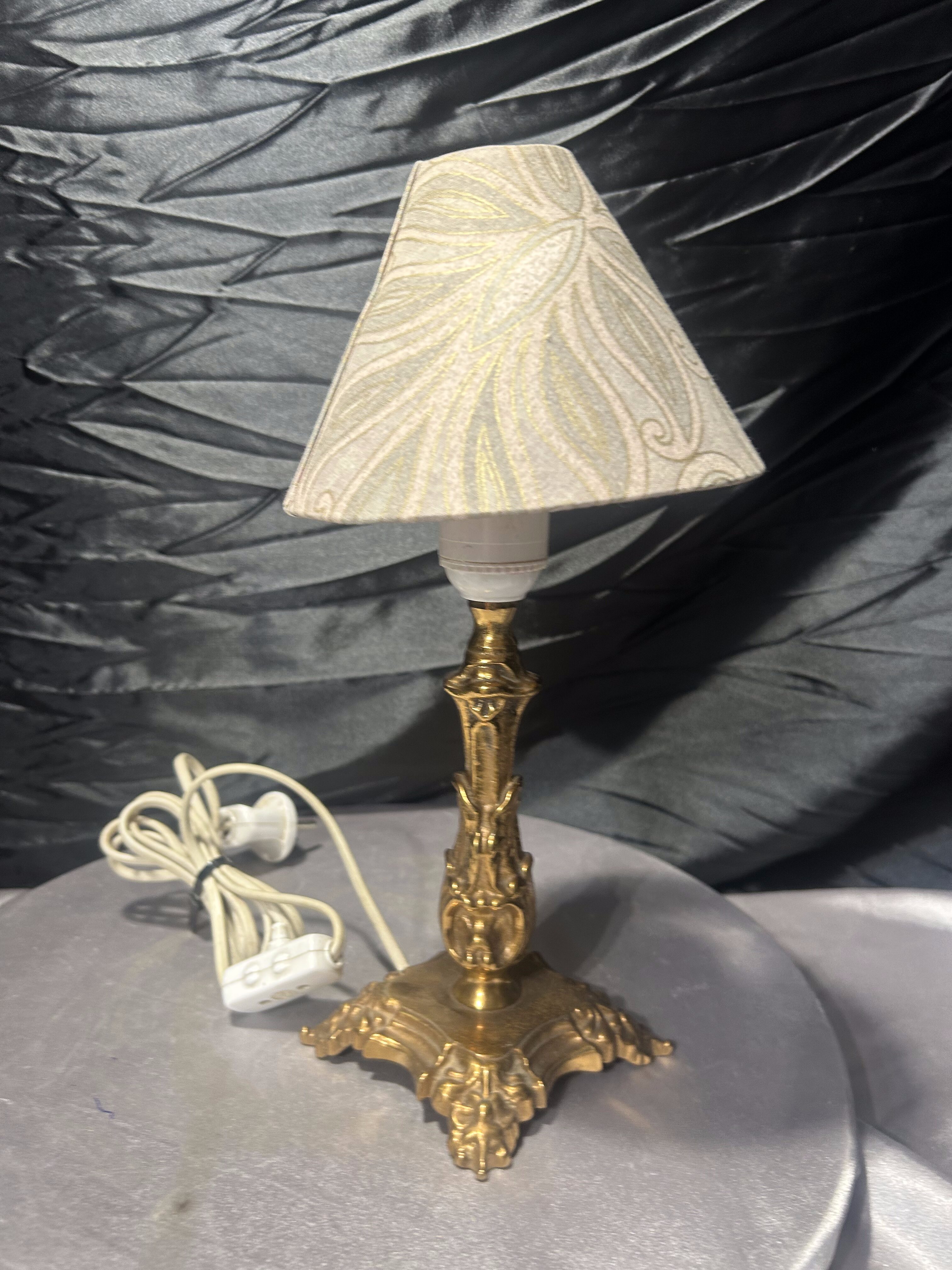 - Lampa stołowa mosiężna z abażurem – zdobiona – styl klasyczny