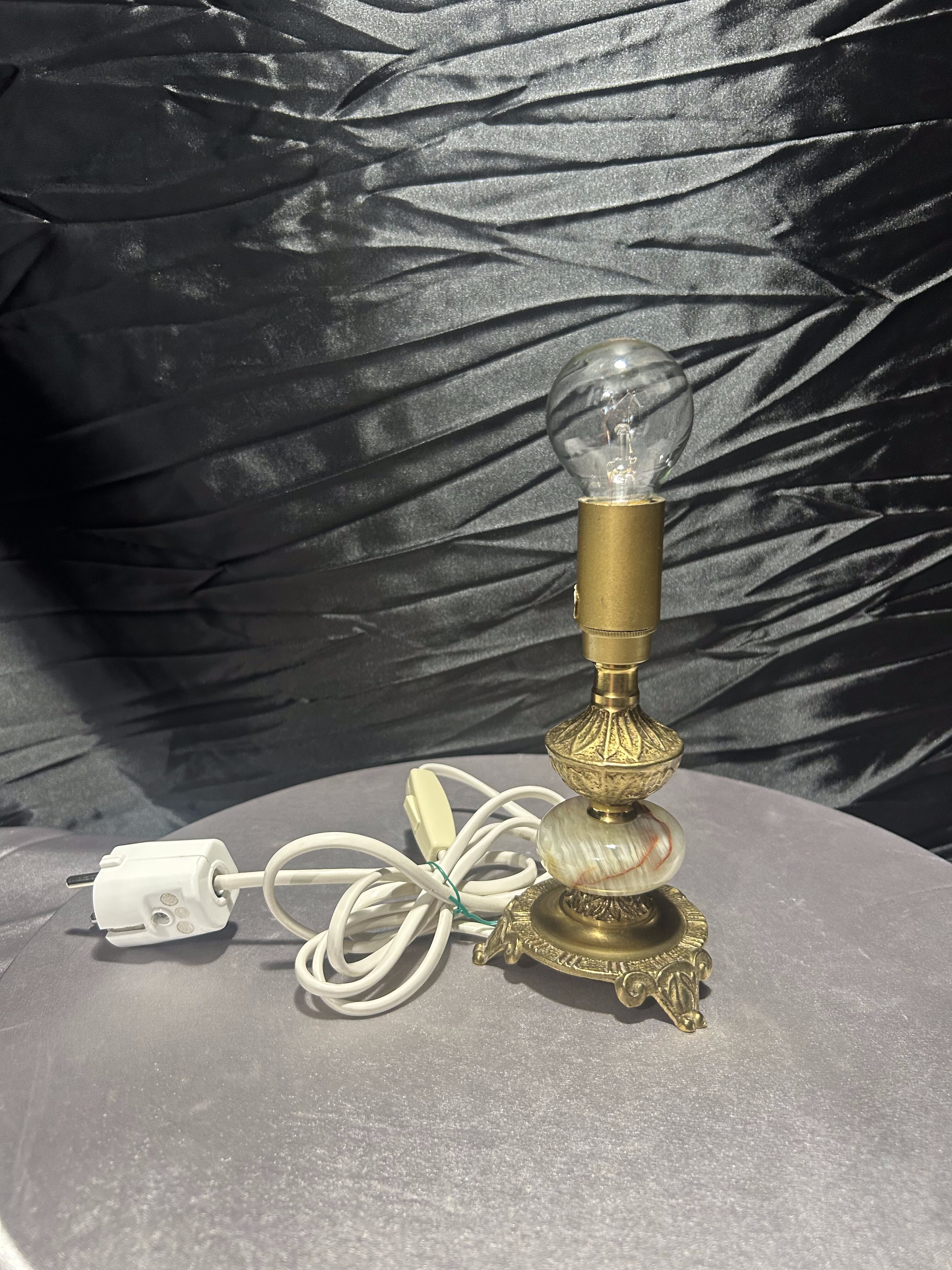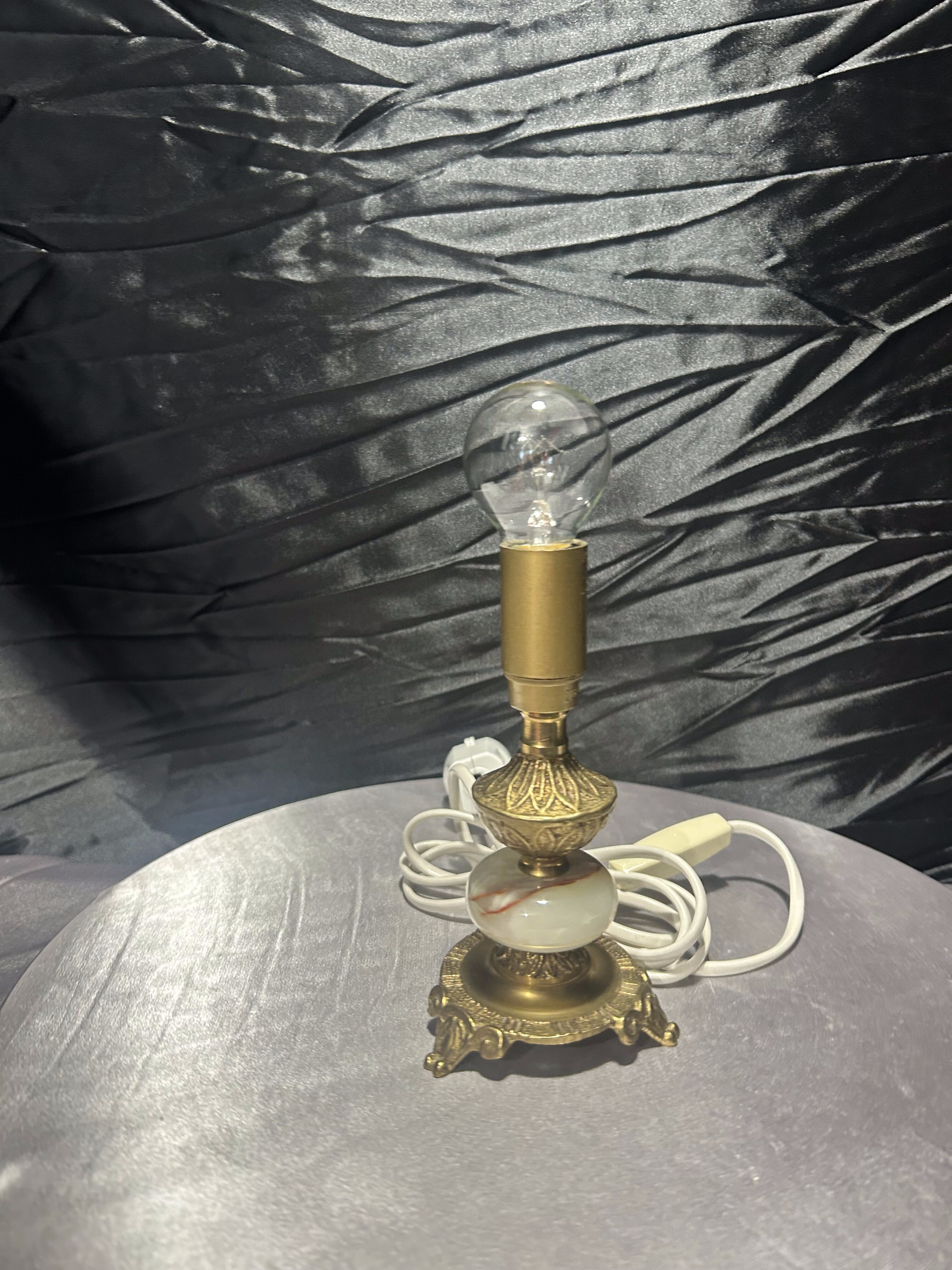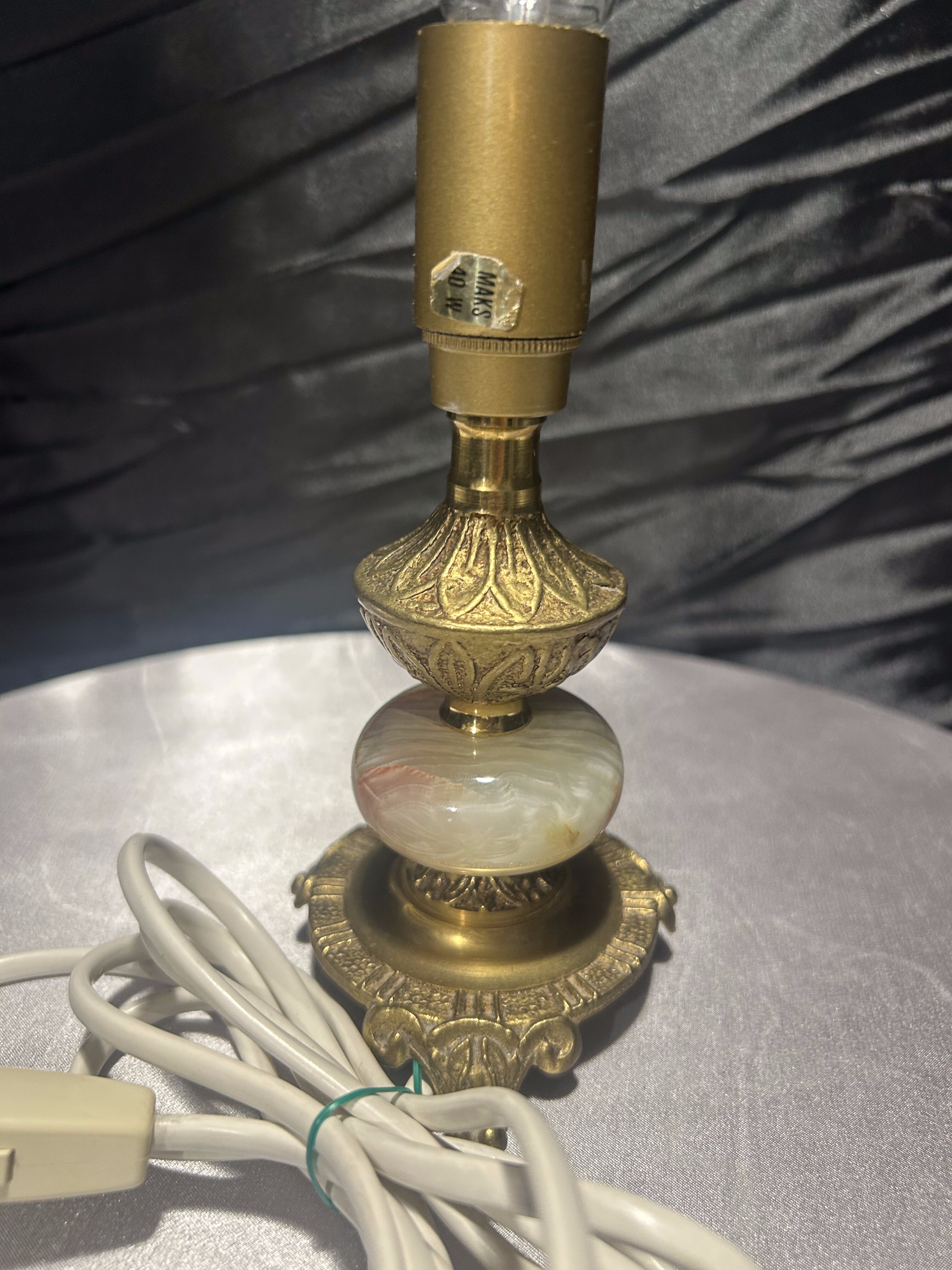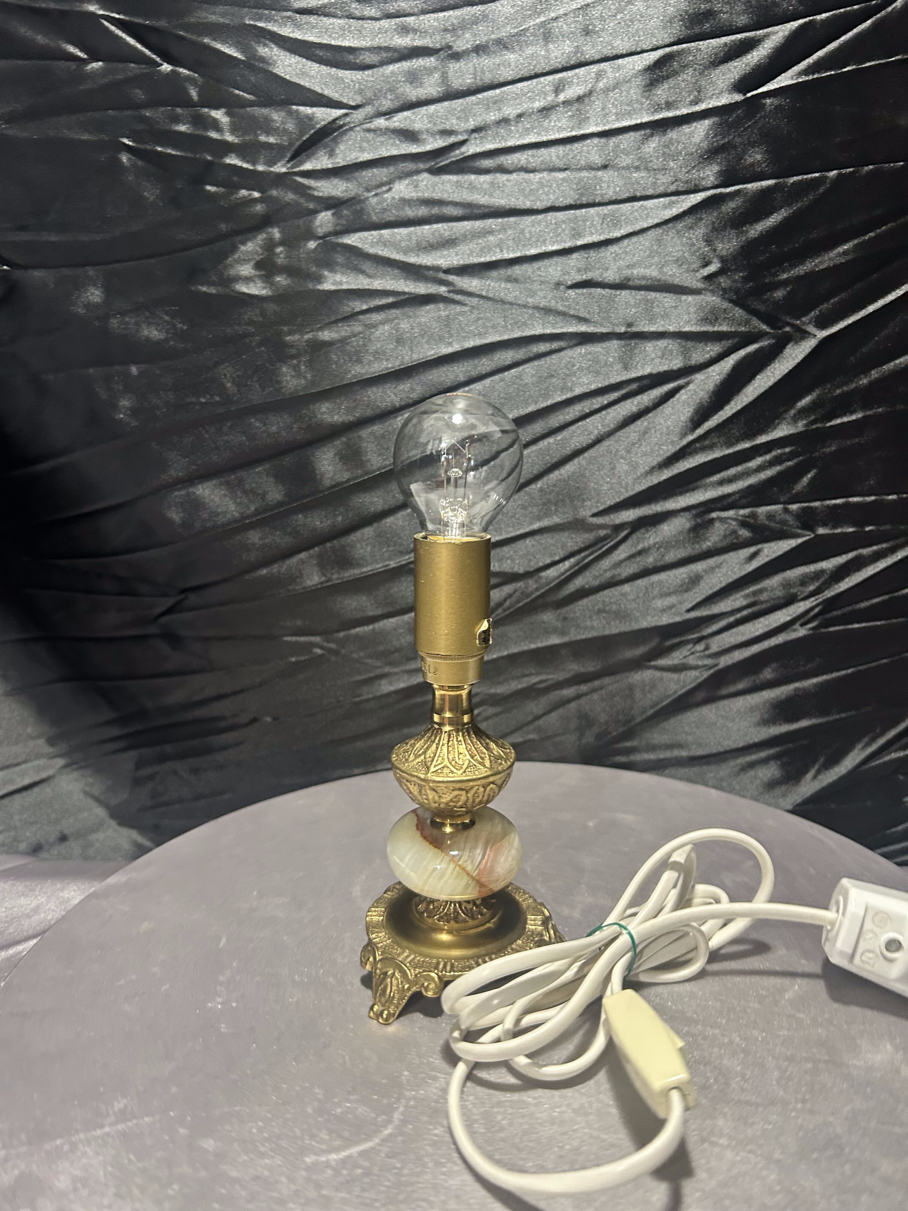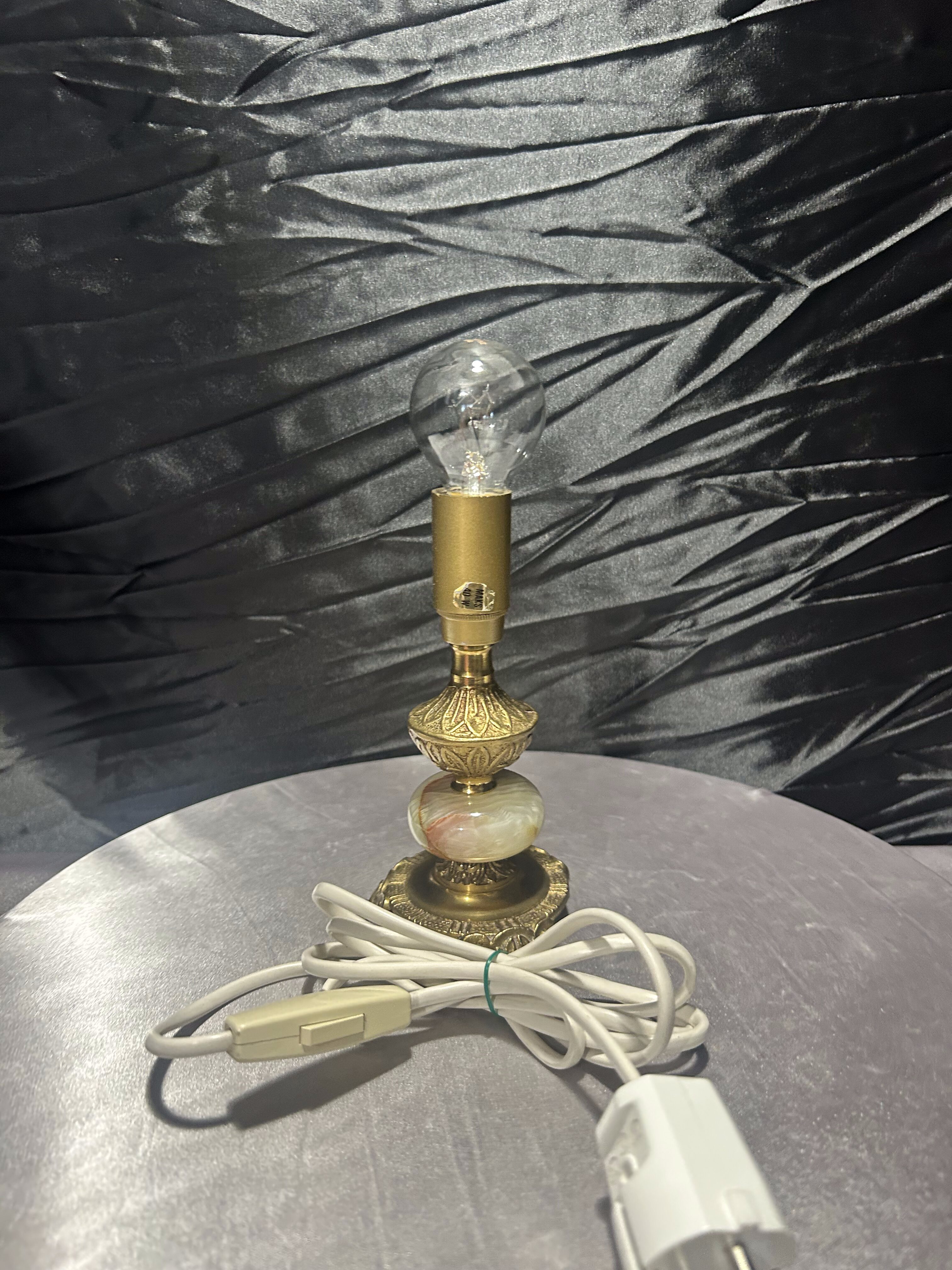 - Lampa stołowa – onyks i mosiądz – zdobiona – z włącznikiem