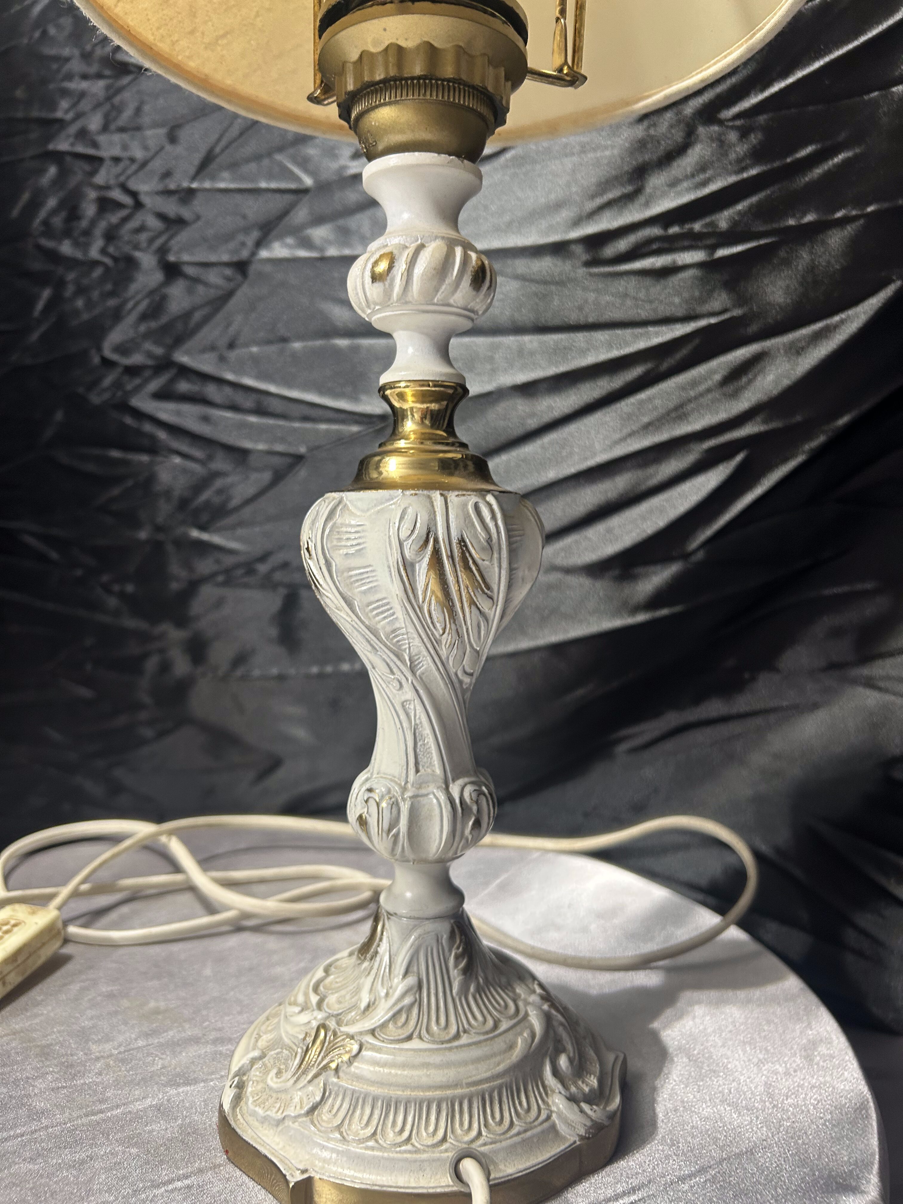 Lampa stołowa stylizowana – biało-złota – styl klasyczny z patyną