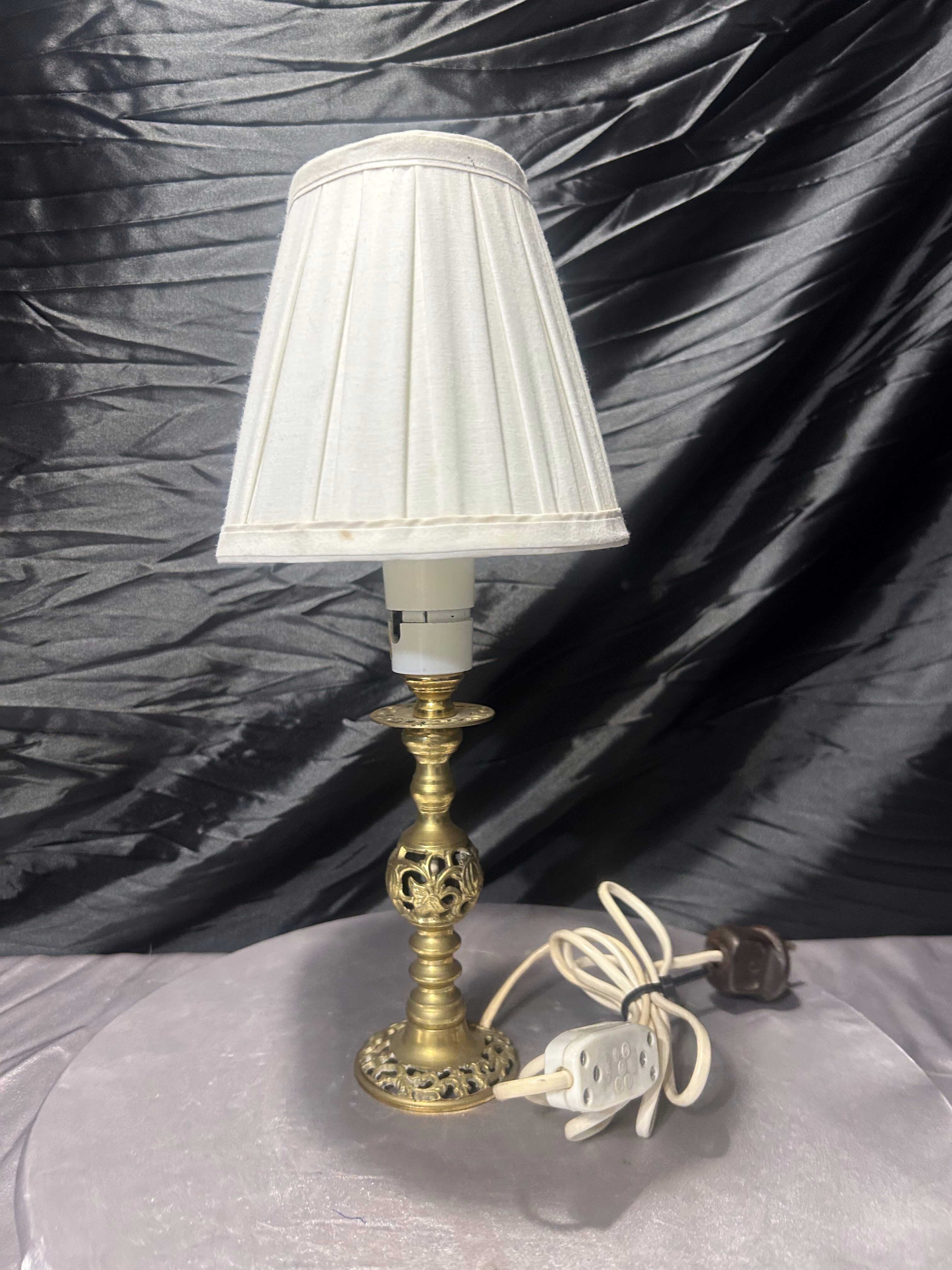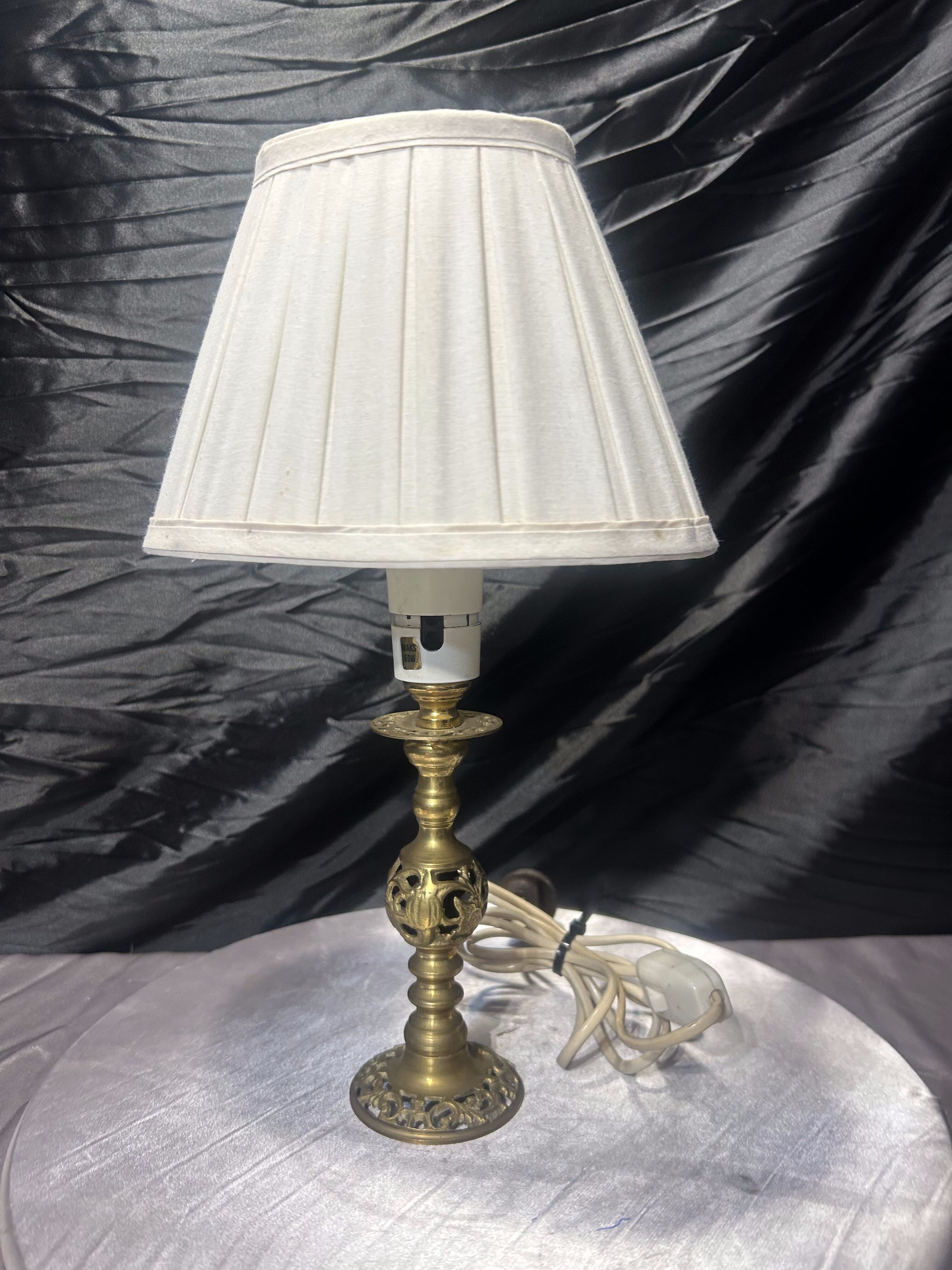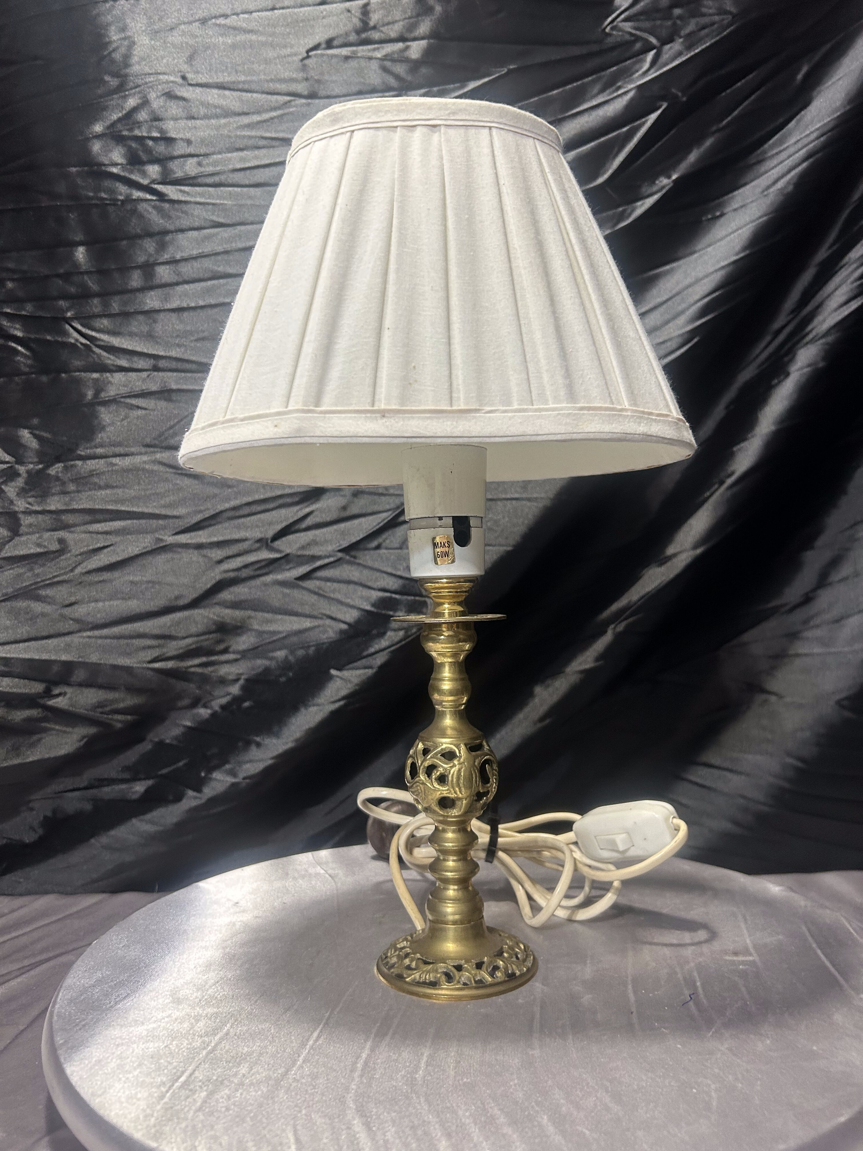 - Lampa stołowa z abażurem – mosiądz ażurowy – styl klasyczny