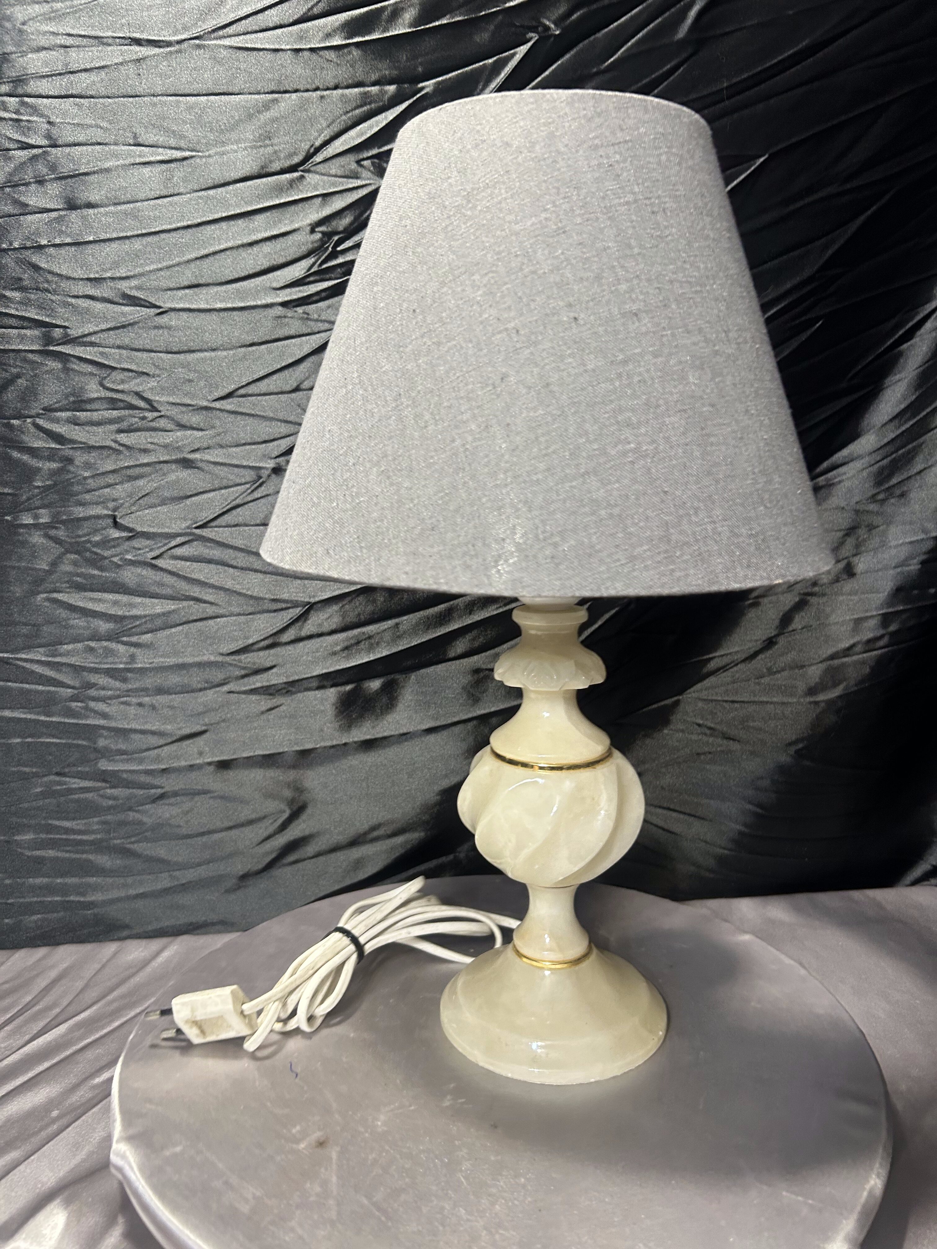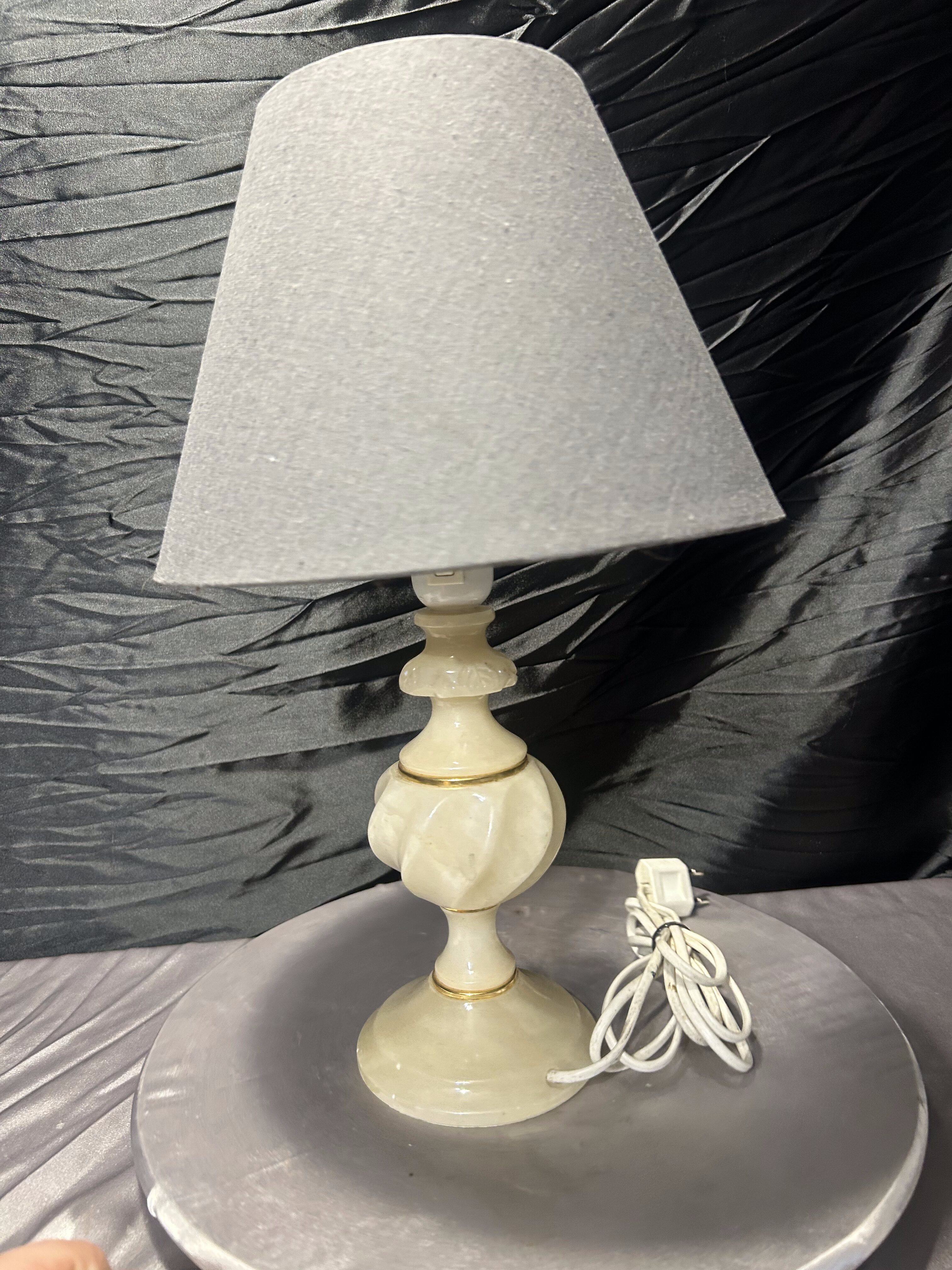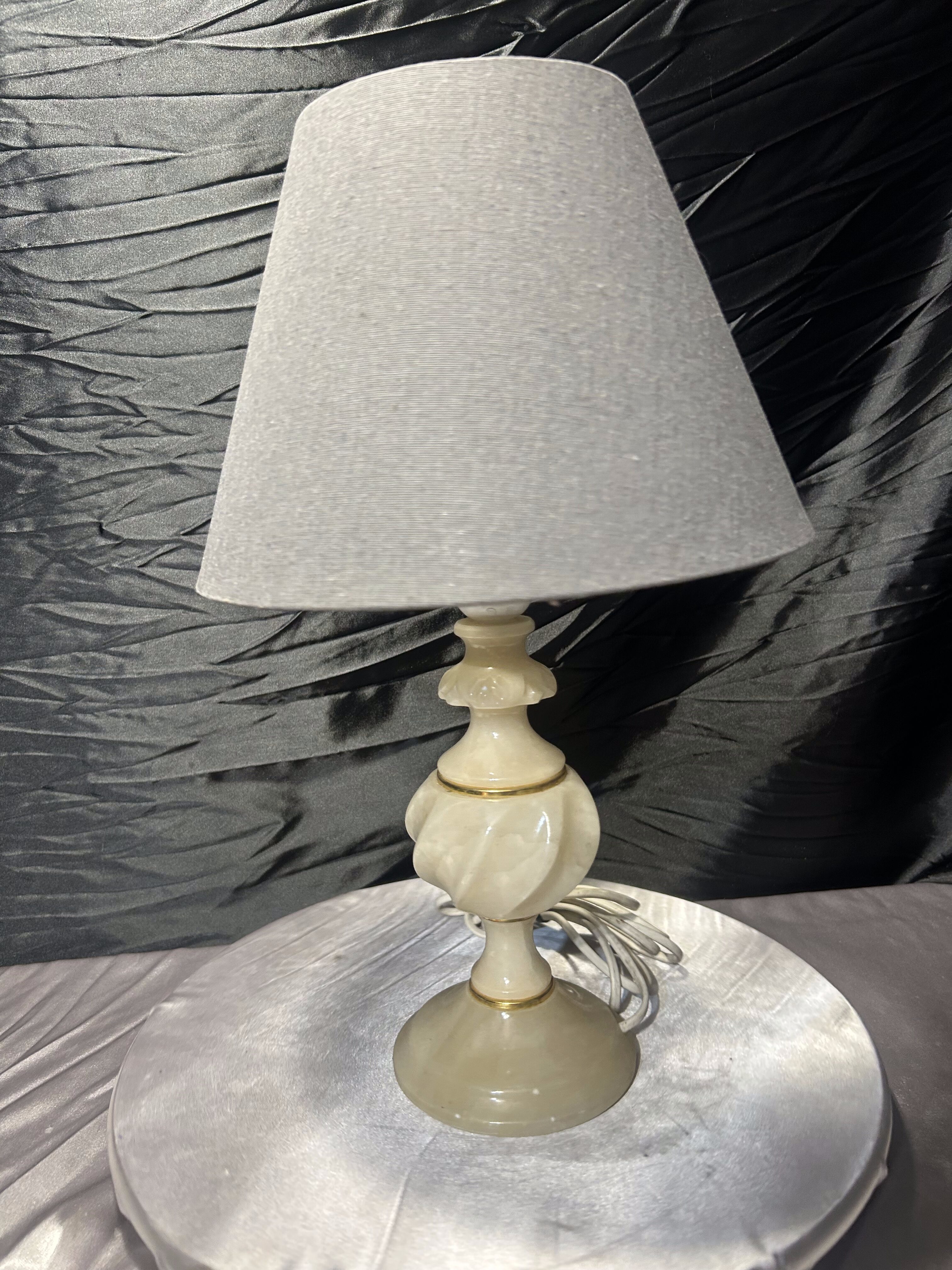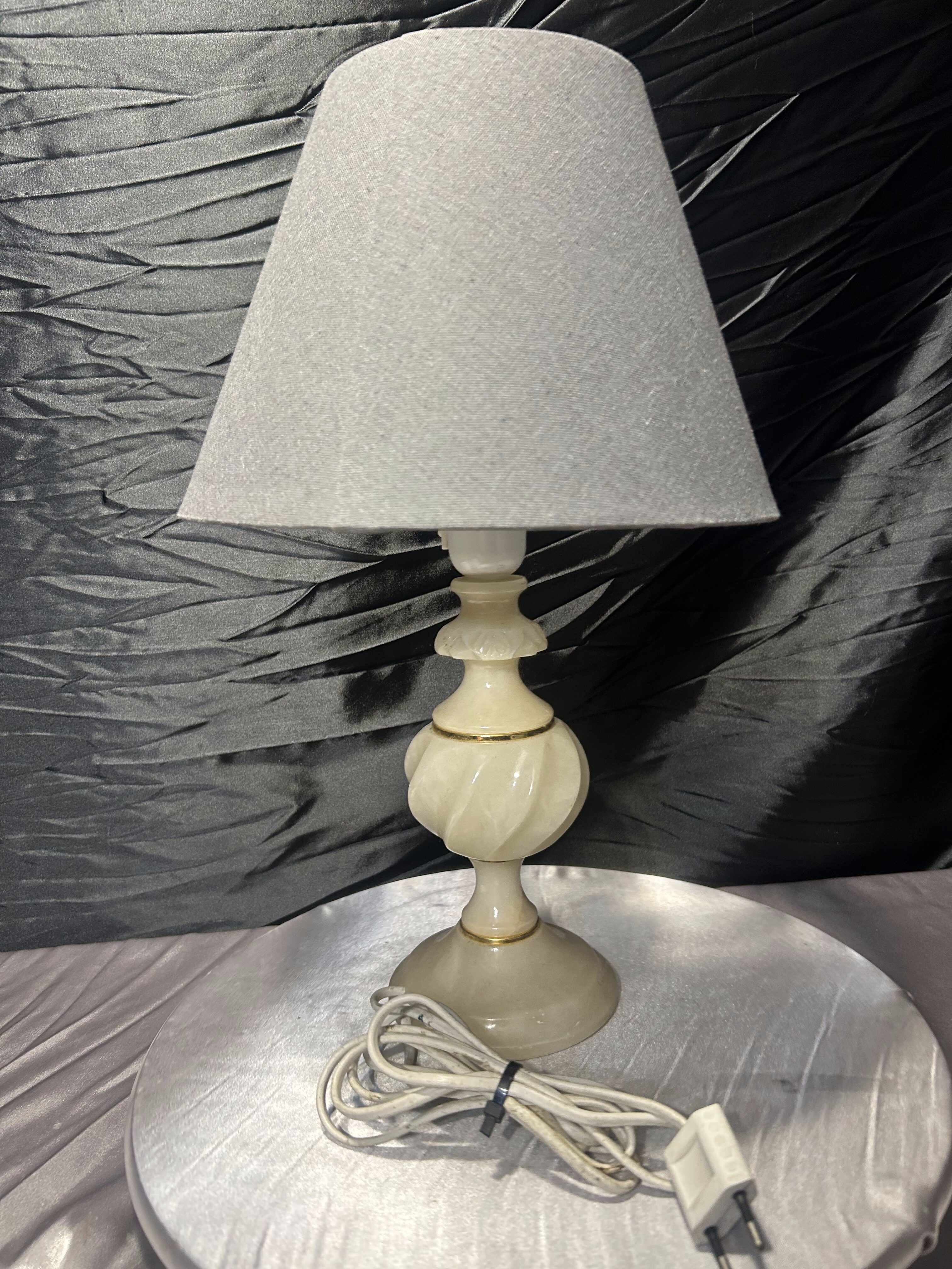 Lampa stołowa z alabastru z abażurem – klasyczna dekoracja