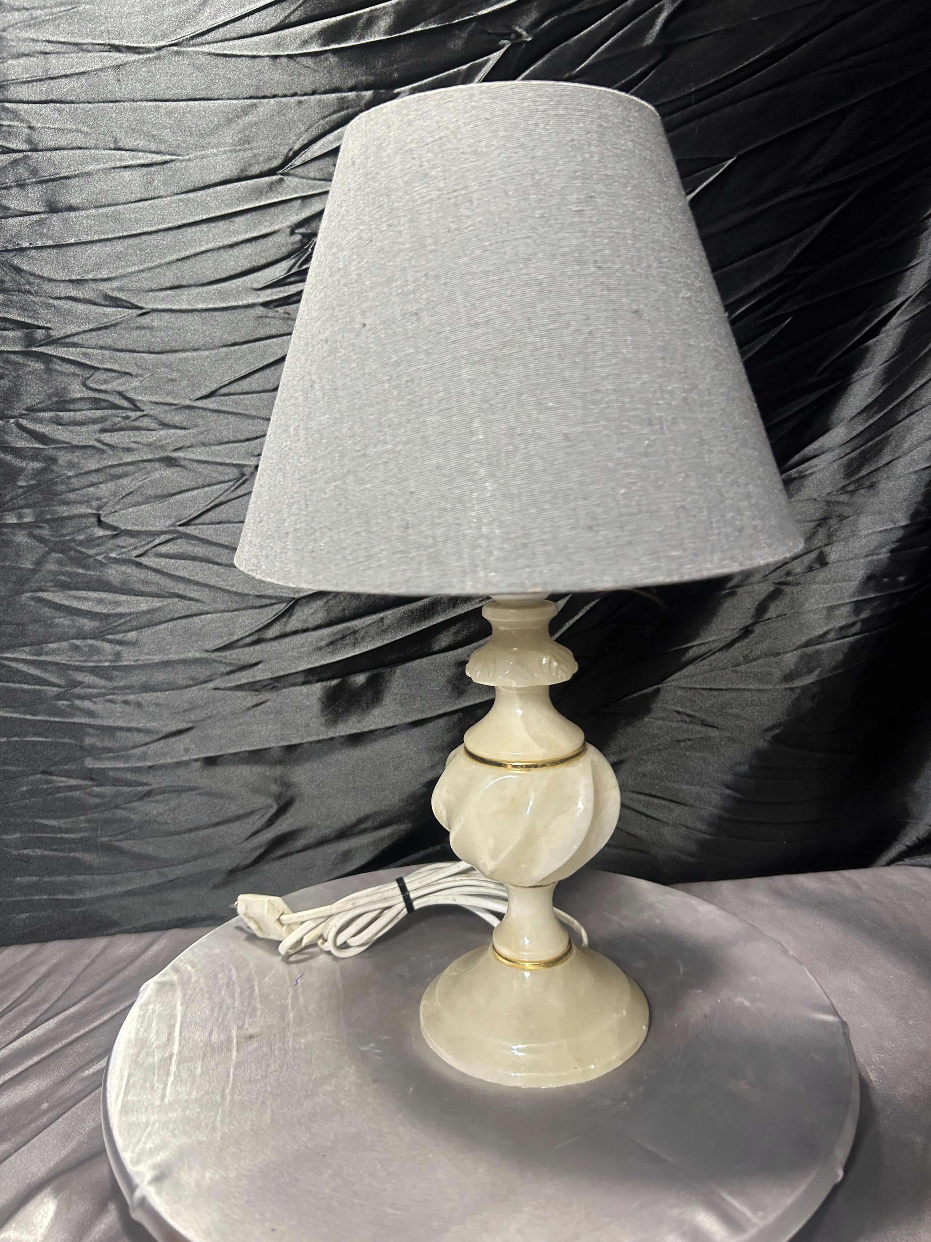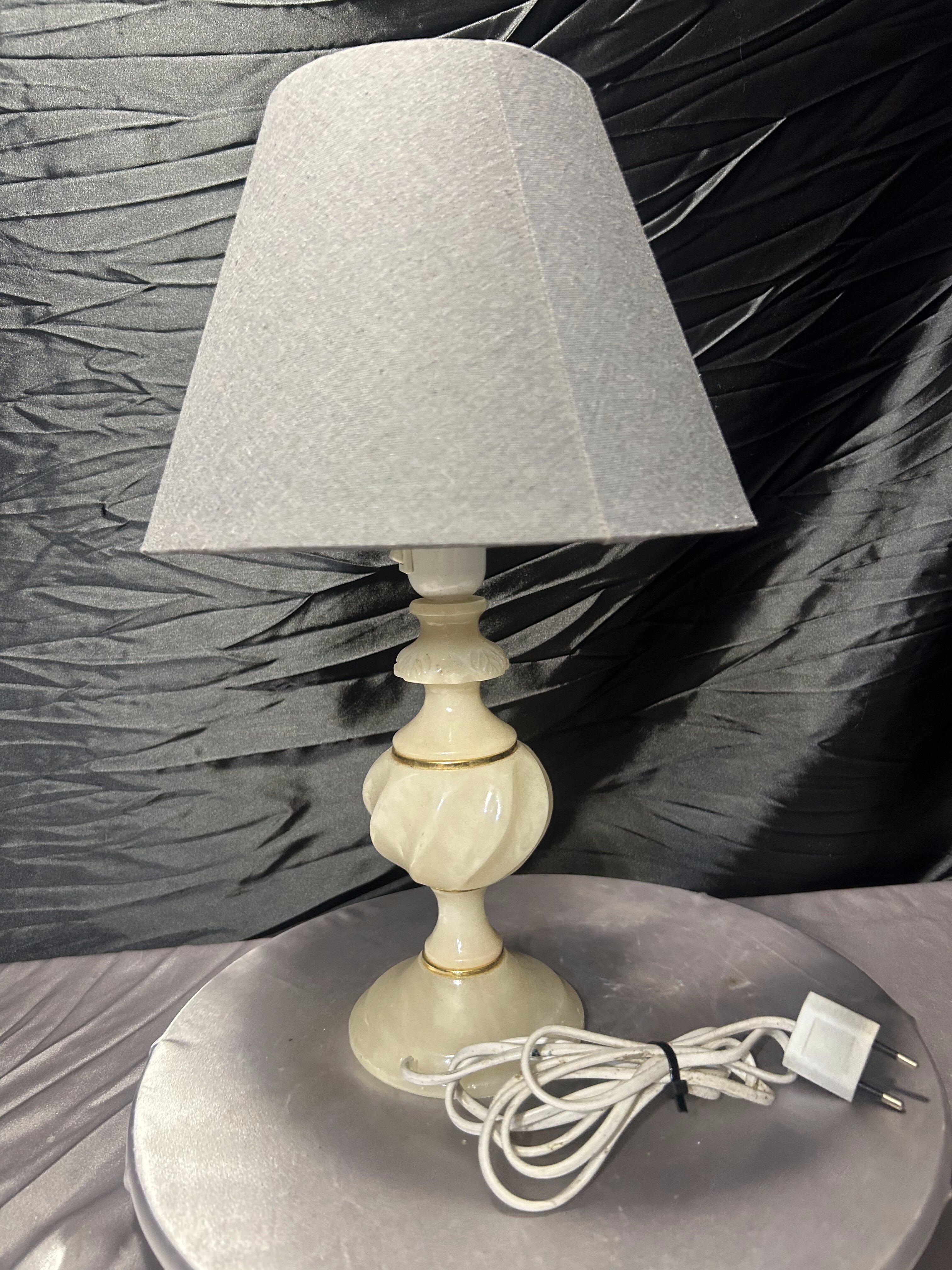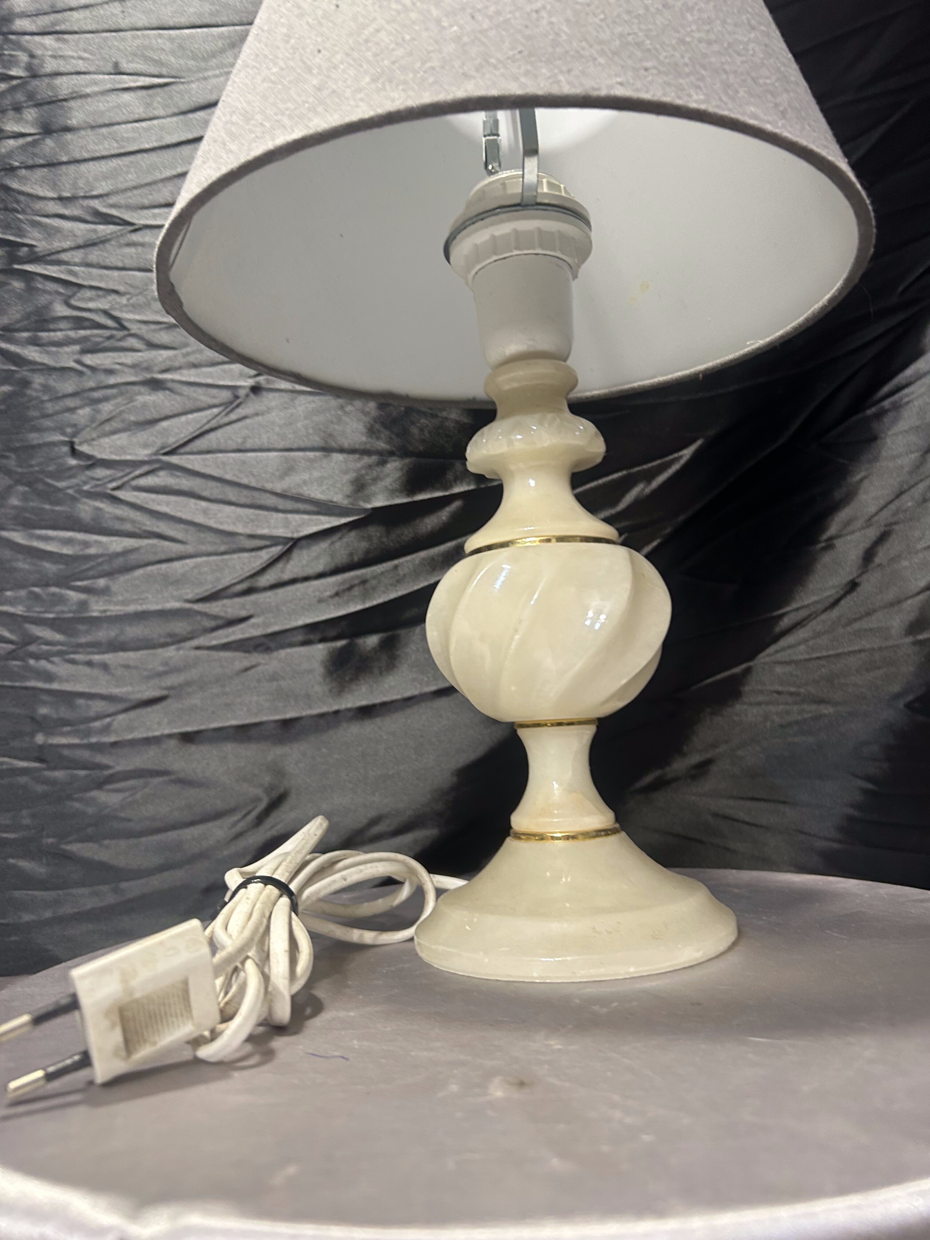 - Lampa stołowa z alabastru z abażurem – klasyczna dekoracja