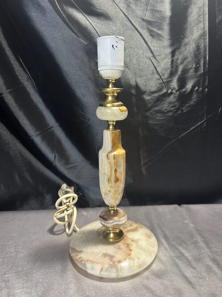 Lampa Stojąca z Onyksu i Mosiądzu – Klasyka w Kolorach Brązu i Beżu