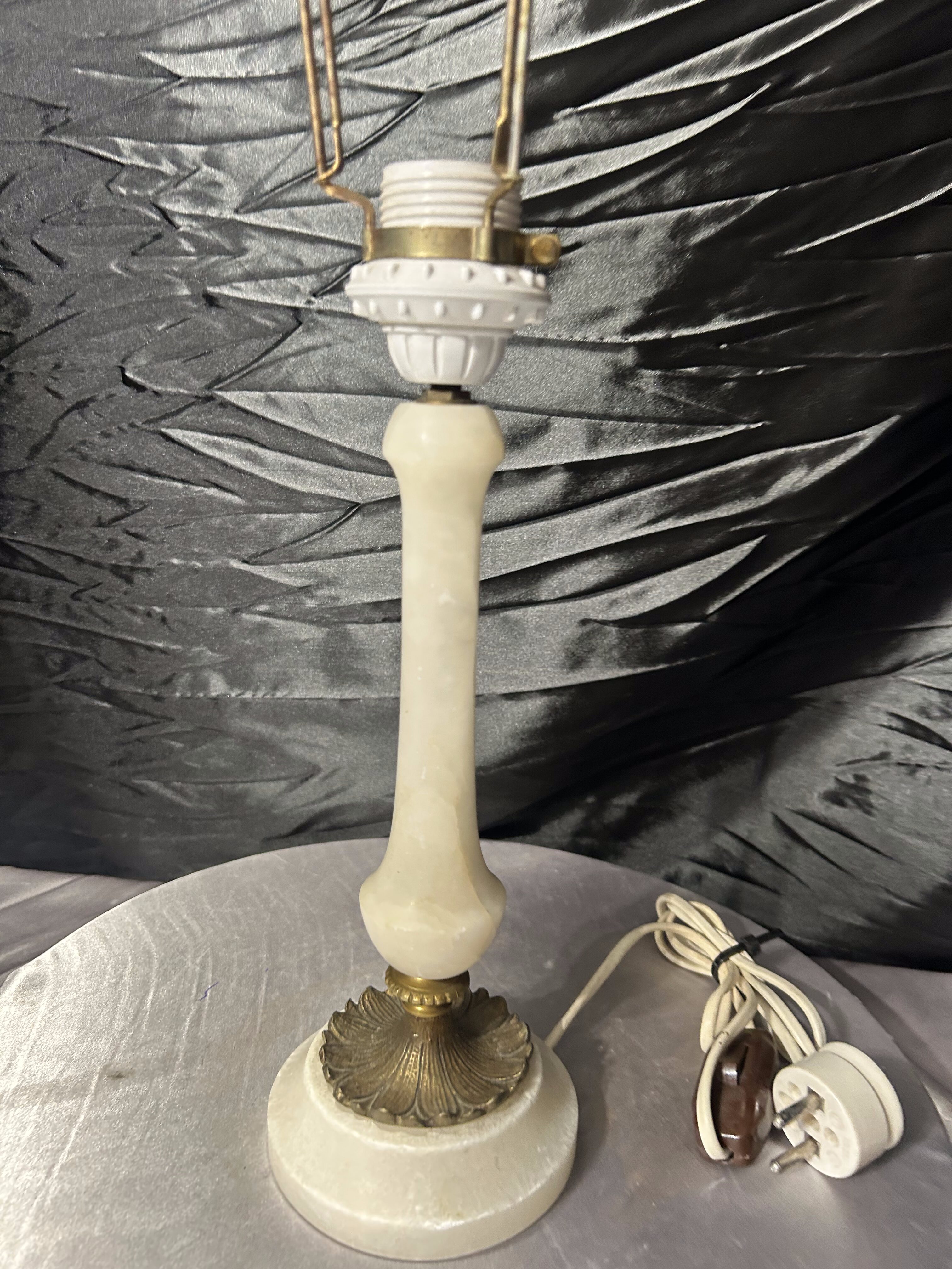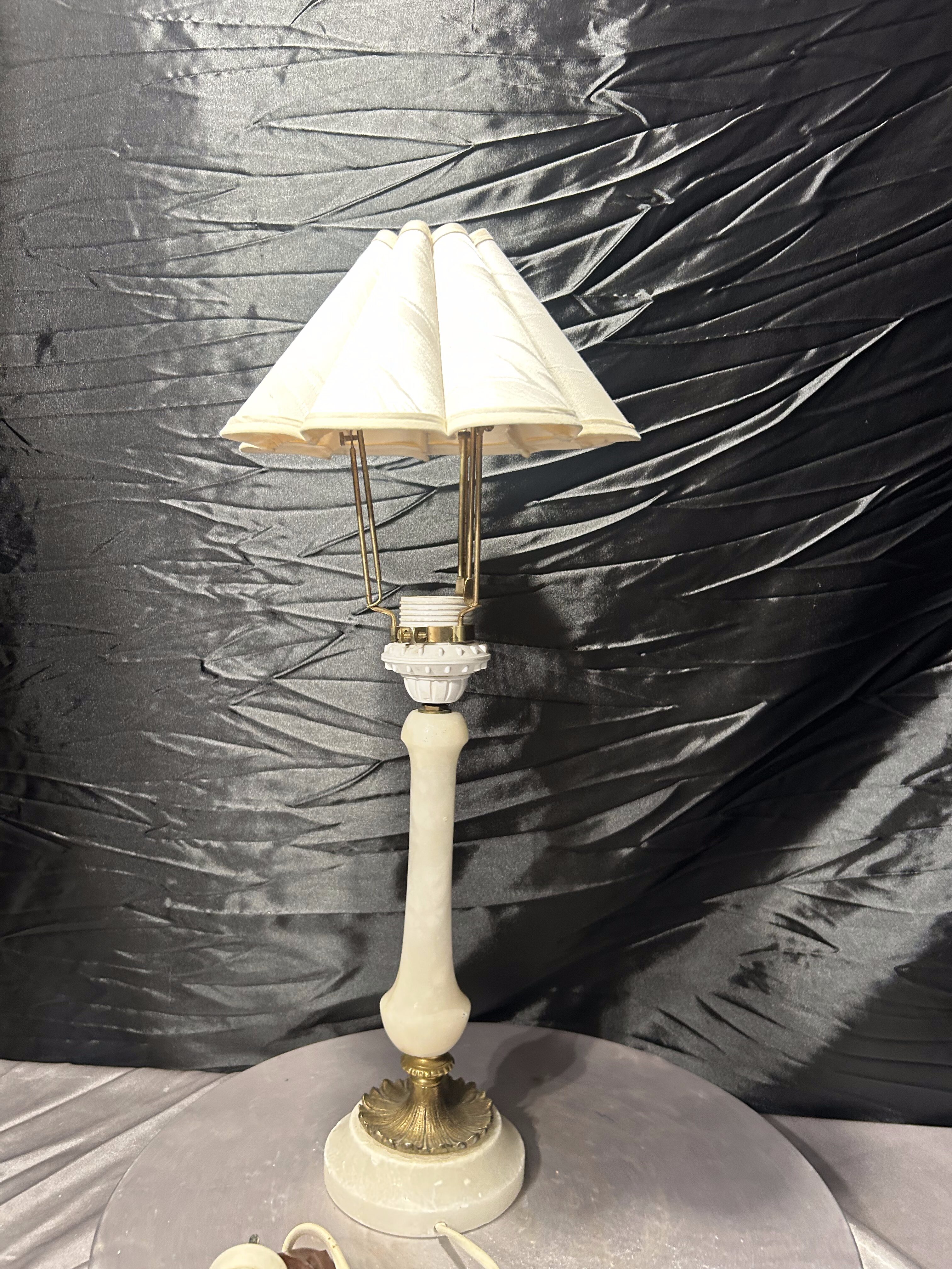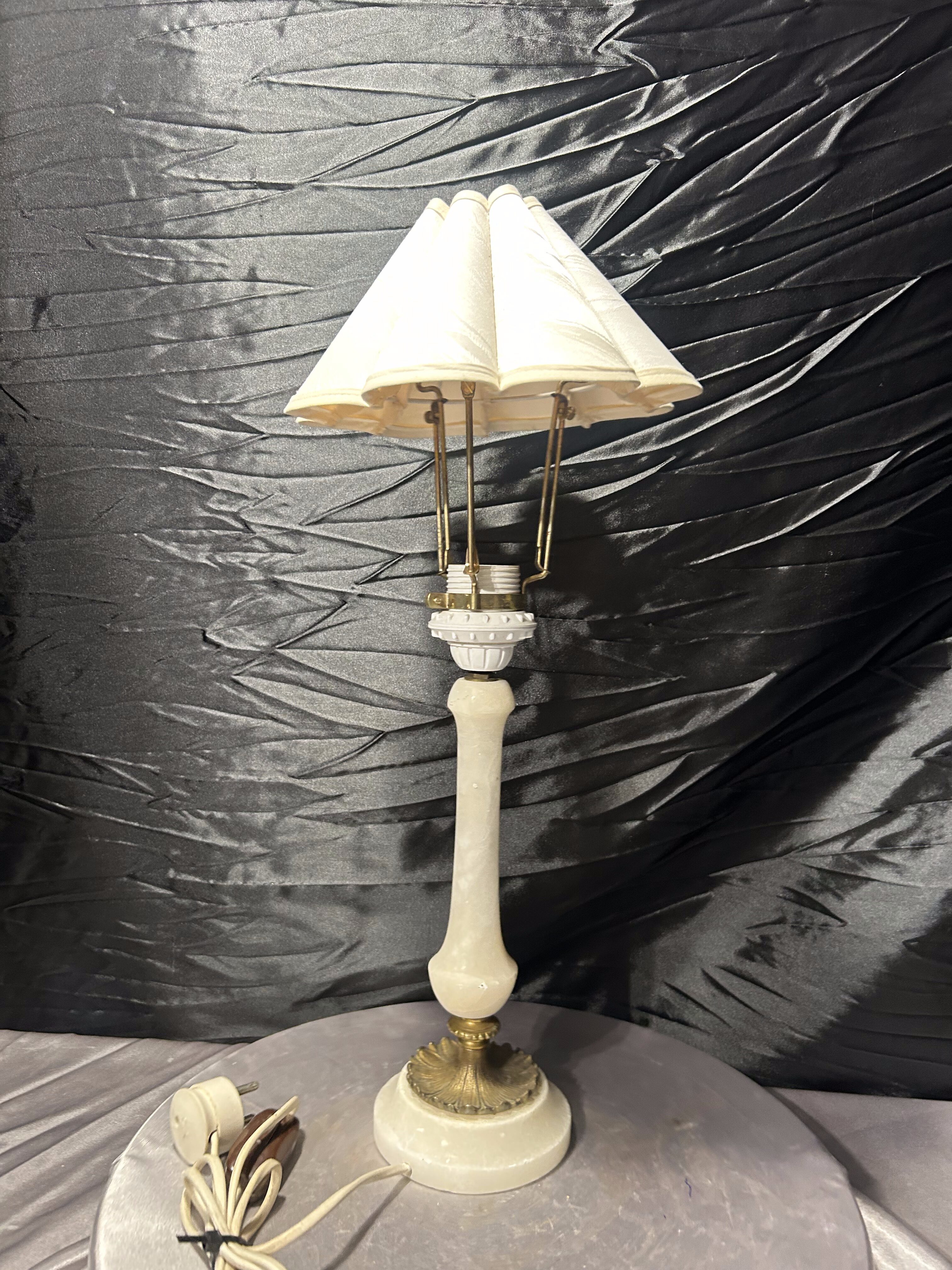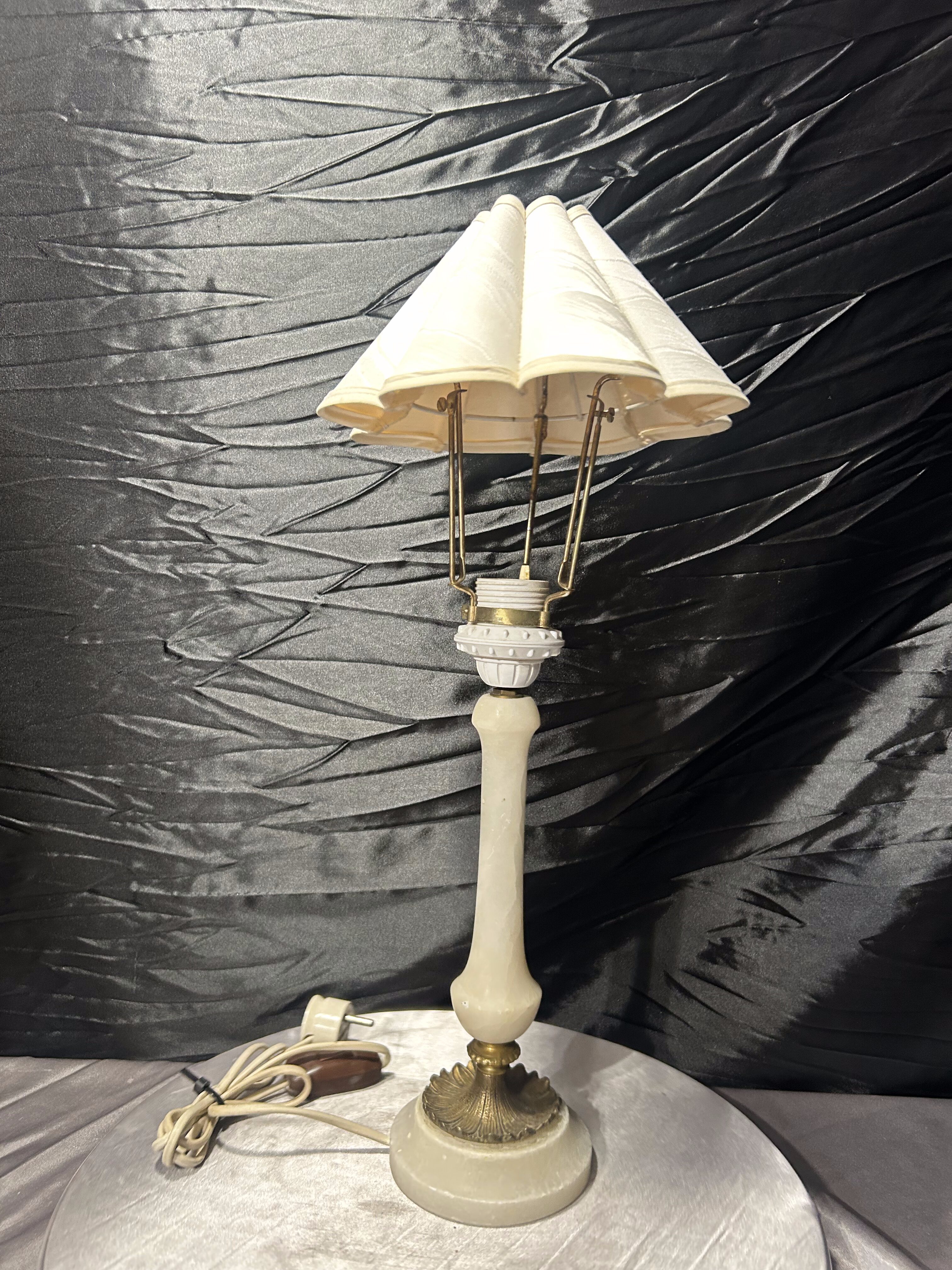 Lampa stołowa z alabastru z abażurem – klasyczna forma – elegancki styl