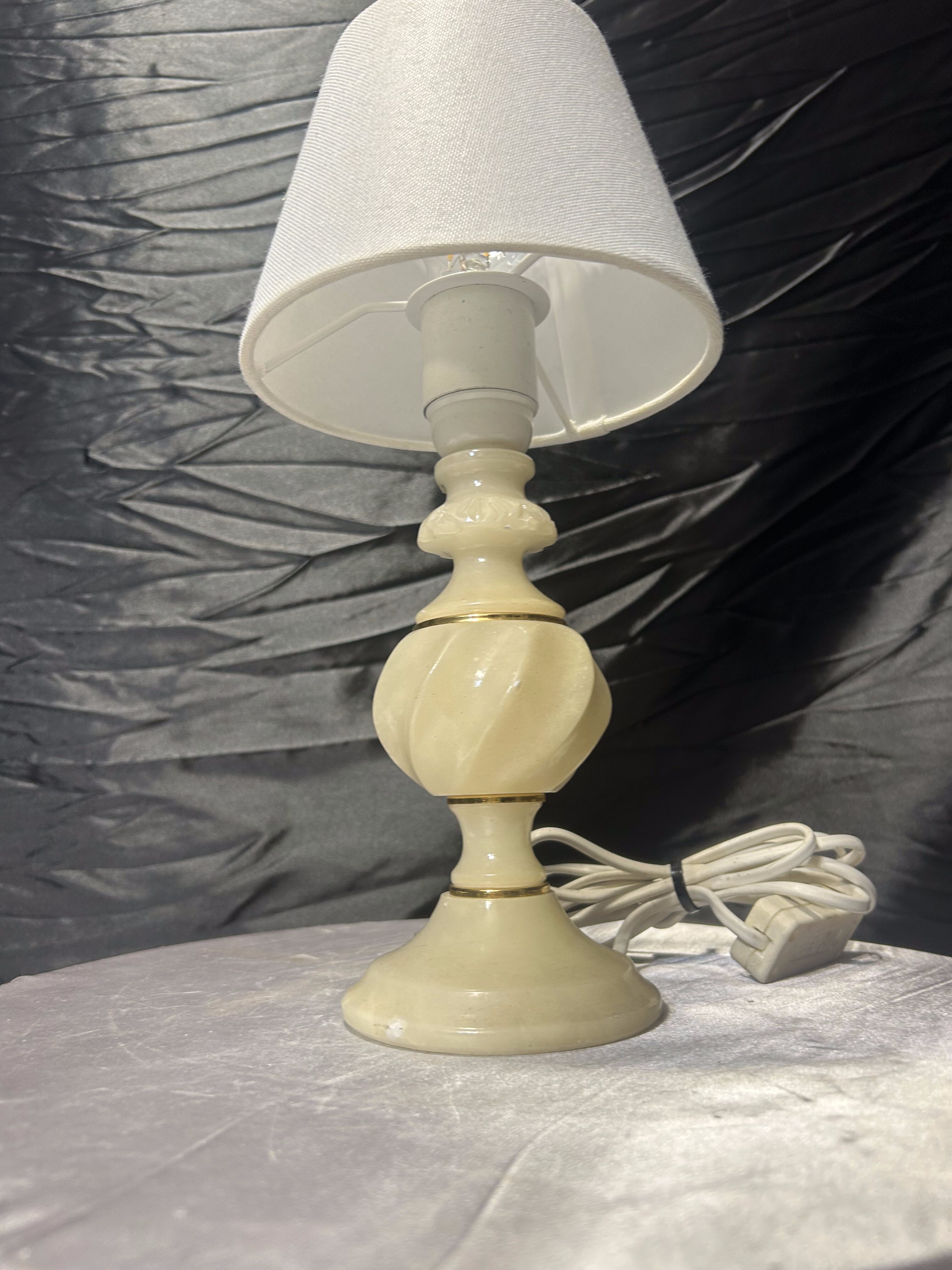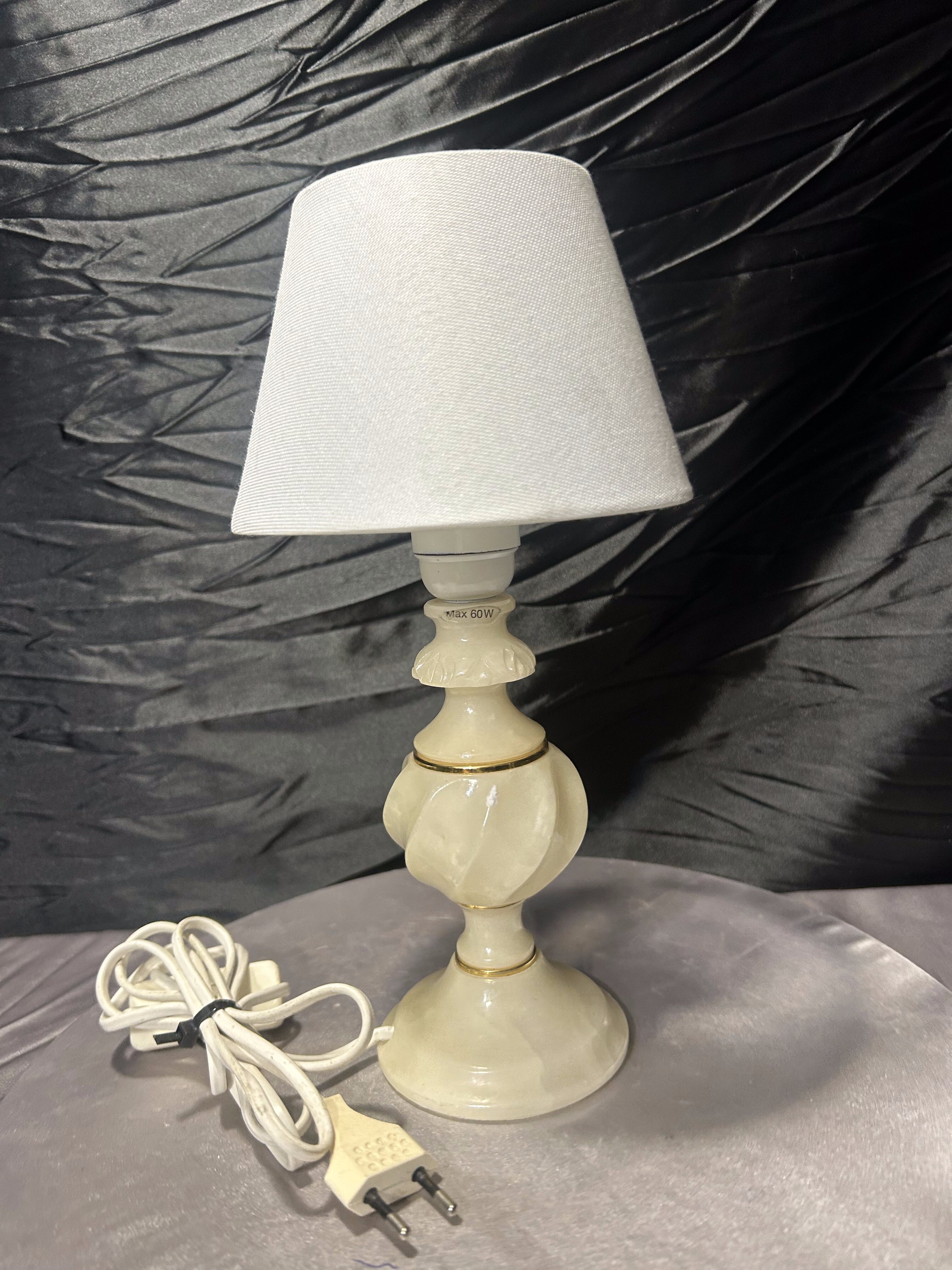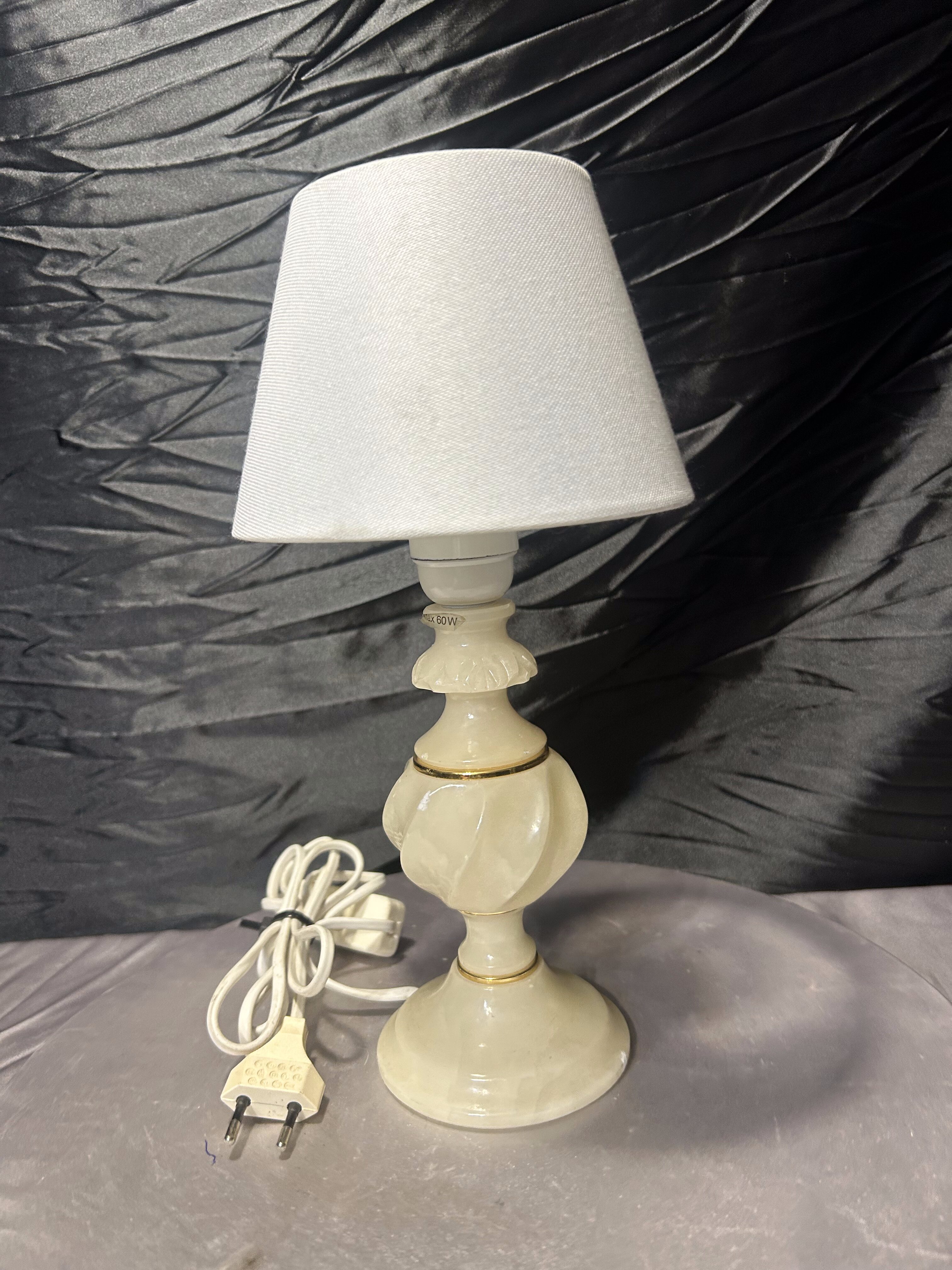 Lampa stołowa z alabastru z abażurem – kompaktowa forma – klasyczny styl