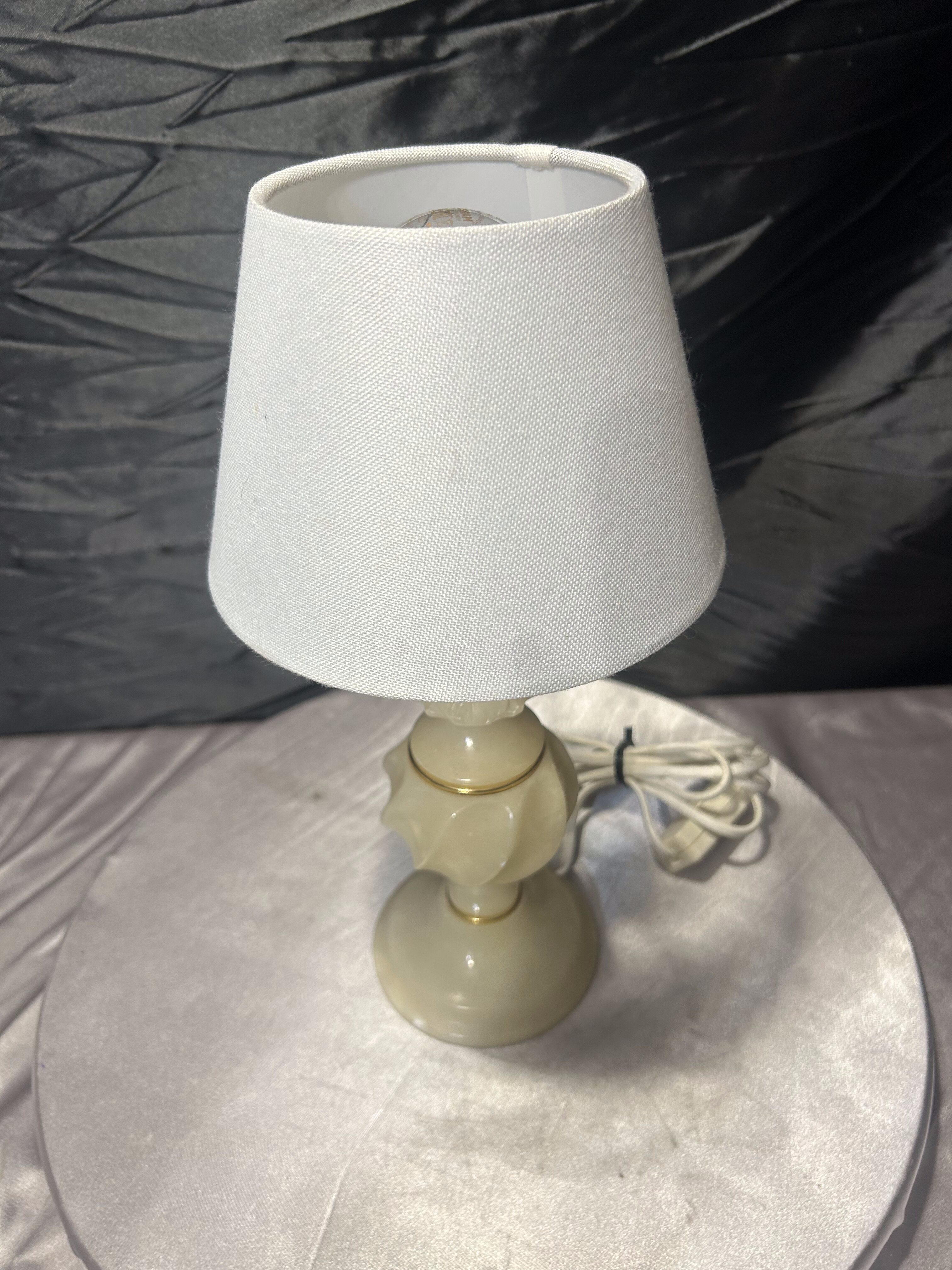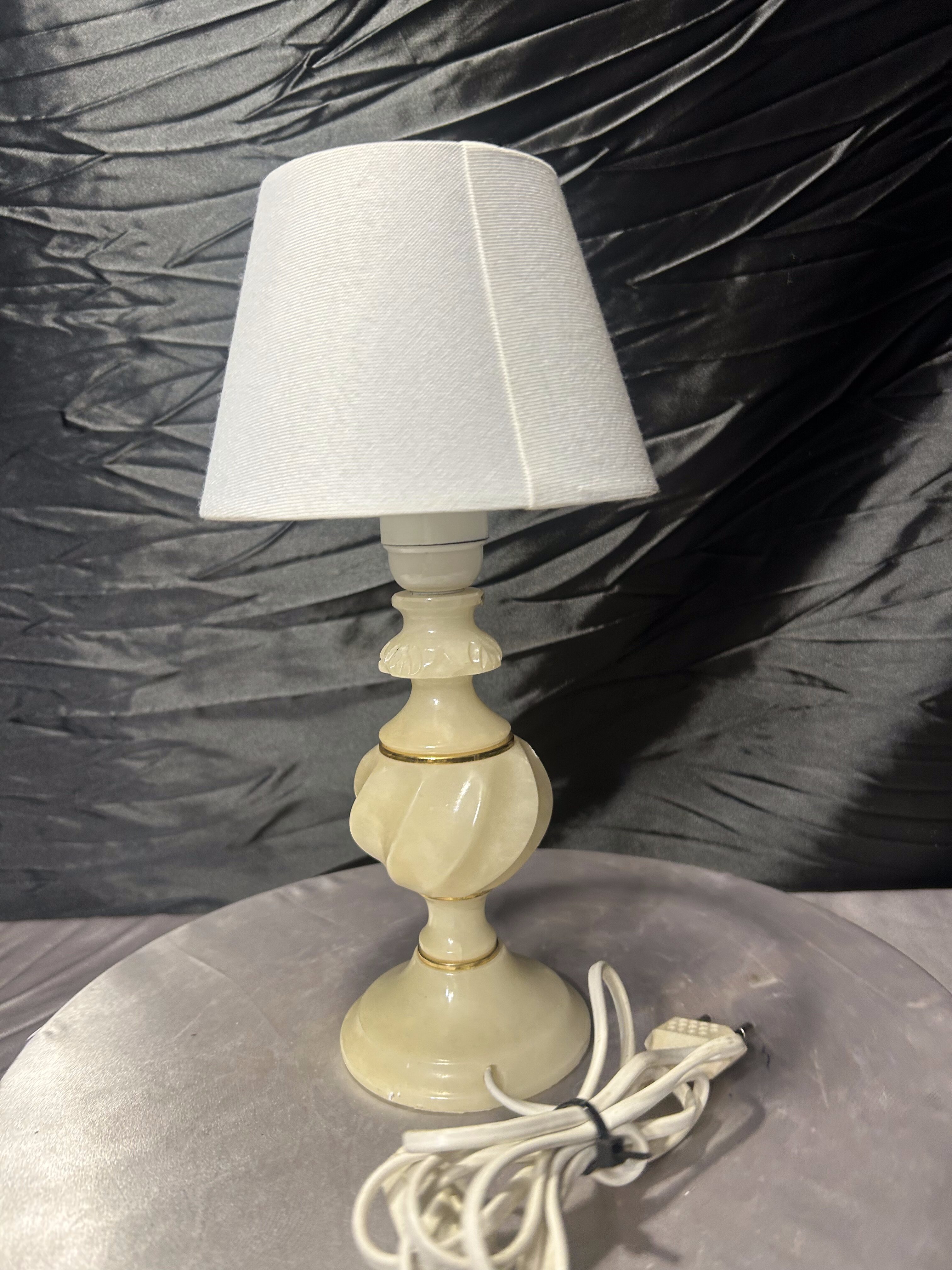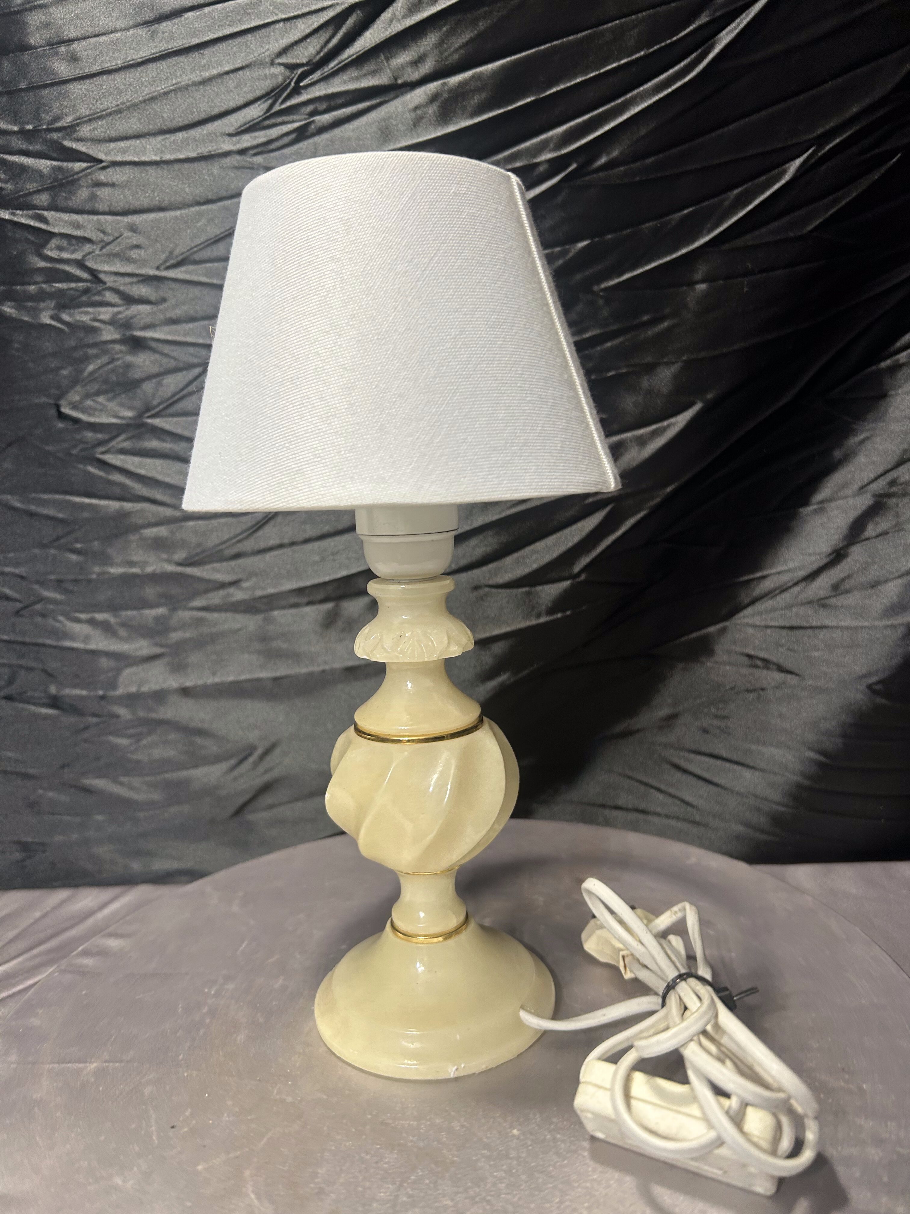 Lampa stołowa z alabastru z abażurem – kompaktowa forma – klasyczny styl