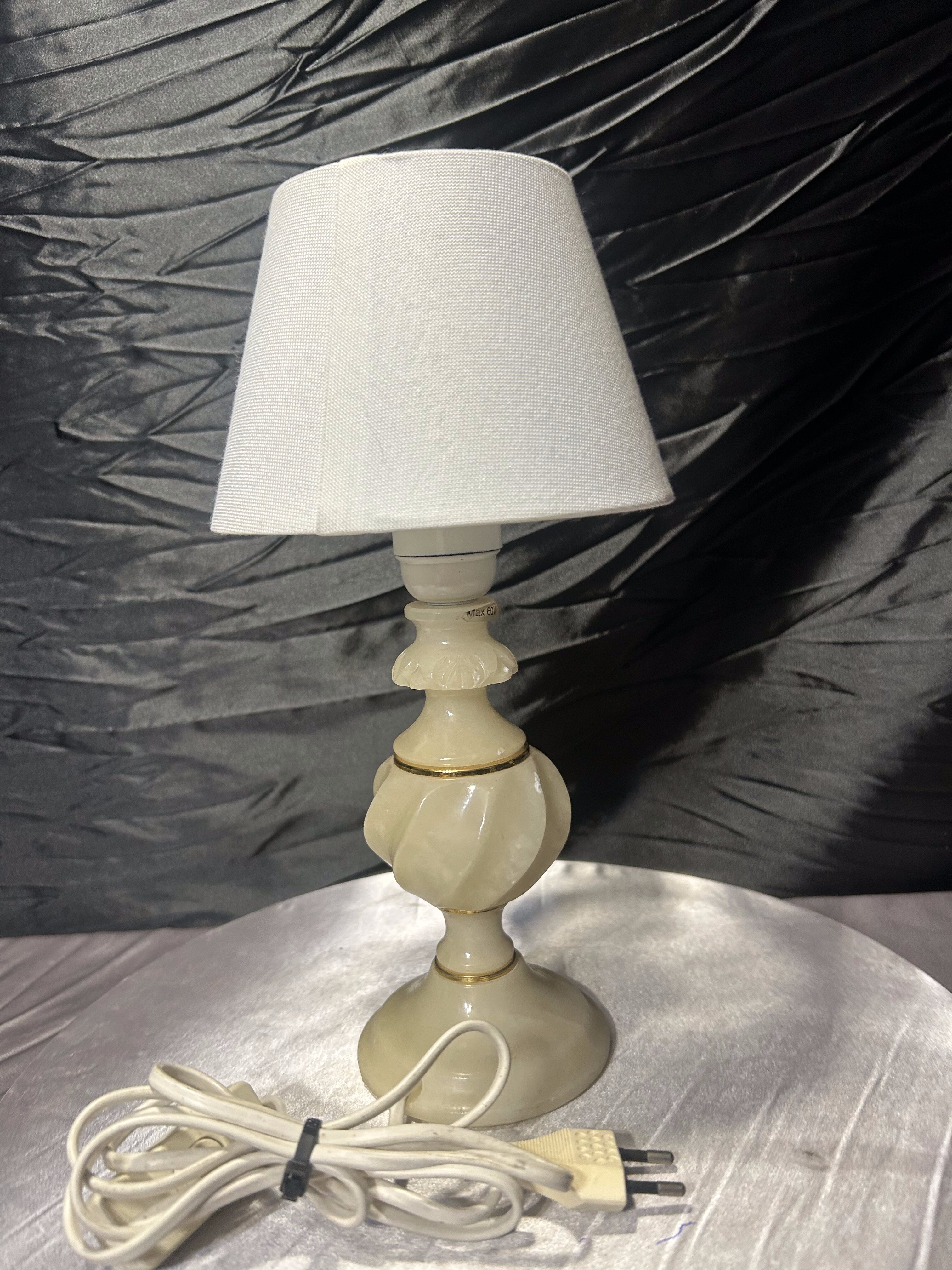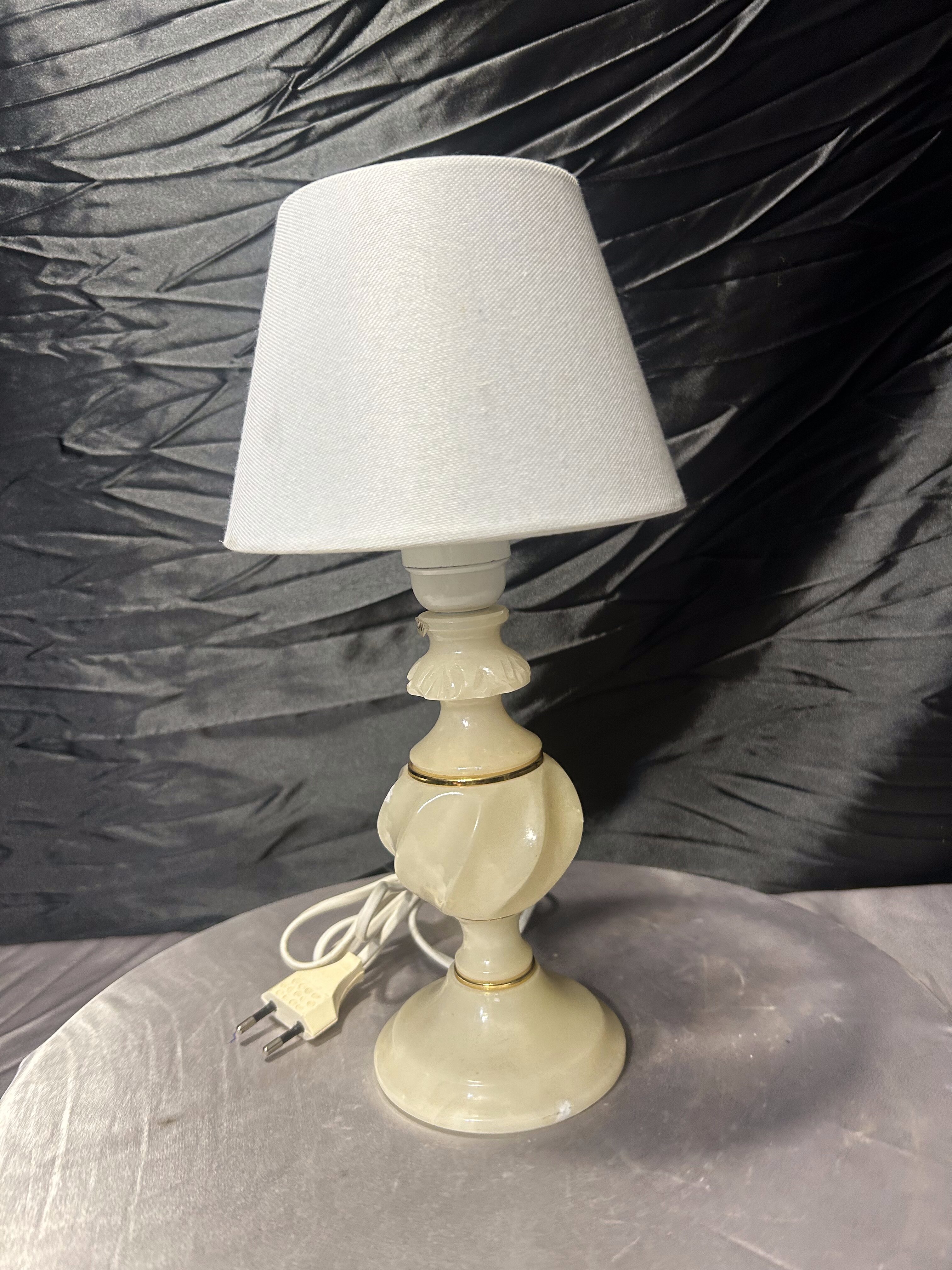 - Lampa stołowa z alabastru z abażurem – kompaktowa forma – klasyczny styl