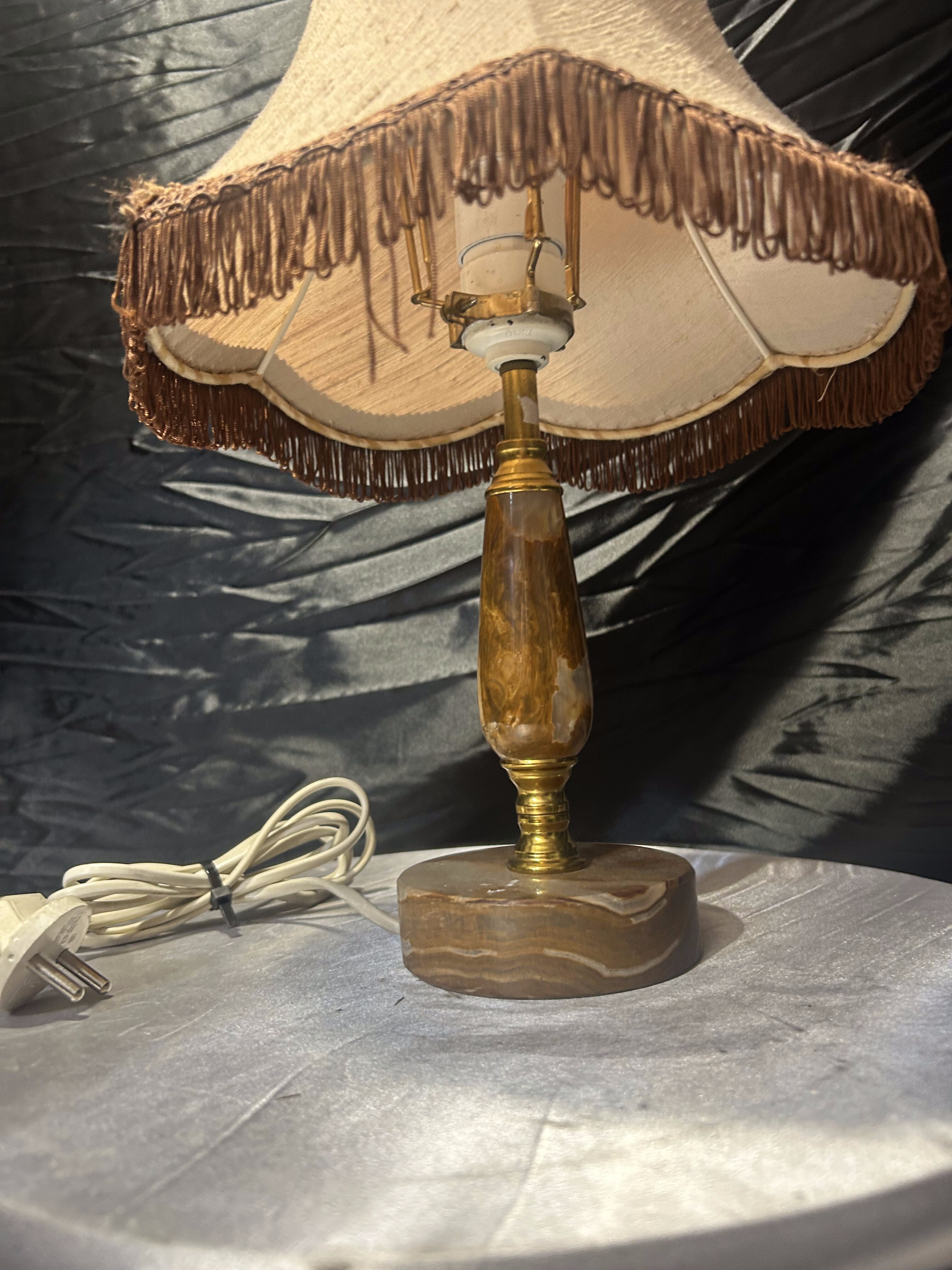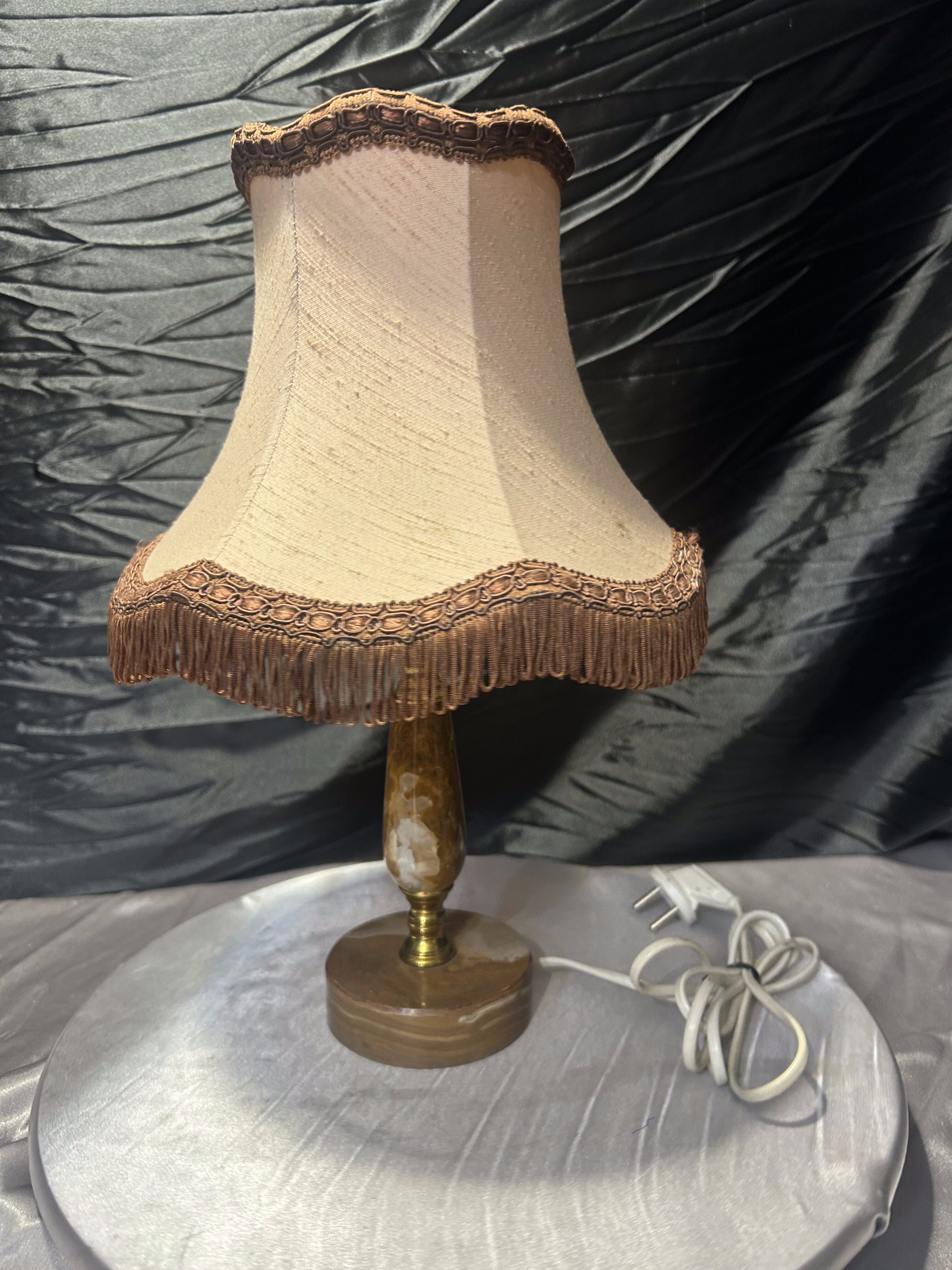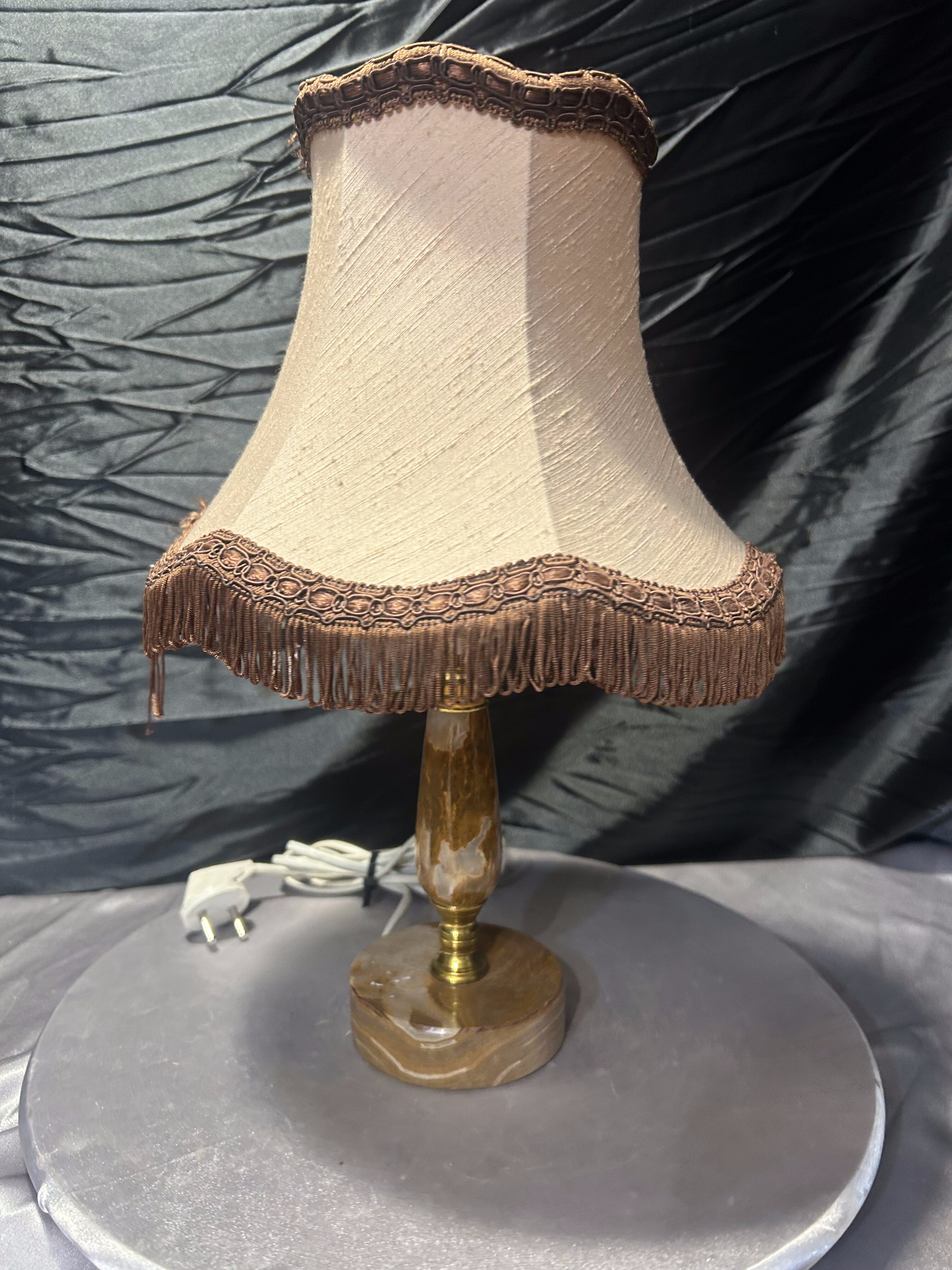 Lampa stołowa z onyksu z abażurem – klasyczna lampa dekoracyjna