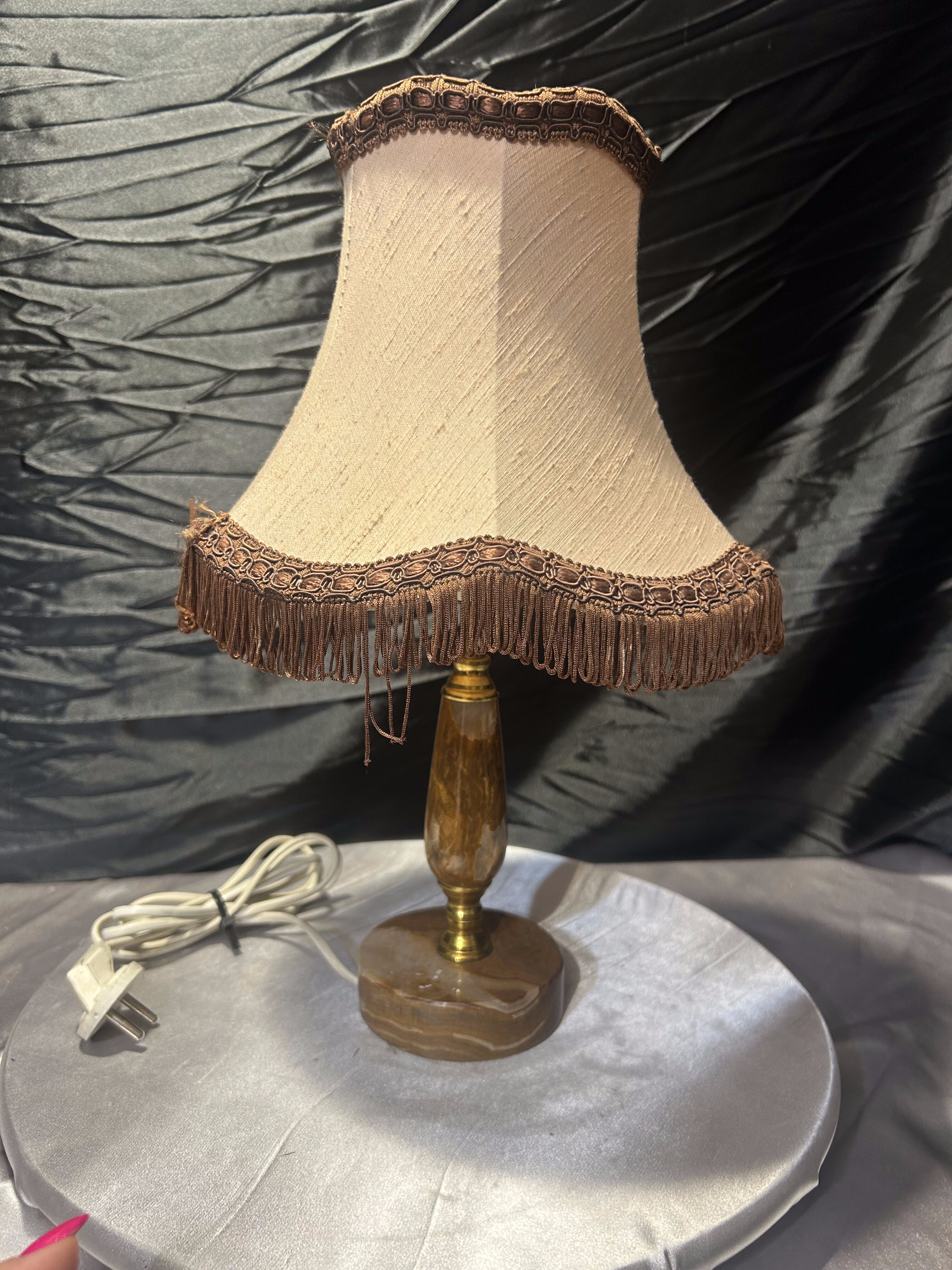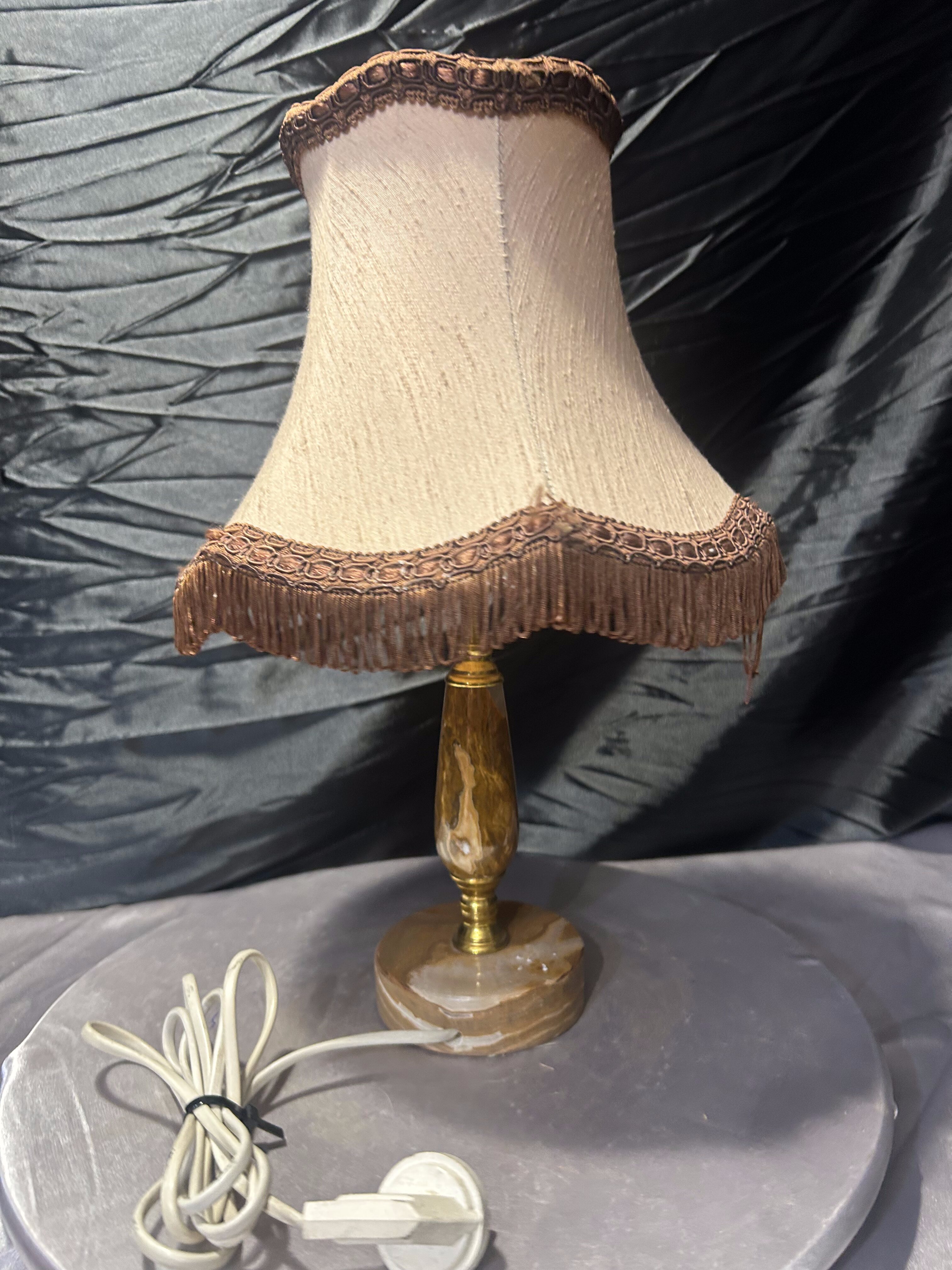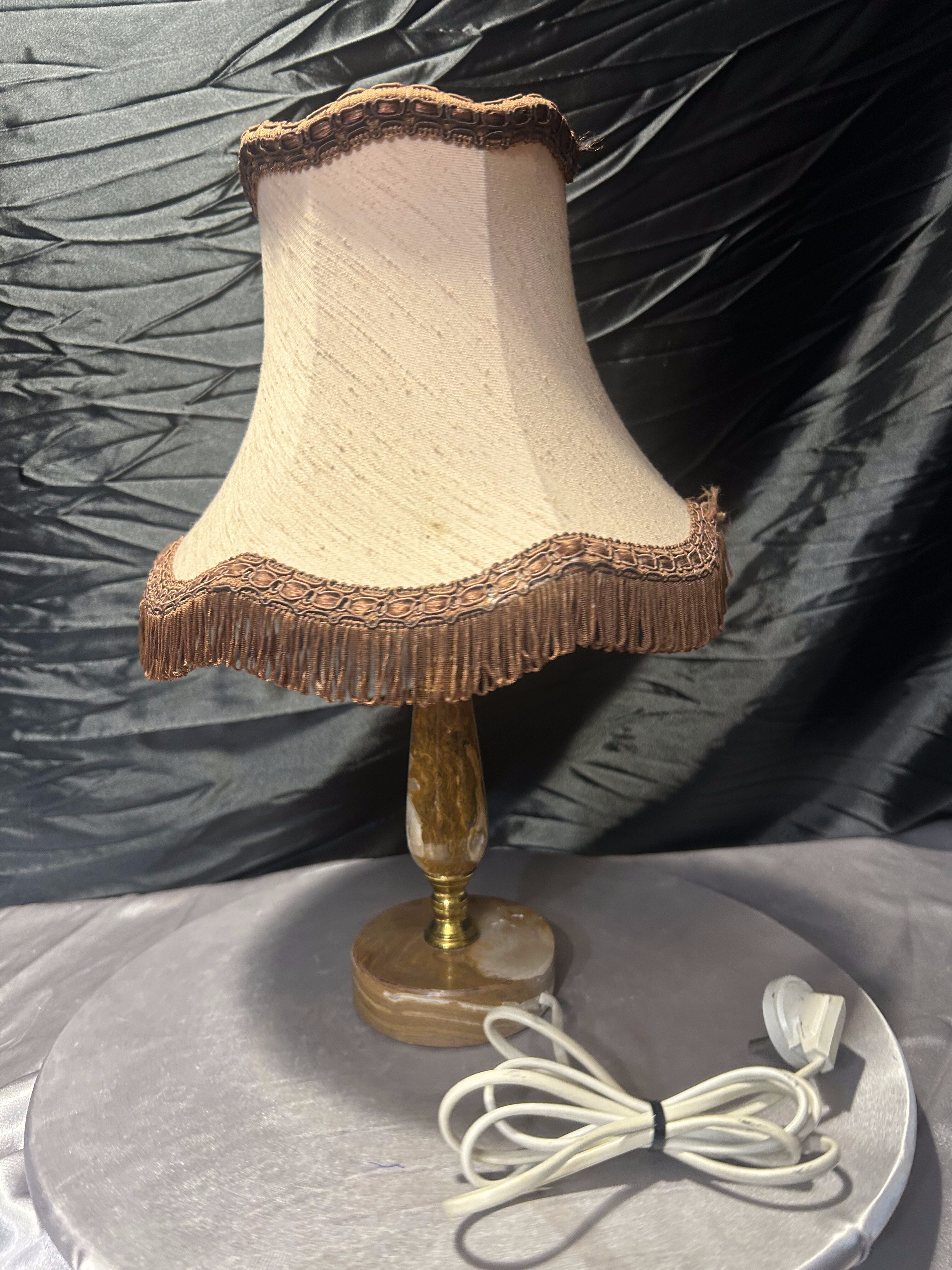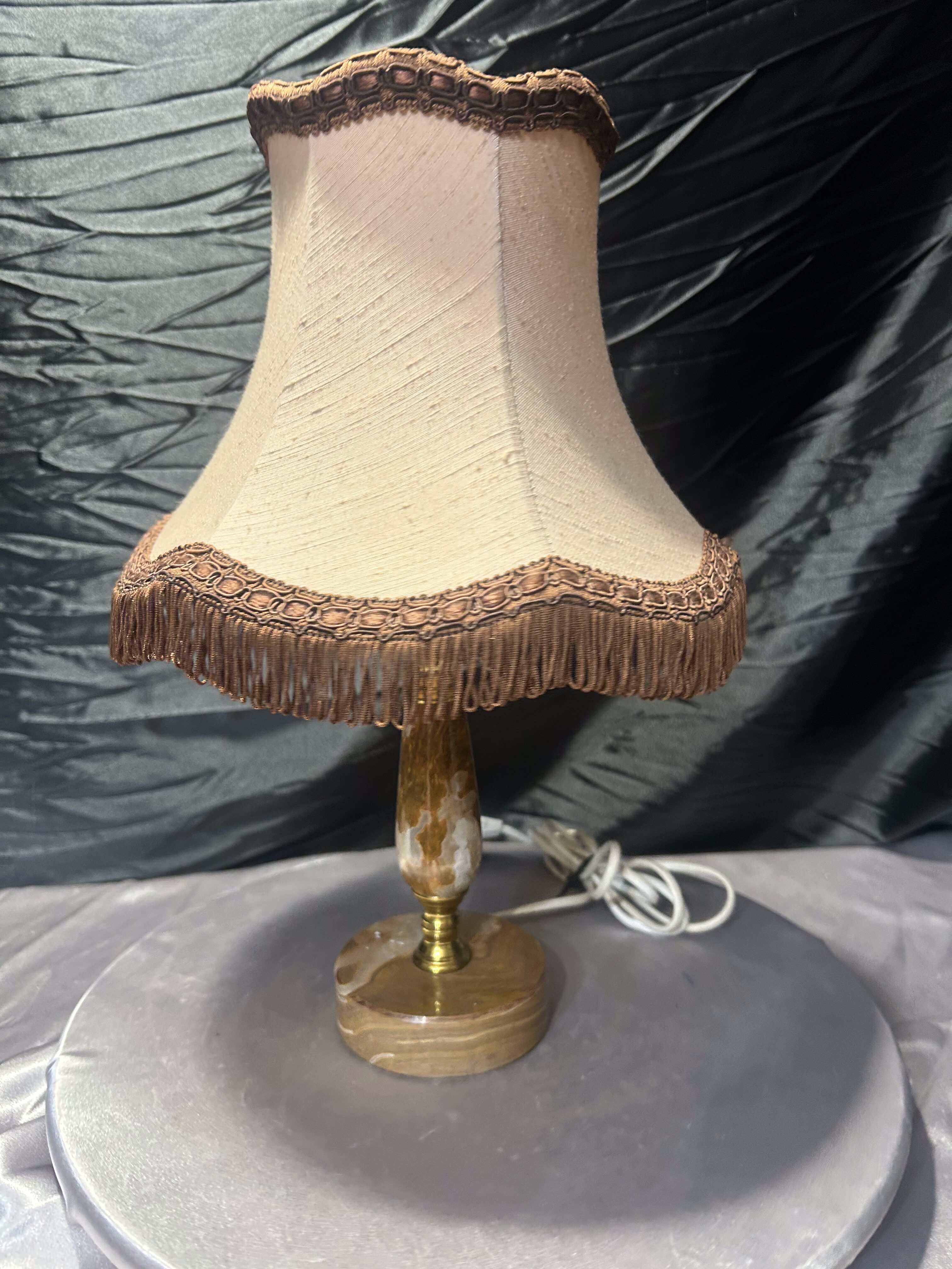 Lampa stołowa z onyksu z abażurem – klasyczna lampa dekoracyjna