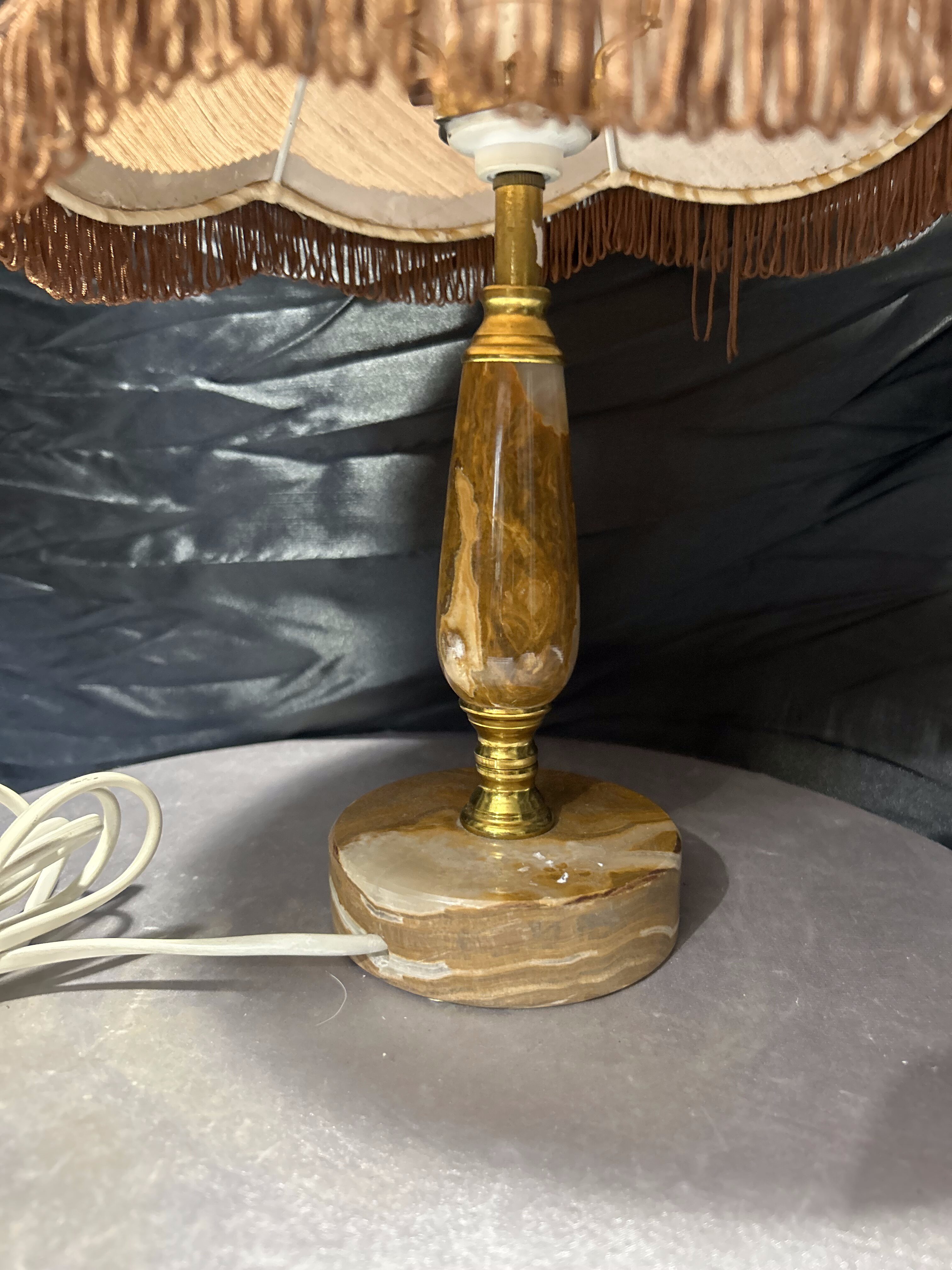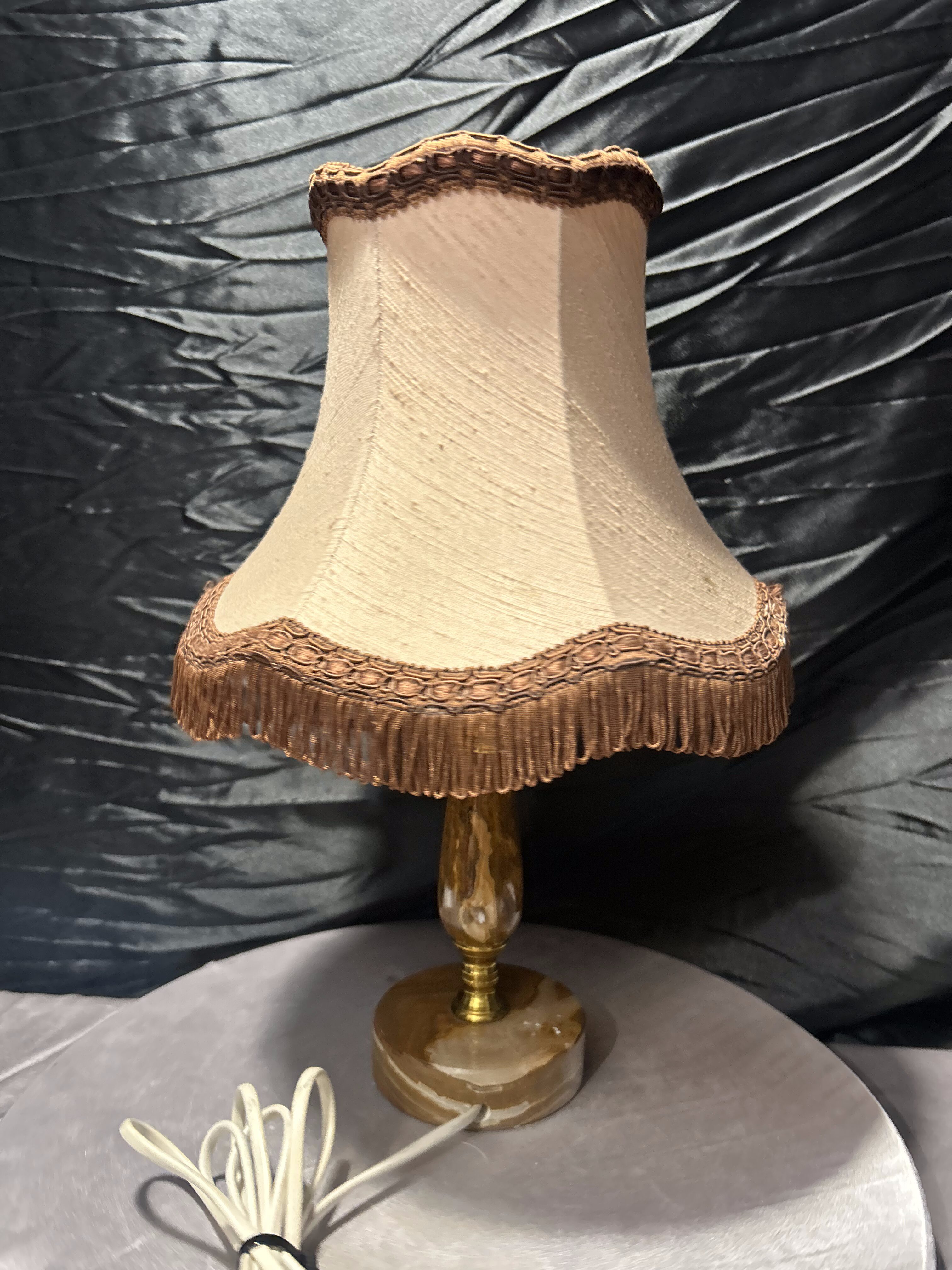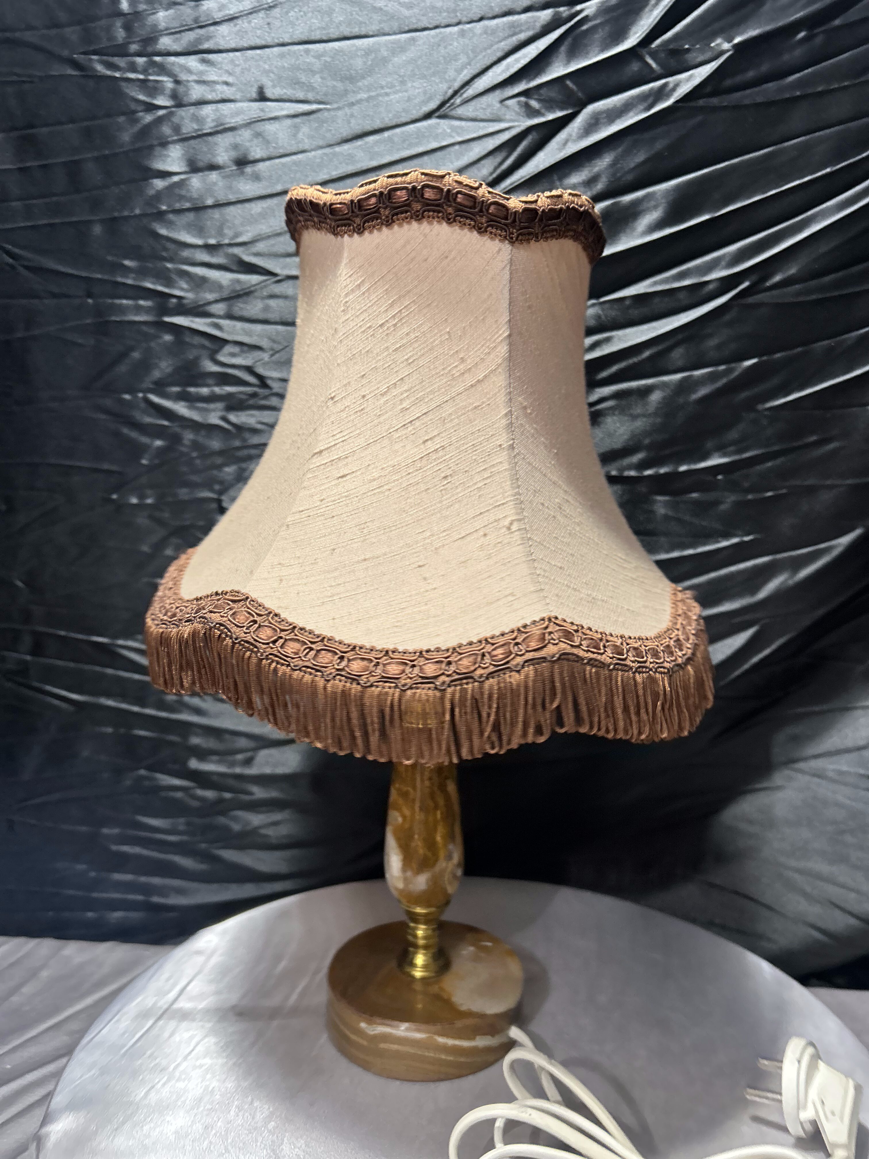 Lampa stołowa z onyksu z abażurem – zdobiona – styl klasyczny