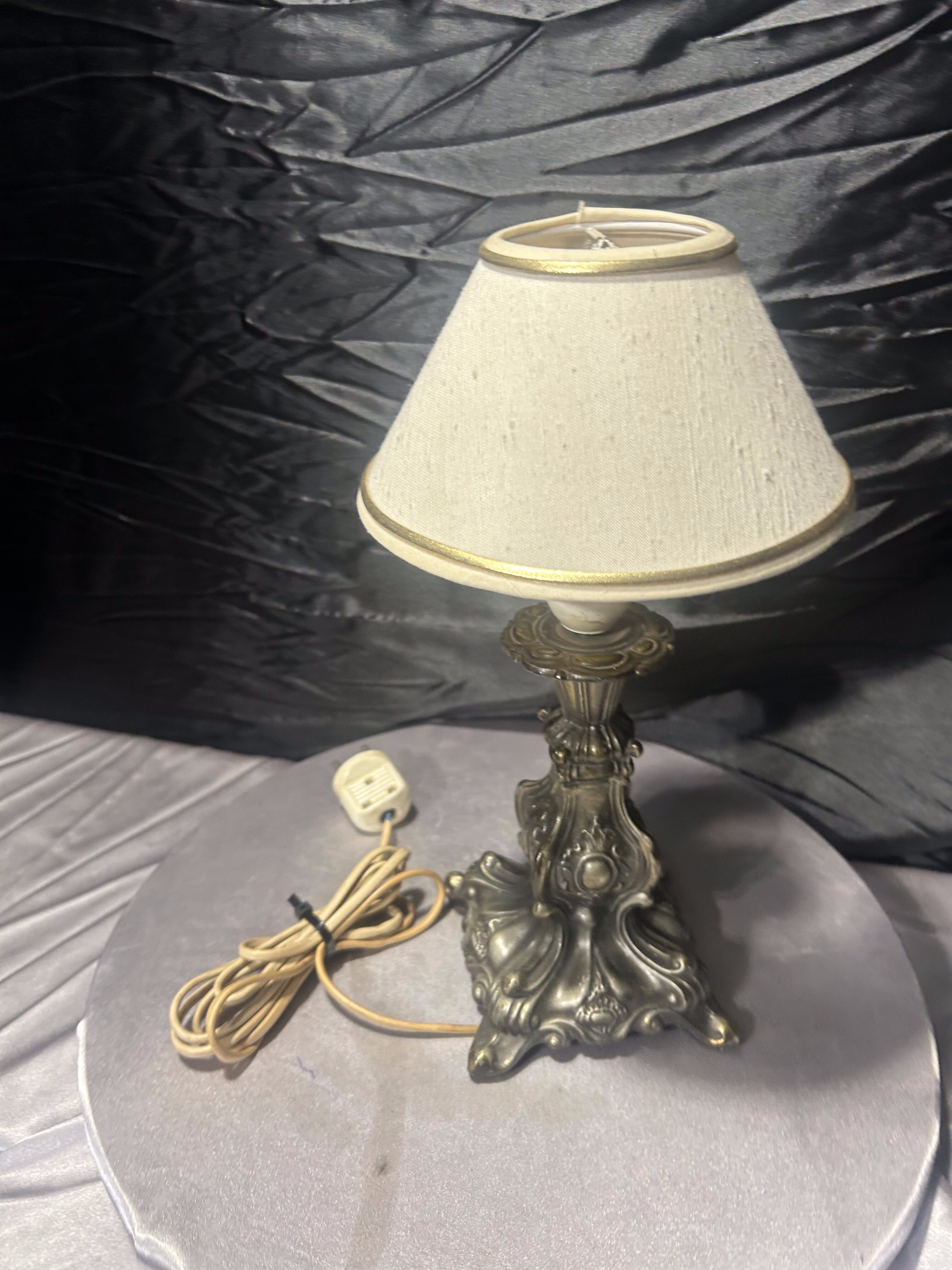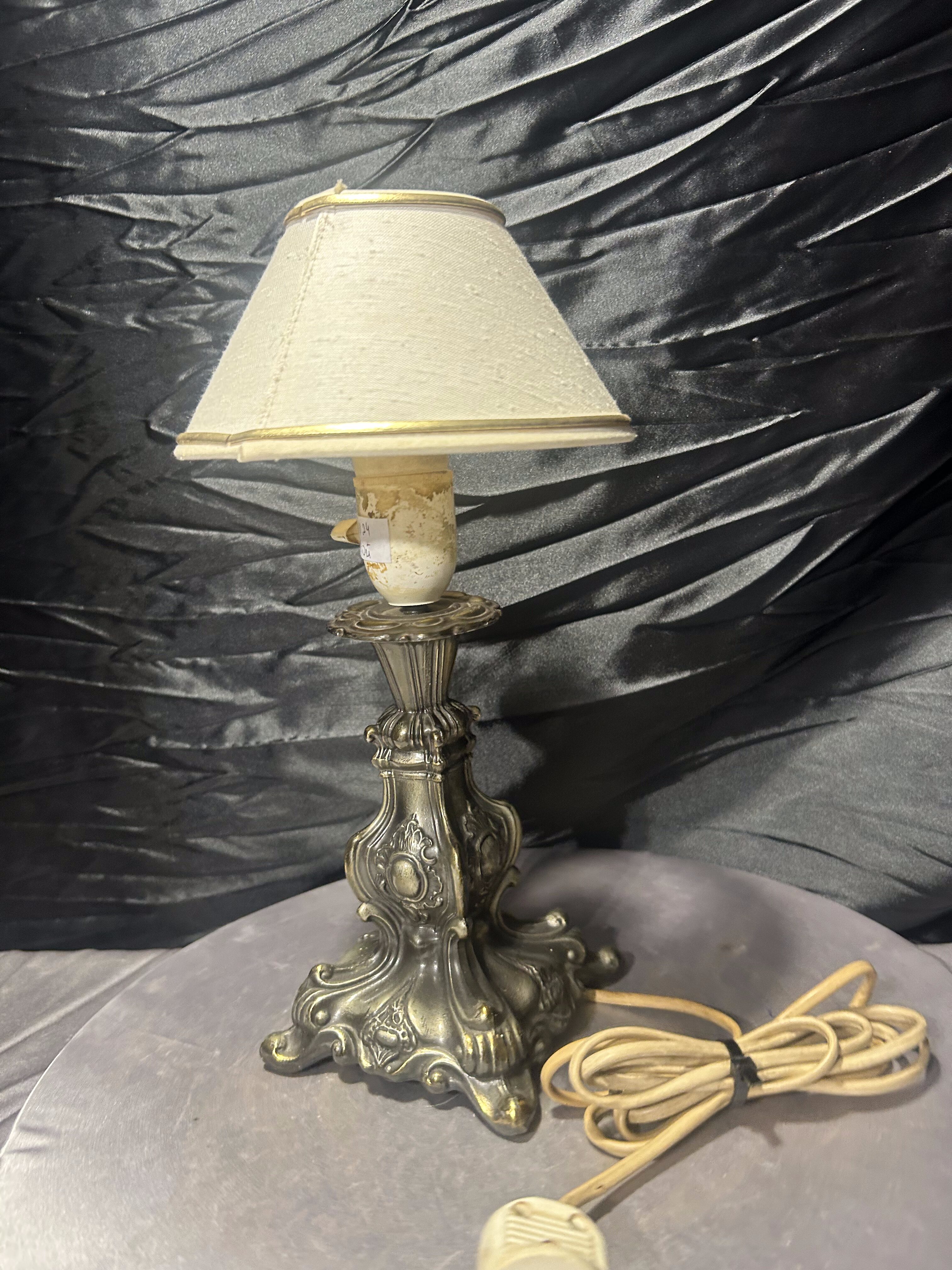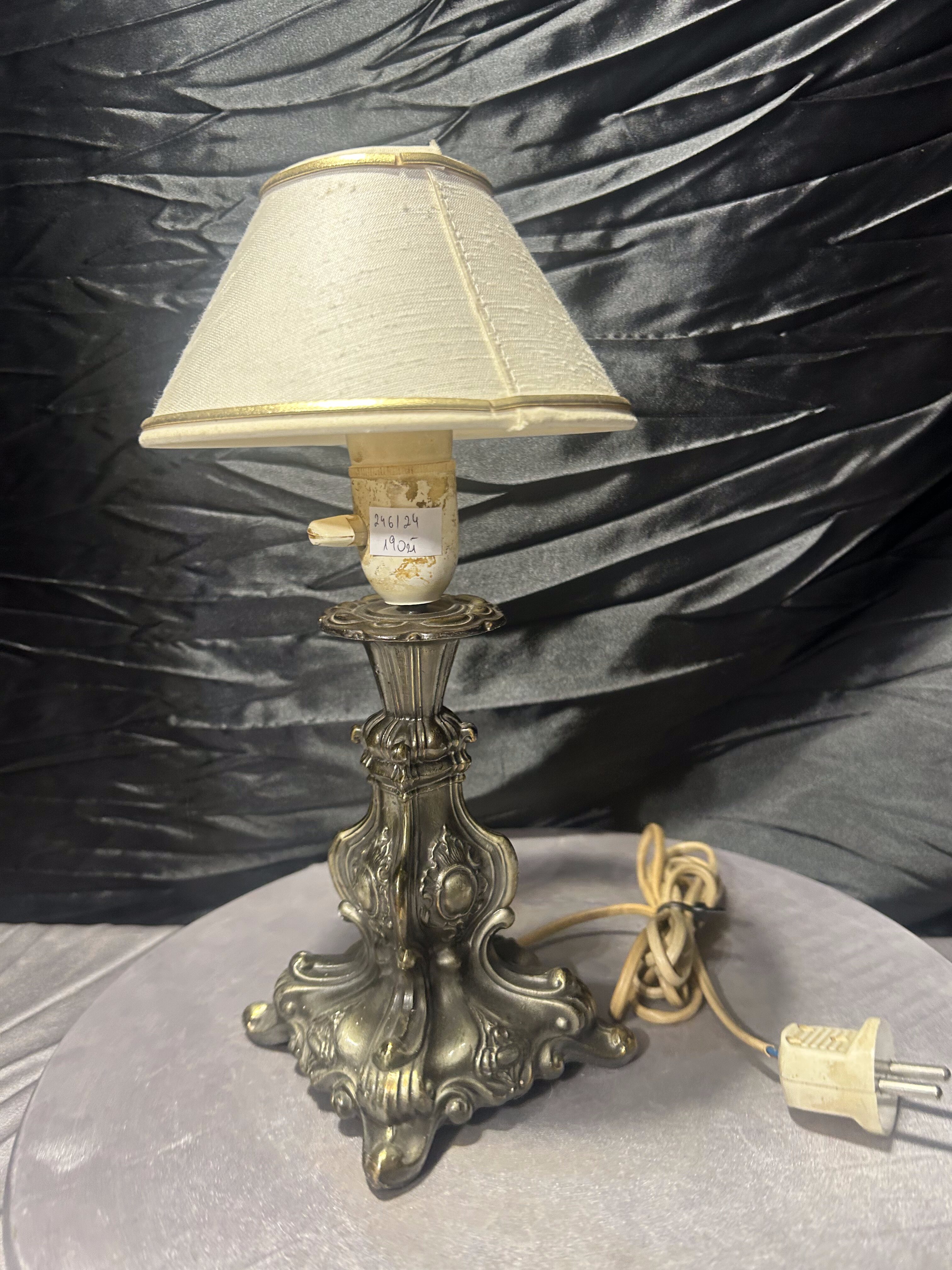 - Lampa stołowa żeliwna z abażurem – zdobiona – styl klasyczny