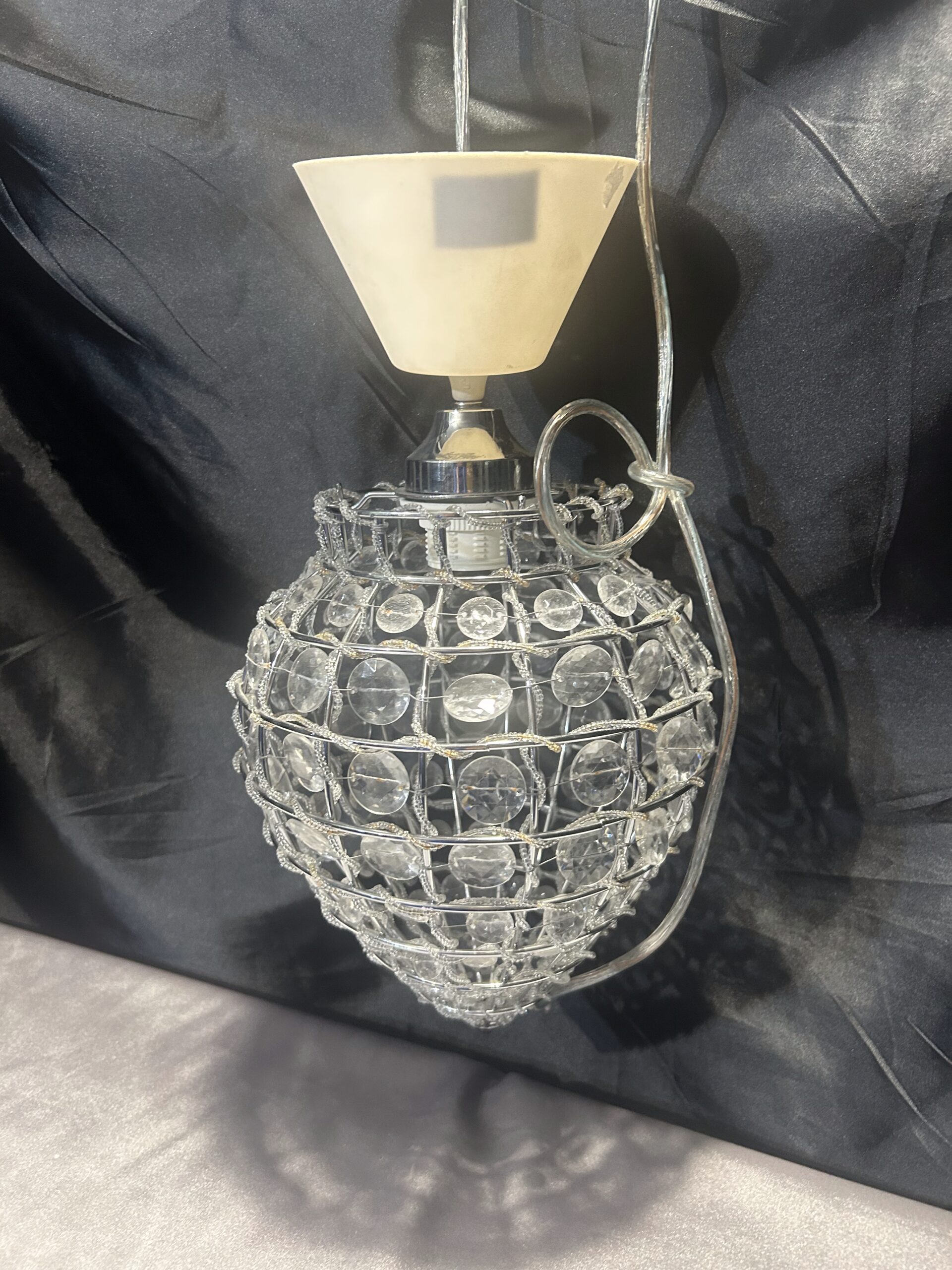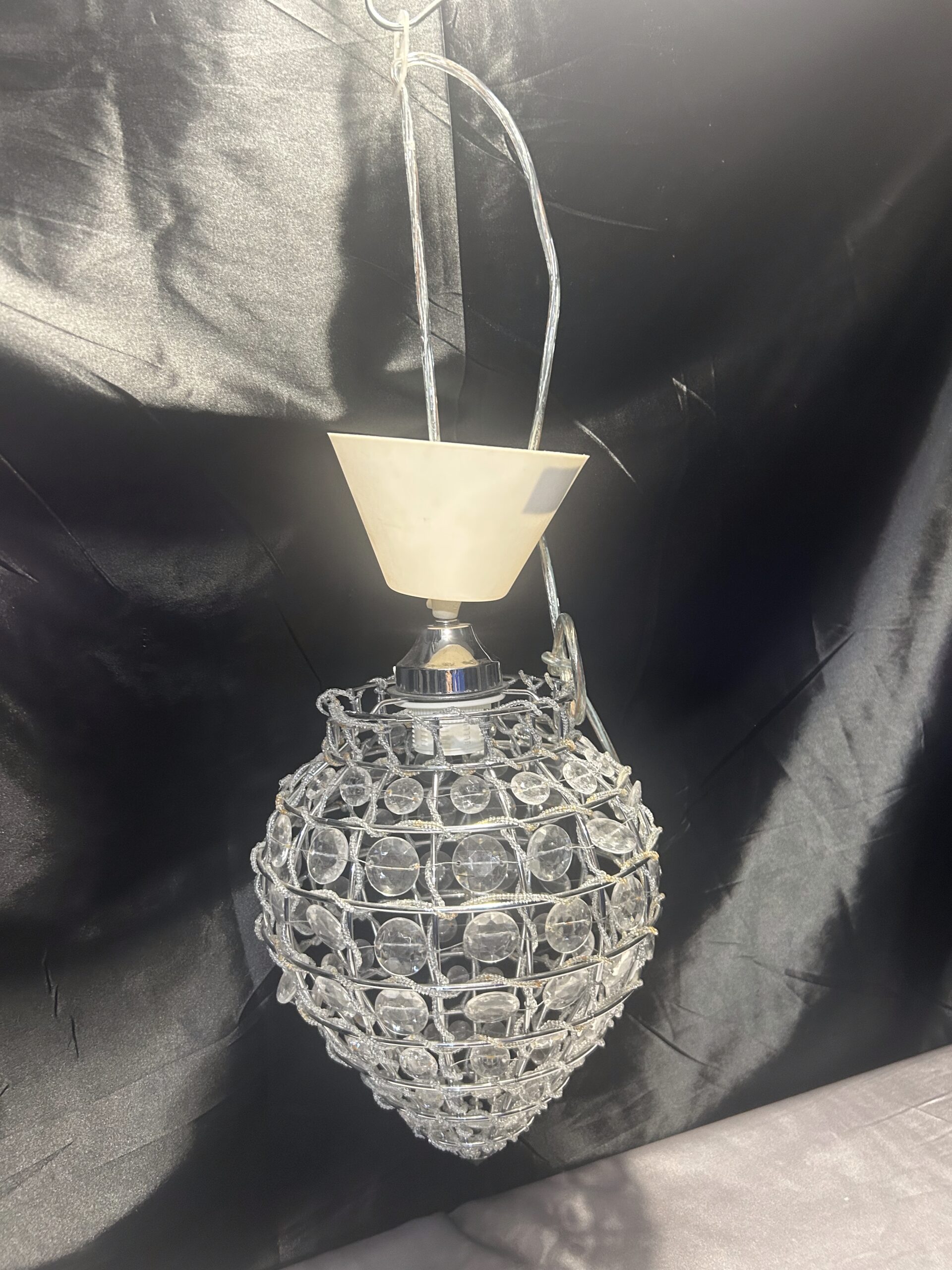 Stylowa lampa wisząca w stylu glamour, ozdobiona błyszczącymi kryształkami, które pięknie rozświetlają pokój i nadają wnętrzu elegancji. Idealna jako centralny punkt dekoracyjny w salonie, sypialni czy jadalni.