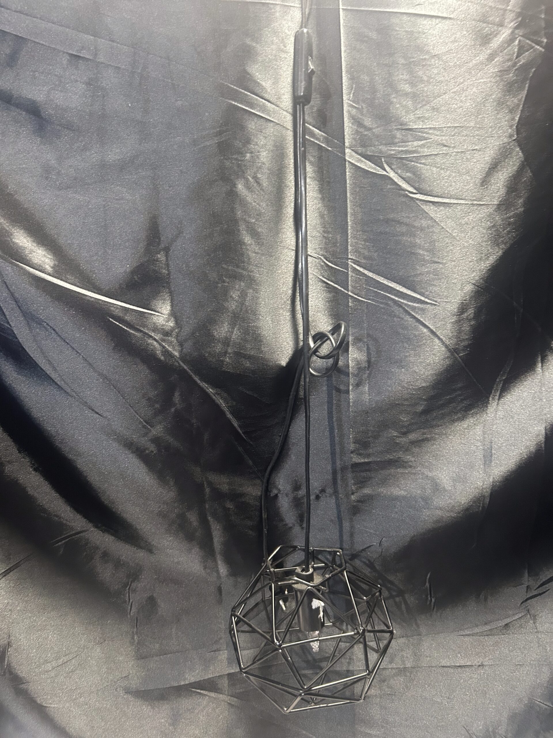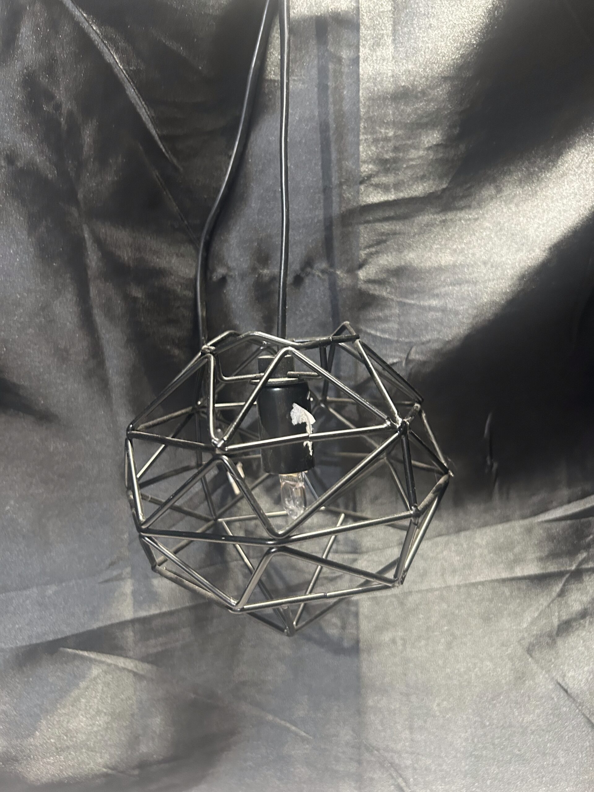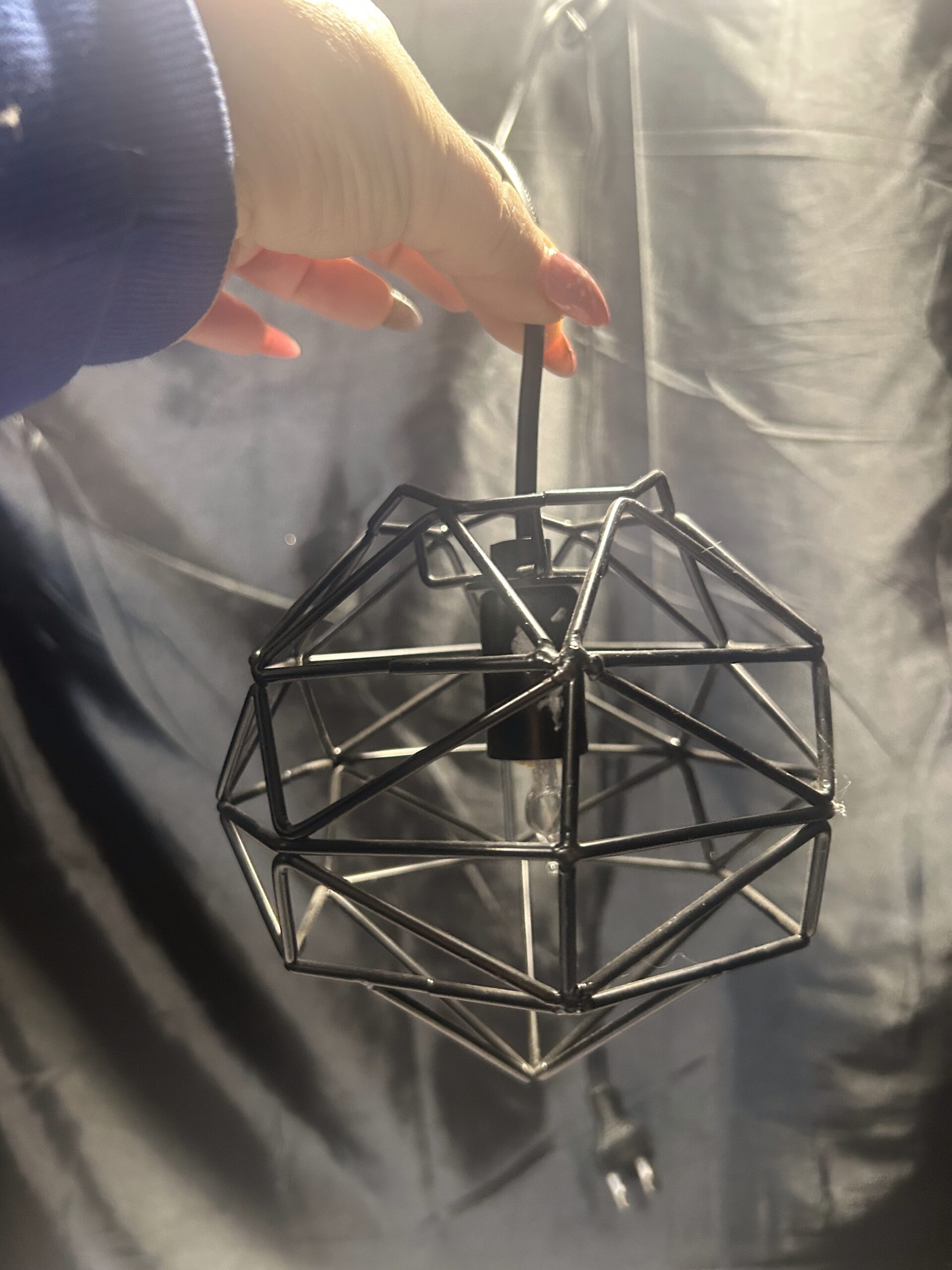 Nowoczesna lampa wisząca z kloszem wykonanym z metalowych prętów w kolorze czarnym. Zasilana na prąd, z włącznikiem, co sprawia, że jest wygodna i funkcjonalna. Idealna do wnętrz w stylu loftowym, industrialnym lub nowoczesnym.