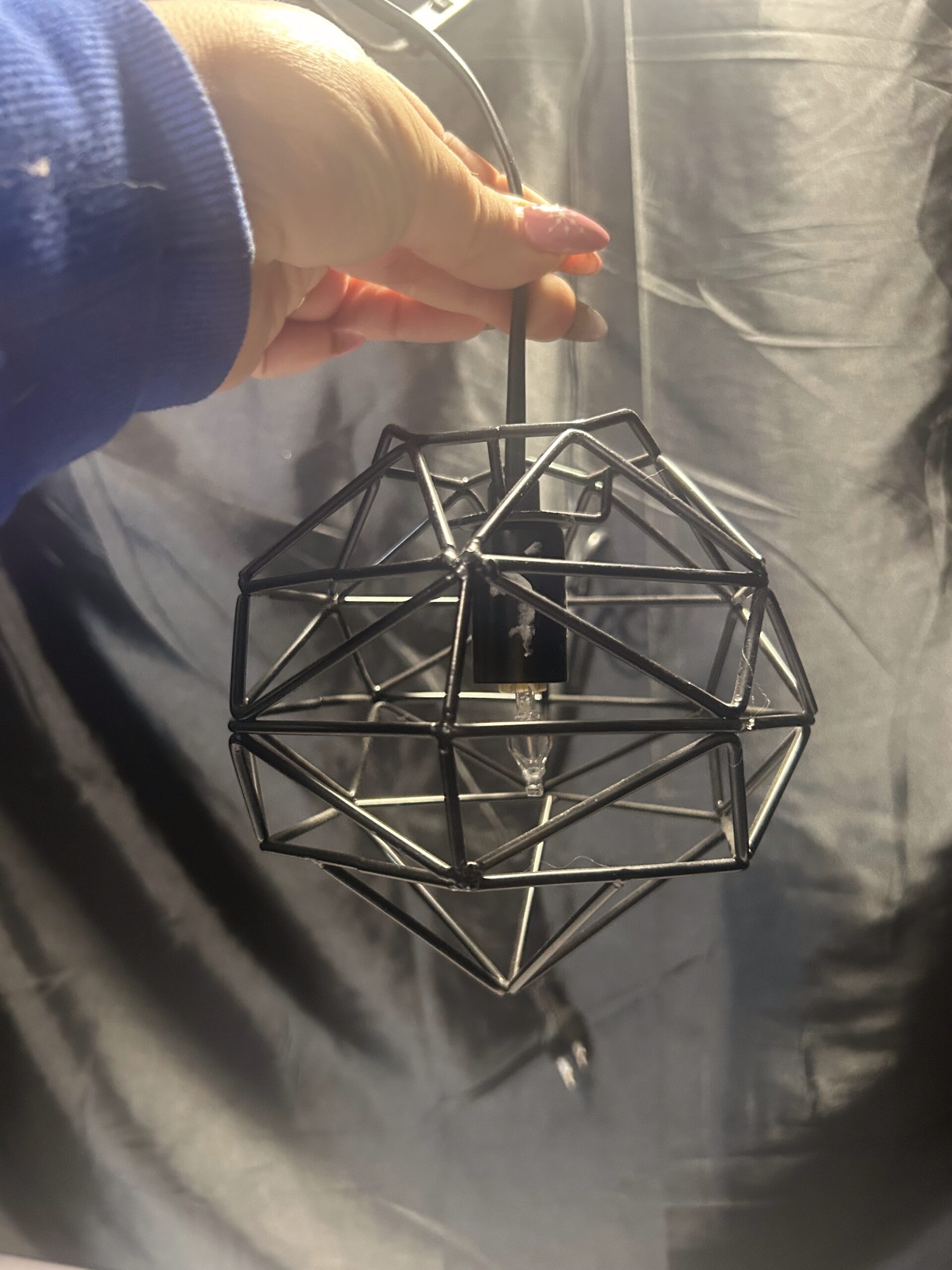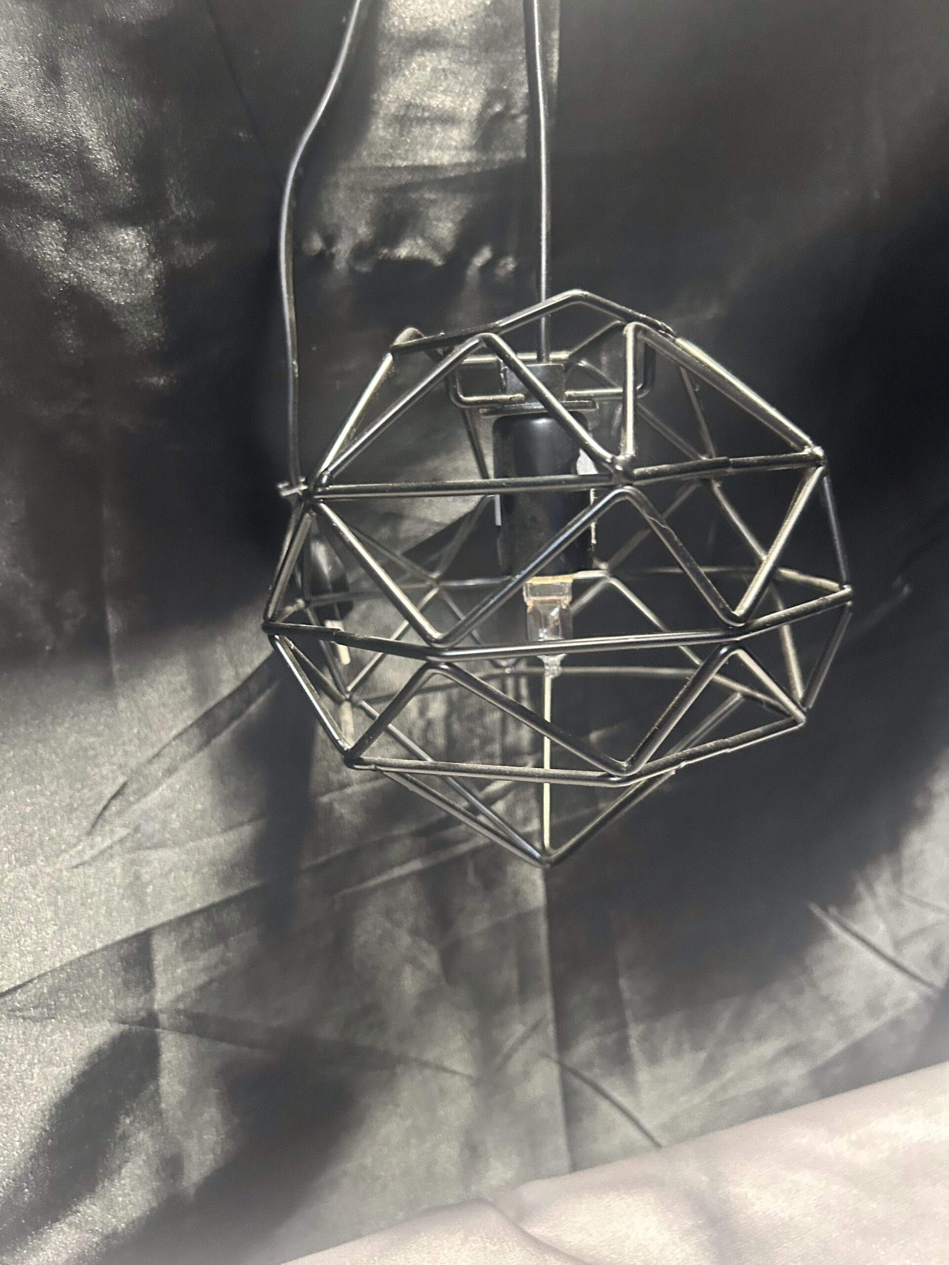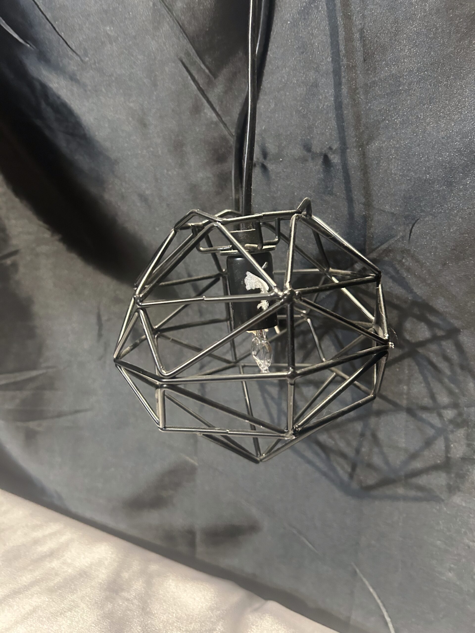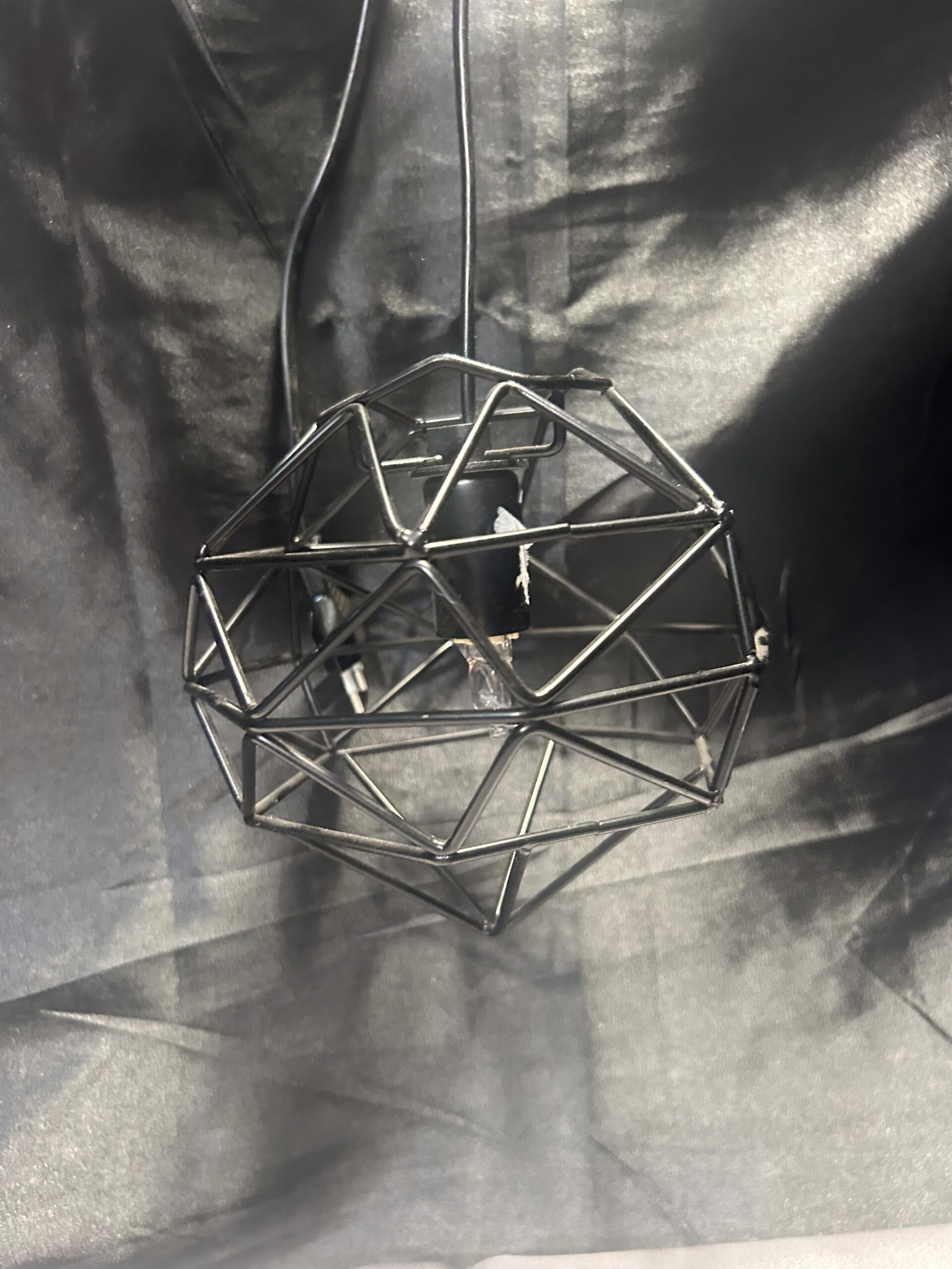 Nowoczesna lampa wisząca z kloszem wykonanym z metalowych prętów w kolorze czarnym. Zasilana na prąd, z włącznikiem, co sprawia, że jest wygodna i funkcjonalna. Idealna do wnętrz w stylu loftowym, industrialnym lub nowoczesnym.