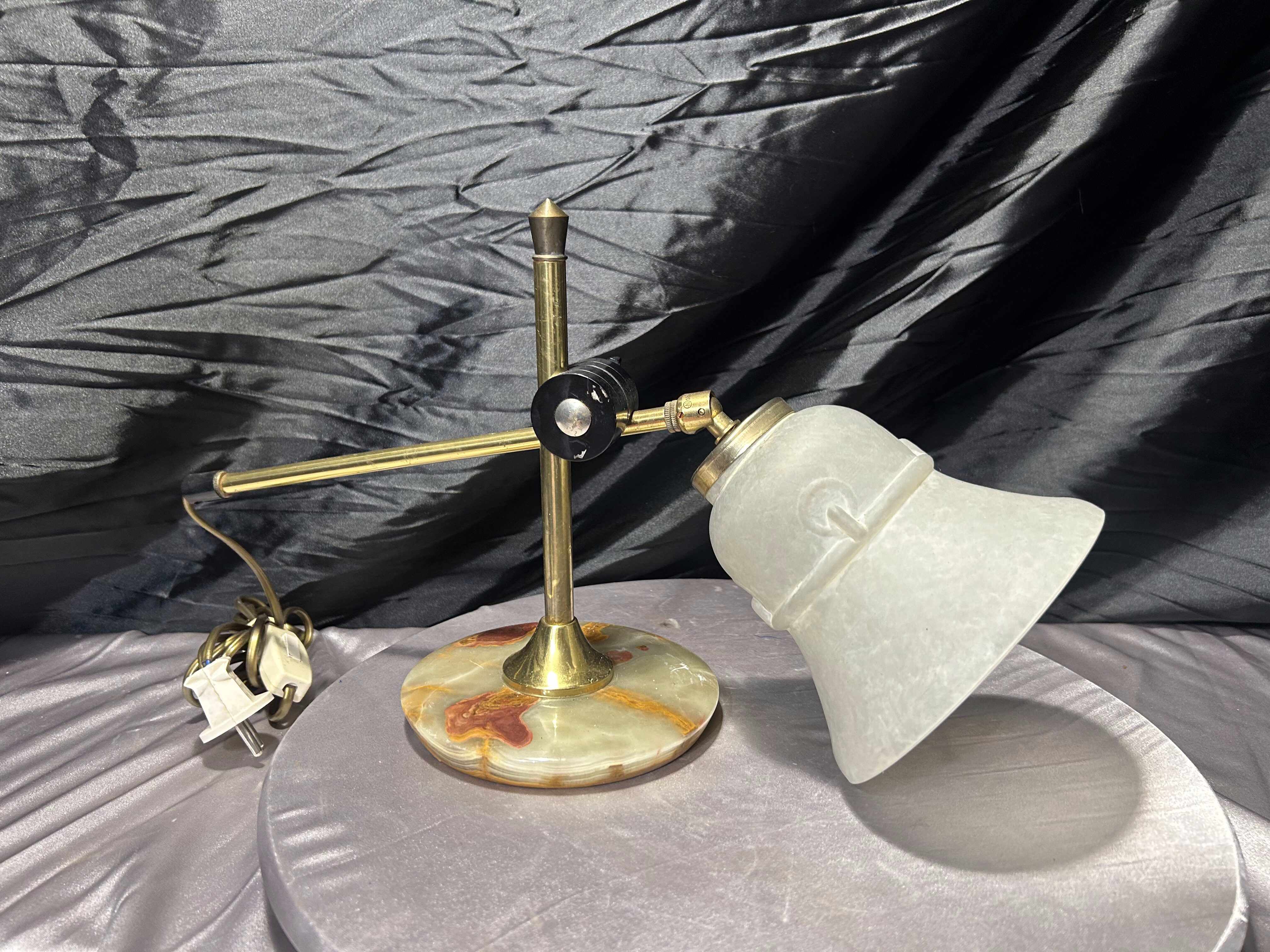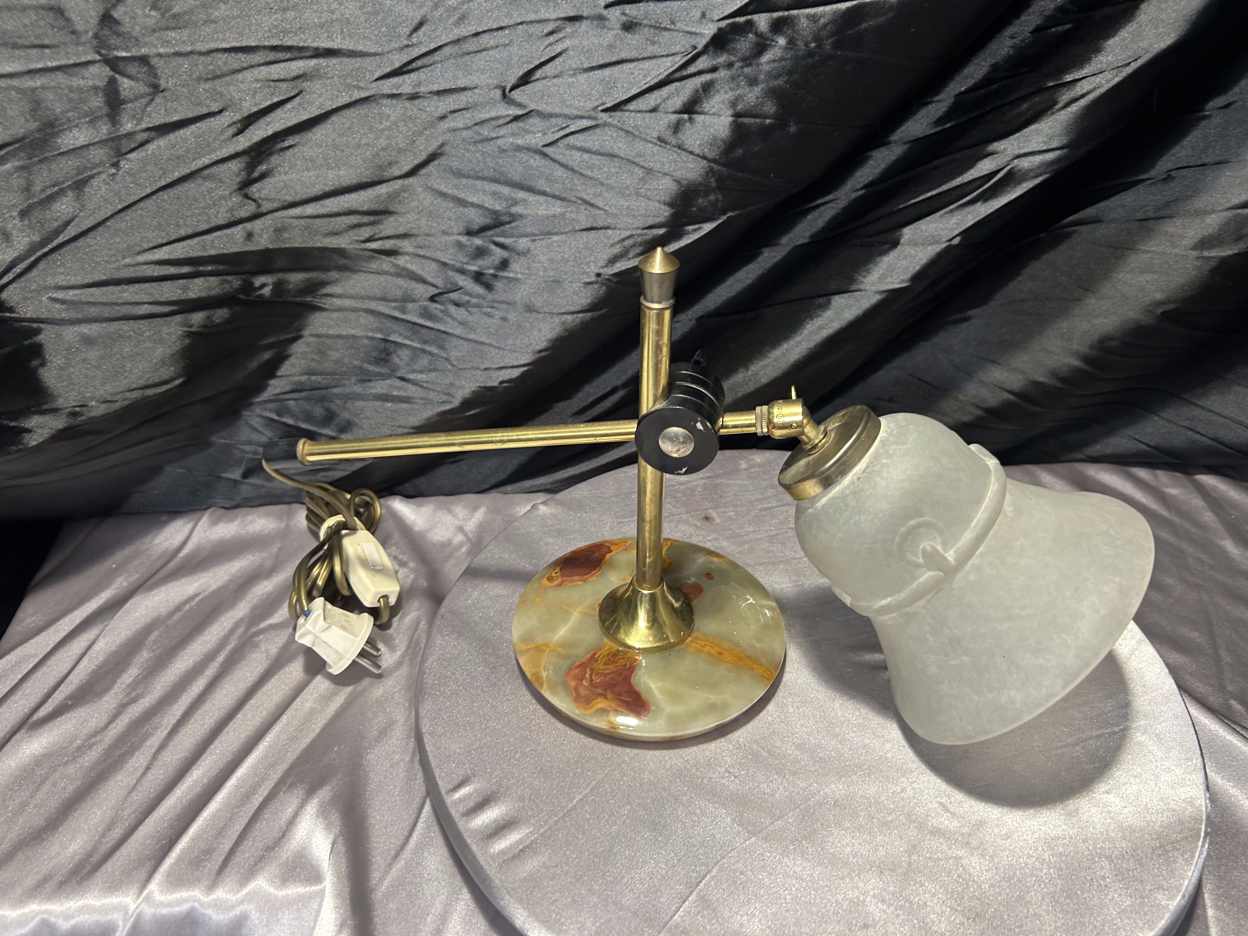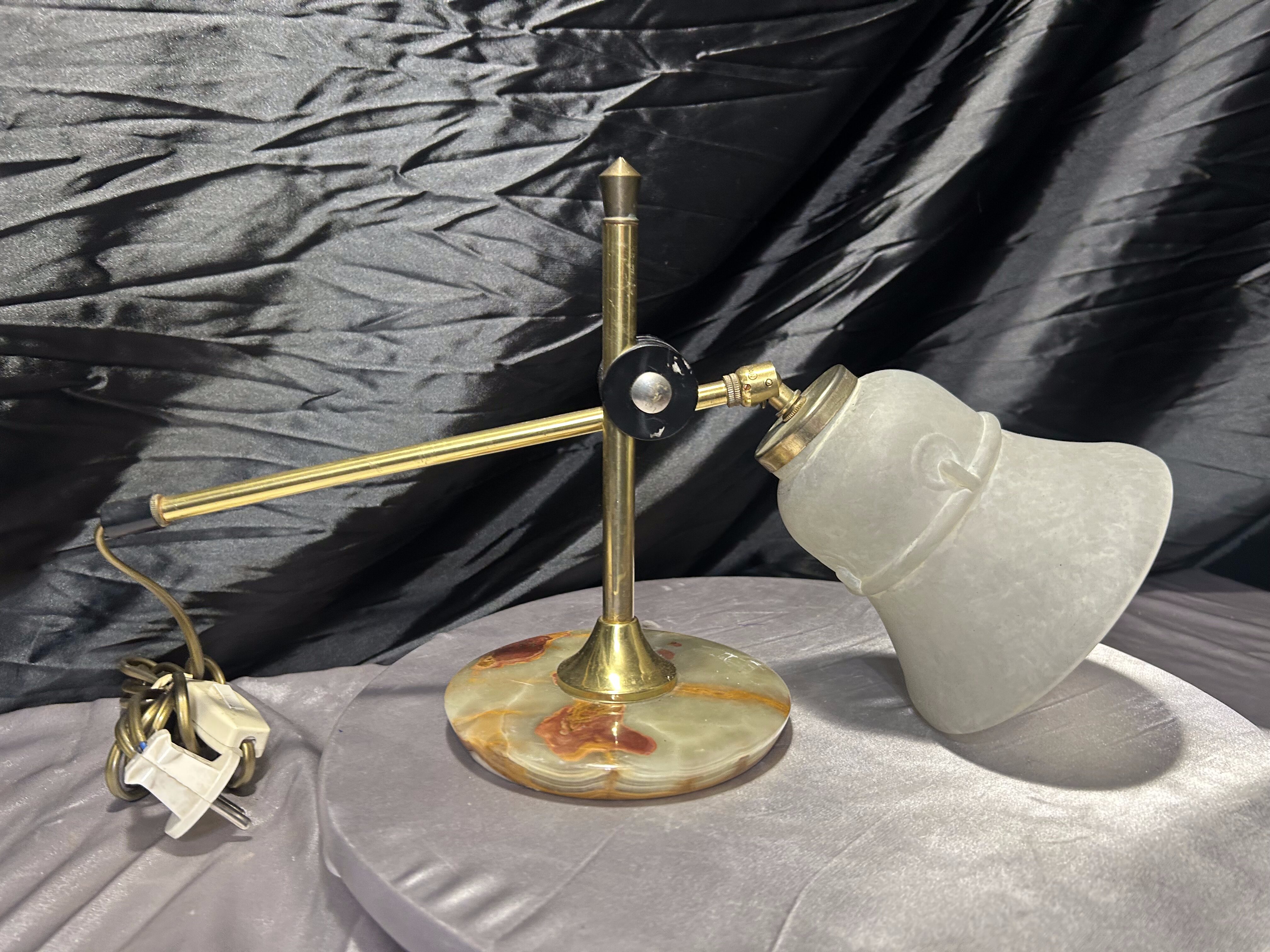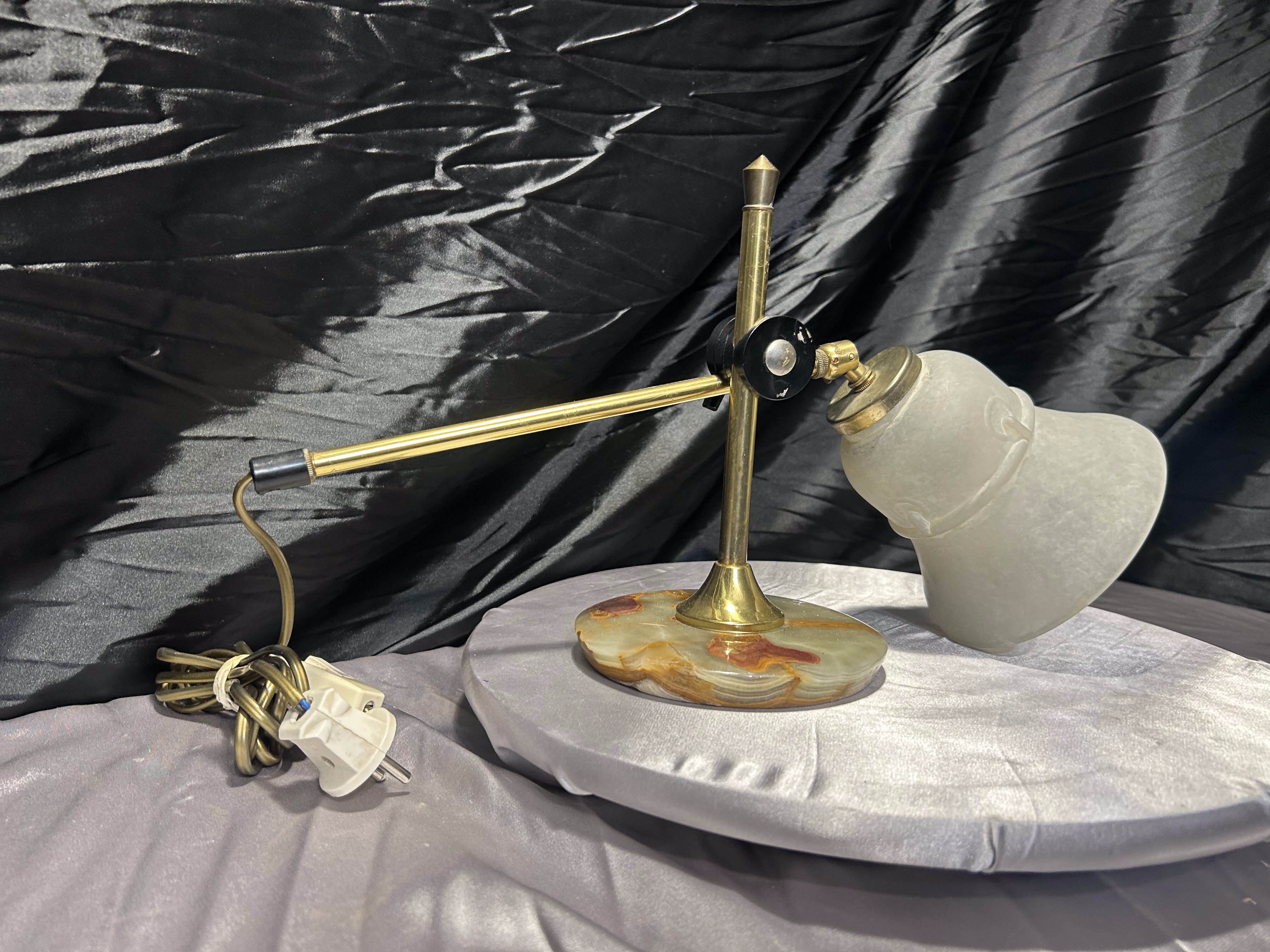 Lampa z onyksu i mosiądzu – szklany klosz – oświetlenie dekoracyjne