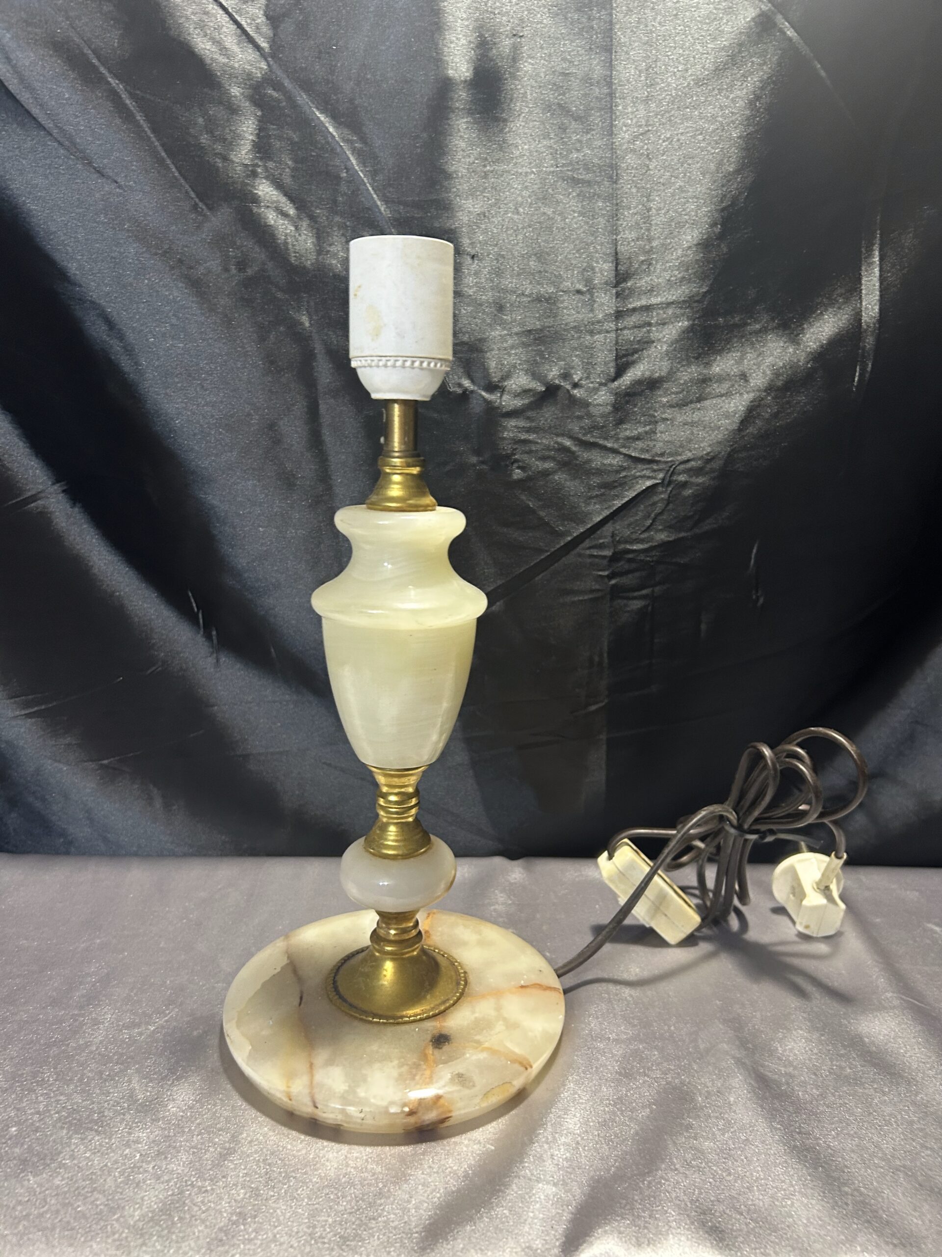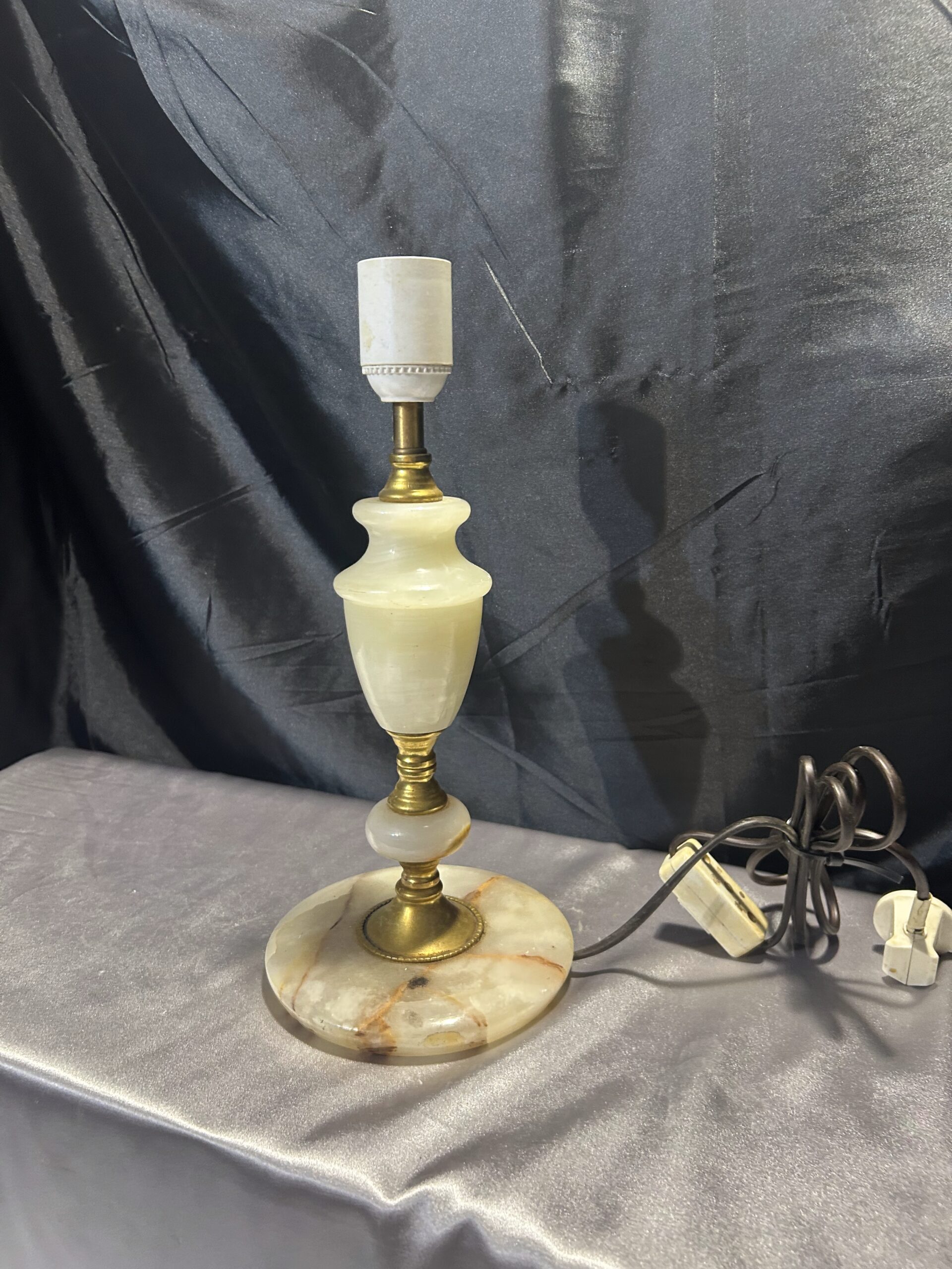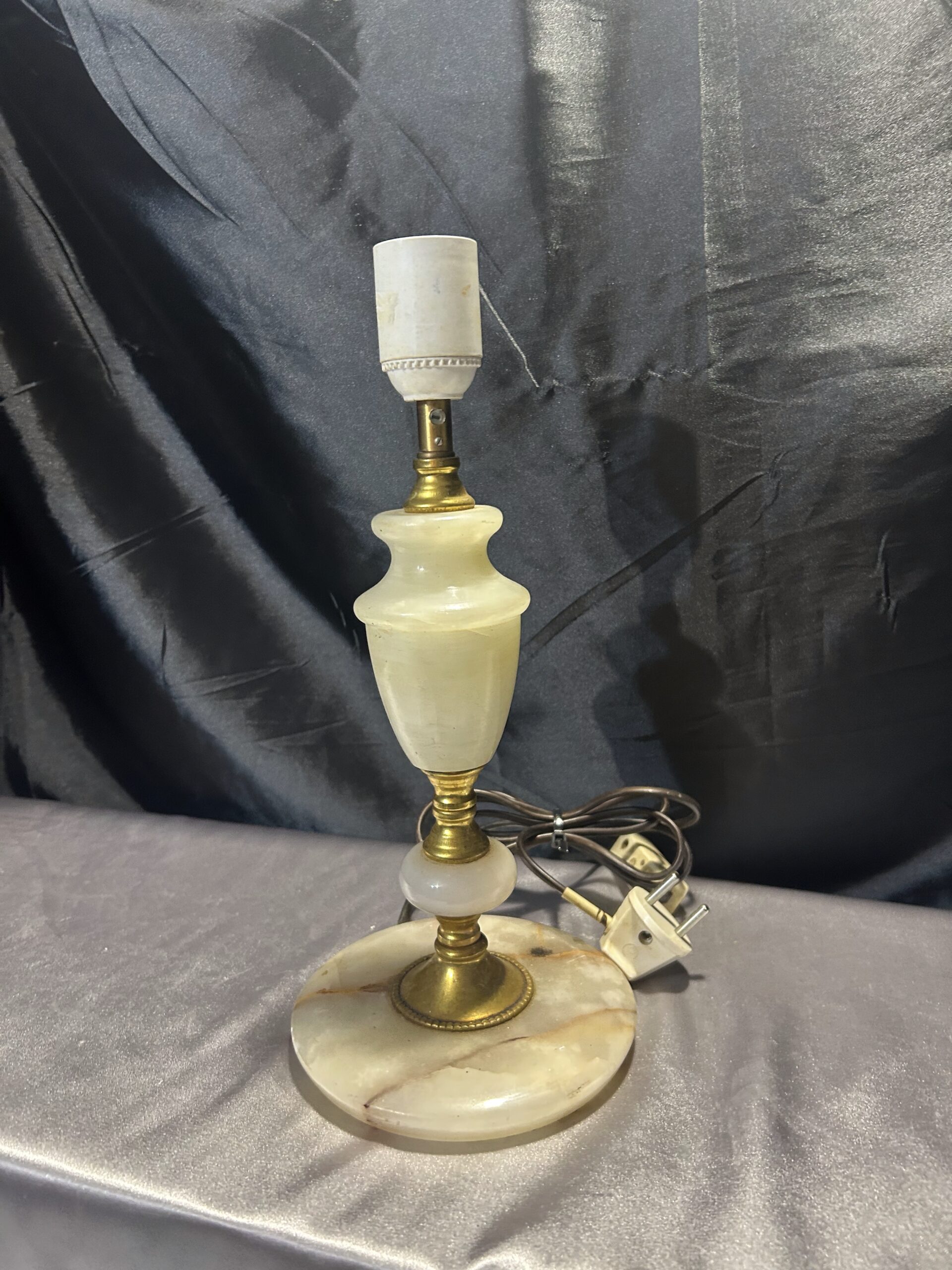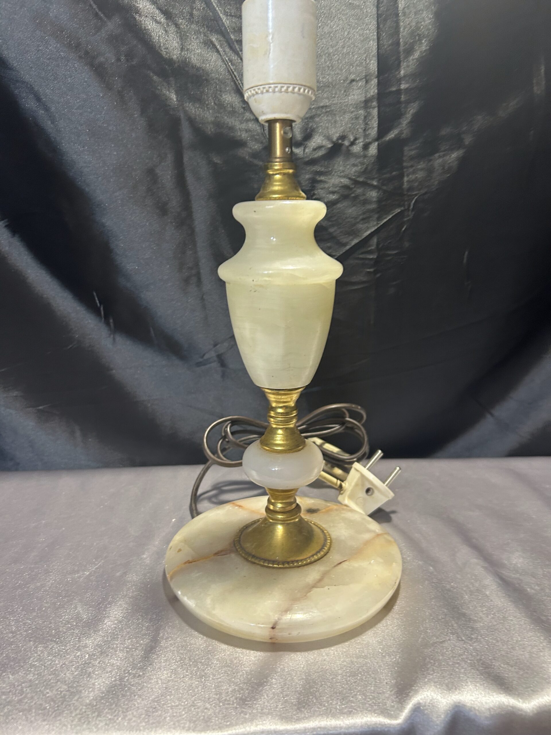 Elegancka lampa stojąca wykonana z onyksu i mosiądzu, z pięknie toczonym wykończeniem. Idealna na komodę, szafkę nocną lub parapet, stanowi stylowy i funkcjonalny element dekoracyjny. Wyposażona w włącznik na kablu, co zapewnia wygodę użytkowania.
