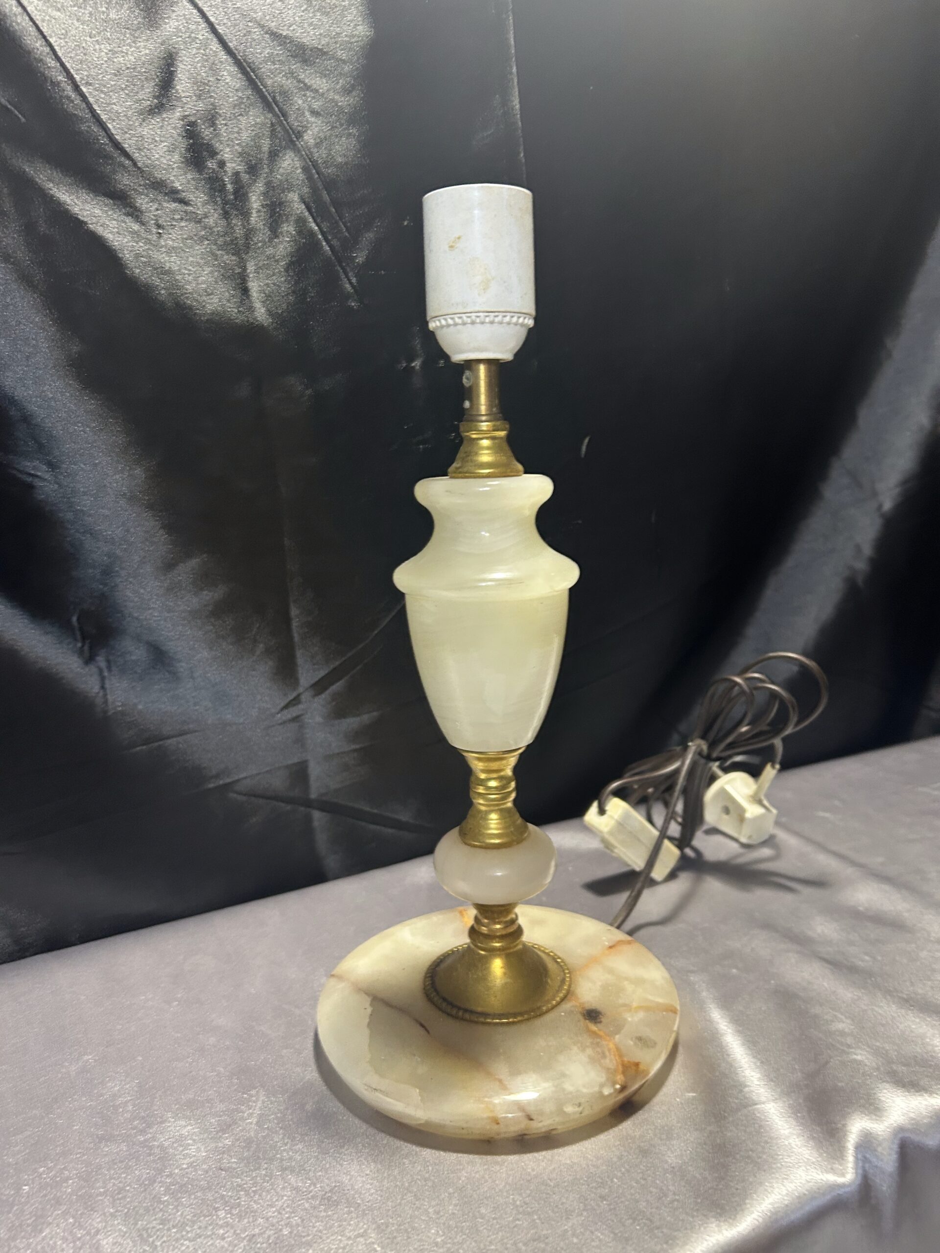 Lampa Stojąca z Onyksu i Mosiądzu – Zdobiona i Toczona
