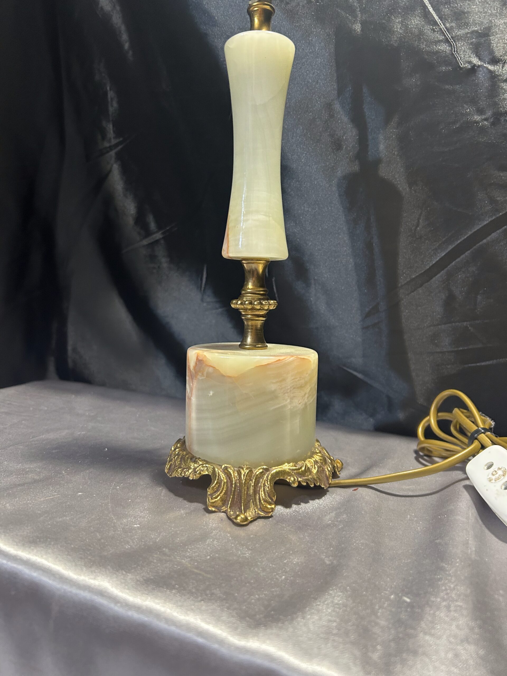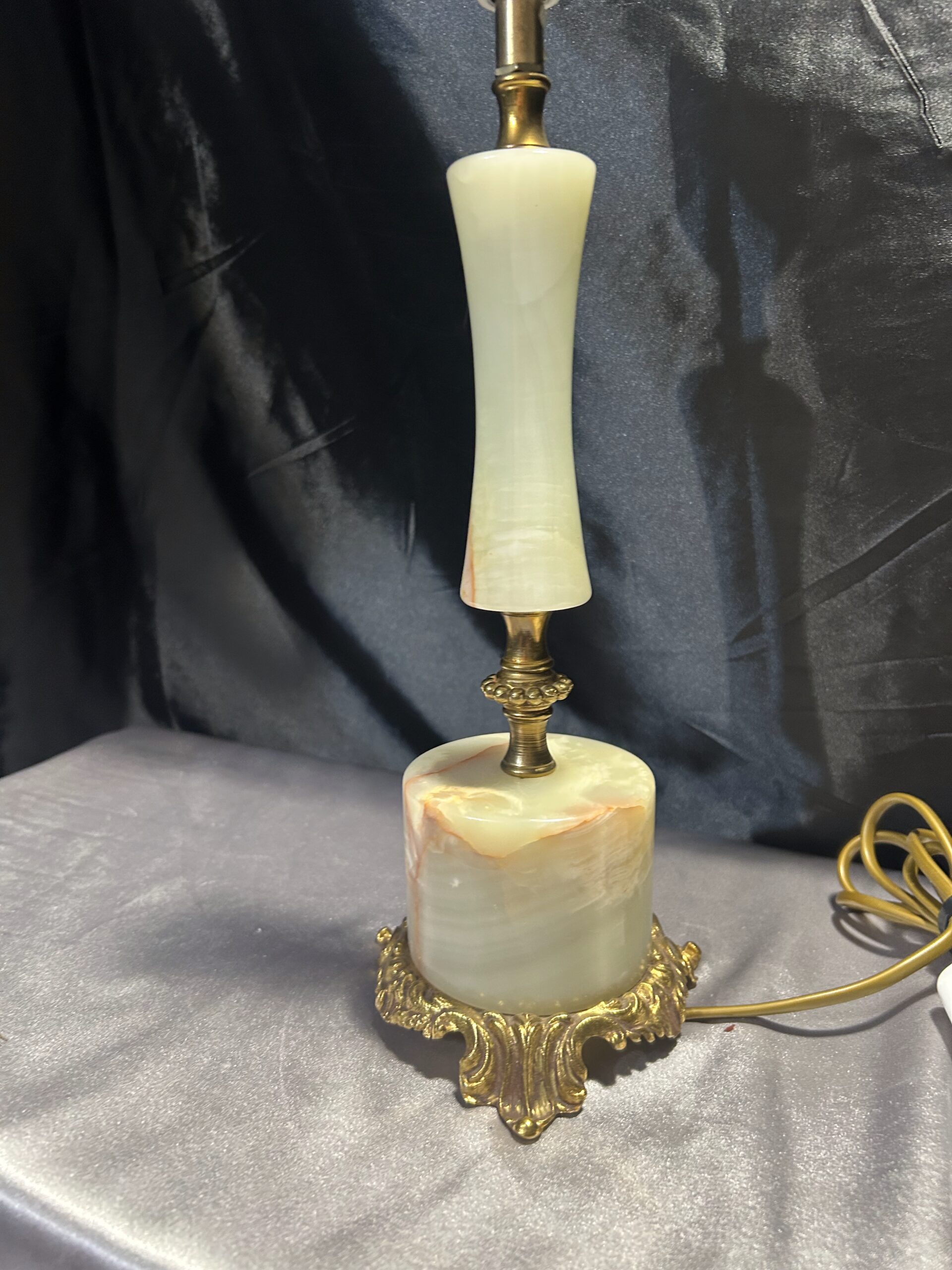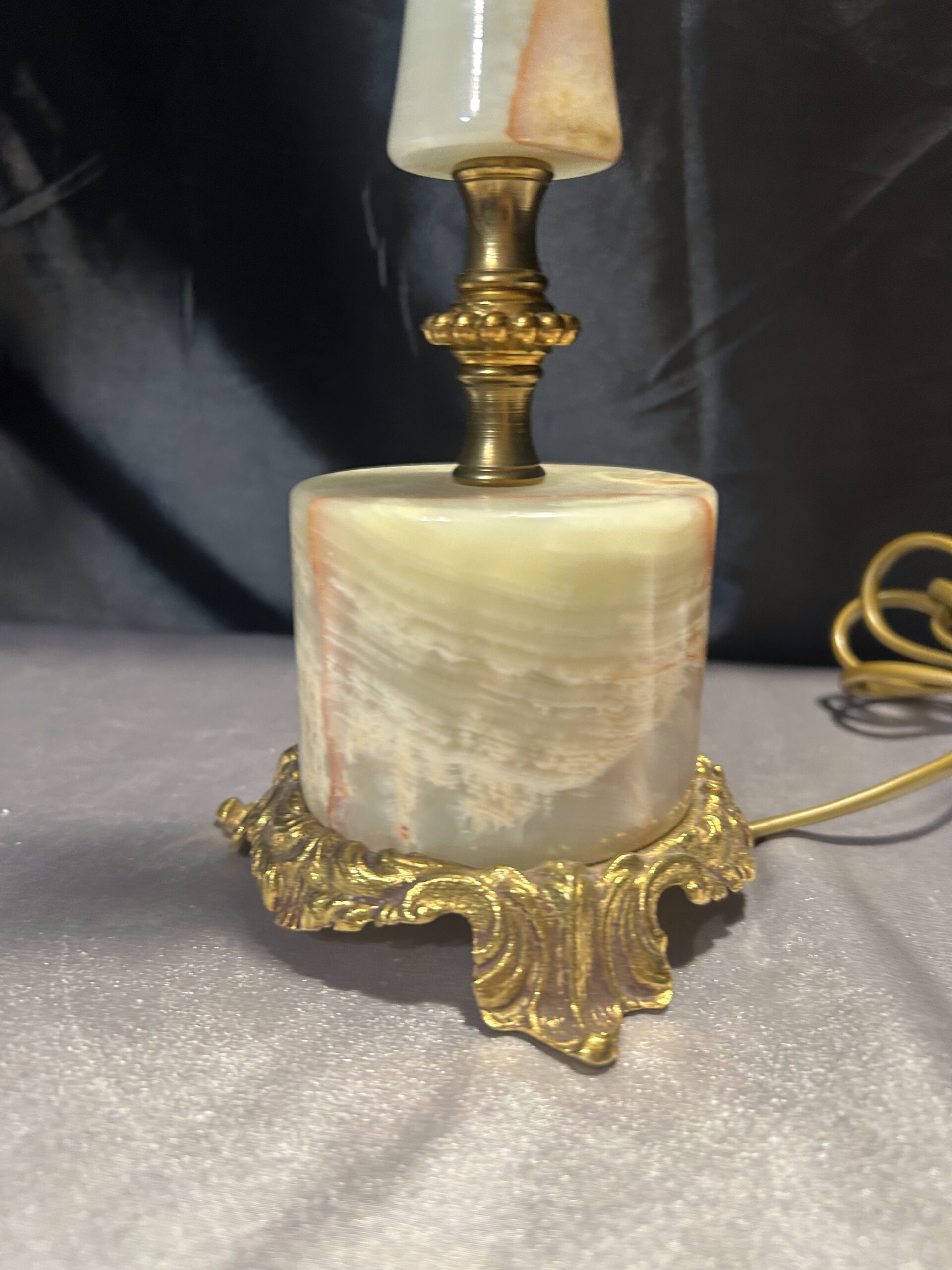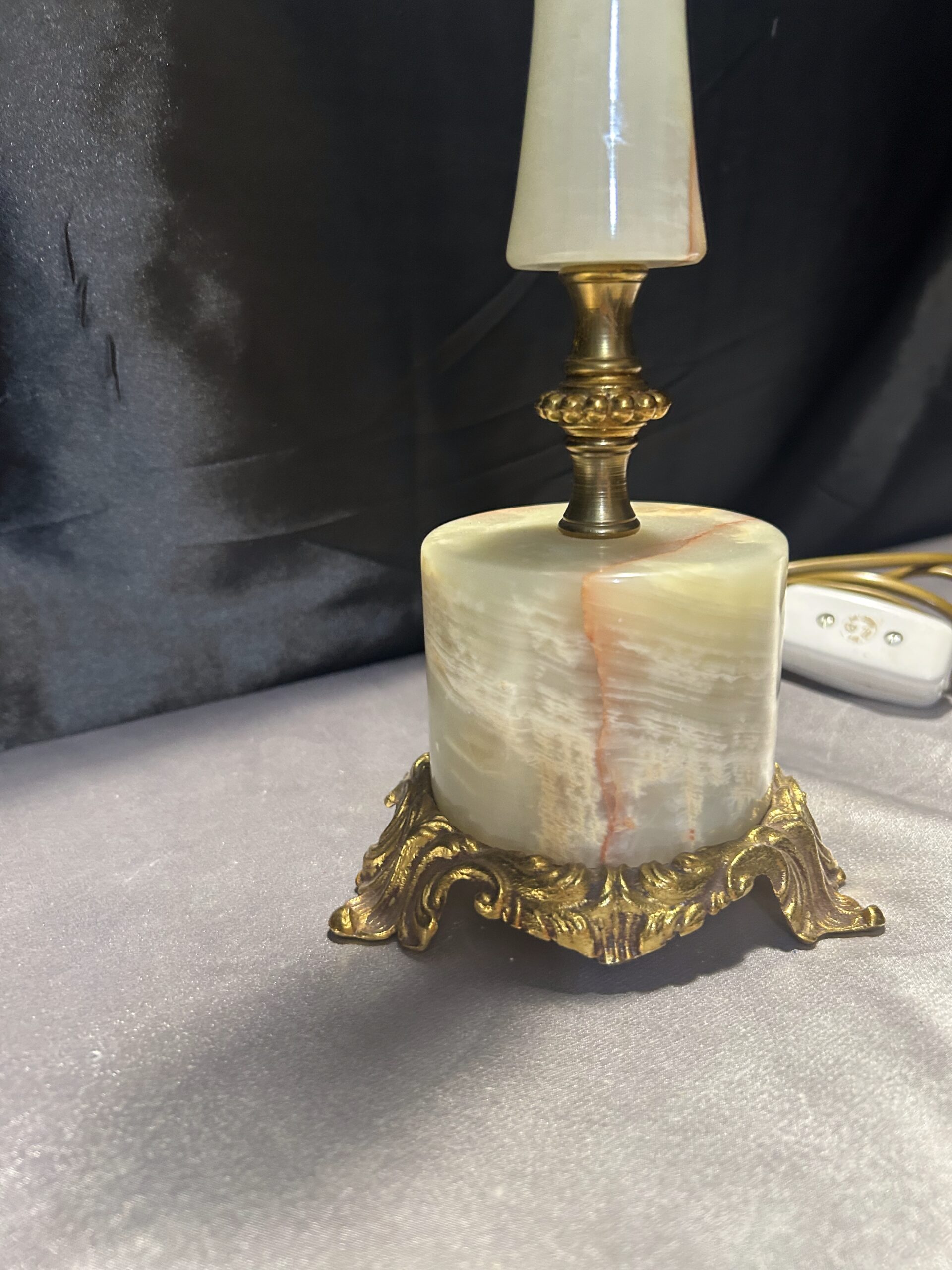 Lampa z Onyksu i Mosiądzu – Zdobiona i Elegancka