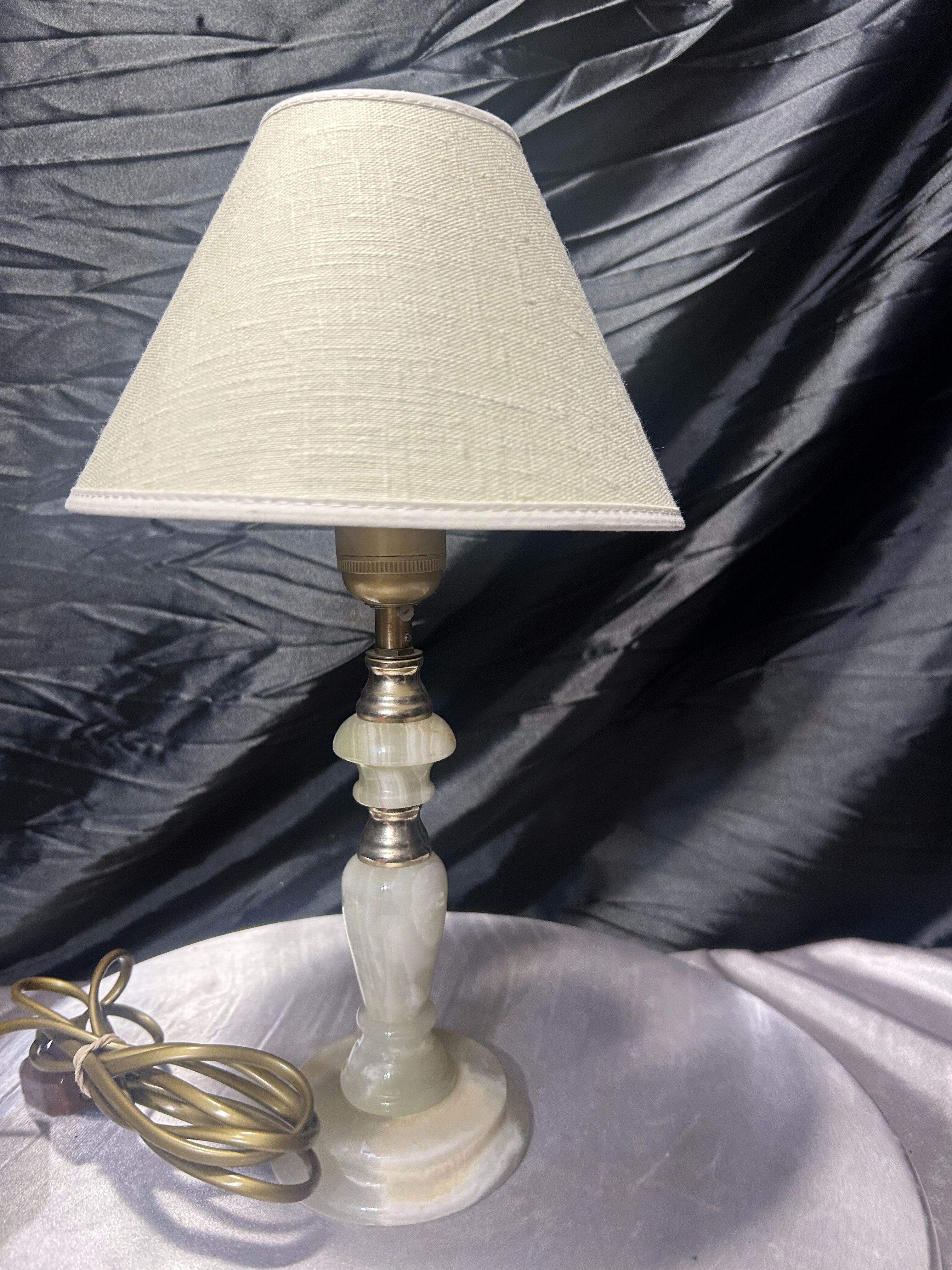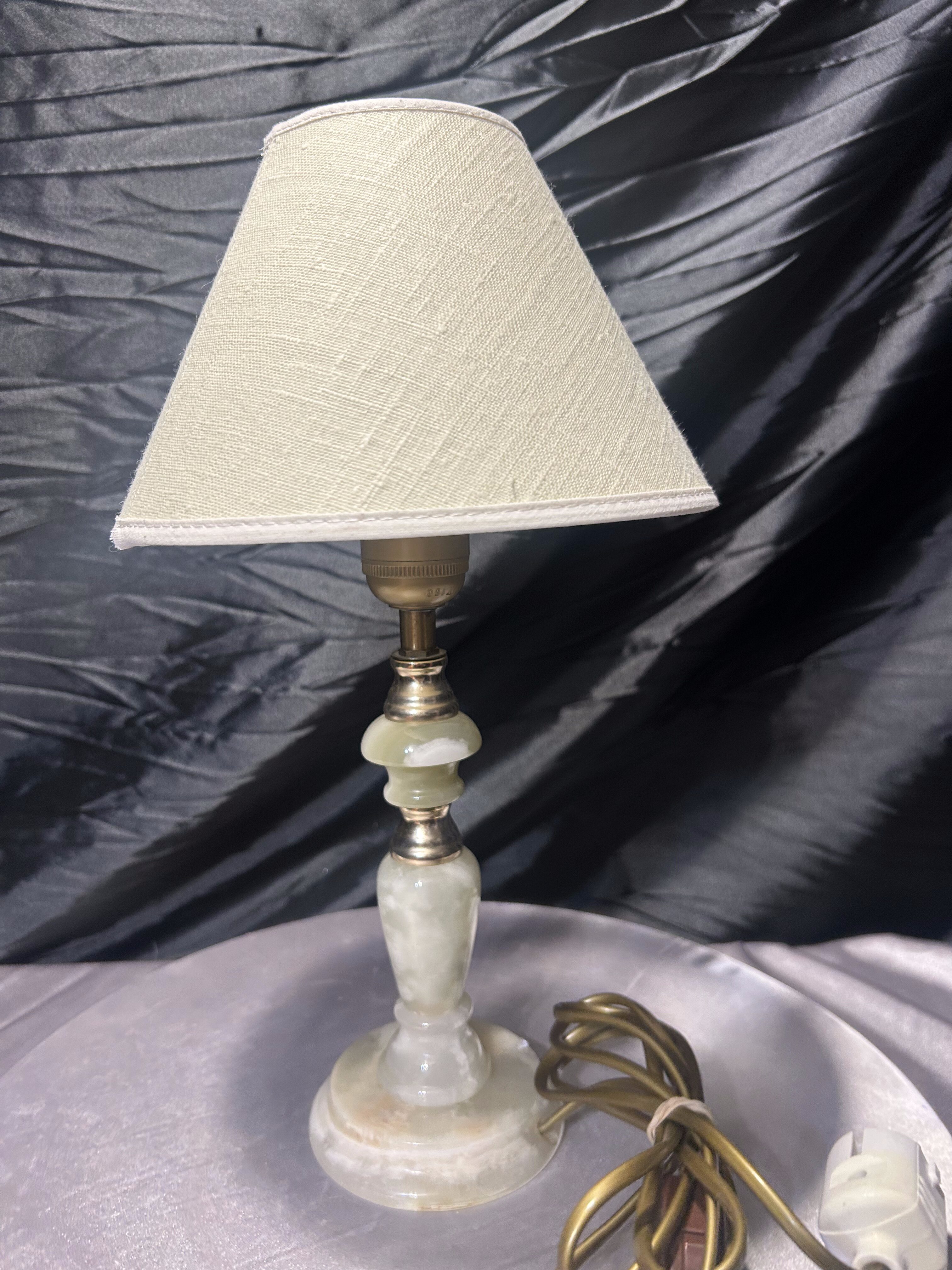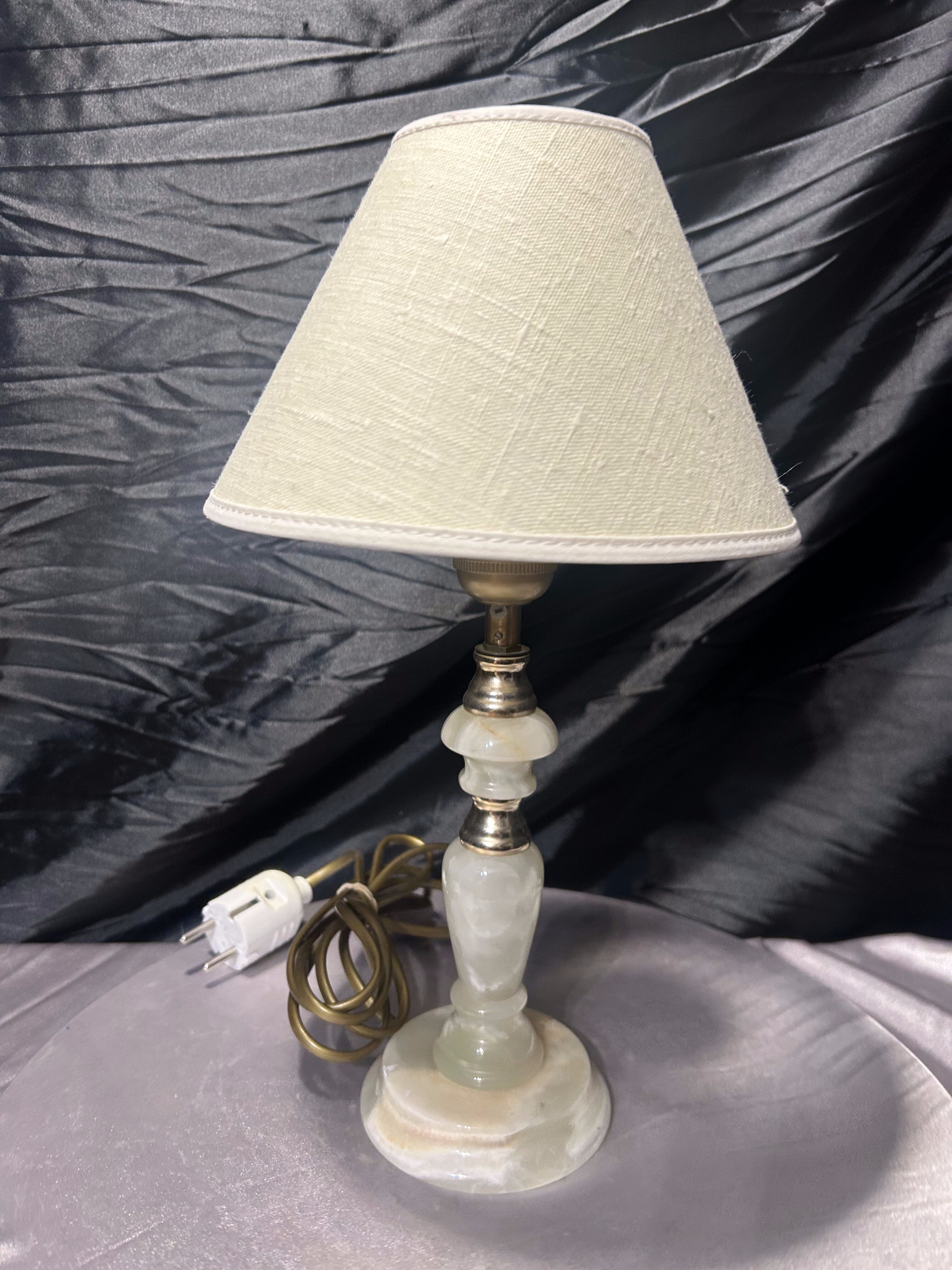 - Lampa z onyksu z abażurem – elegancka, klasyczna