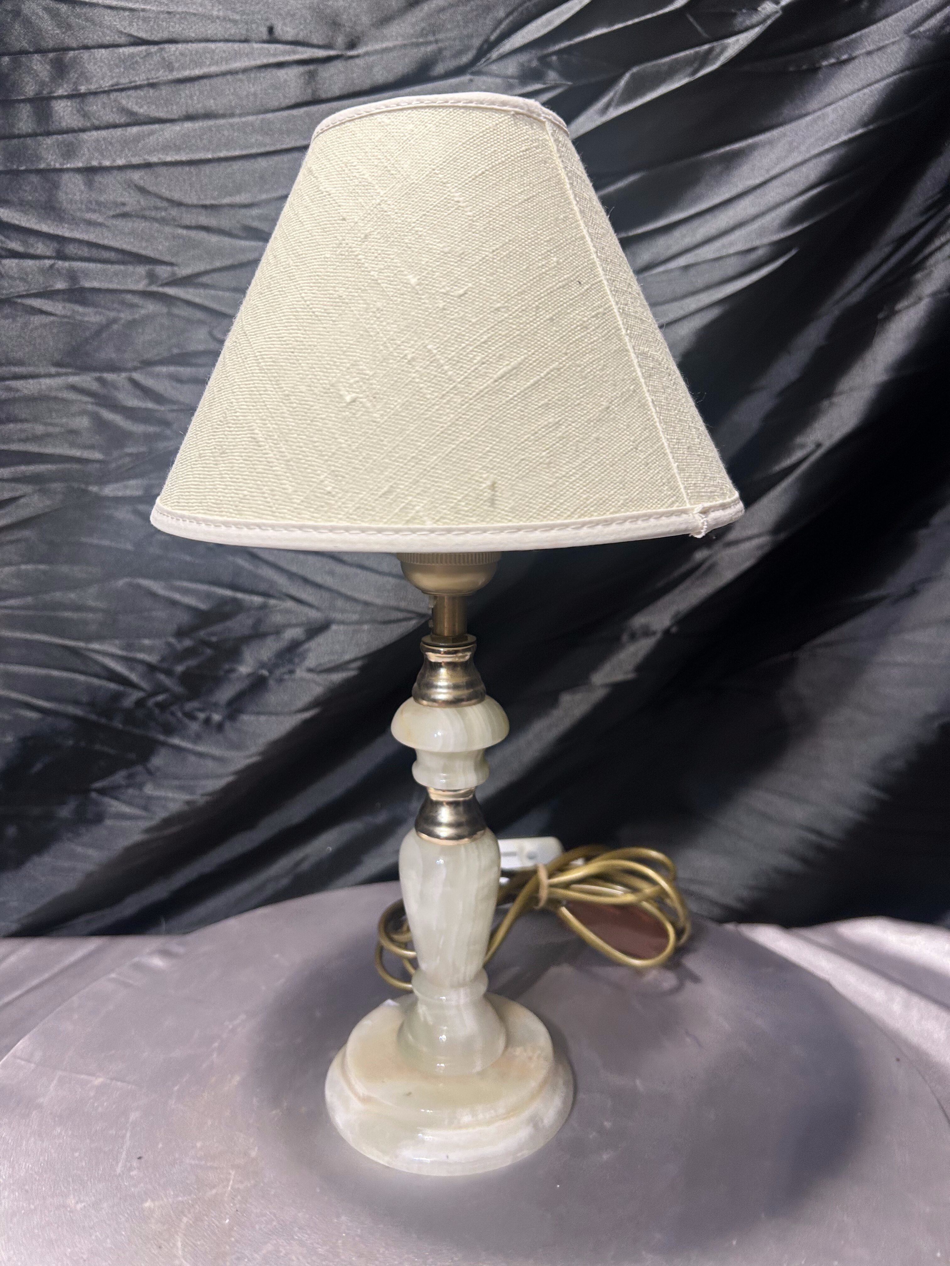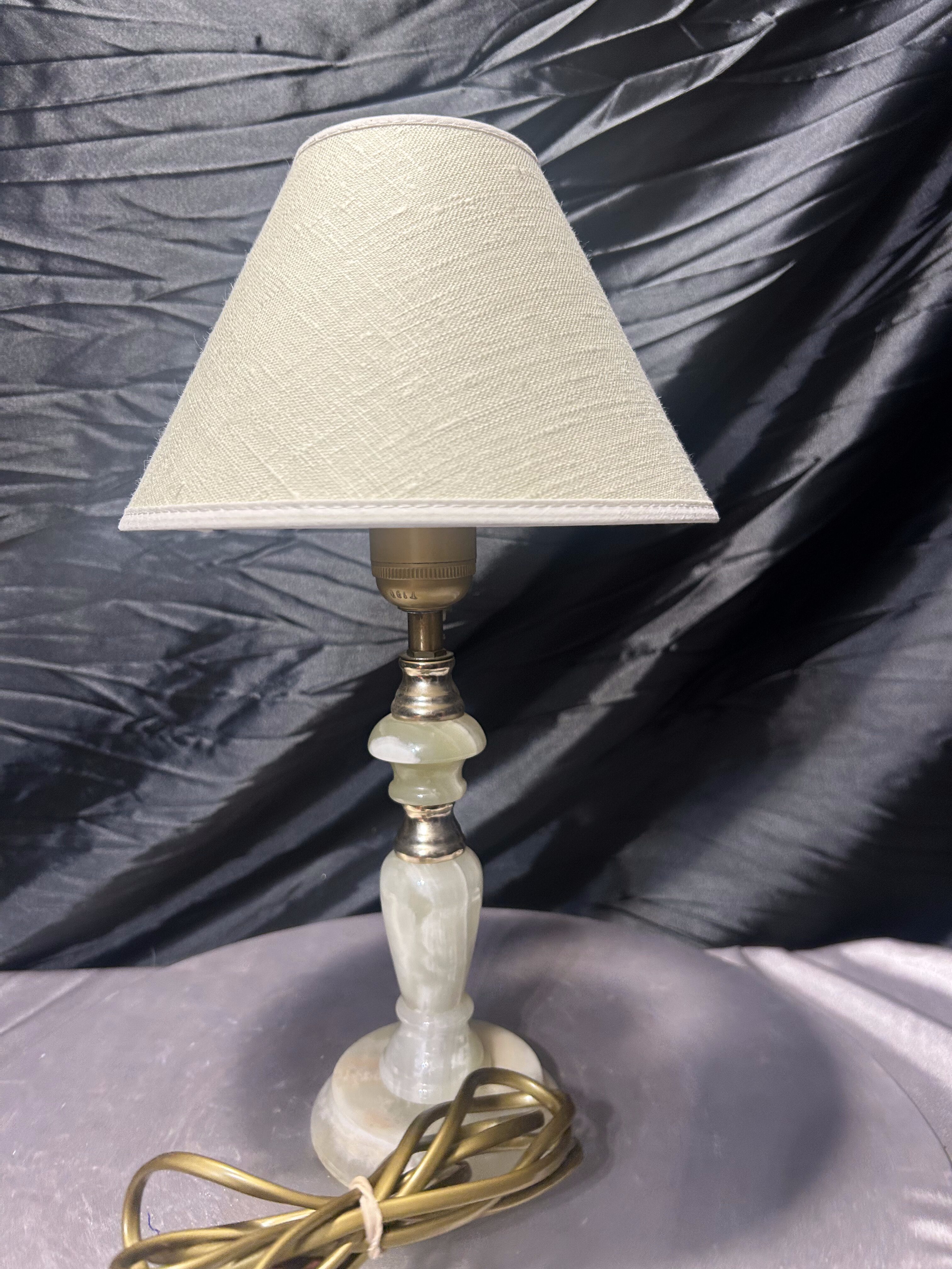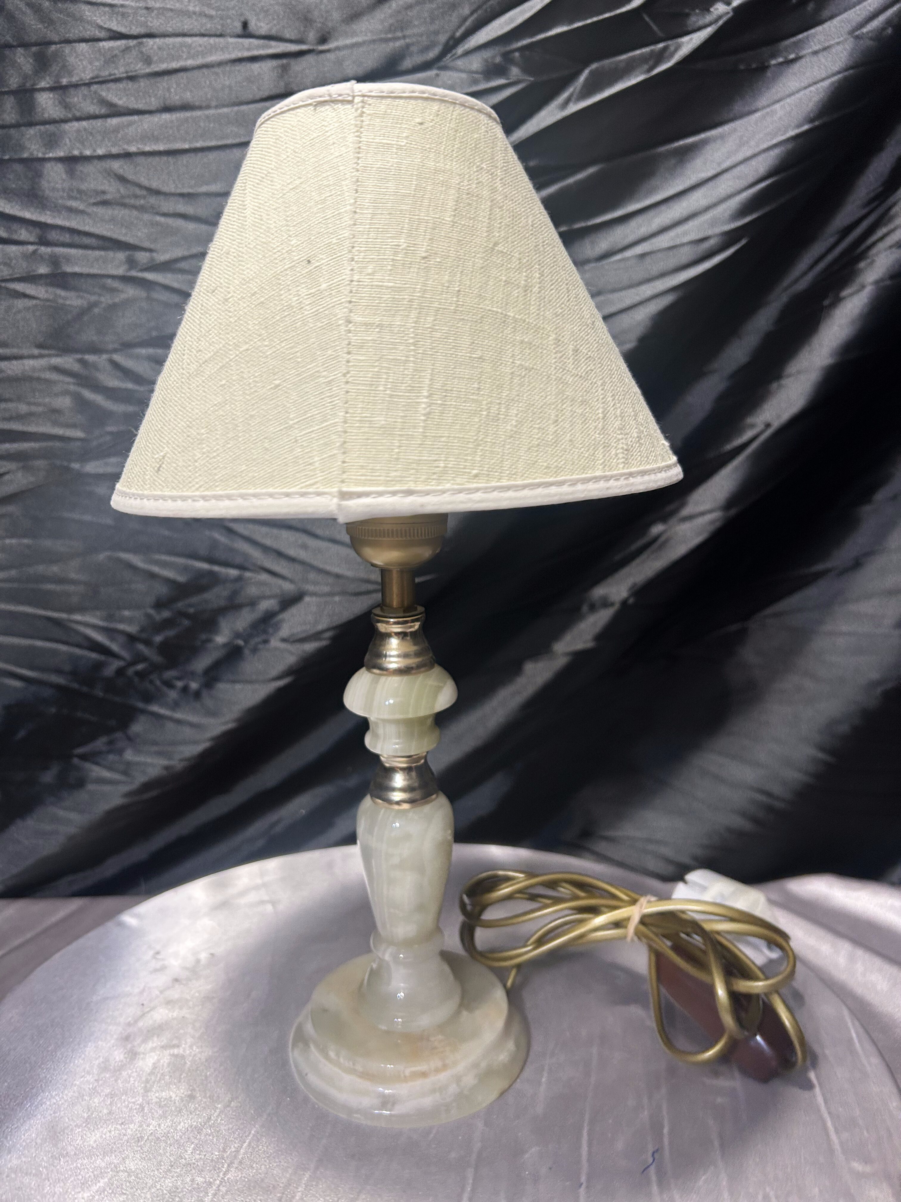 - Lampa z onyksu z abażurem – elegancka, klasyczna