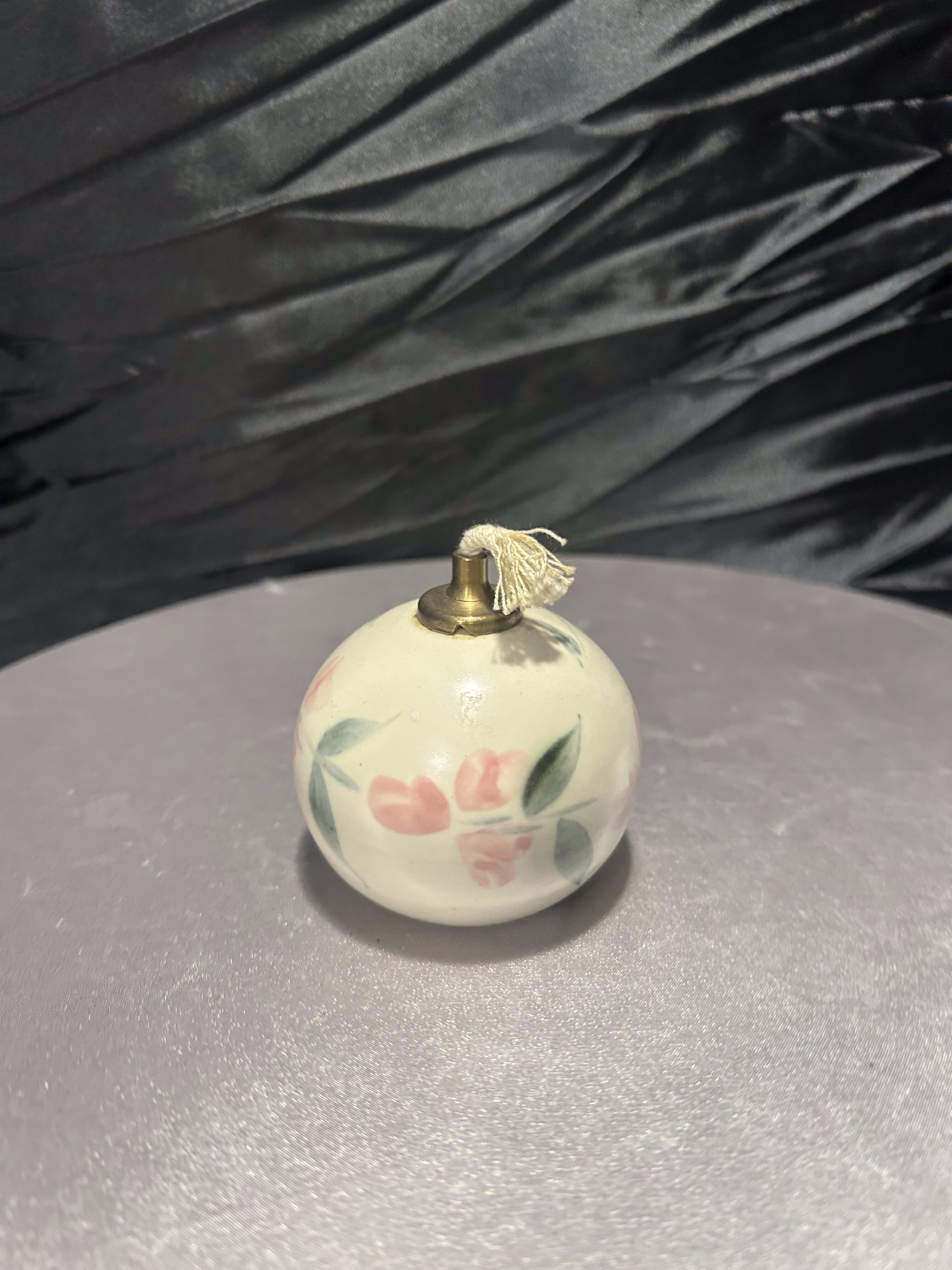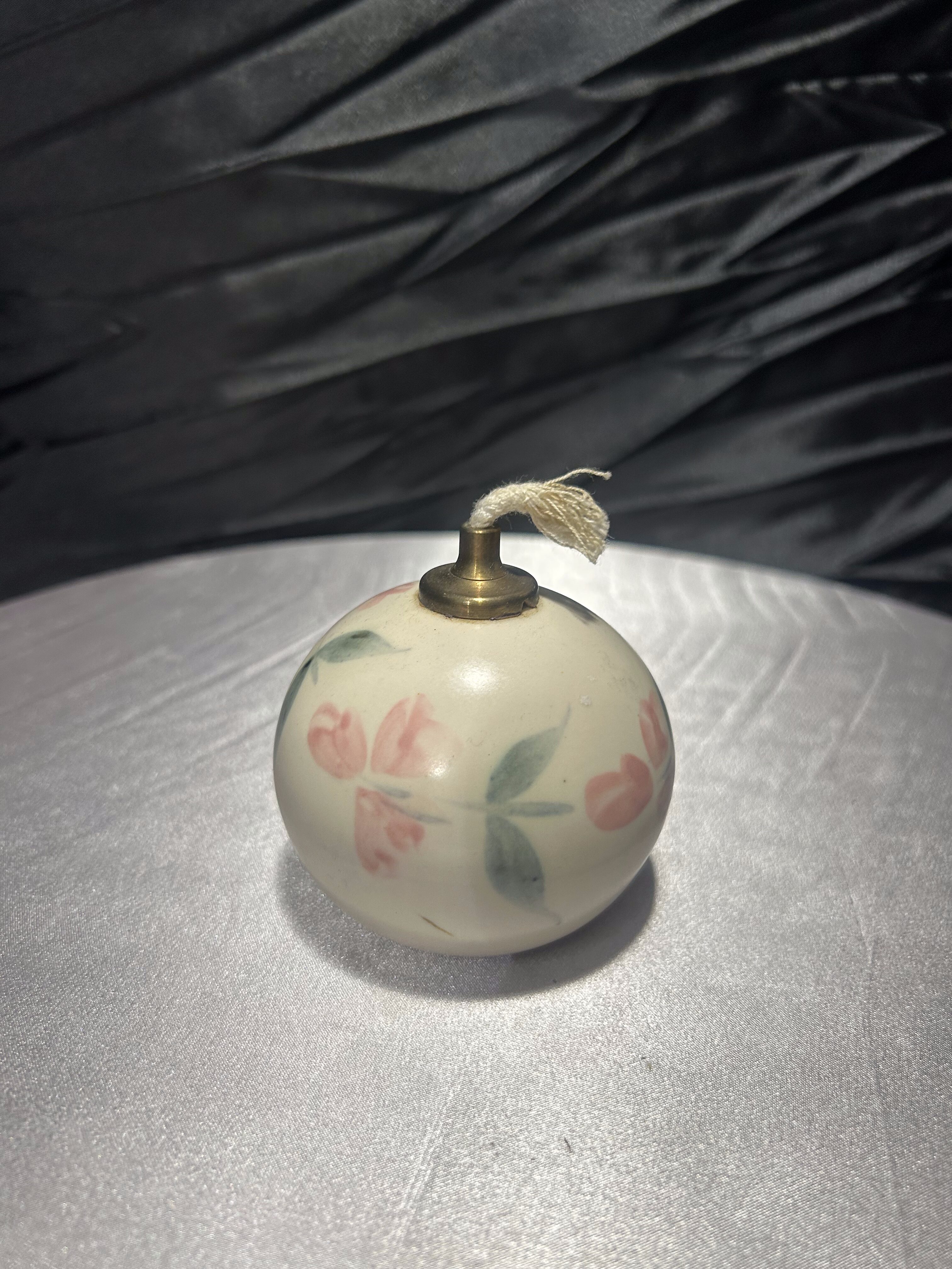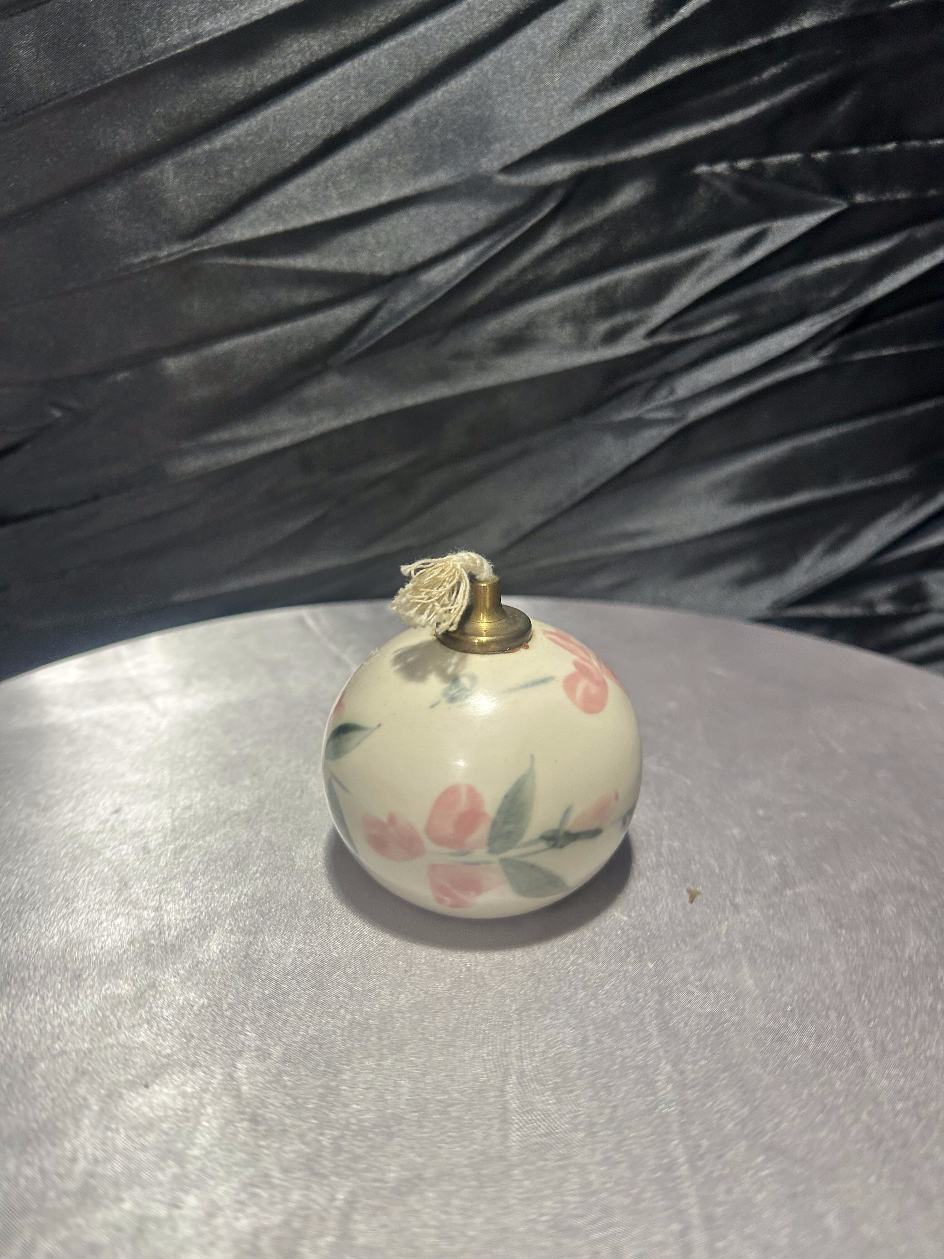 Unikalna lampka naftowa wykonana z ceramiki, ręcznie malowana w subtelne, kwiatowe wzory w stylu angielskim. Sygnowana od spodu naklejką: „English Country Pottery – Hand Painted by Liz Bodman – Made in England”, co świadczy o jej autentyczności i pochodzeniu. Kunsztowne wykonanie i pastelowa kolorystyka sprawiają, że lampka doskonale odnajdzie się jako element dekoracyjny w klasycznych oraz romantycznych wnętrzach.