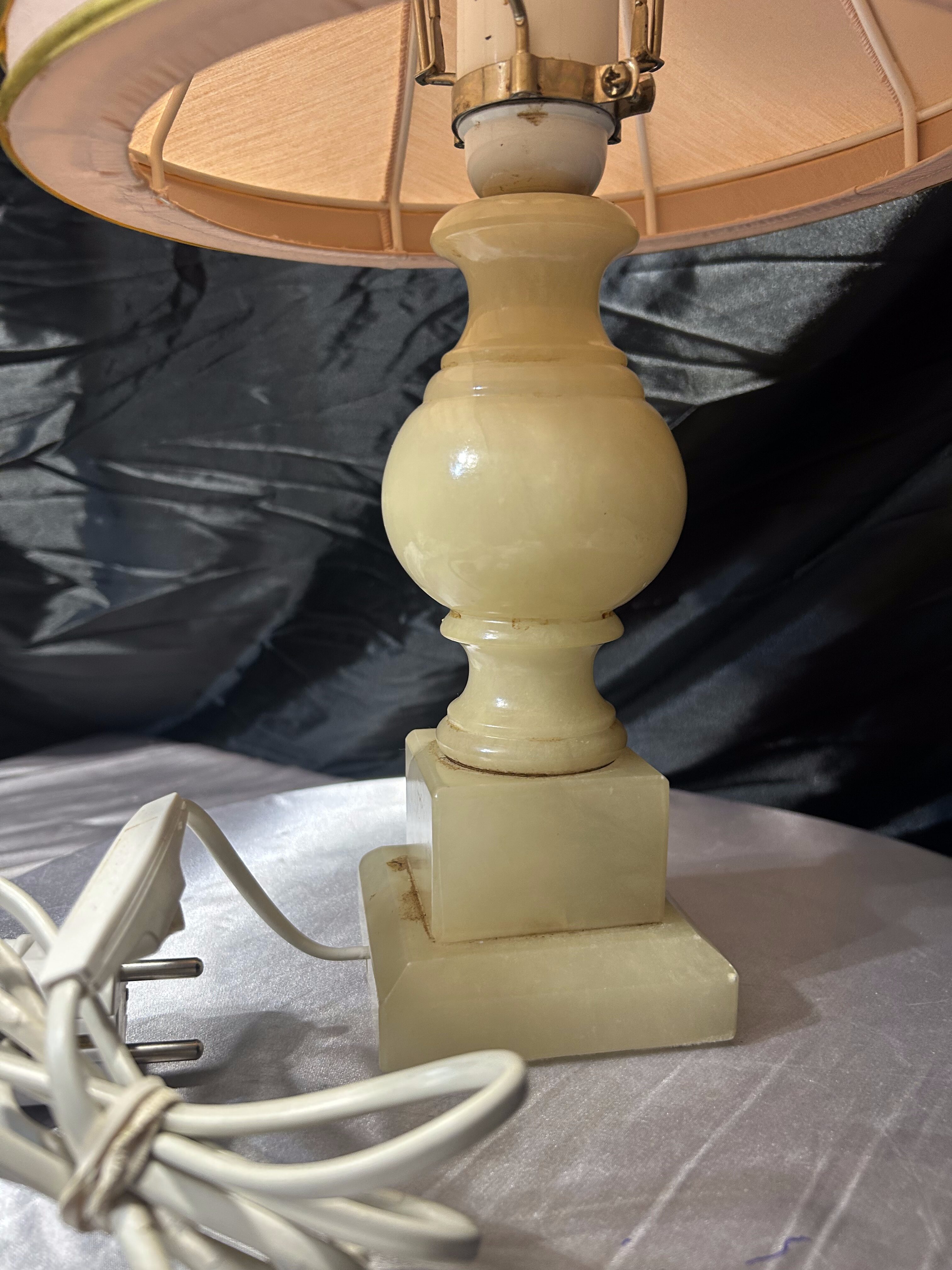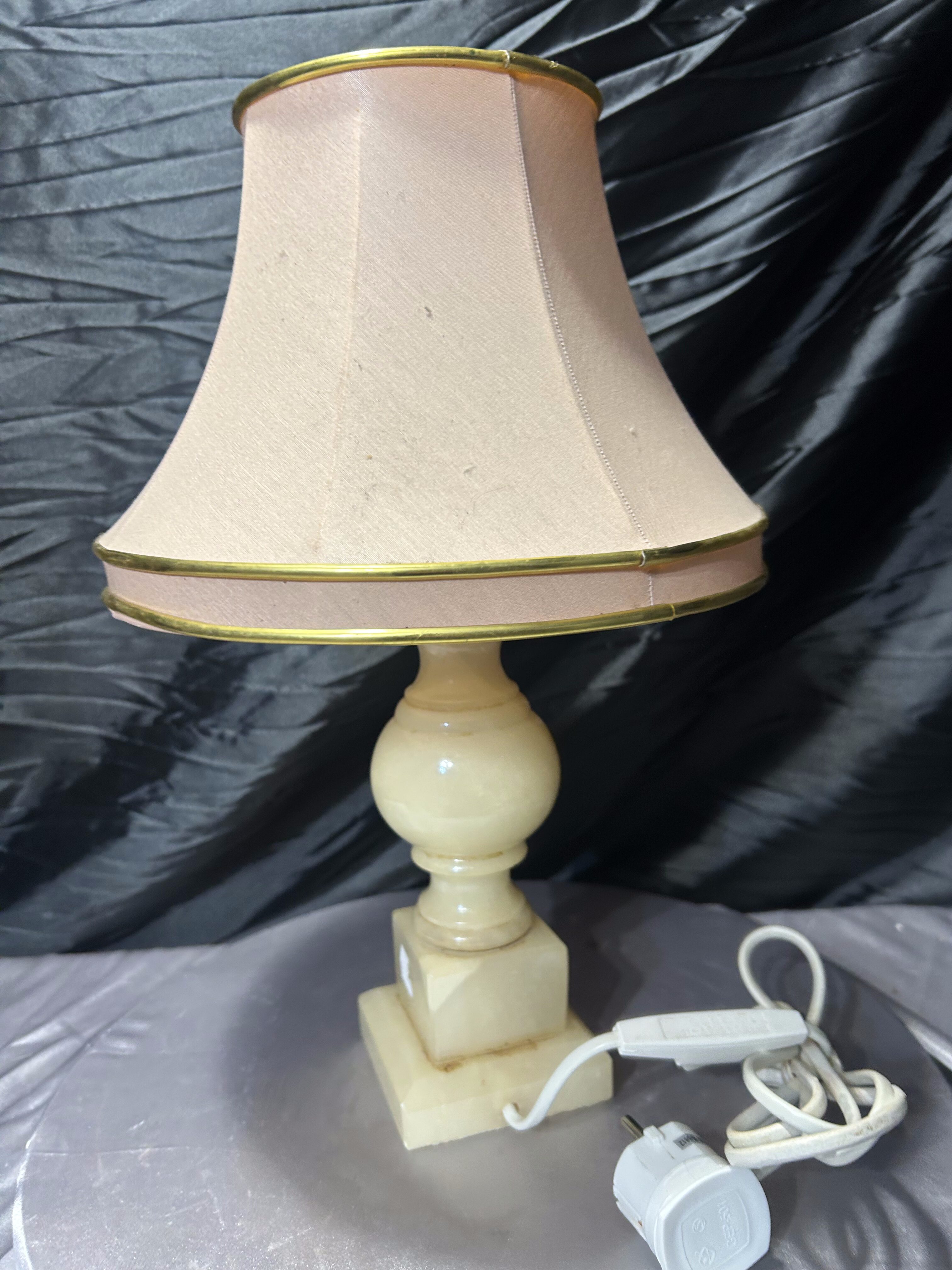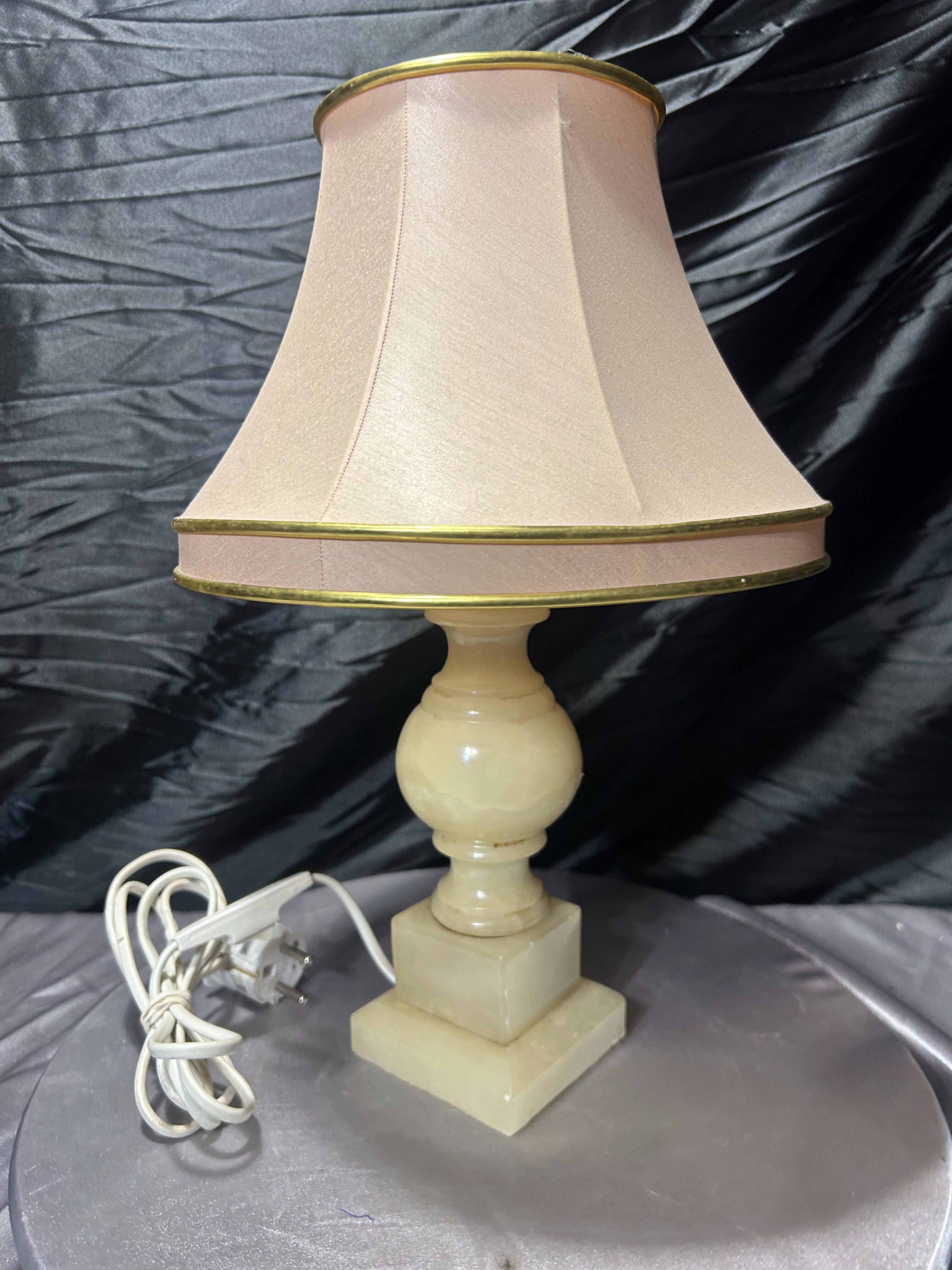 Lampka z onyksu lub alabastru z abażurem – klasyczna elegancja, styl vintage