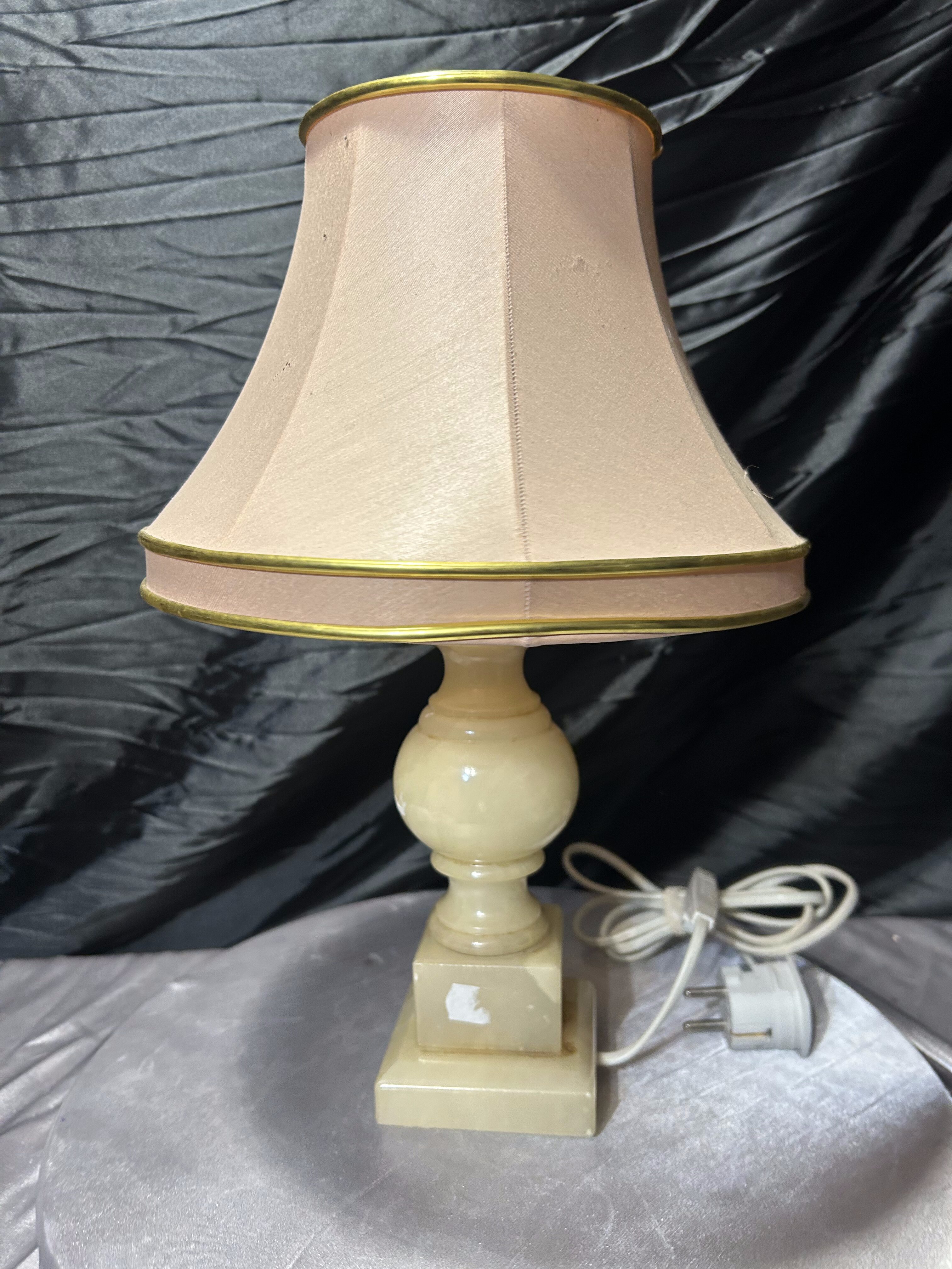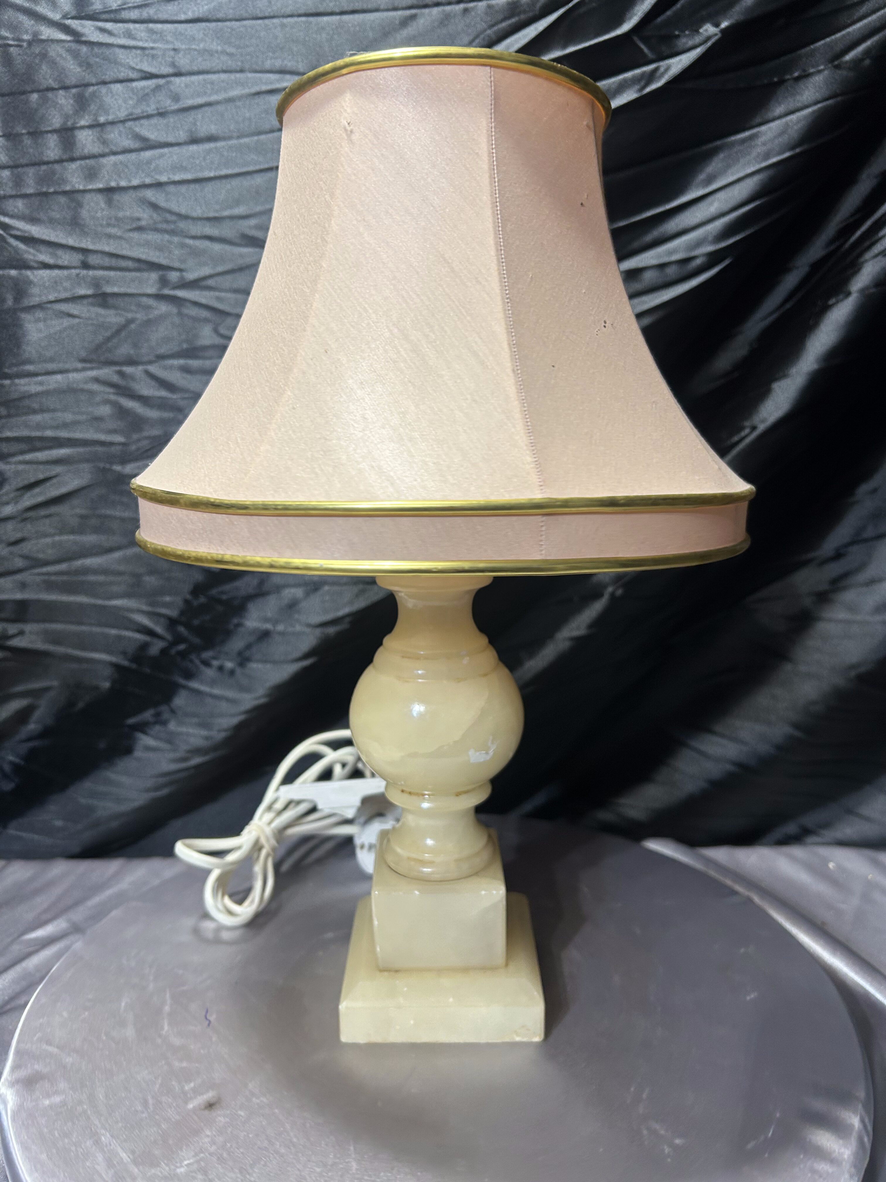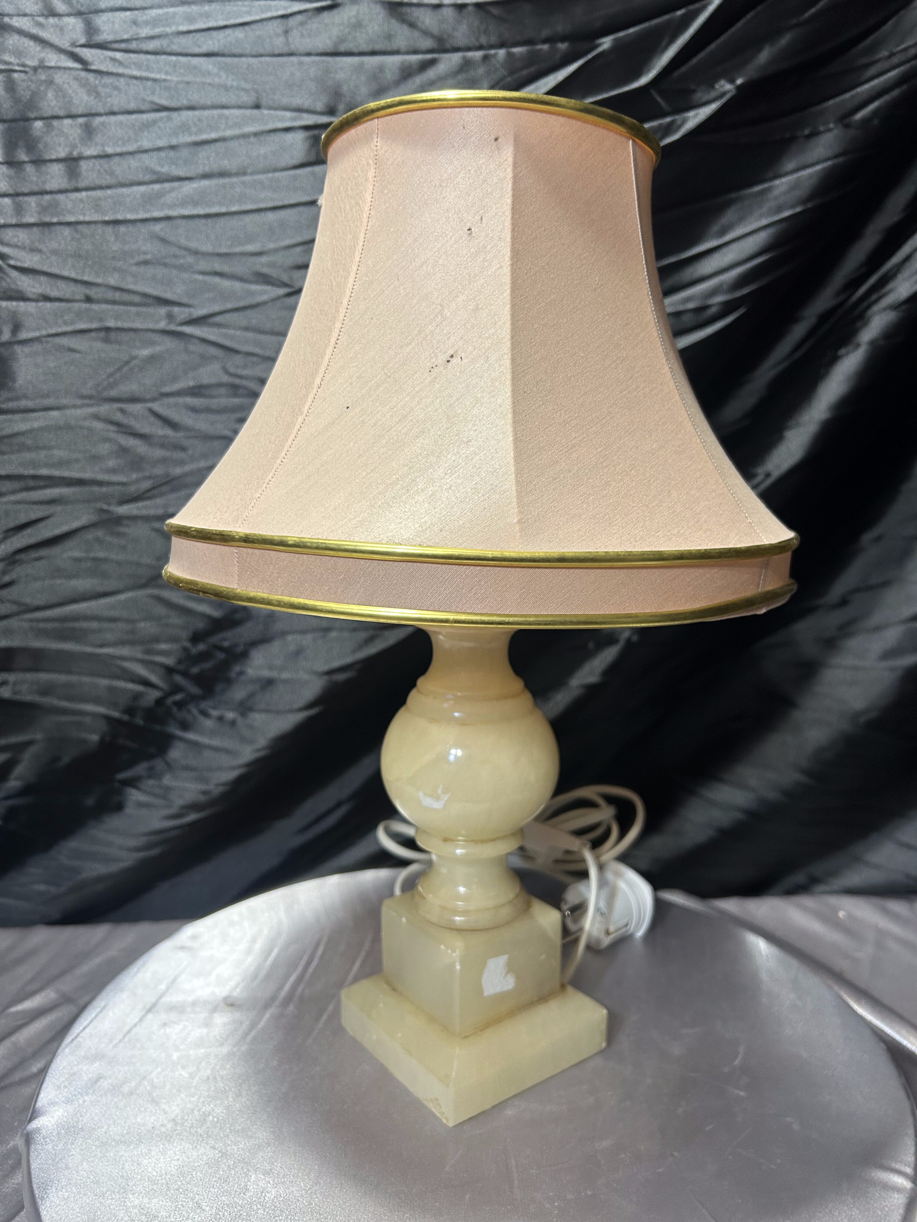Lampka z onyksu lub alabastru z abażurem – klasyczna elegancja, styl vintage