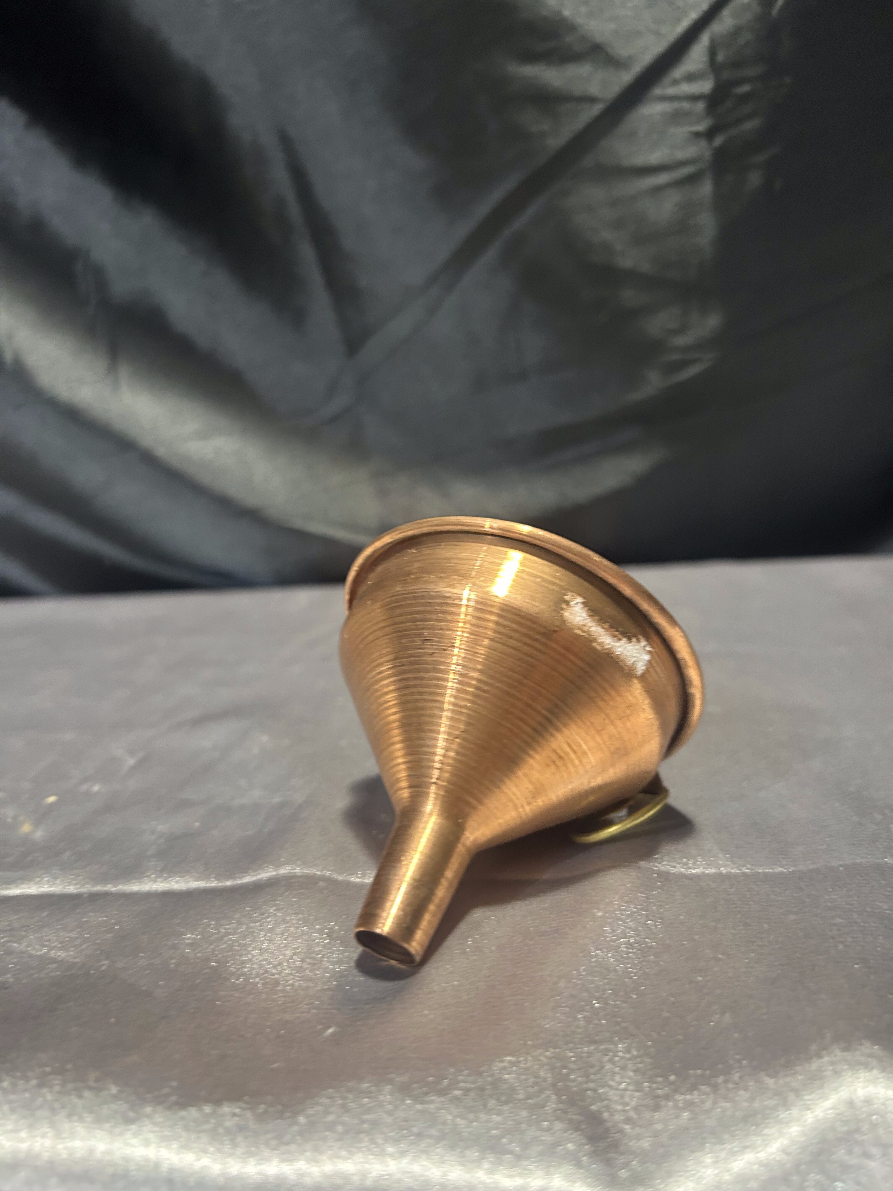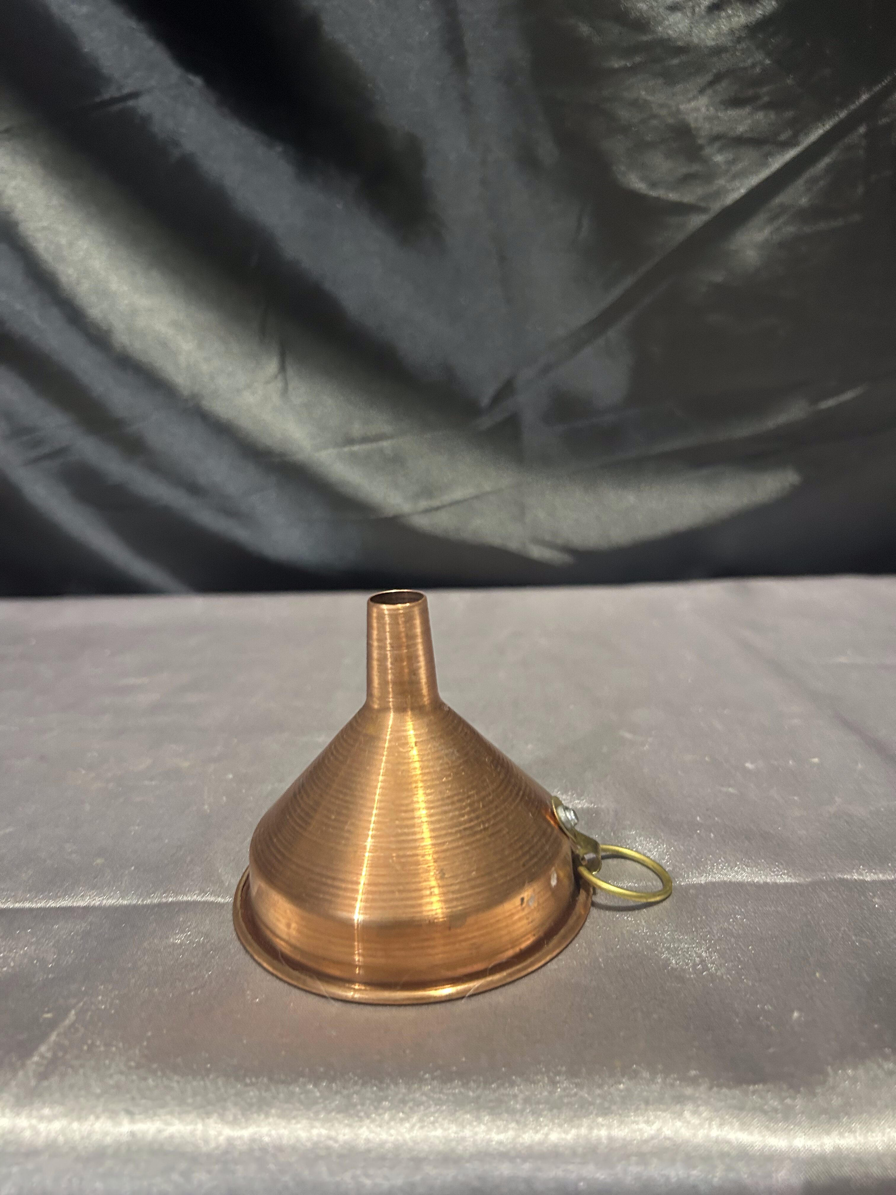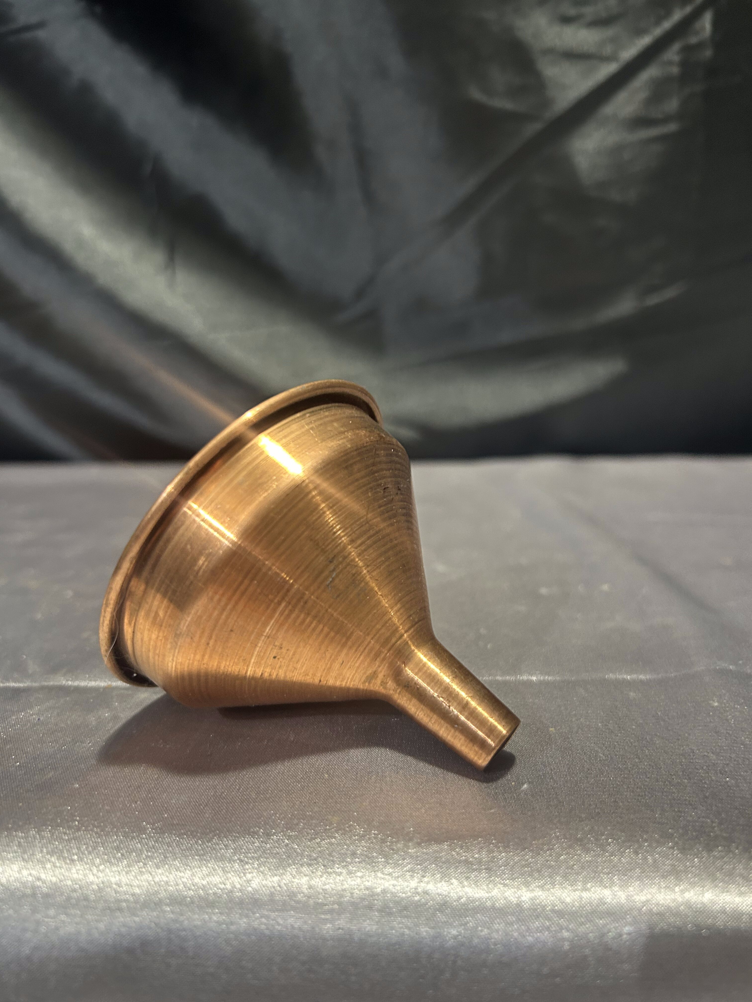 Niewielki, ale niezwykle urokliwy lejek wykonany z miedzi, wyposażony w praktyczne oczko do zawieszenia. Doskonały do codziennego użytku lub jako stylowy dodatek do kuchni w stylu rustykalnym, retro lub vintage. Idealny również do ekspozycji w domowych kolekcjach przedmiotów użytkowych z przeszłości.